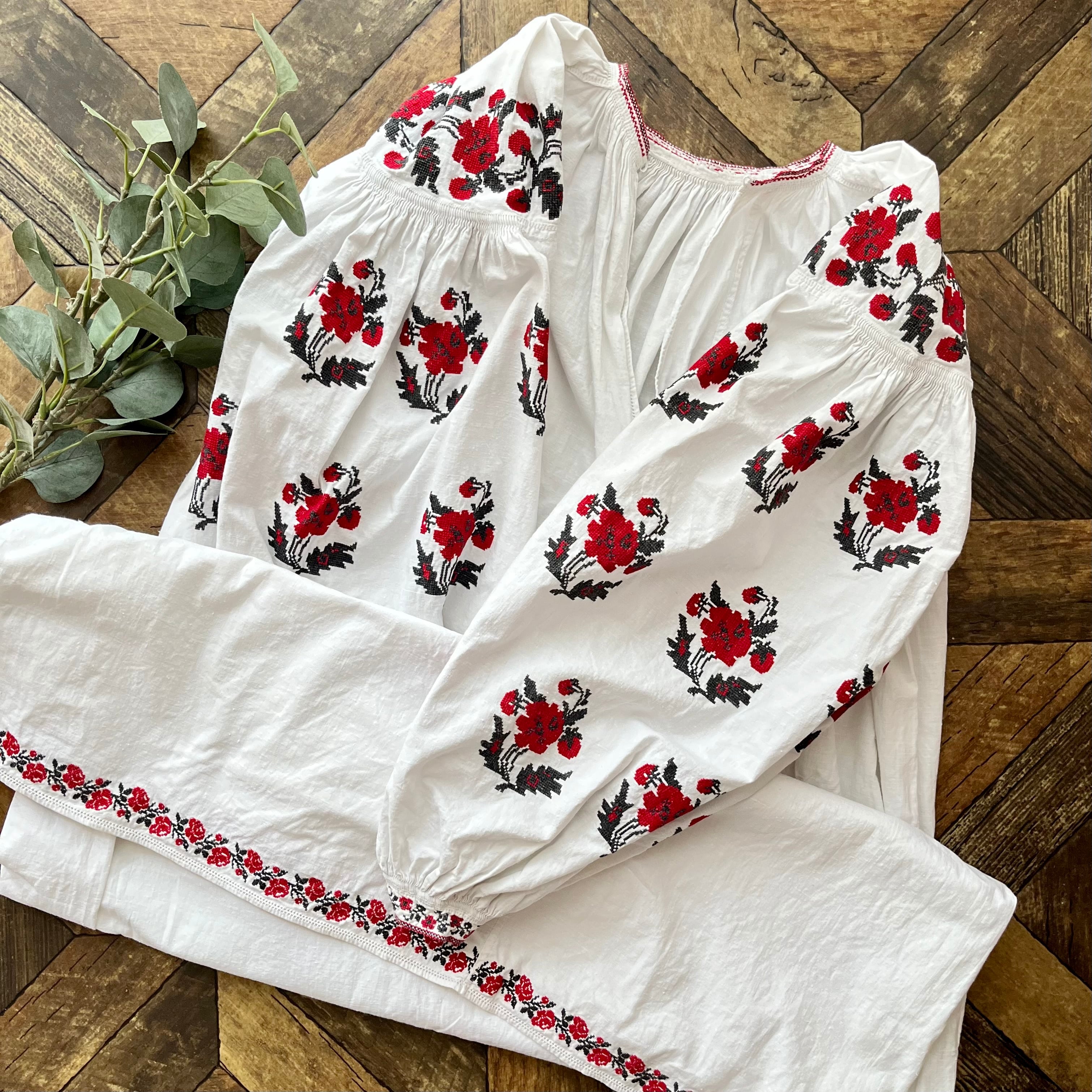 しっかりとした綿素材で、肩や袖口に入ったたっぷりギャザー、後ろ姿まで美しく見せてくれるシルエット…すべてが素晴らしいウクライナの民族衣装です。