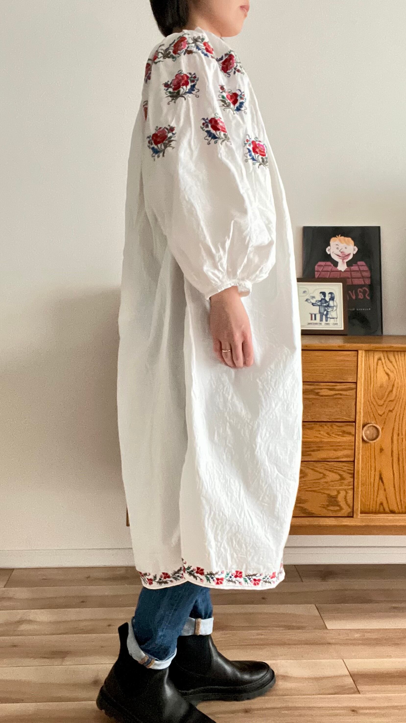 ※厚手のリネン素材のウクライナ刺繍ワンピースにいて