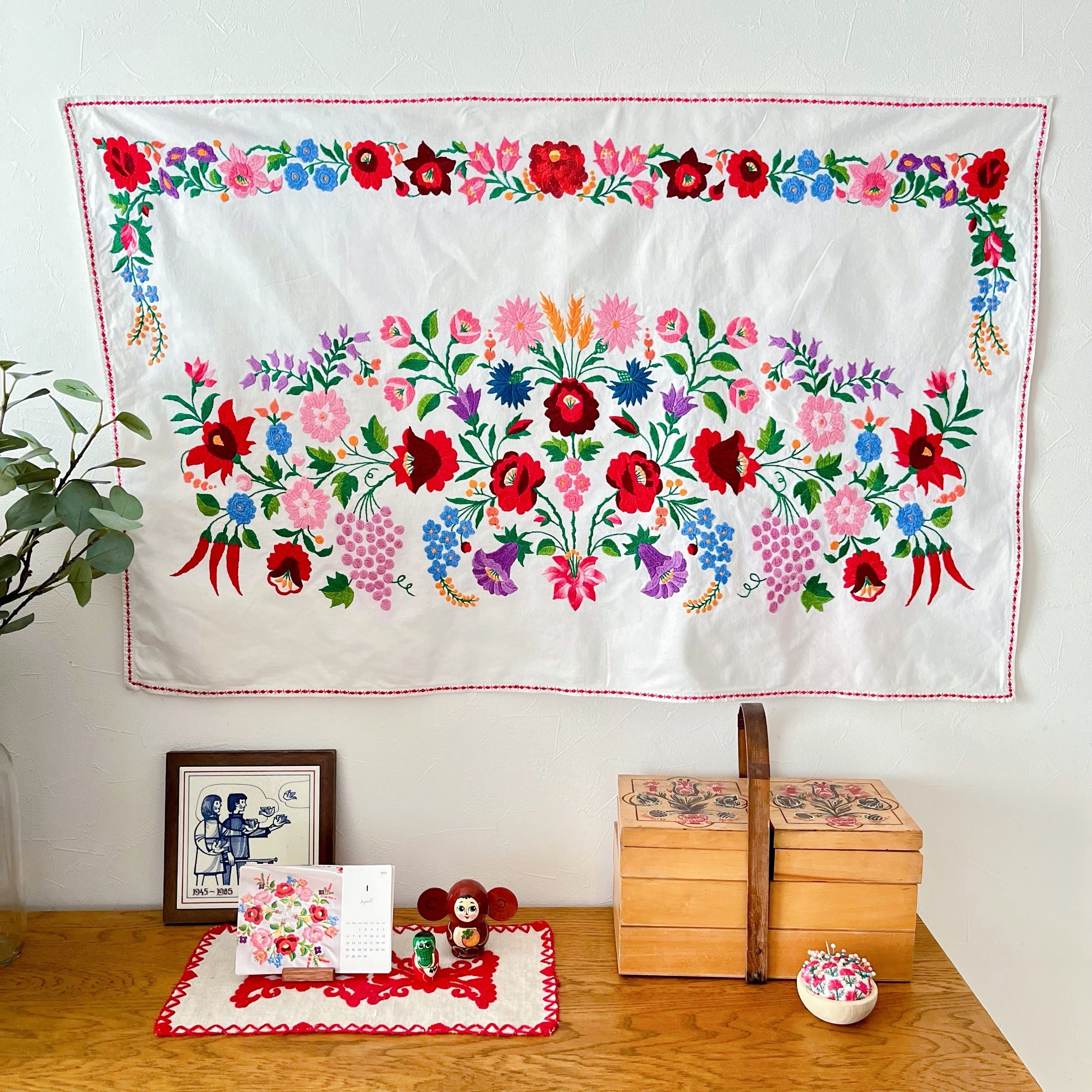 カロチャ刺繍の華やかタペストリー ヴィンテージ カロチャ刺繍 98×63cm