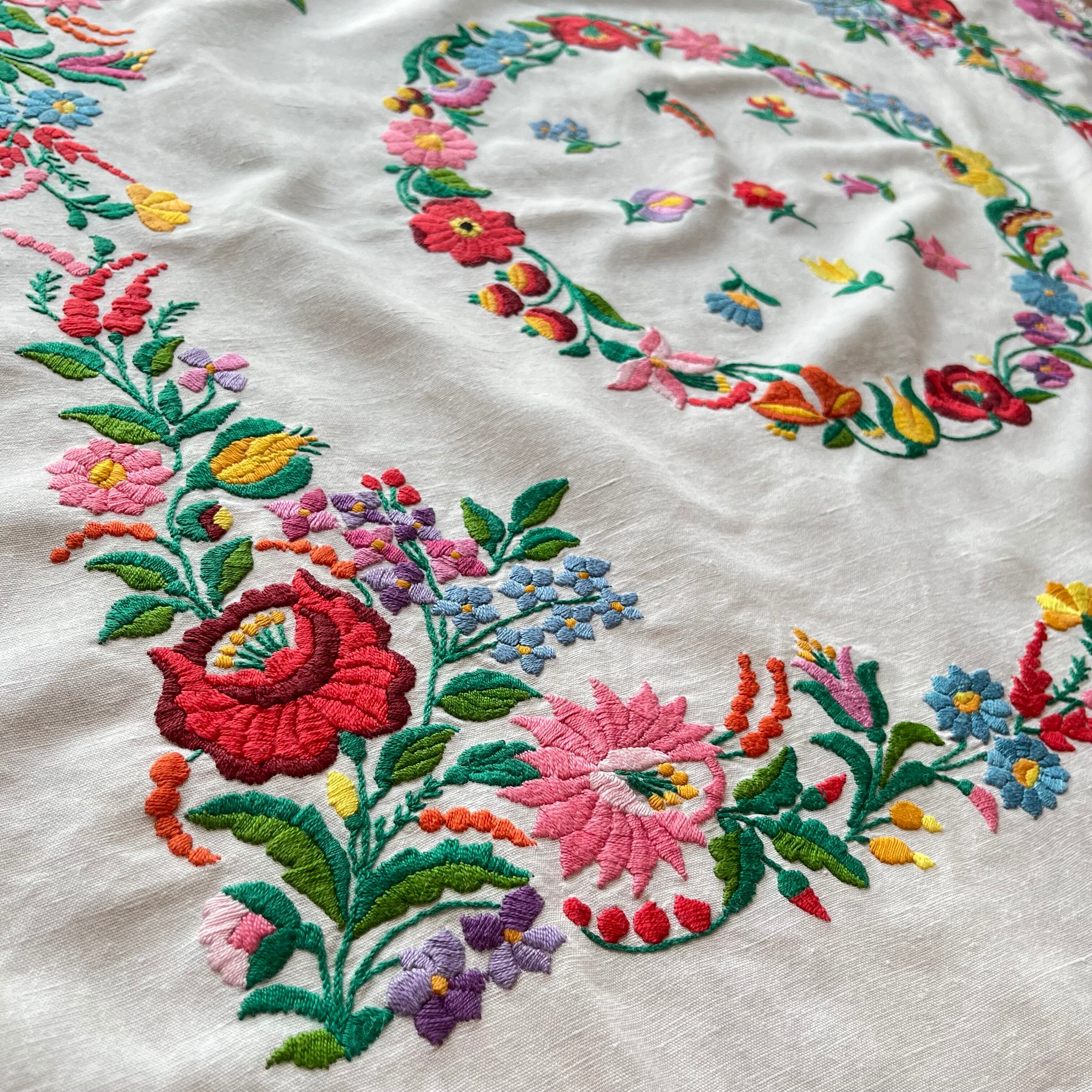 数々のカロチャ刺繍の傑作に出逢ってきた私ですが、中でもこのテーブルクロスは最高峰の作品です。
