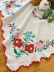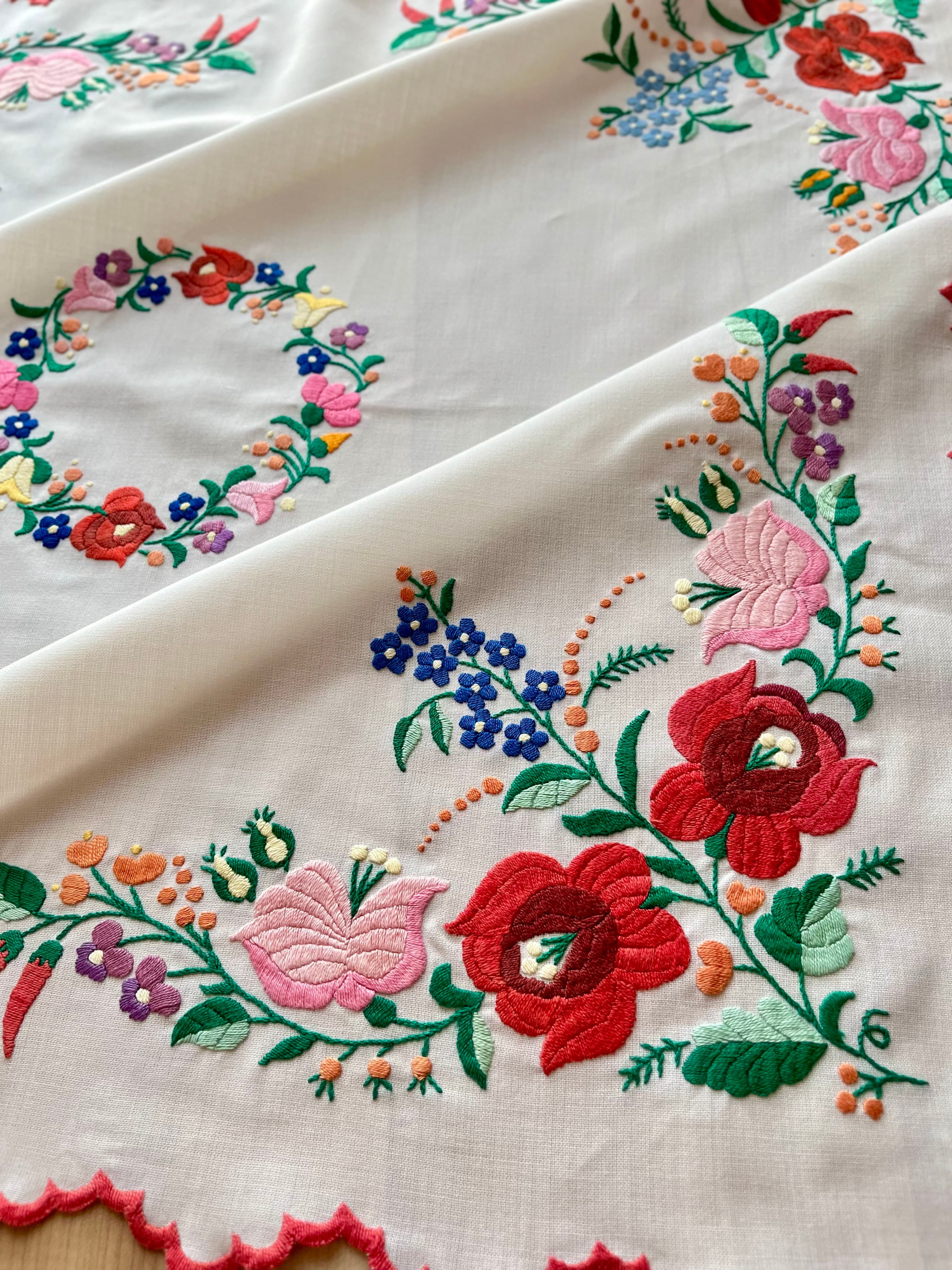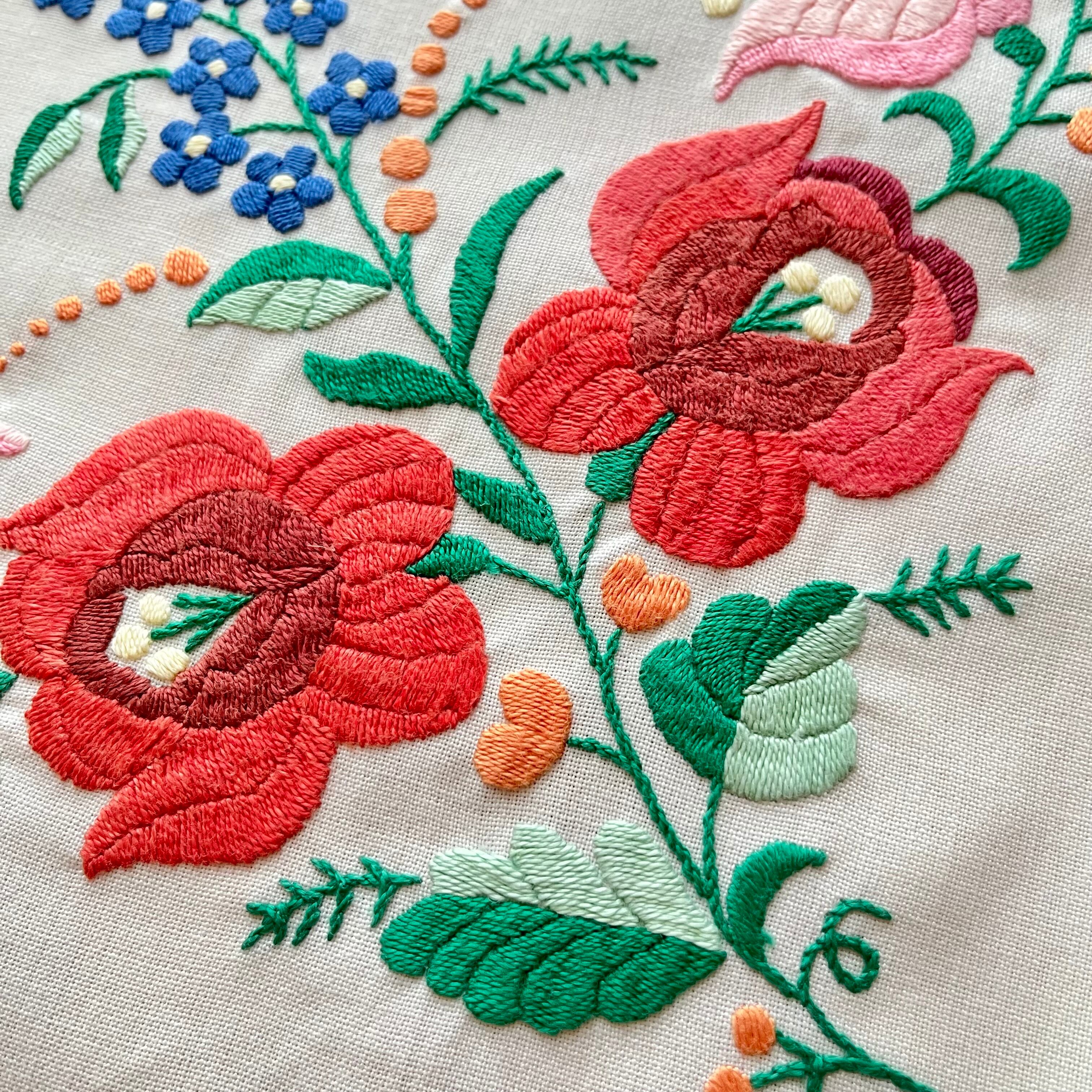 大きなお花のカロチャ刺繍のテーブルクロス ヴィンテージ カロチャ刺繍 78.5×78.5 cm