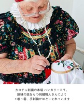 カロチャ刺繍の本場ハンガリーにて、熟練の技を持つ職人さんによって《手刺繍》がほどこされています。