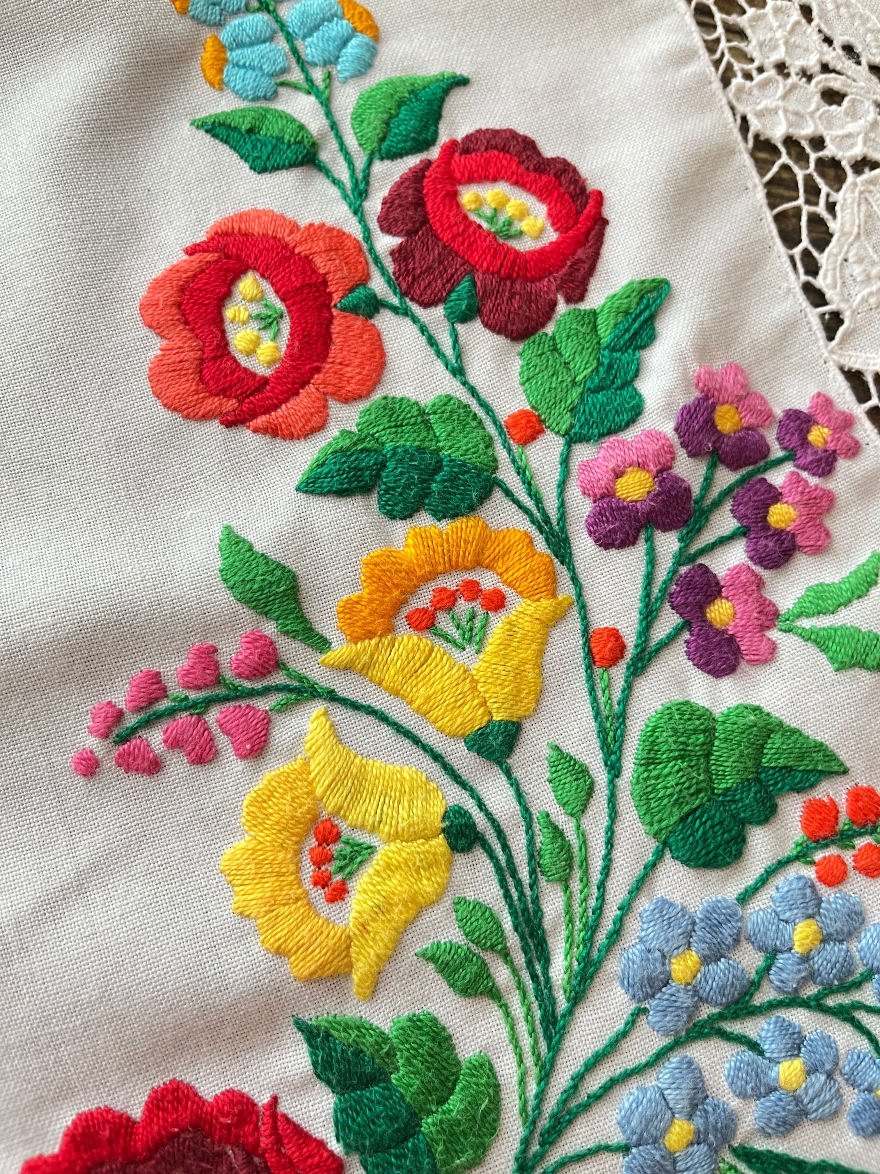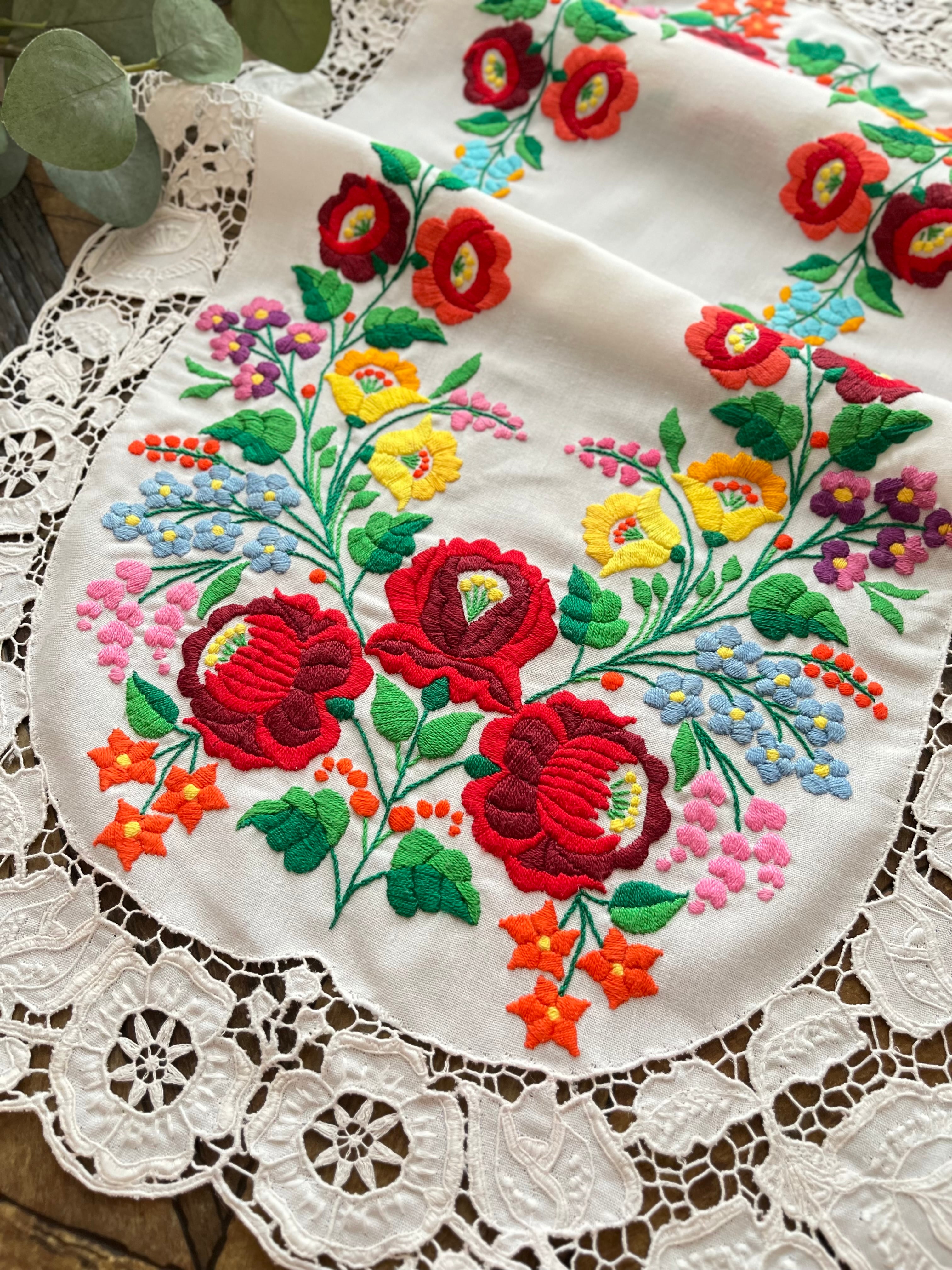 リシェリュー縁の気品あふれるテーブルランナー ヴィンテージ カロチャ刺繍 86.5×43cm