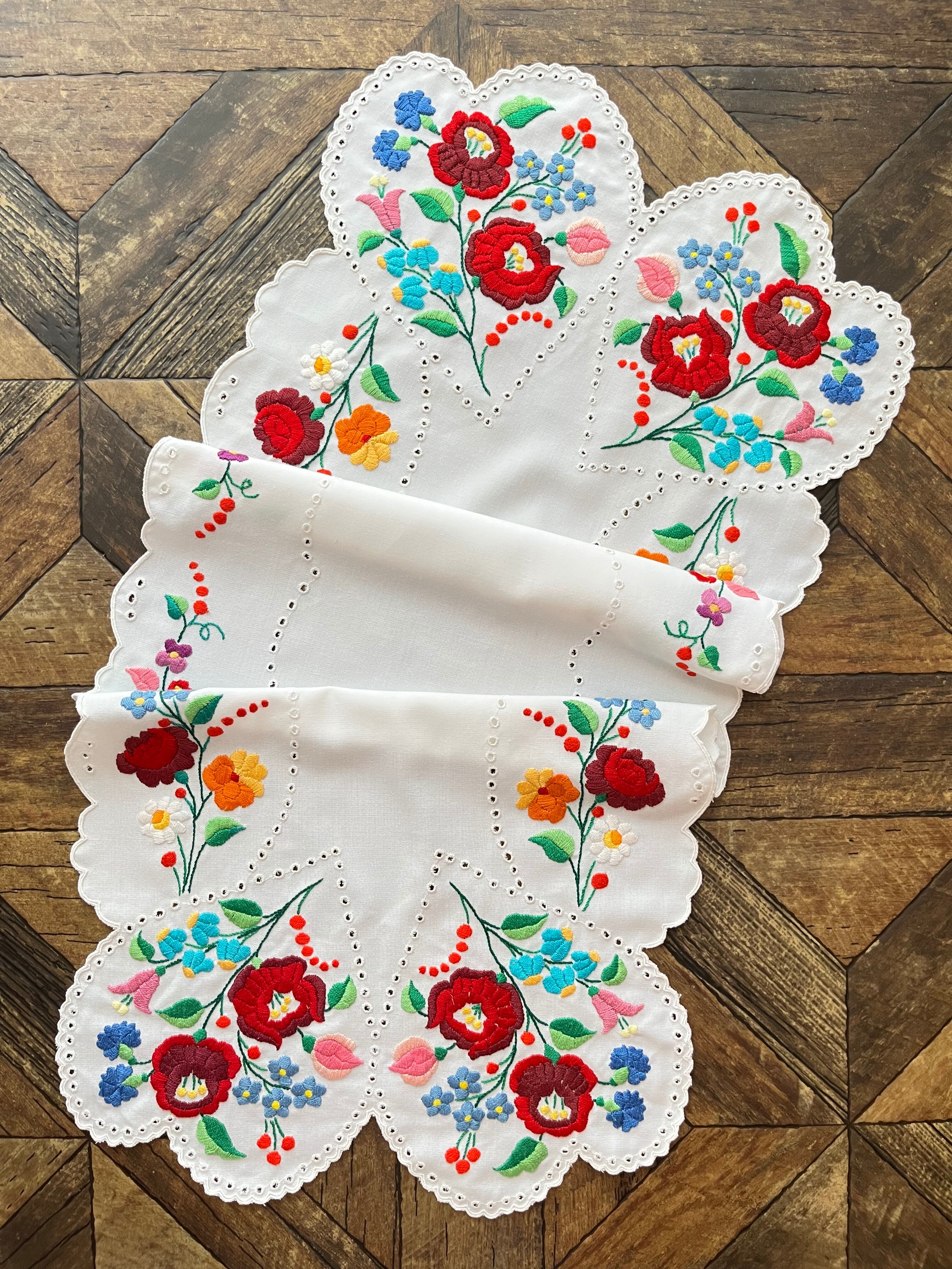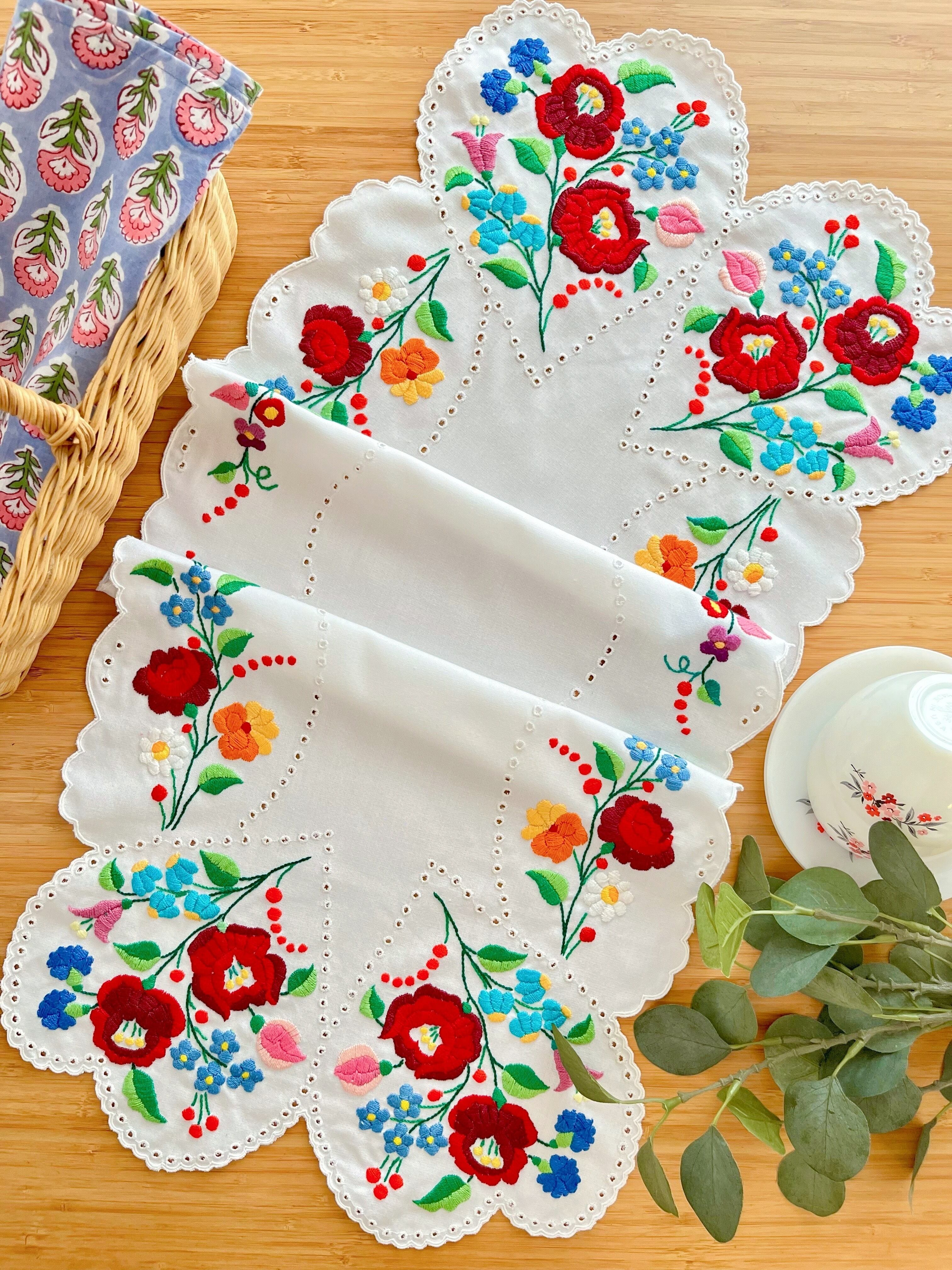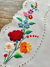 こちらは、定番の暖色系カロチャ刺繍のクロスのページです。