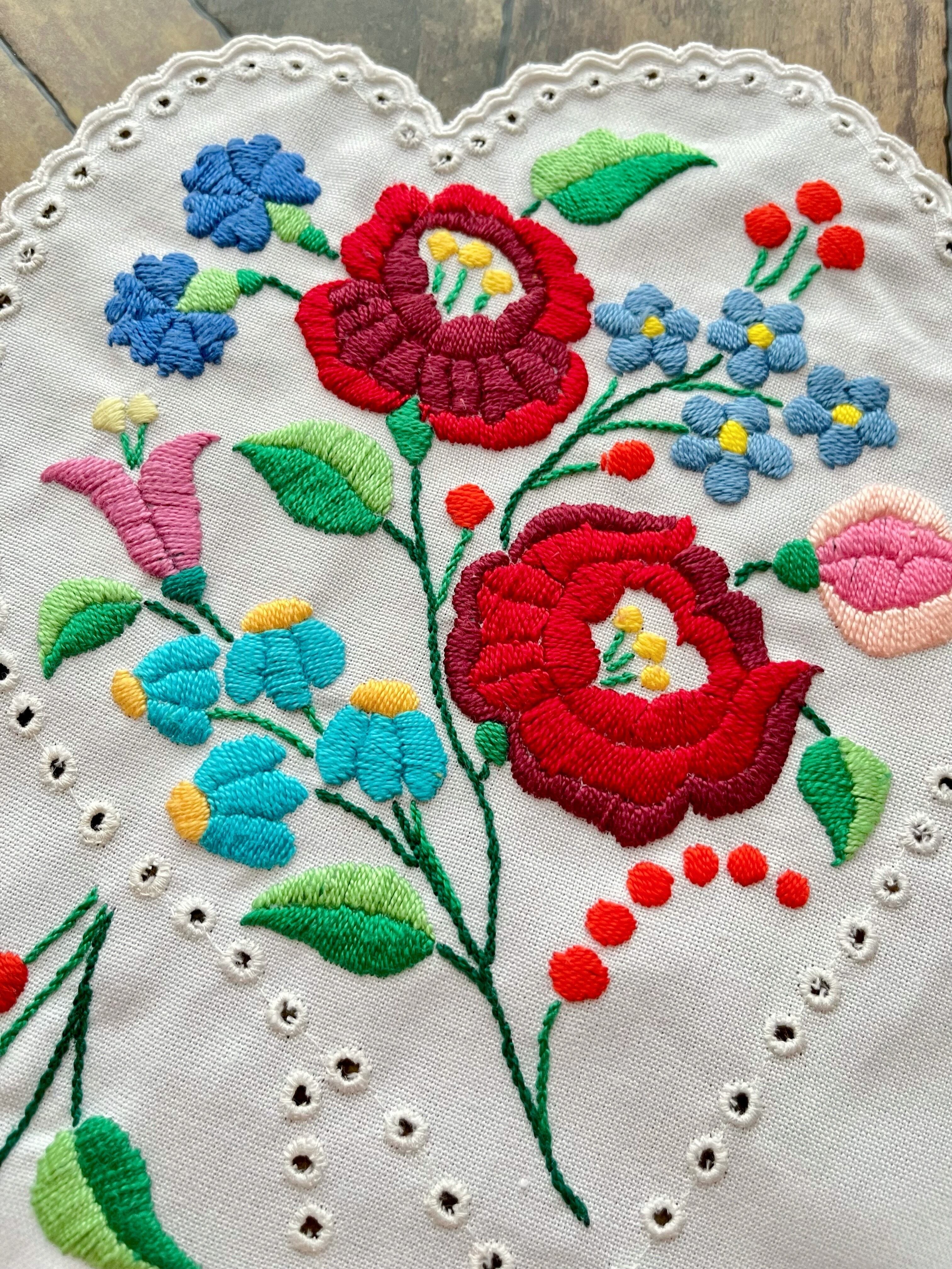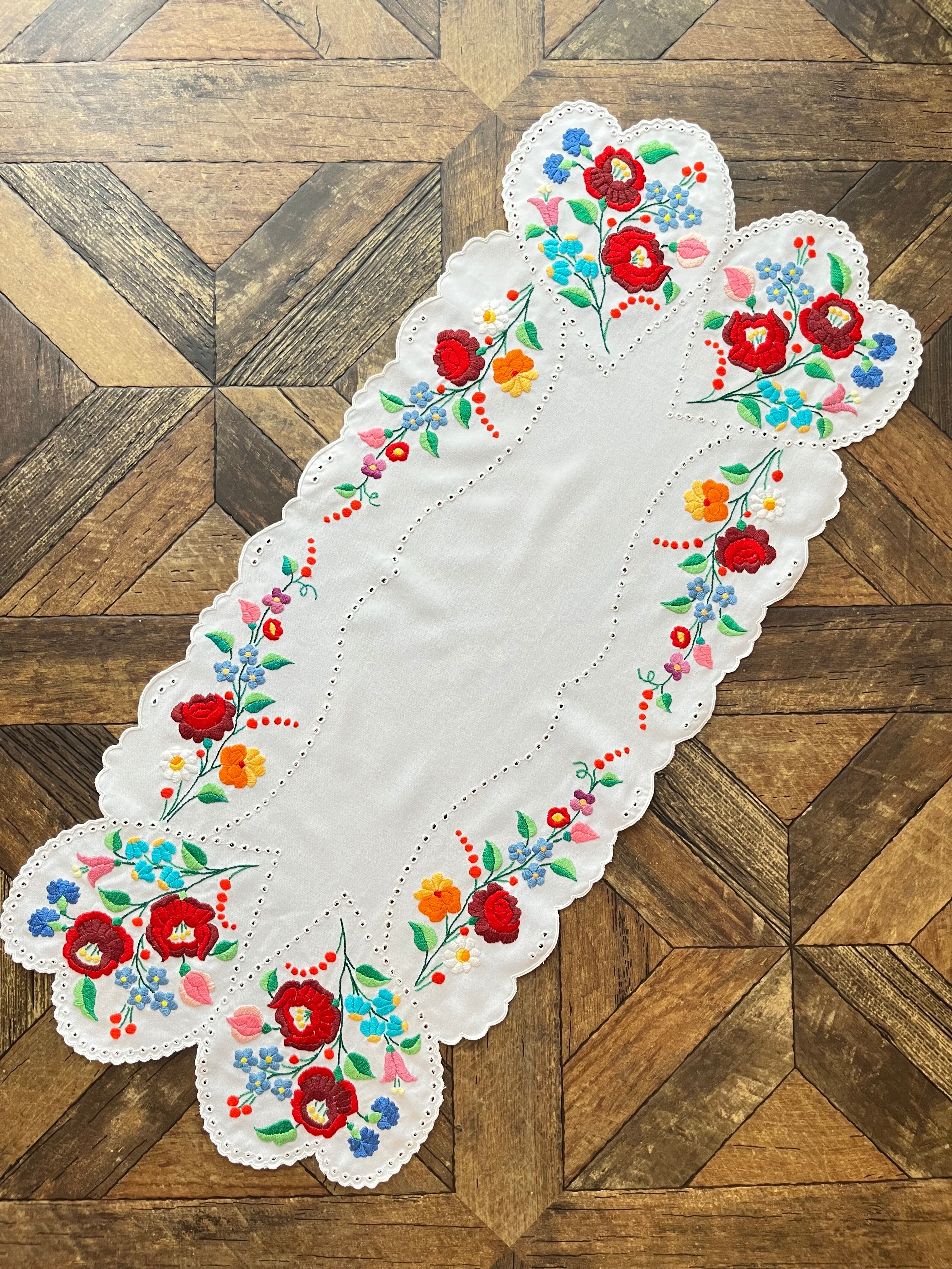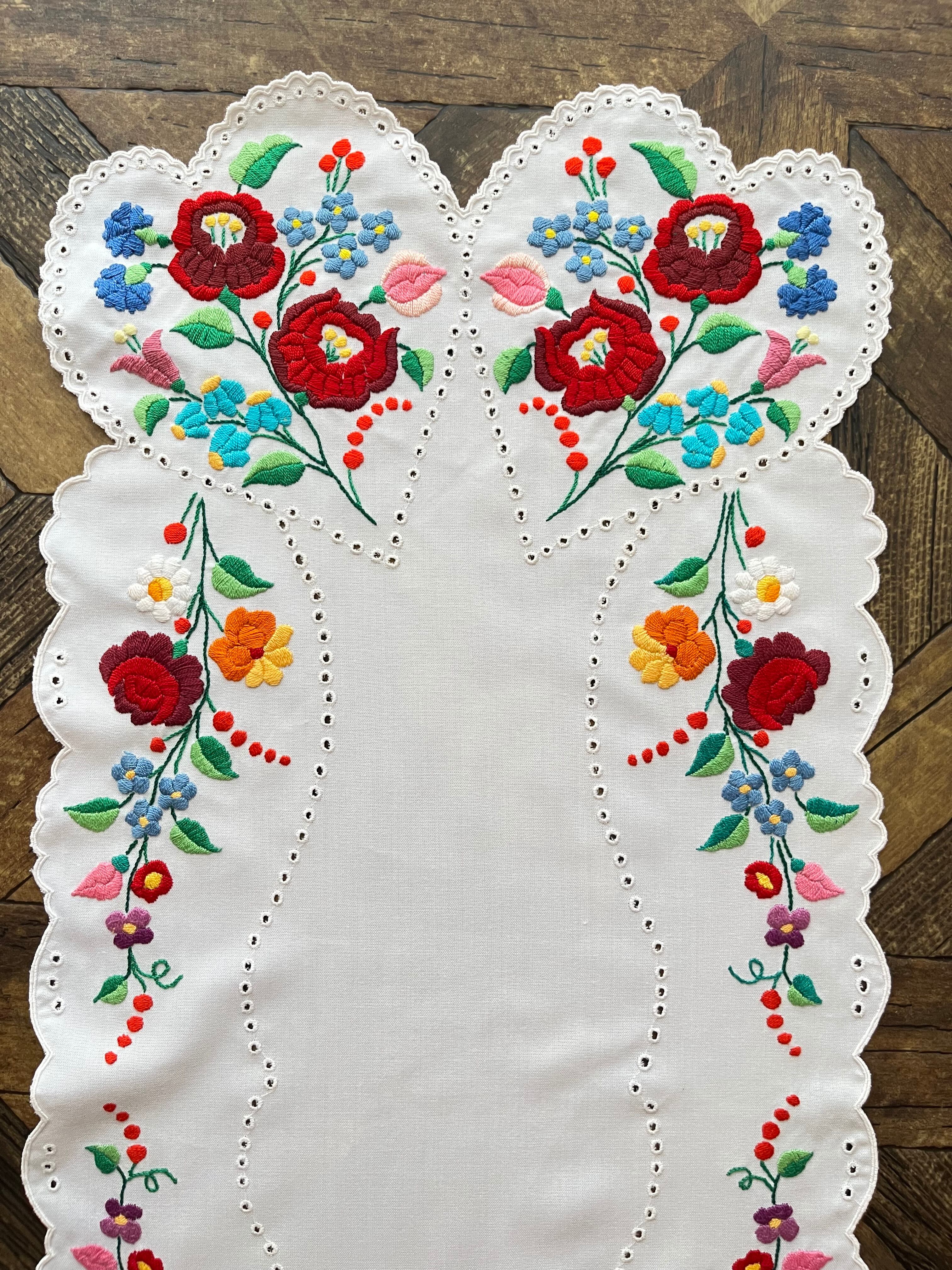 【暖色系】ハートの大きめテーブルランナー ヴィンテージ カロチャ刺繍 90×38.5cm