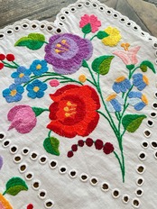 また、こちらの刺繍はふだんのカロチャ刺繍のサテンステッチとは異なる技法で刺繍されております。写真にてステッチもご覧くださいね