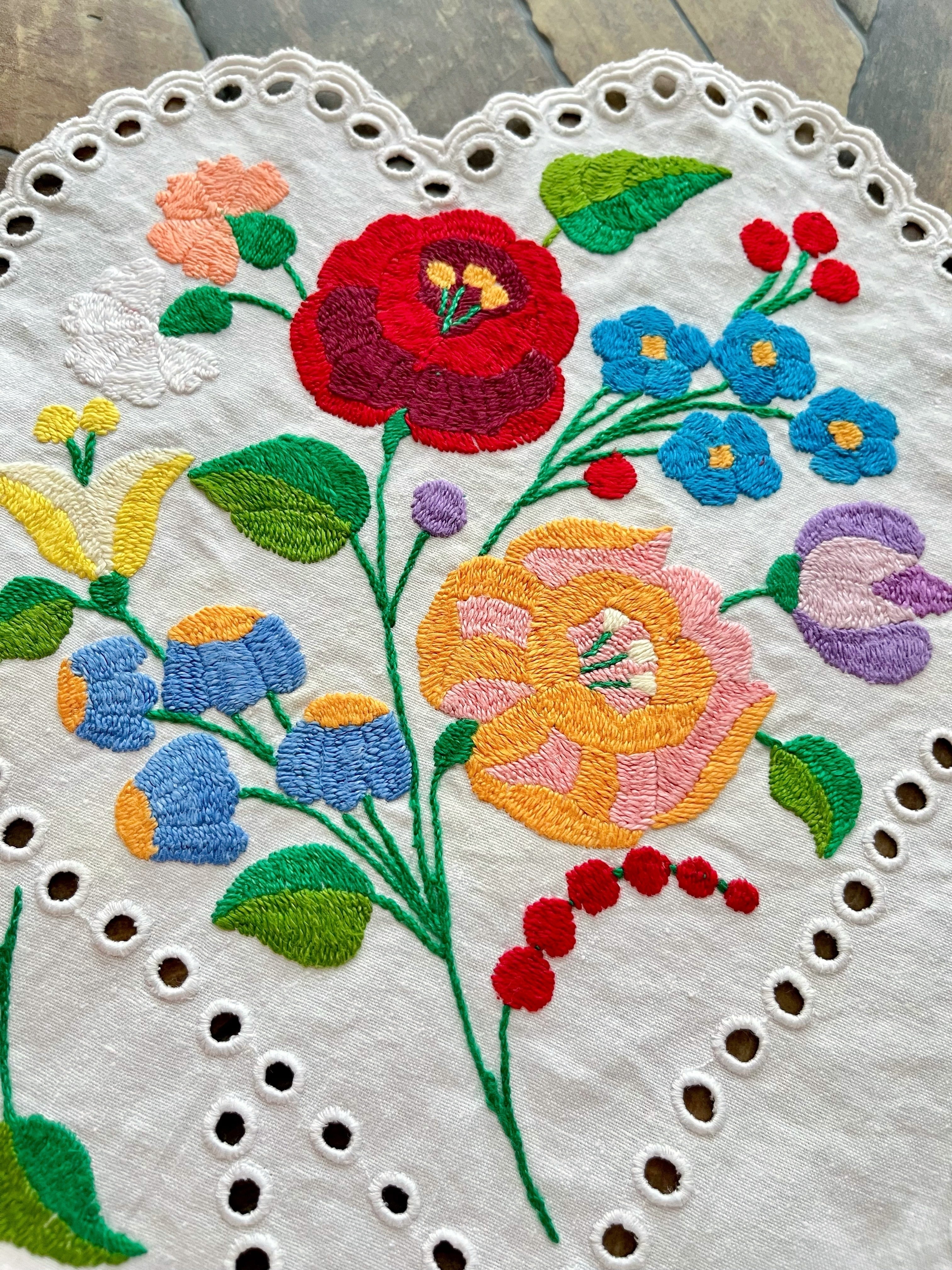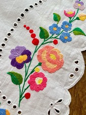 【ミックスカラー】ハートの大きめテーブルランナー ヴィンテージ ハンガリー刺繍 100.5×42 cm
