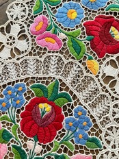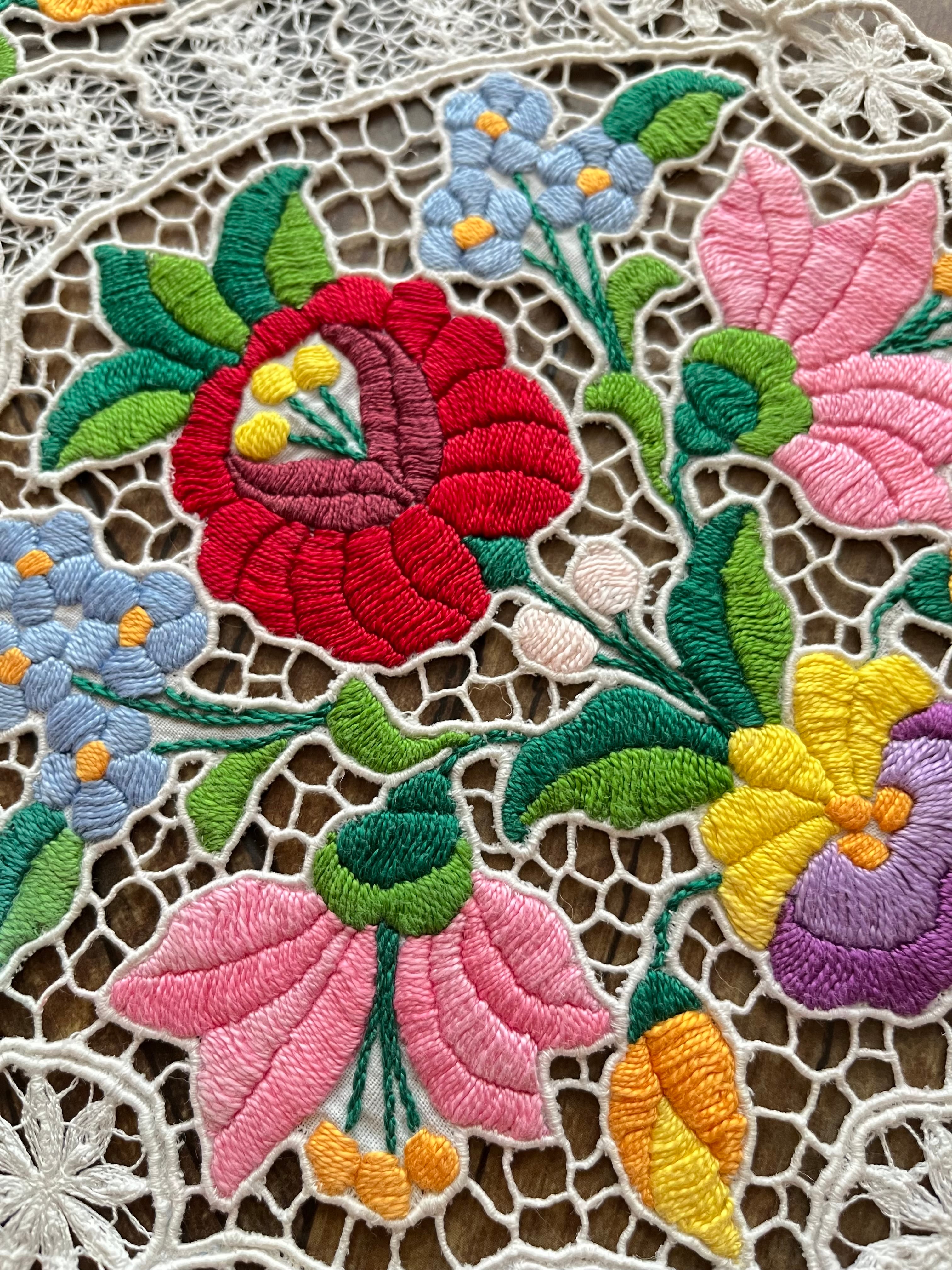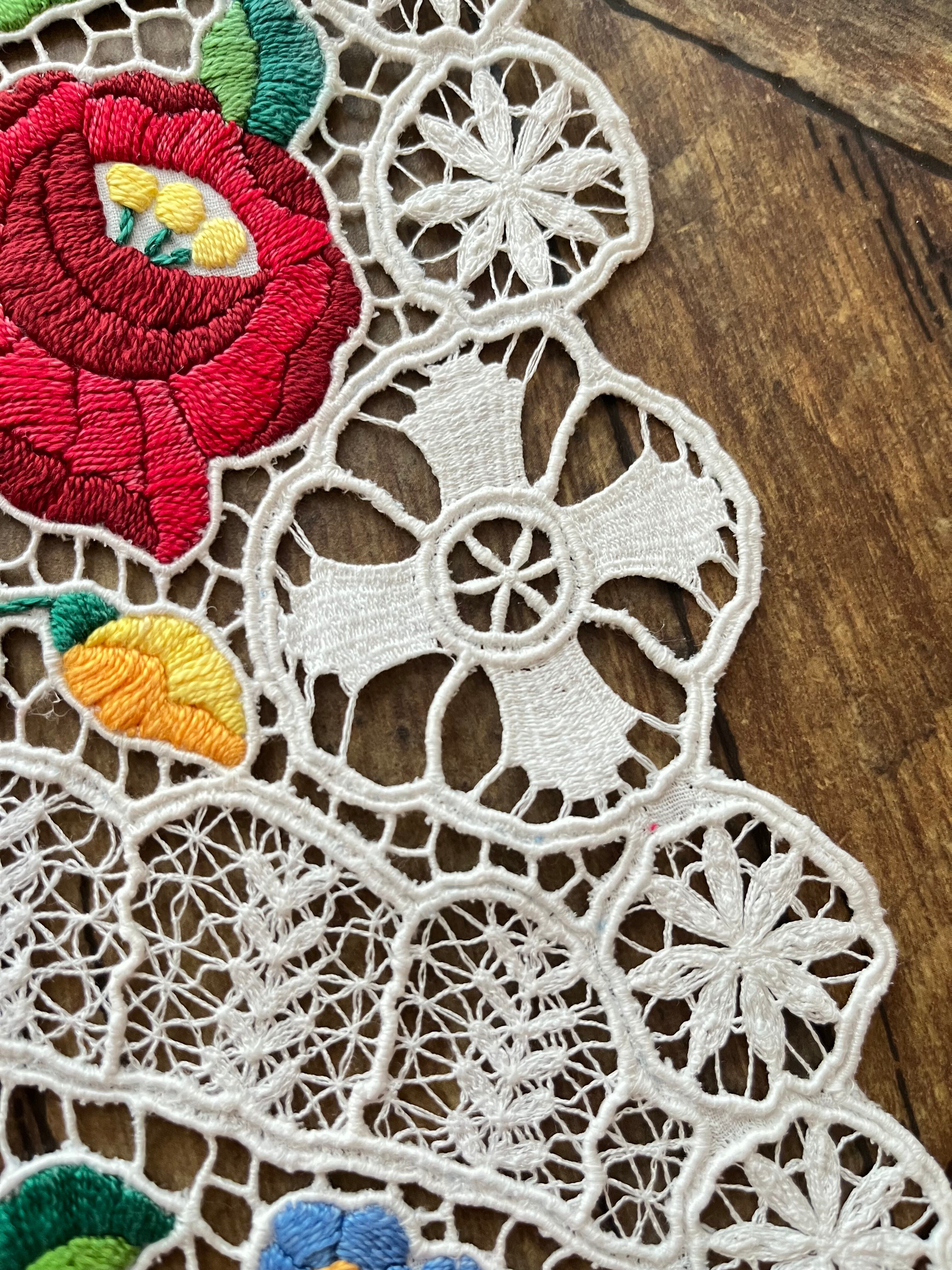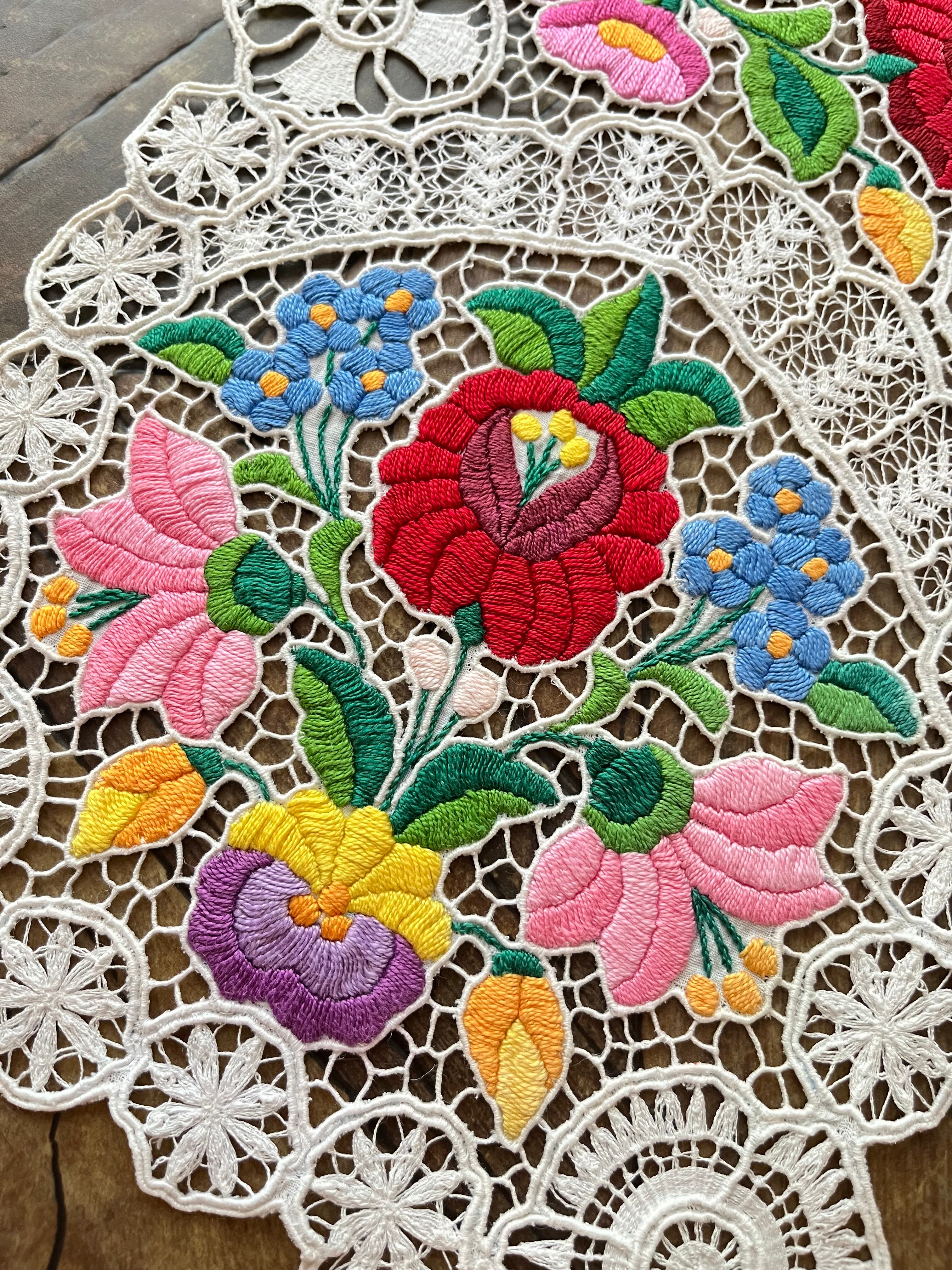 レース調のカロチャ刺繍、カロチャリシェリューのテーブルランナー。