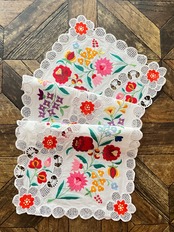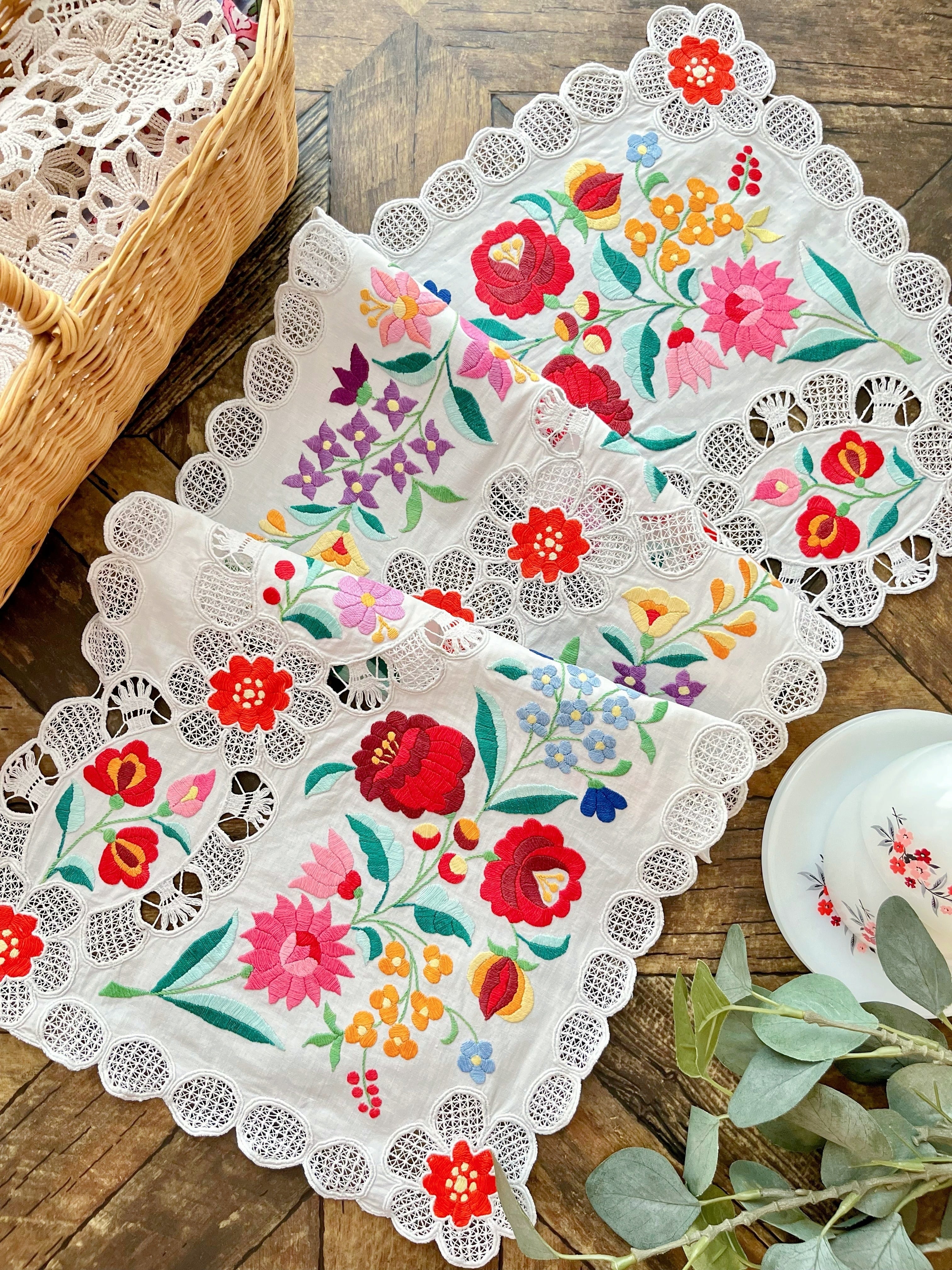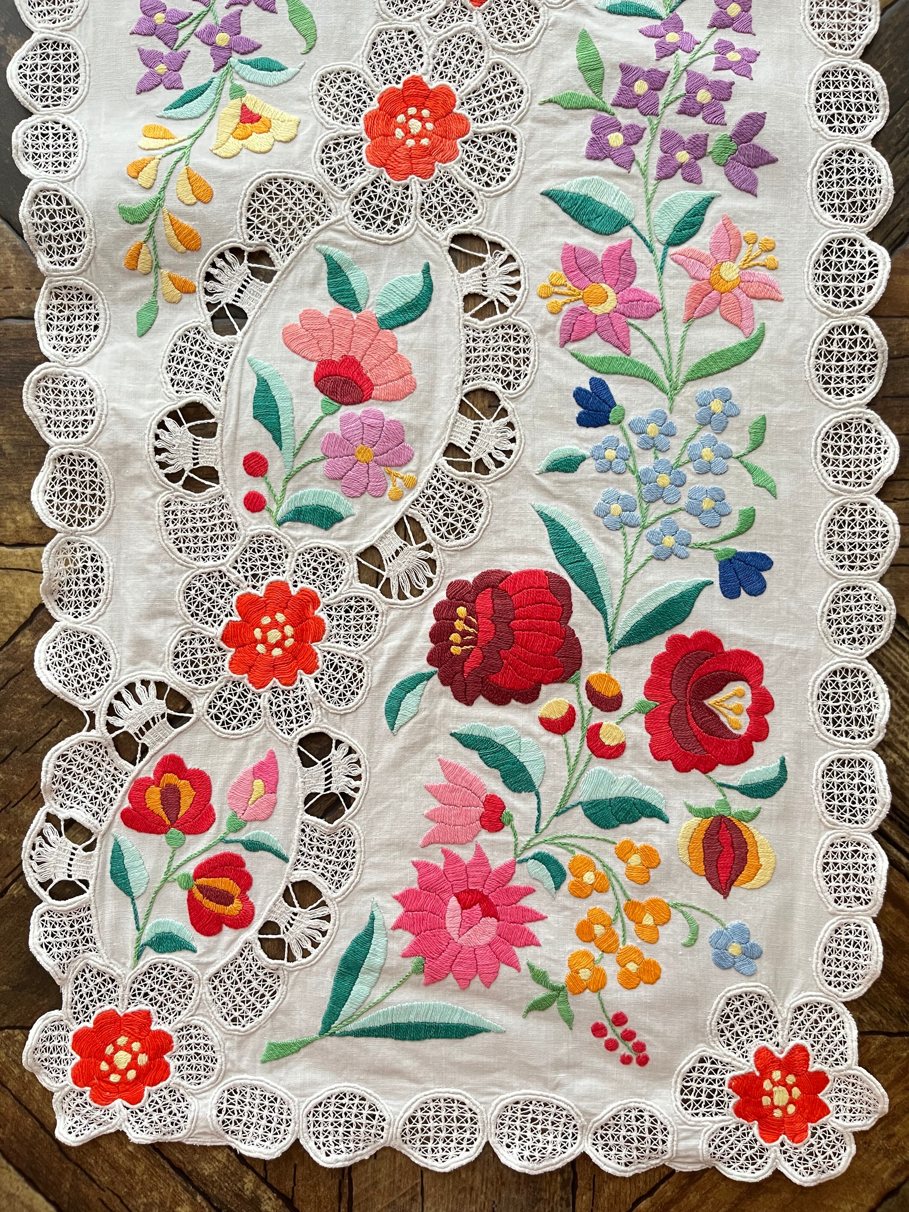 レース調のカロチャ刺繍、カロチャリシェリューのテーブルランナー。