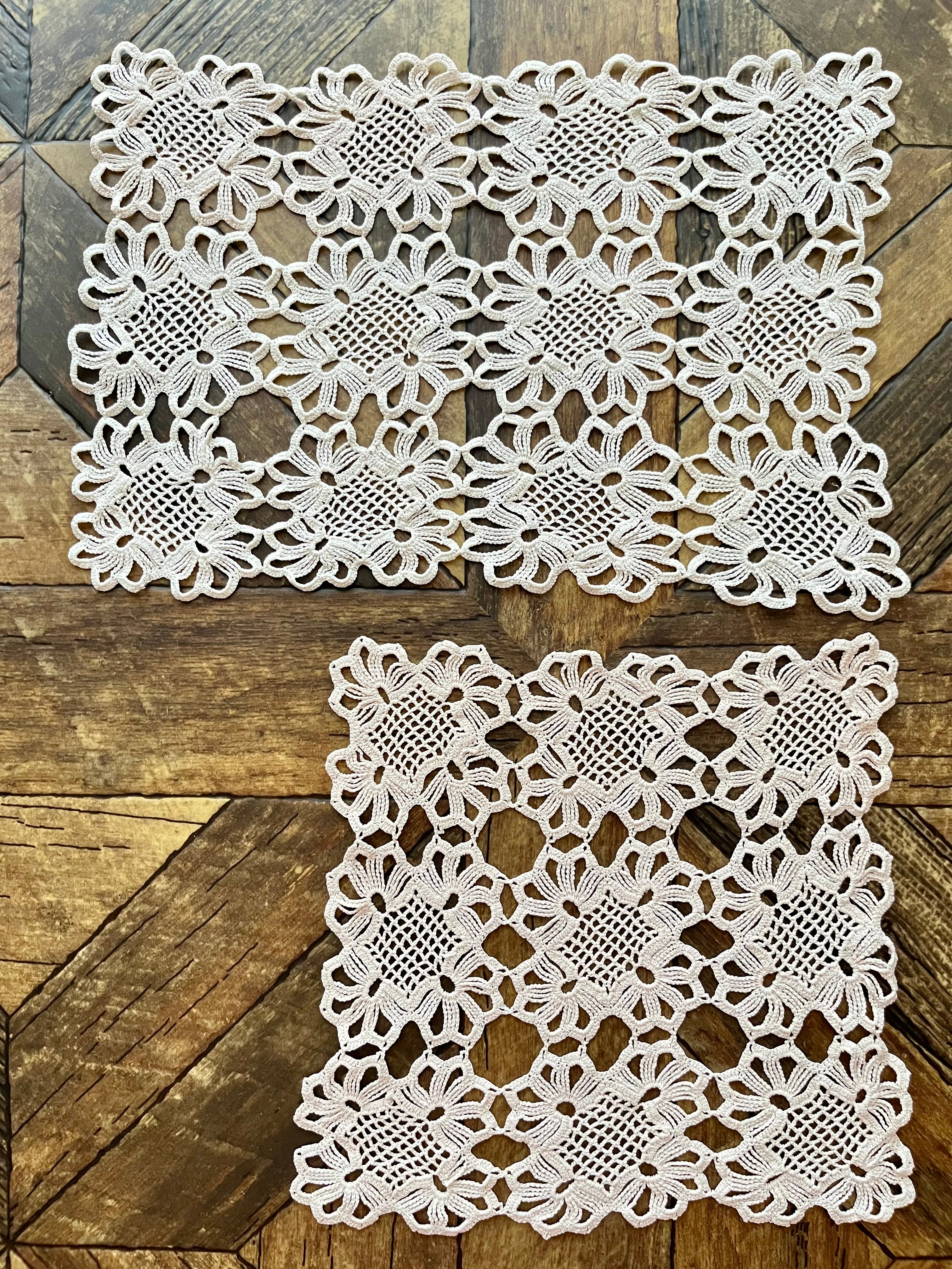 ベージュのクロシェ編みドイリー 2枚セット ヴィンテージ