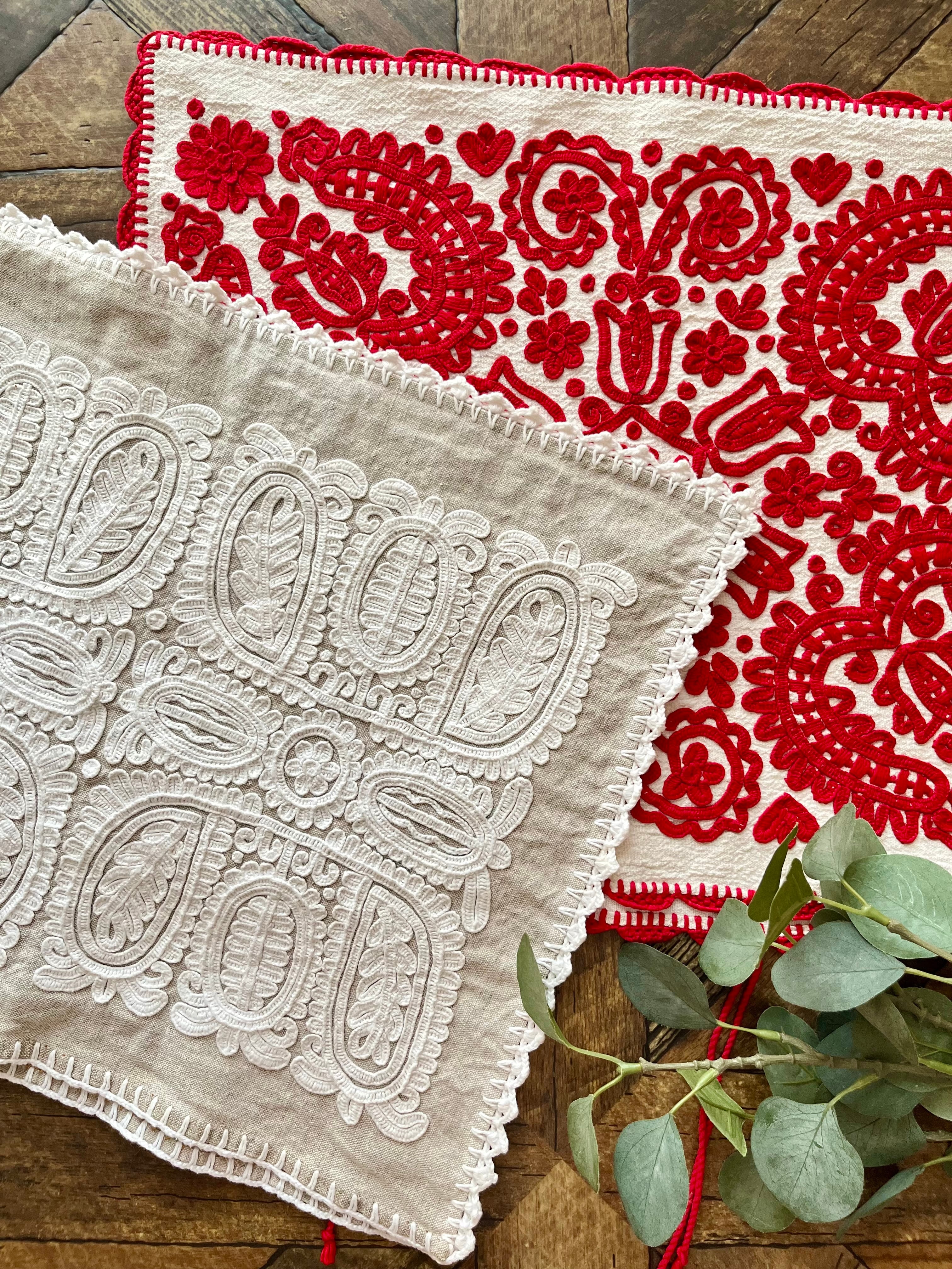 赤いイーラーショシュ刺繍のピローカバー 54×42cm ヴィンテージ トランシルヴァニア