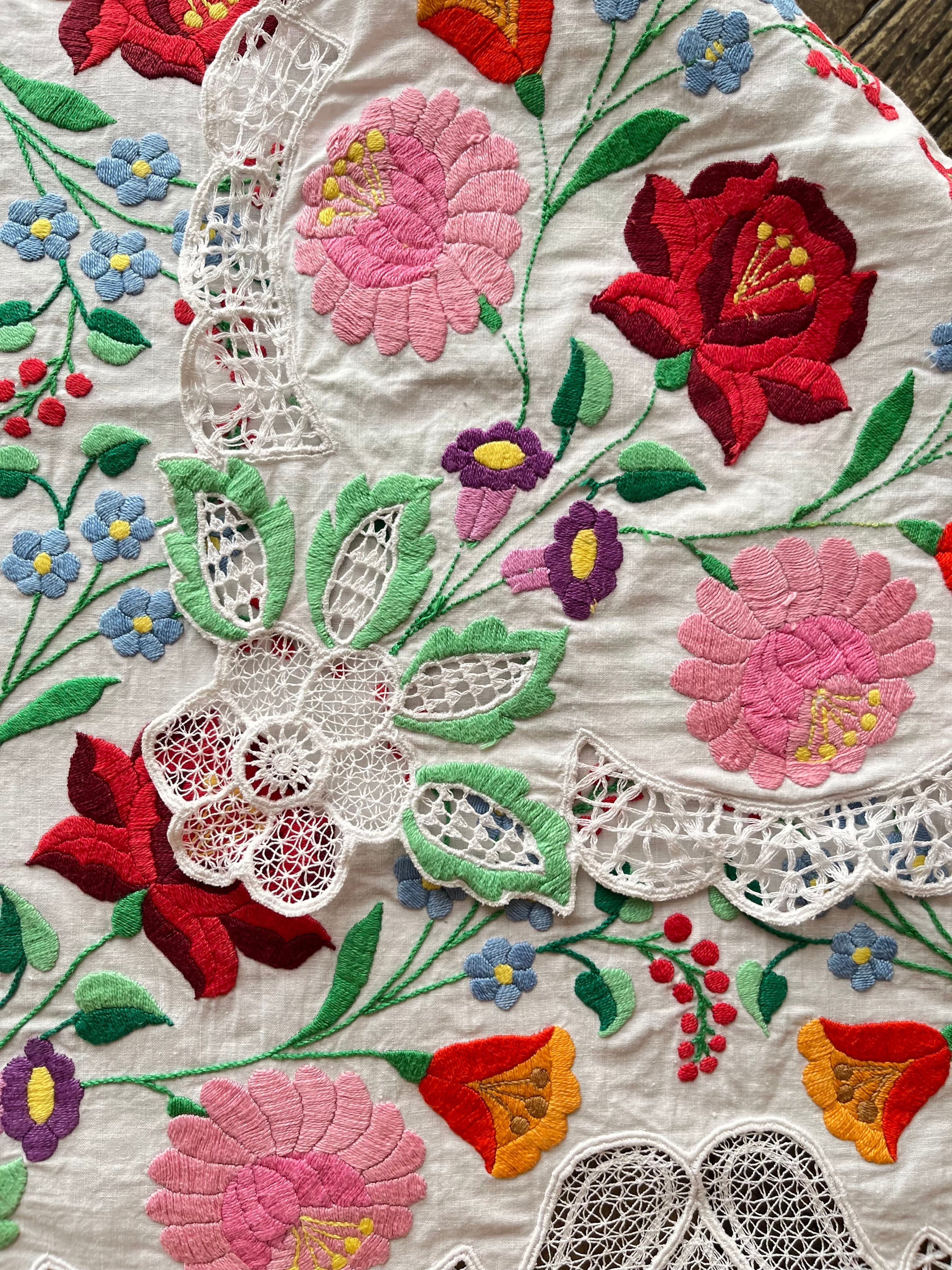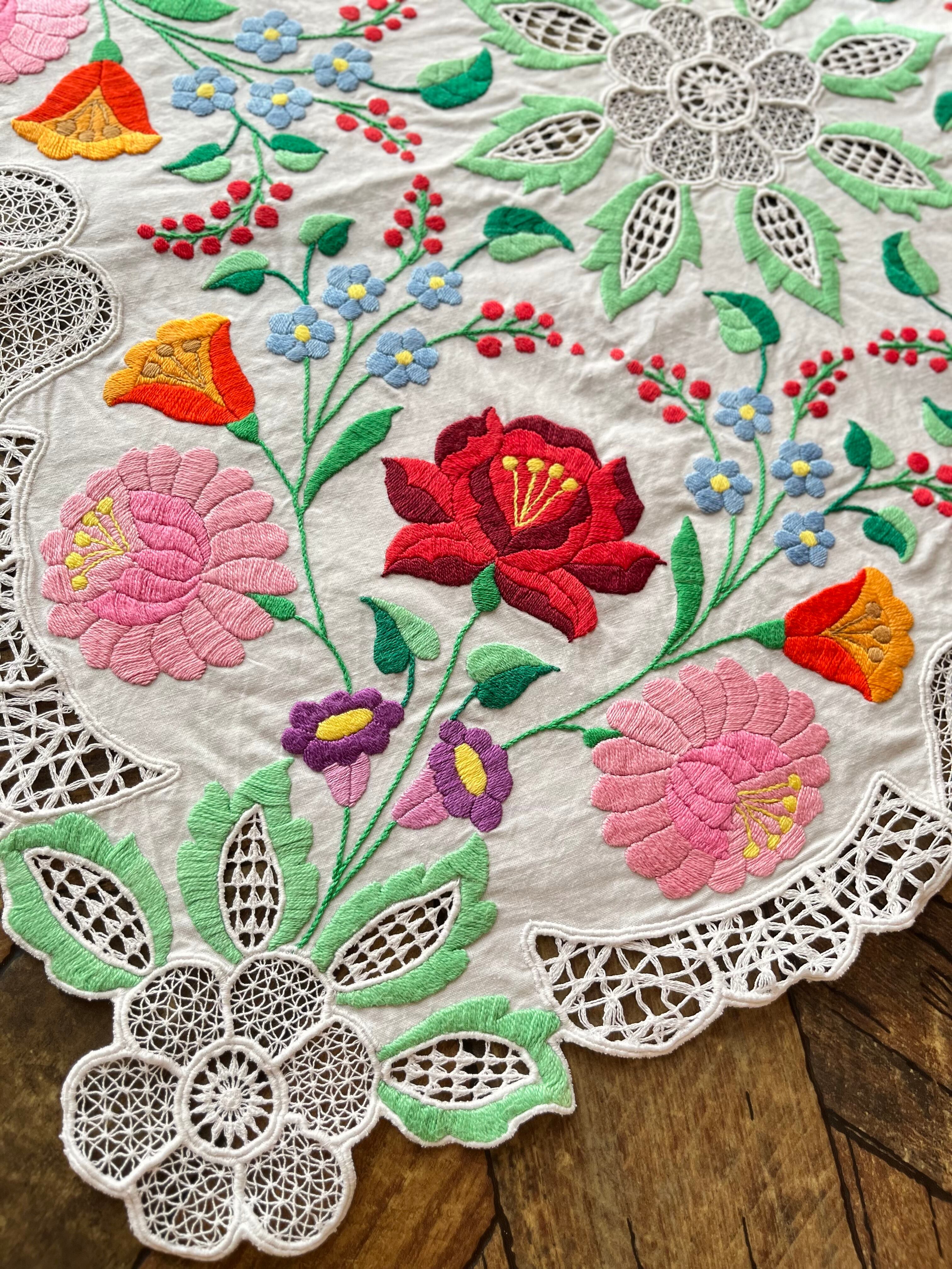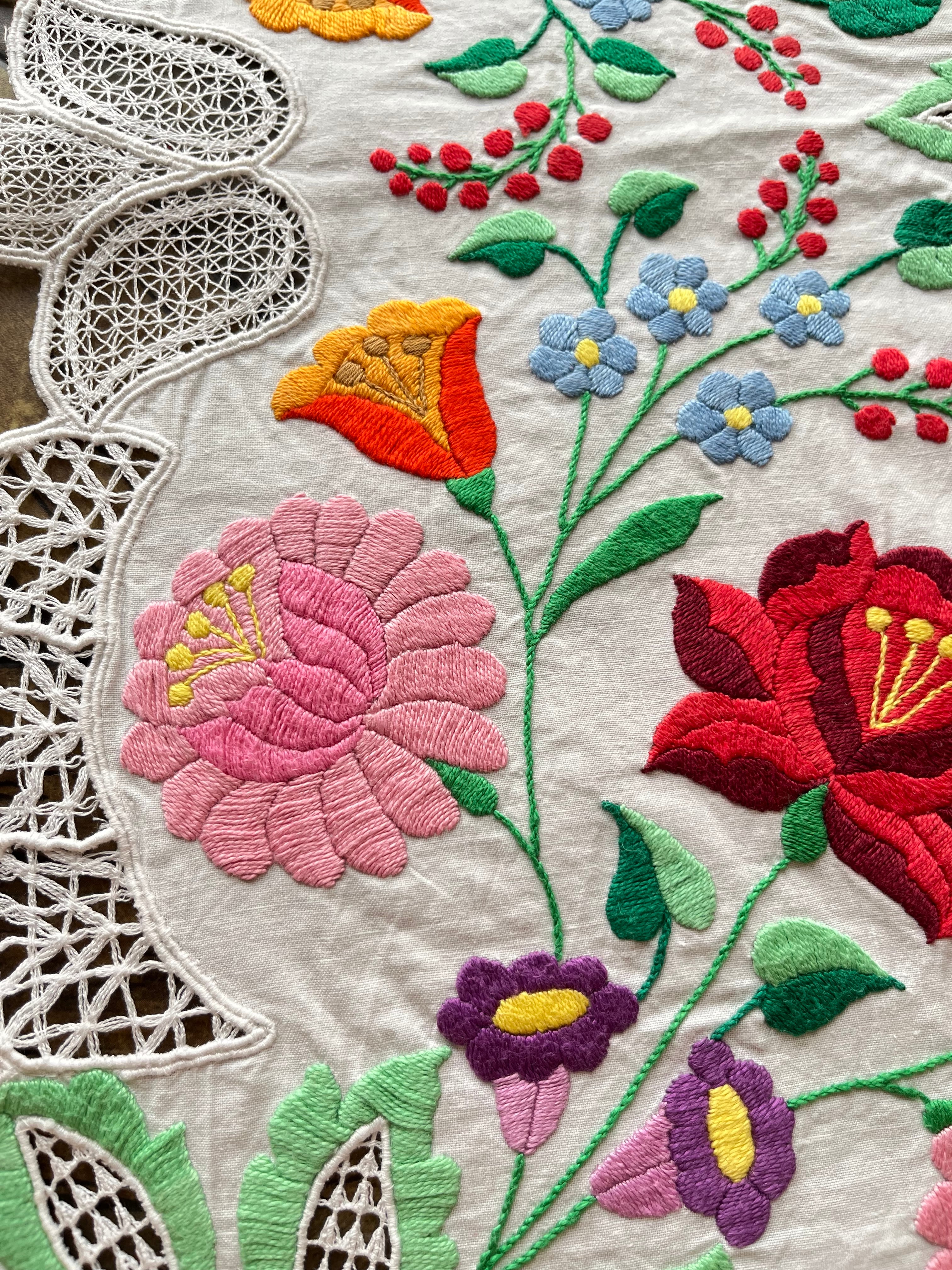 布いっぱいに咲き誇るカロチャ刺繍とリシェリューレースに毎日心がウキウキすること間違いなしです♩