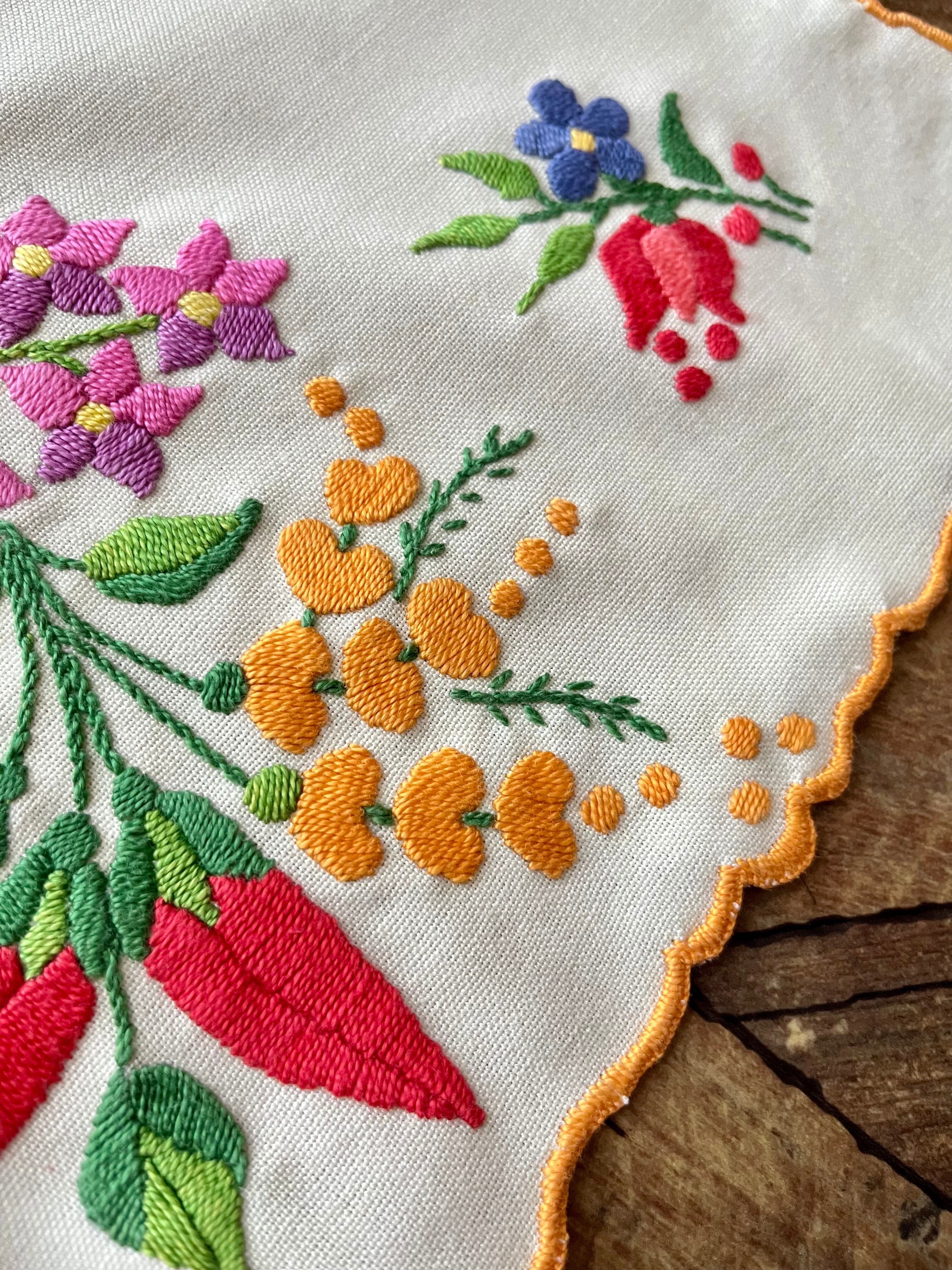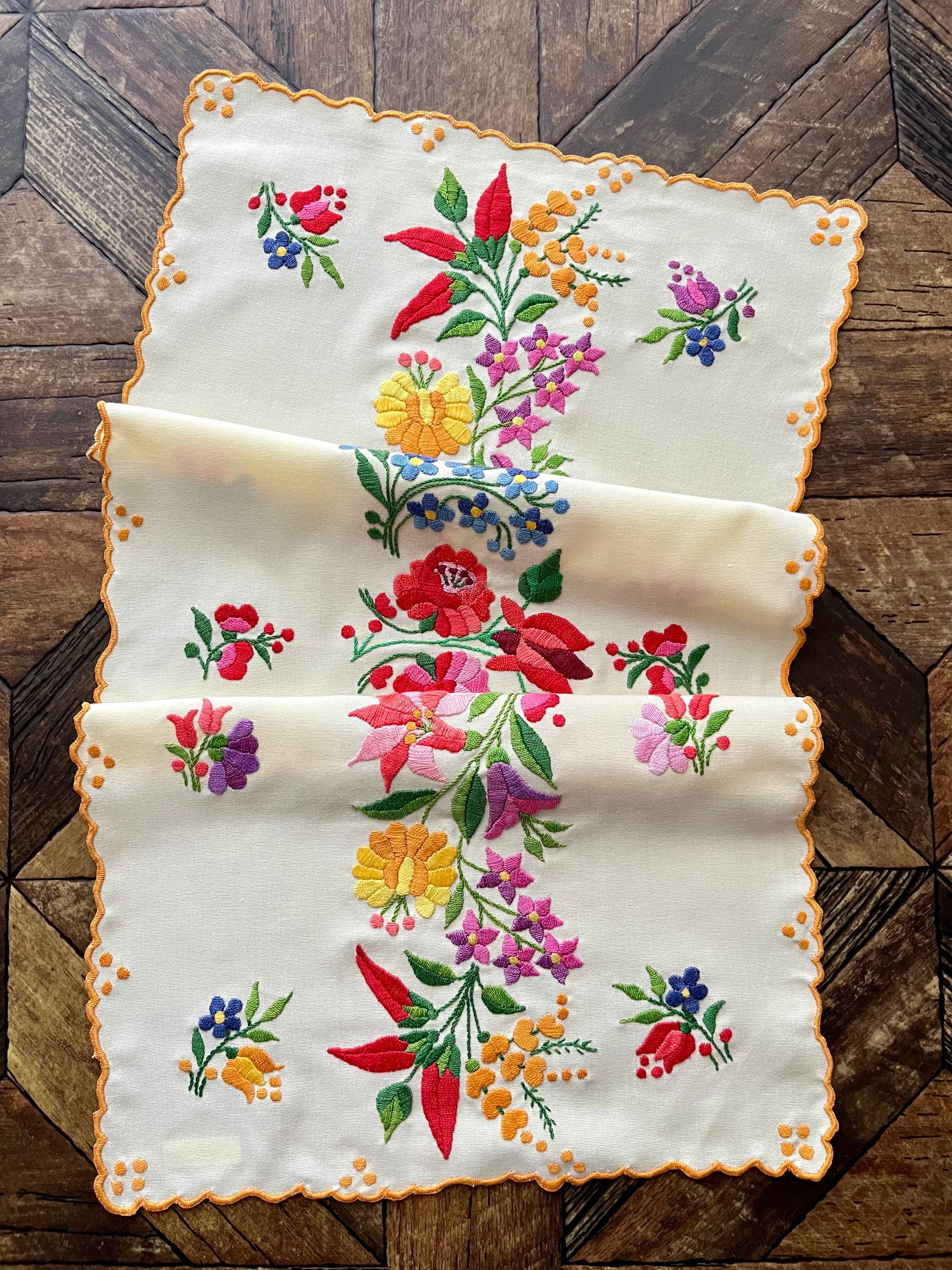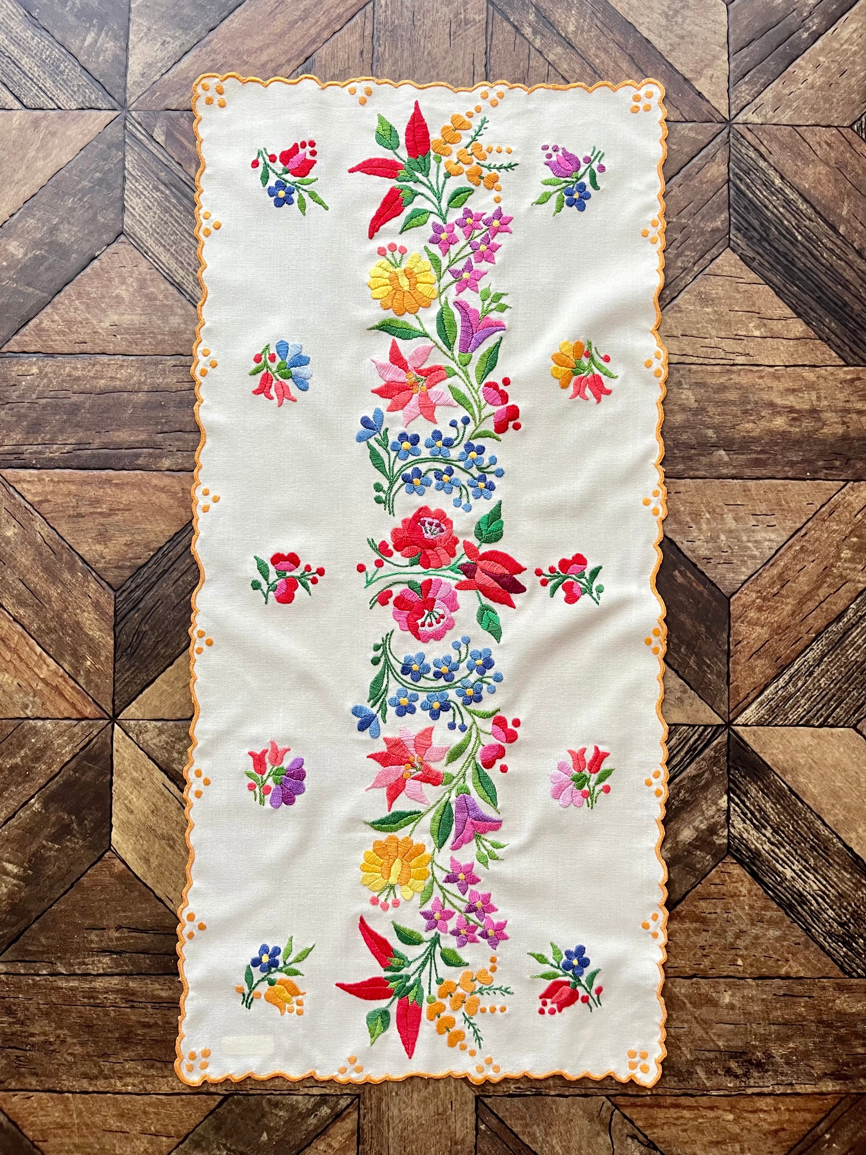 イエローのみっちり刺繍テーブルランナー ヴィンテージ カロチャ刺繍 75×36 cm
