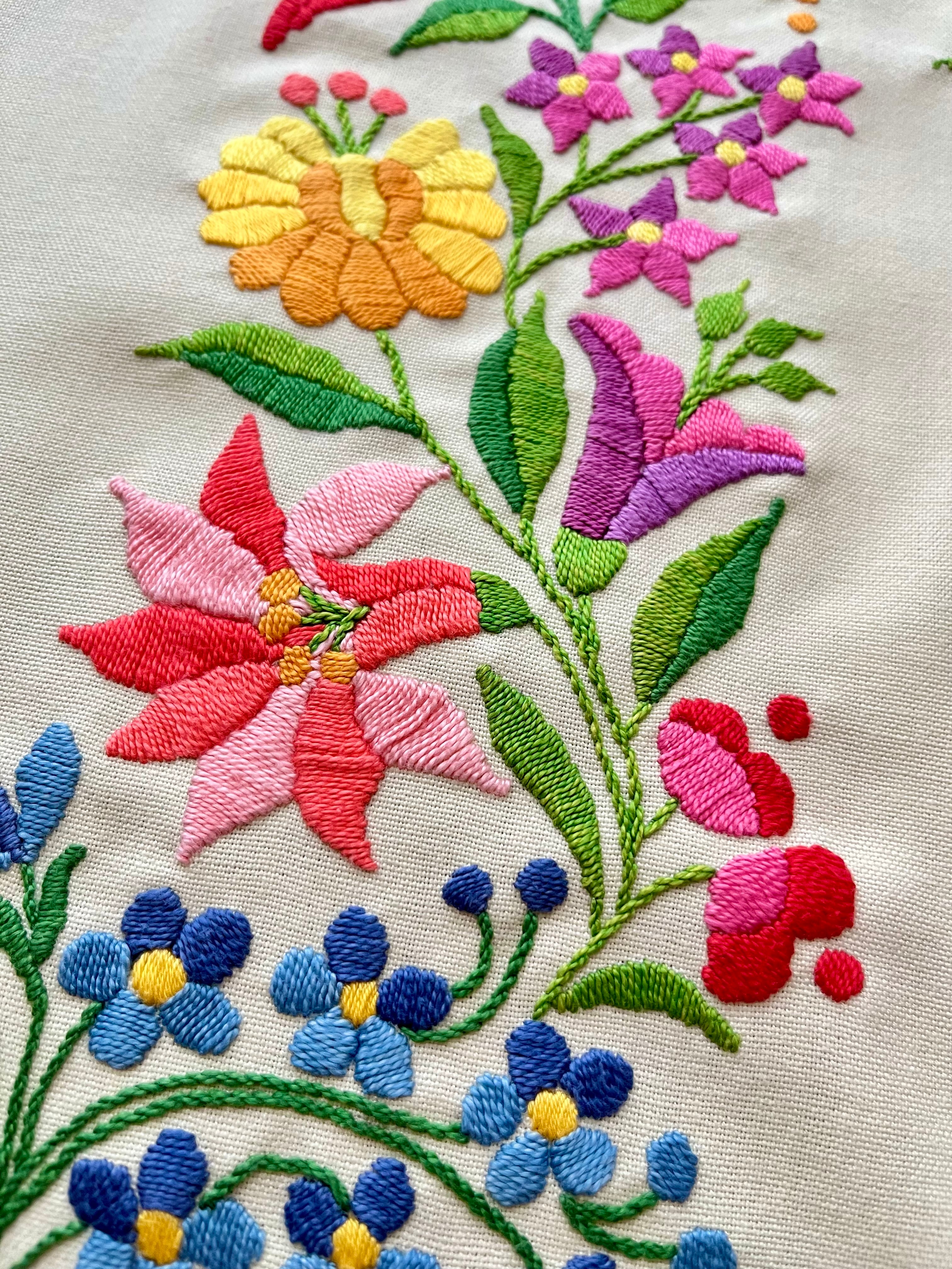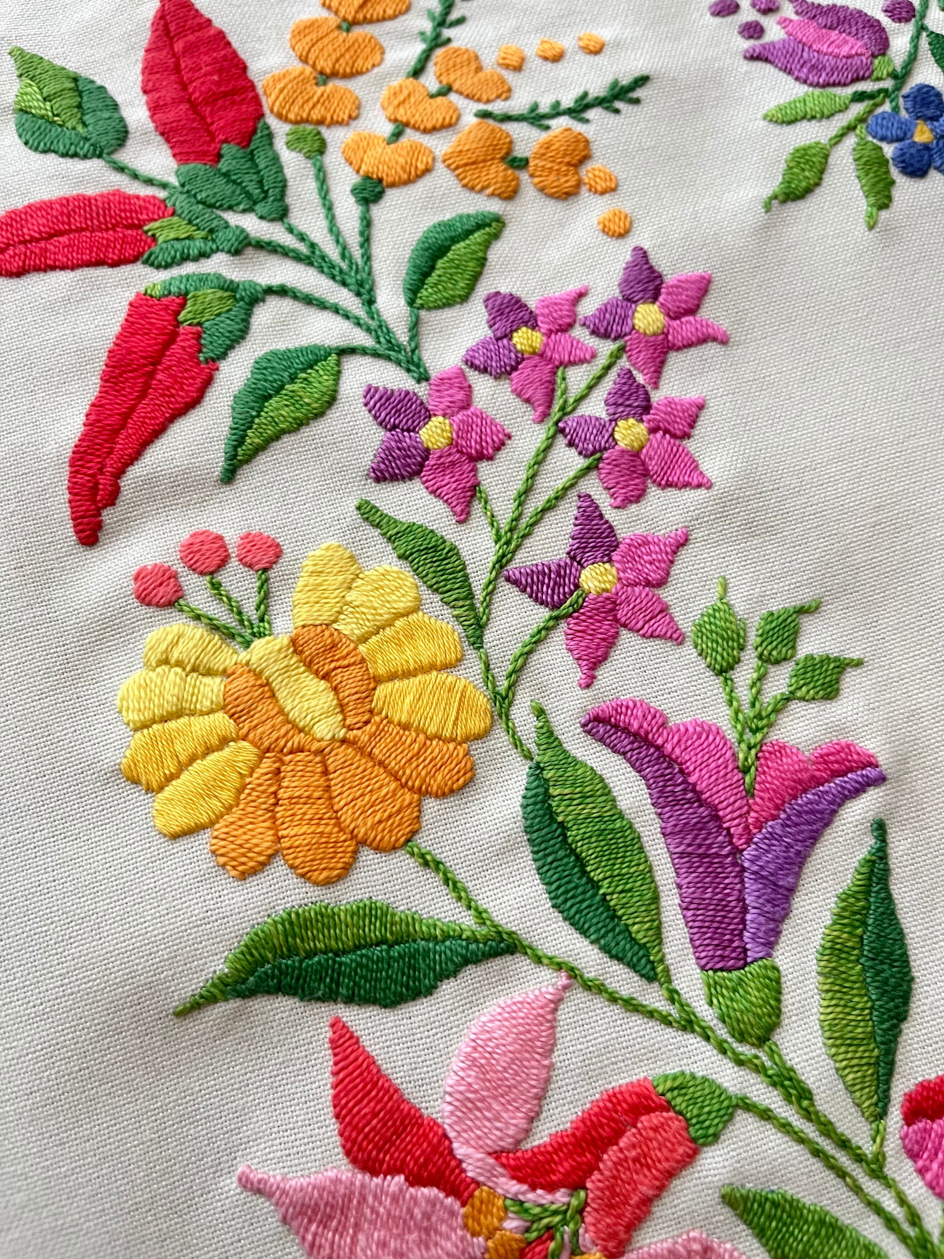 カロチャ刺繍に使用される糸(特に赤)は、稀に色移りすることがあります。