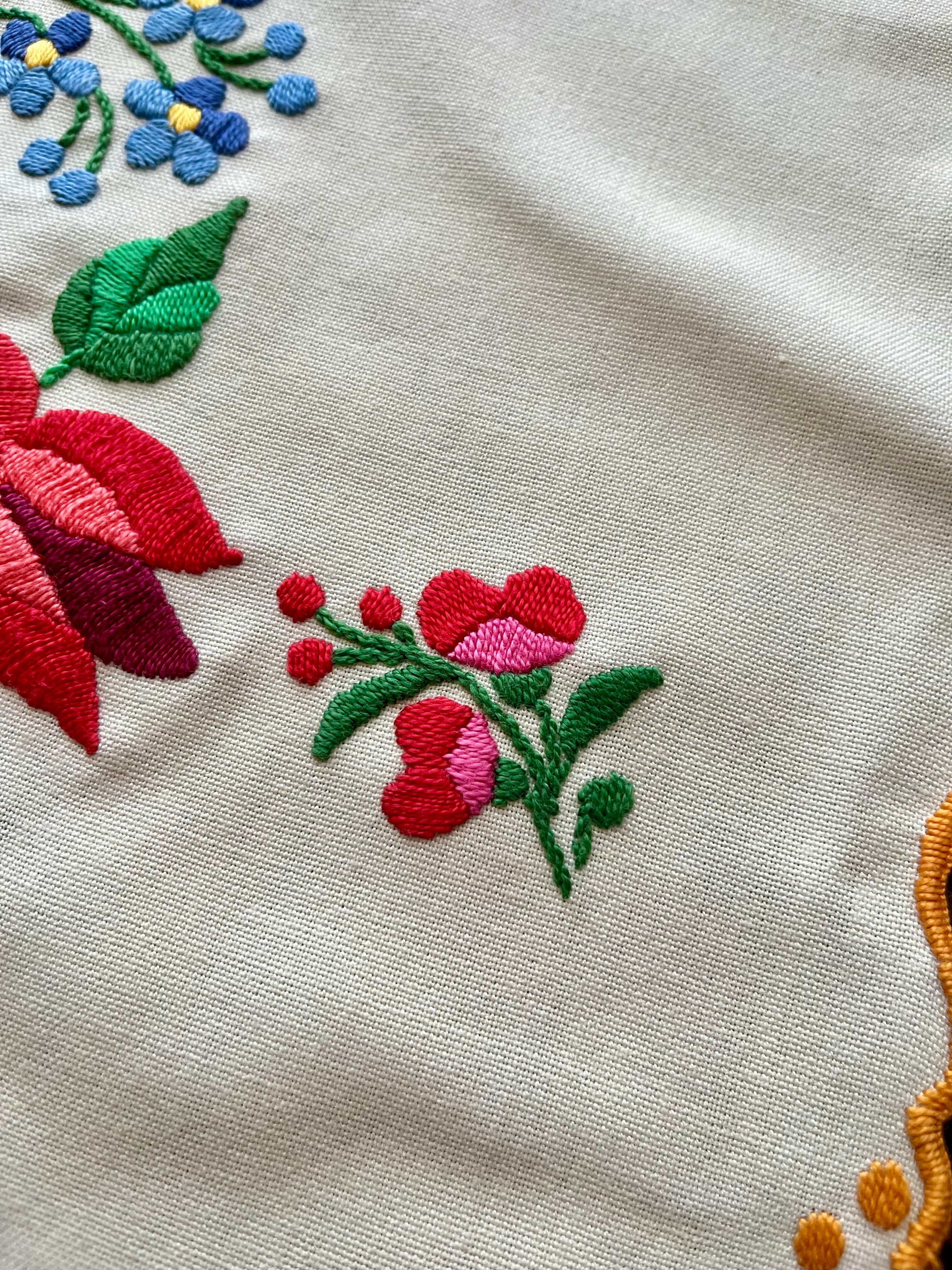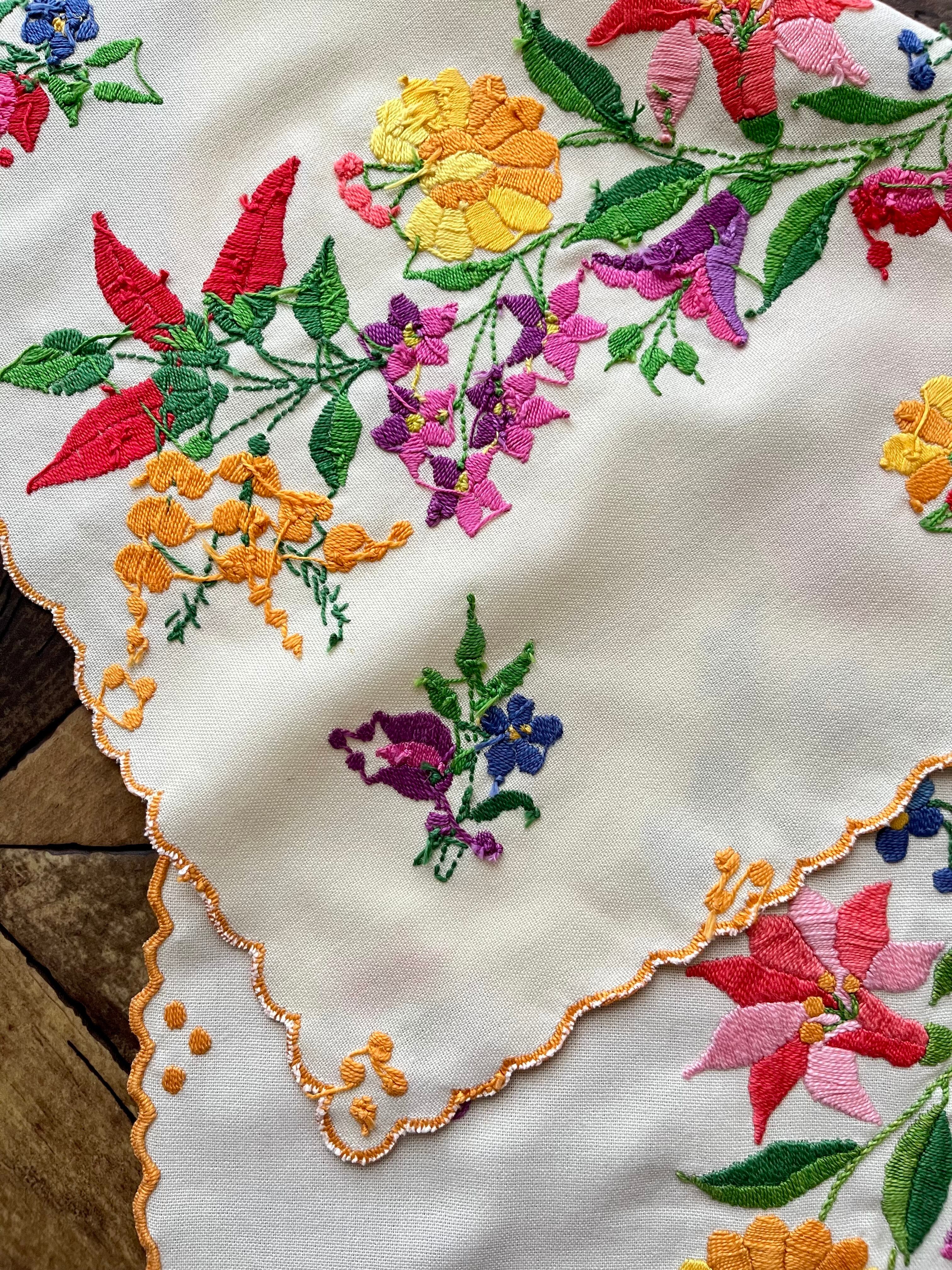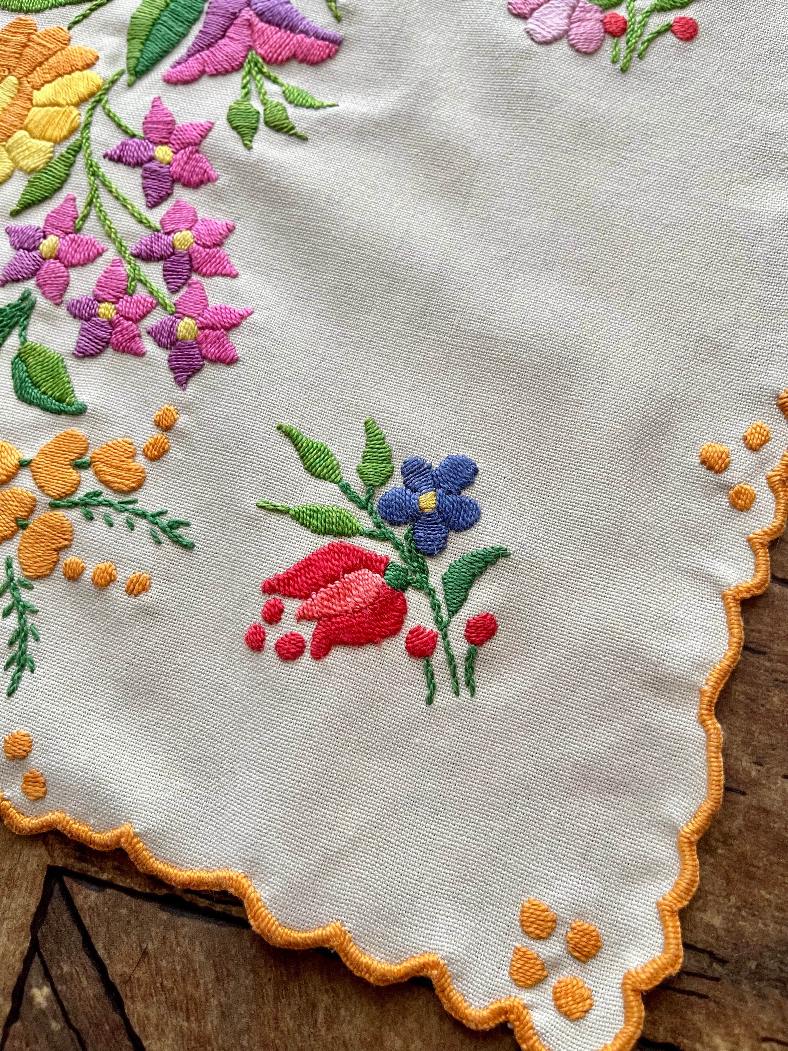 イエローの縁とみちみちの刺繍がキュートなテーブルランナー!