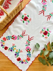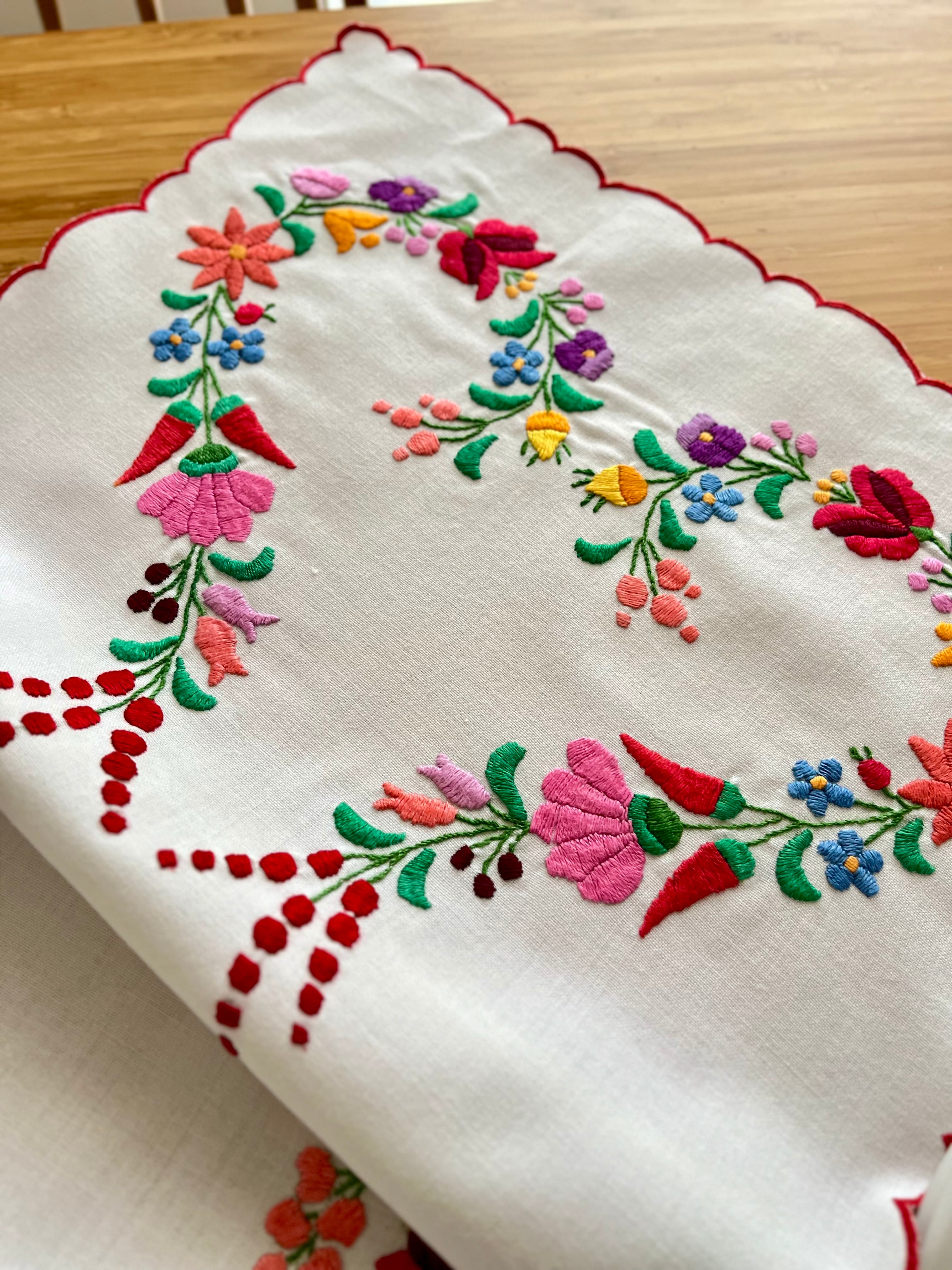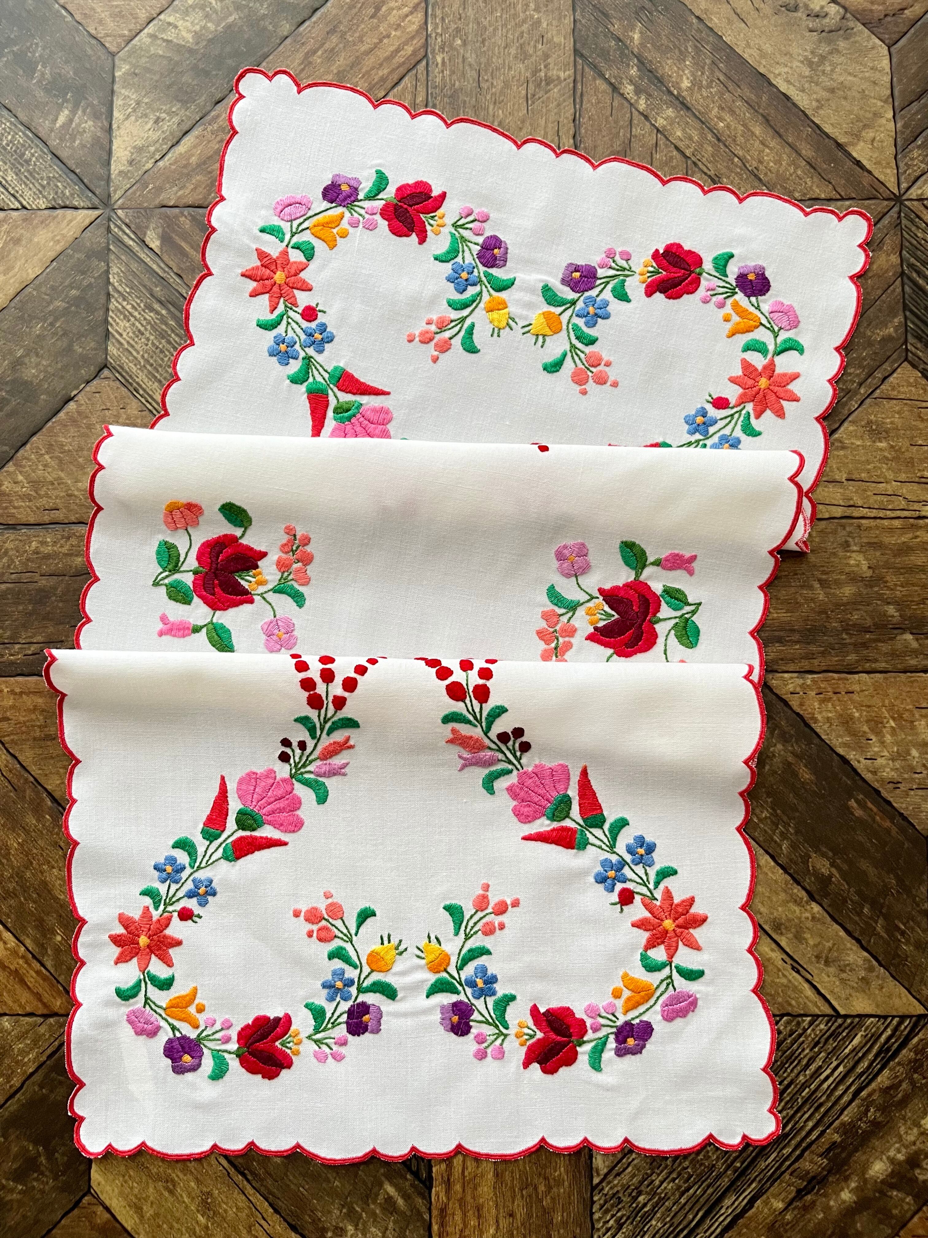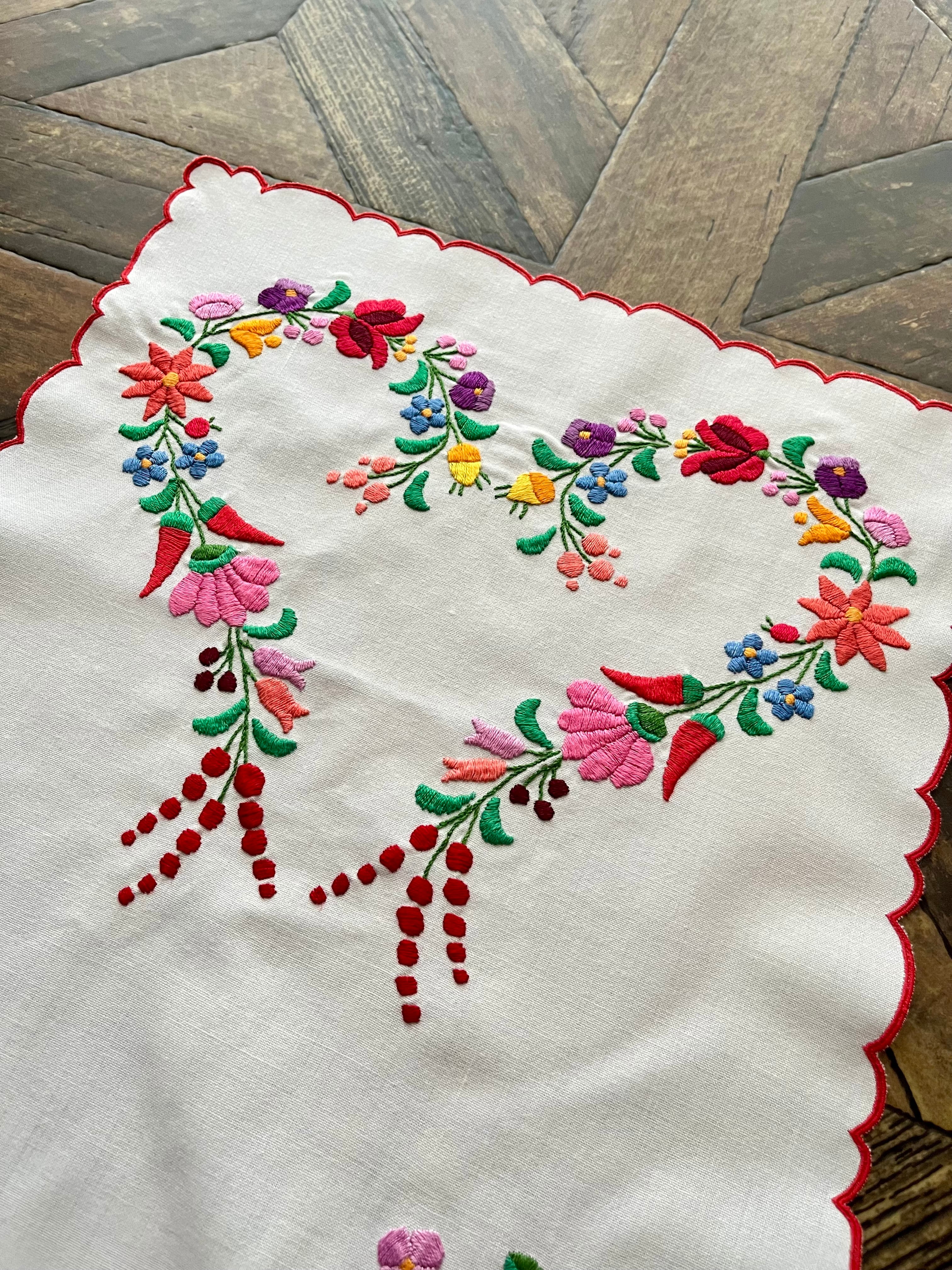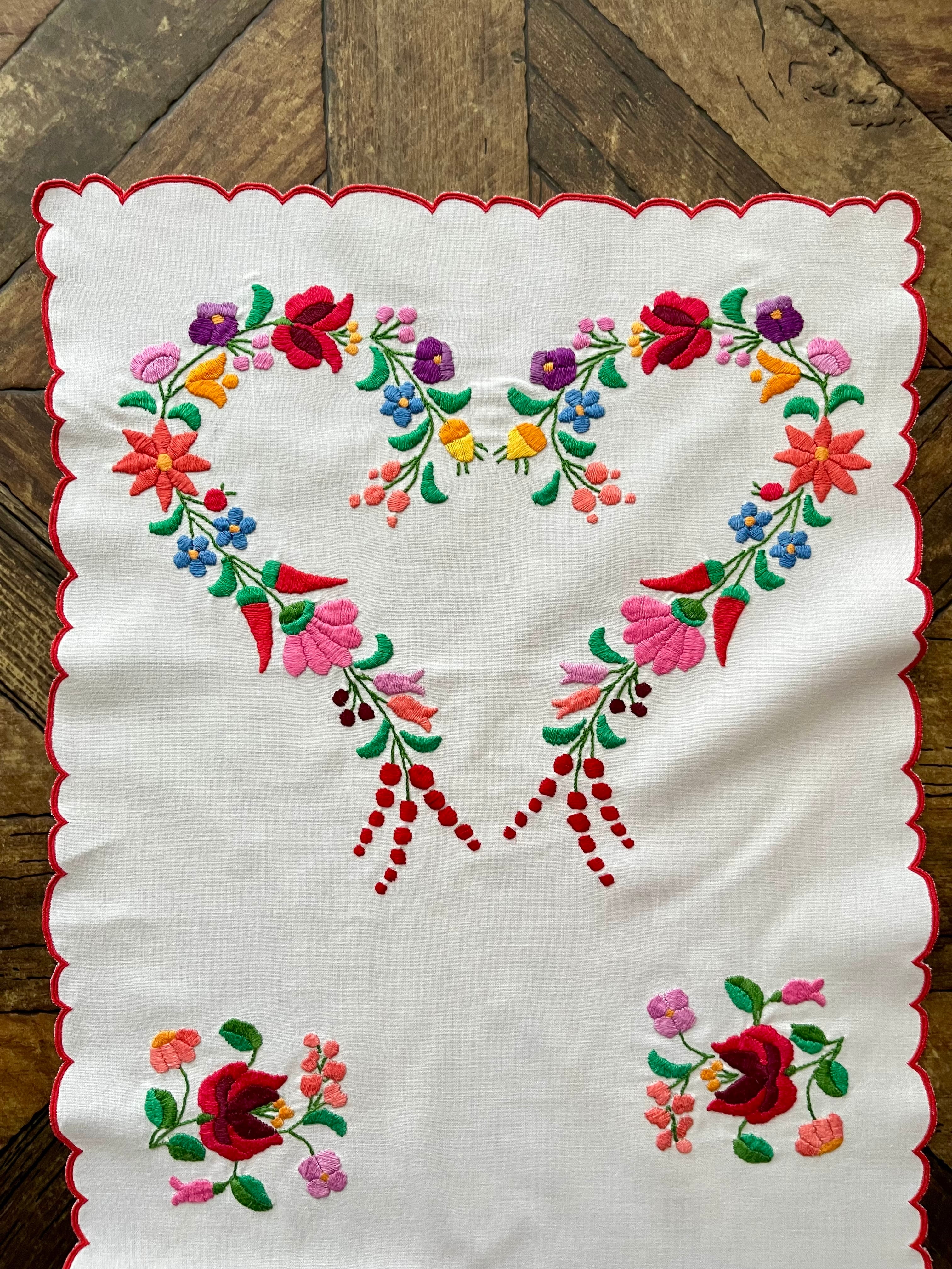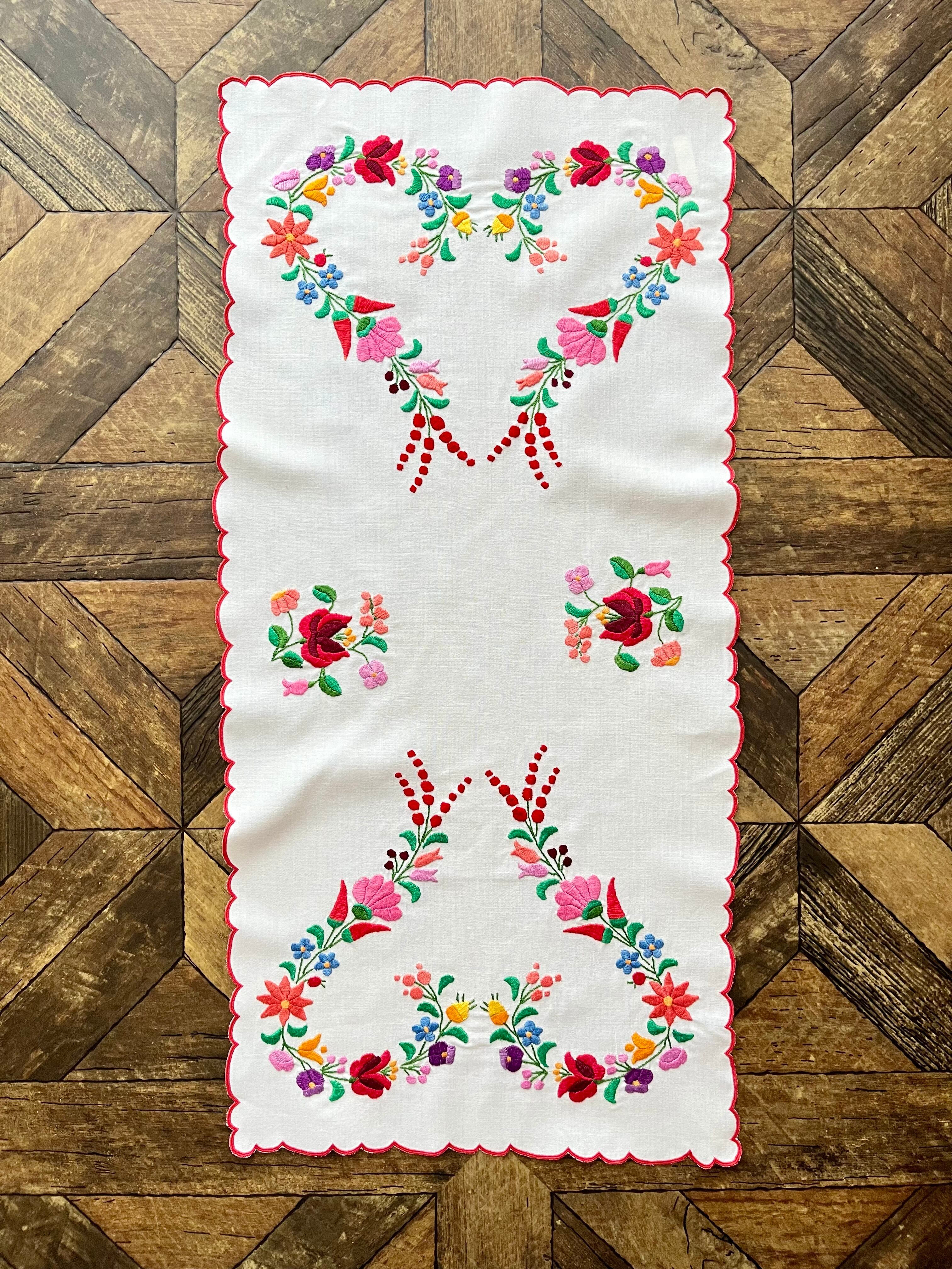 可憐なハートのテーブルランナー ヴィンテージ カロチャ刺繍 79.5×38cm