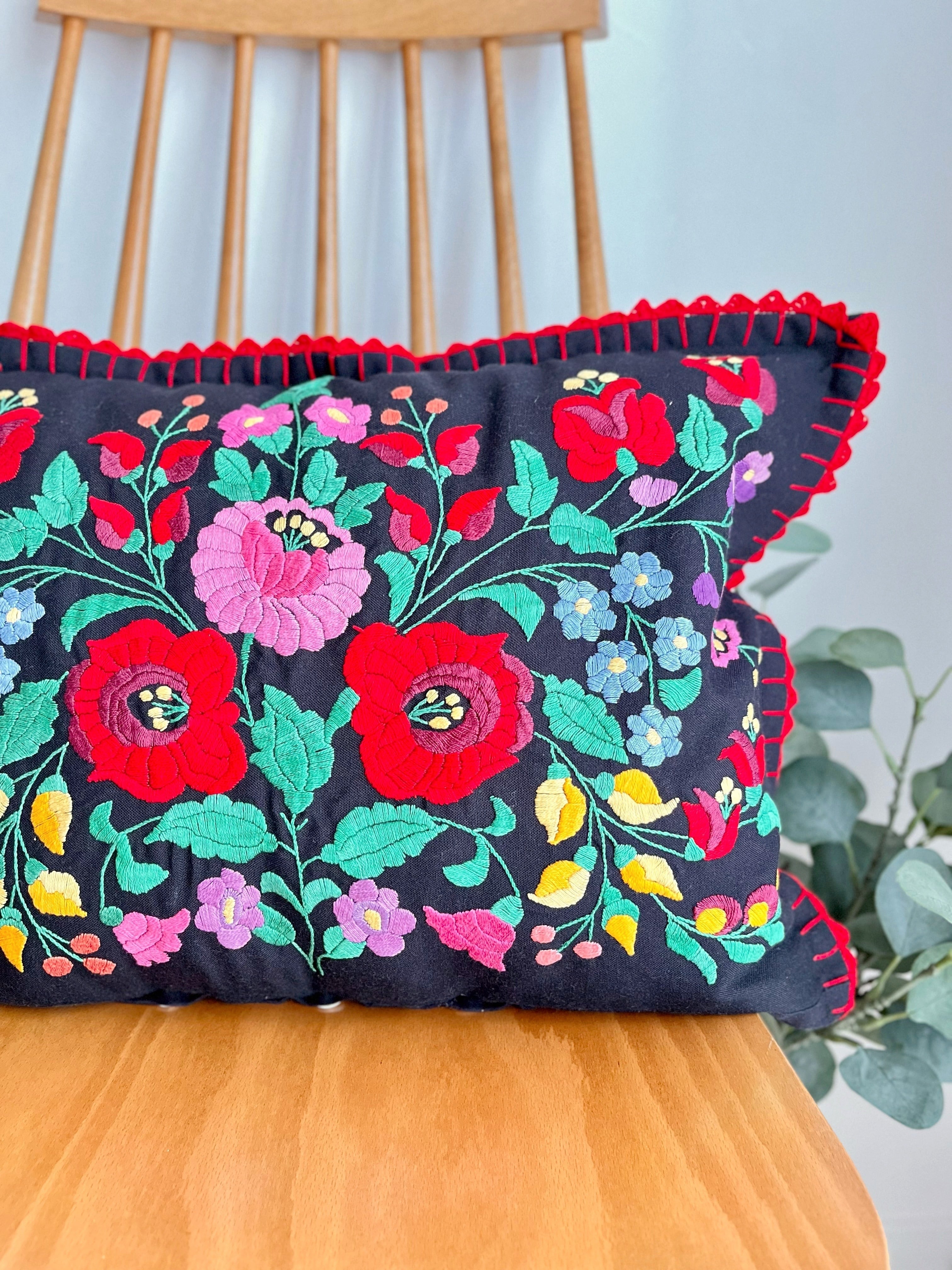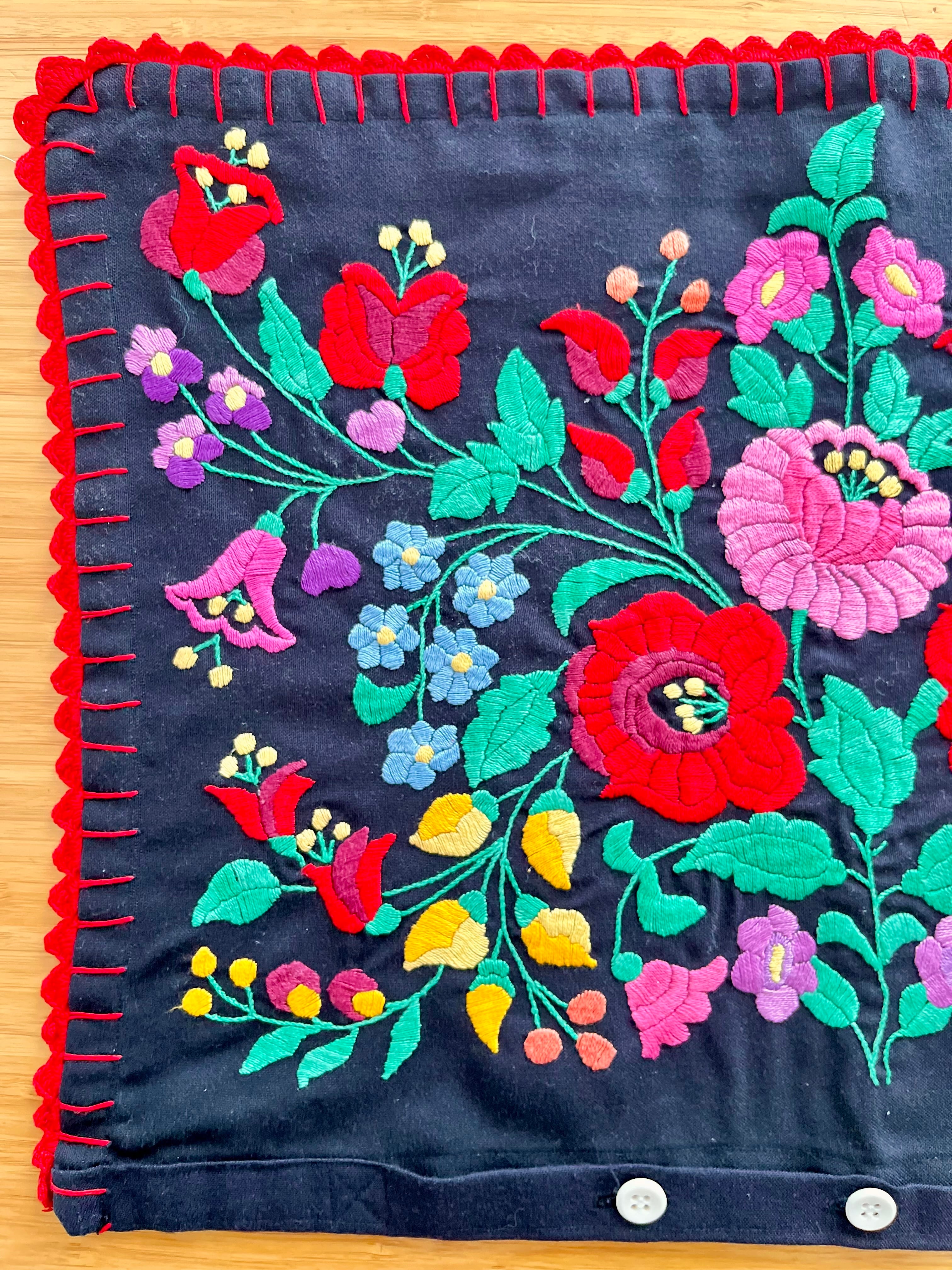 《圧巻!》ブラックカロチャのピローカバー ヴィンテージカロチャ刺繍 51×38cm