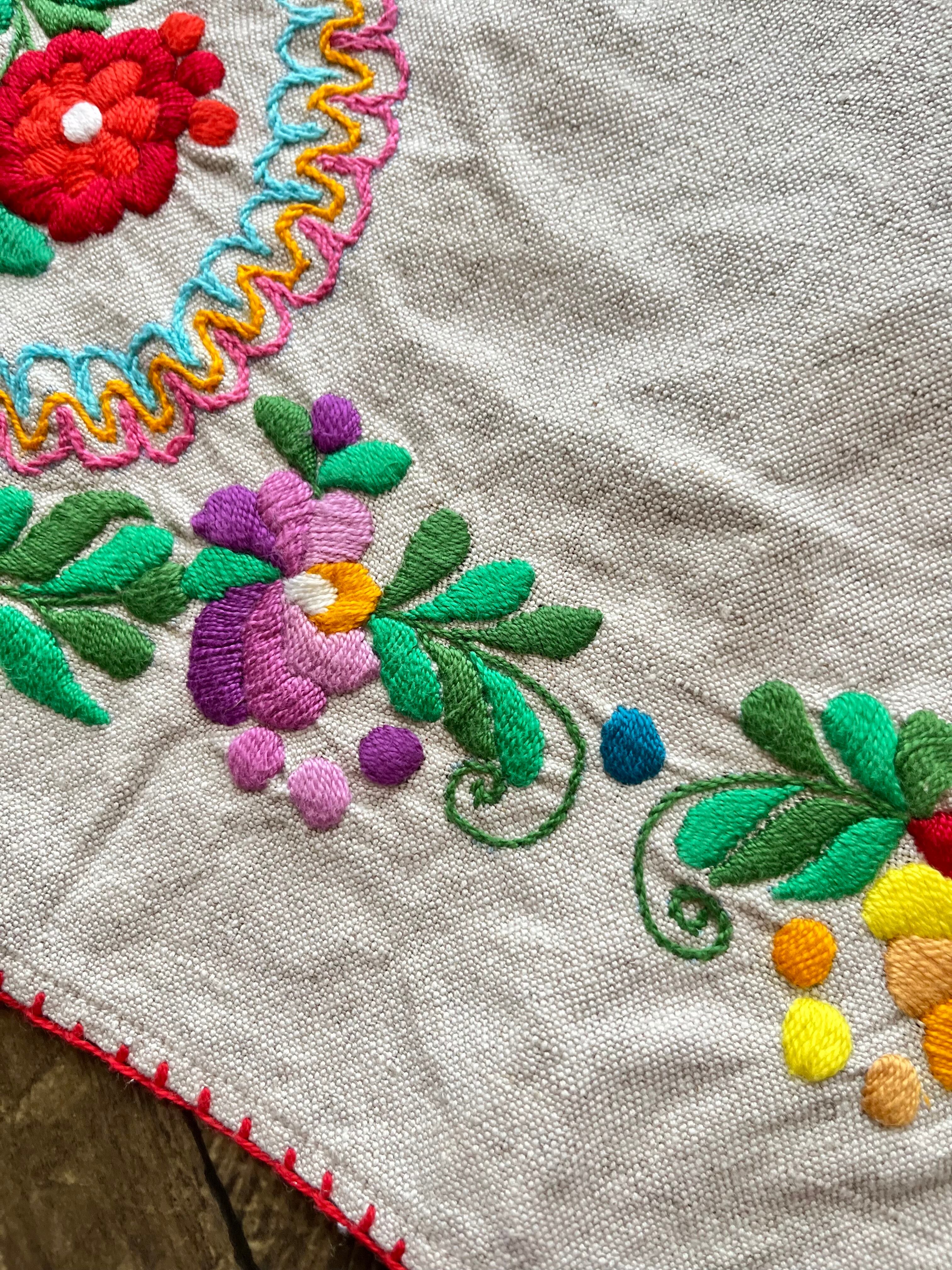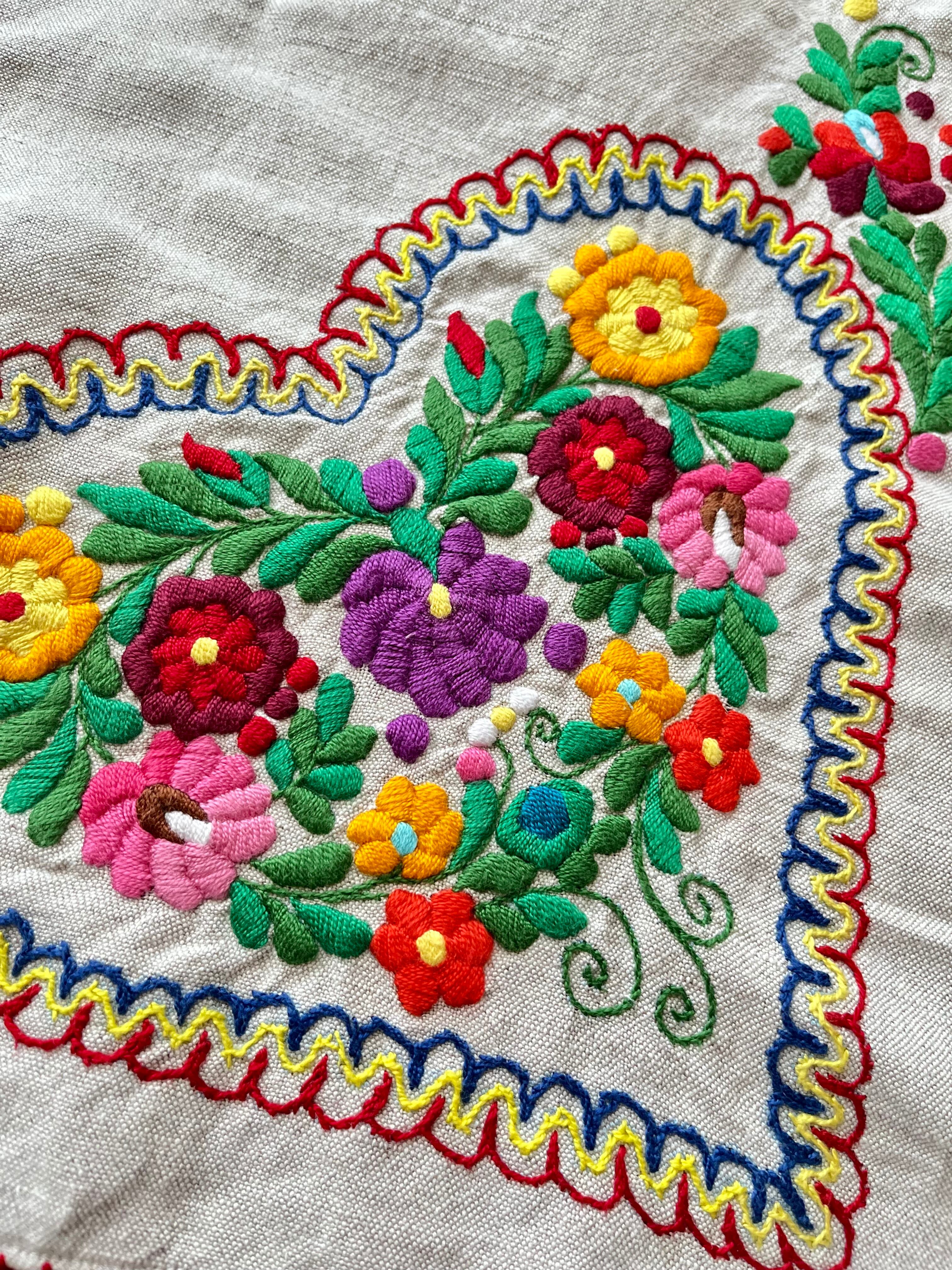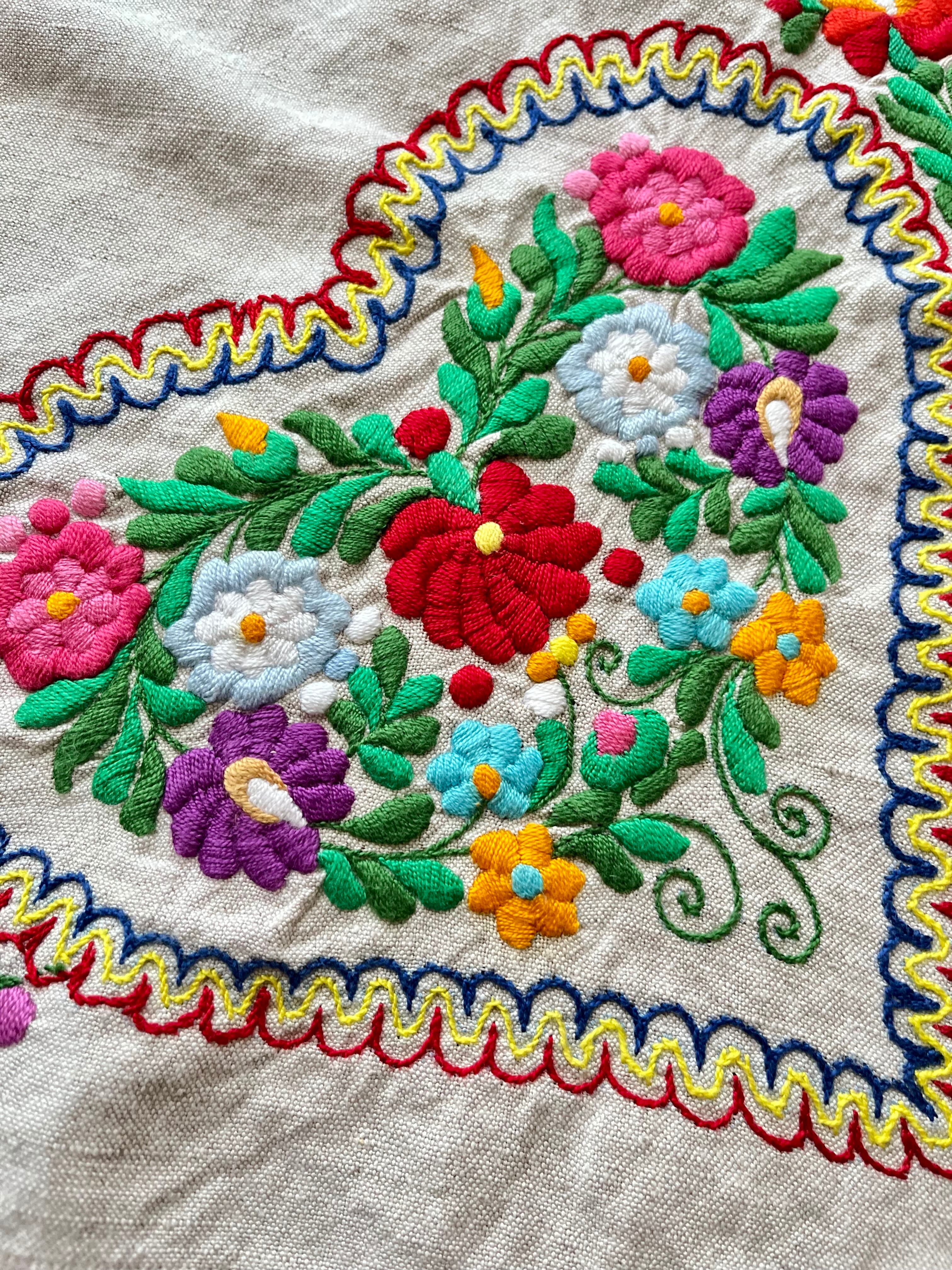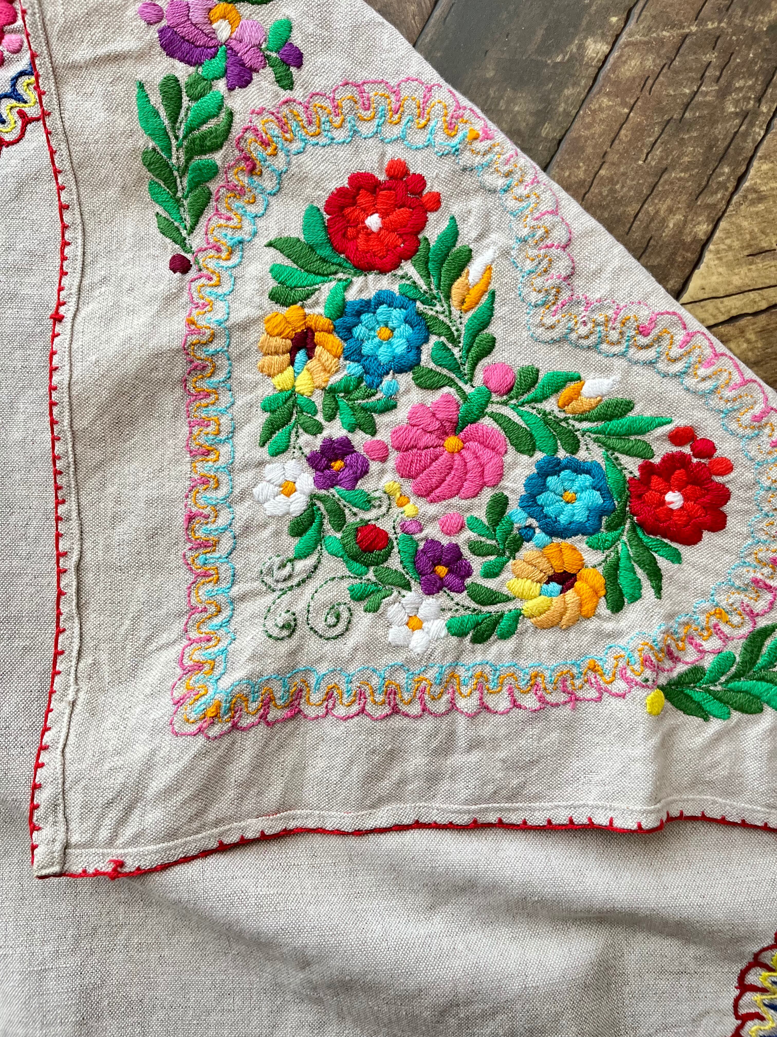 色鮮やかなマチョー刺繍のテーブルクロス ヴィンテージ マチョー刺繍 74×72cm