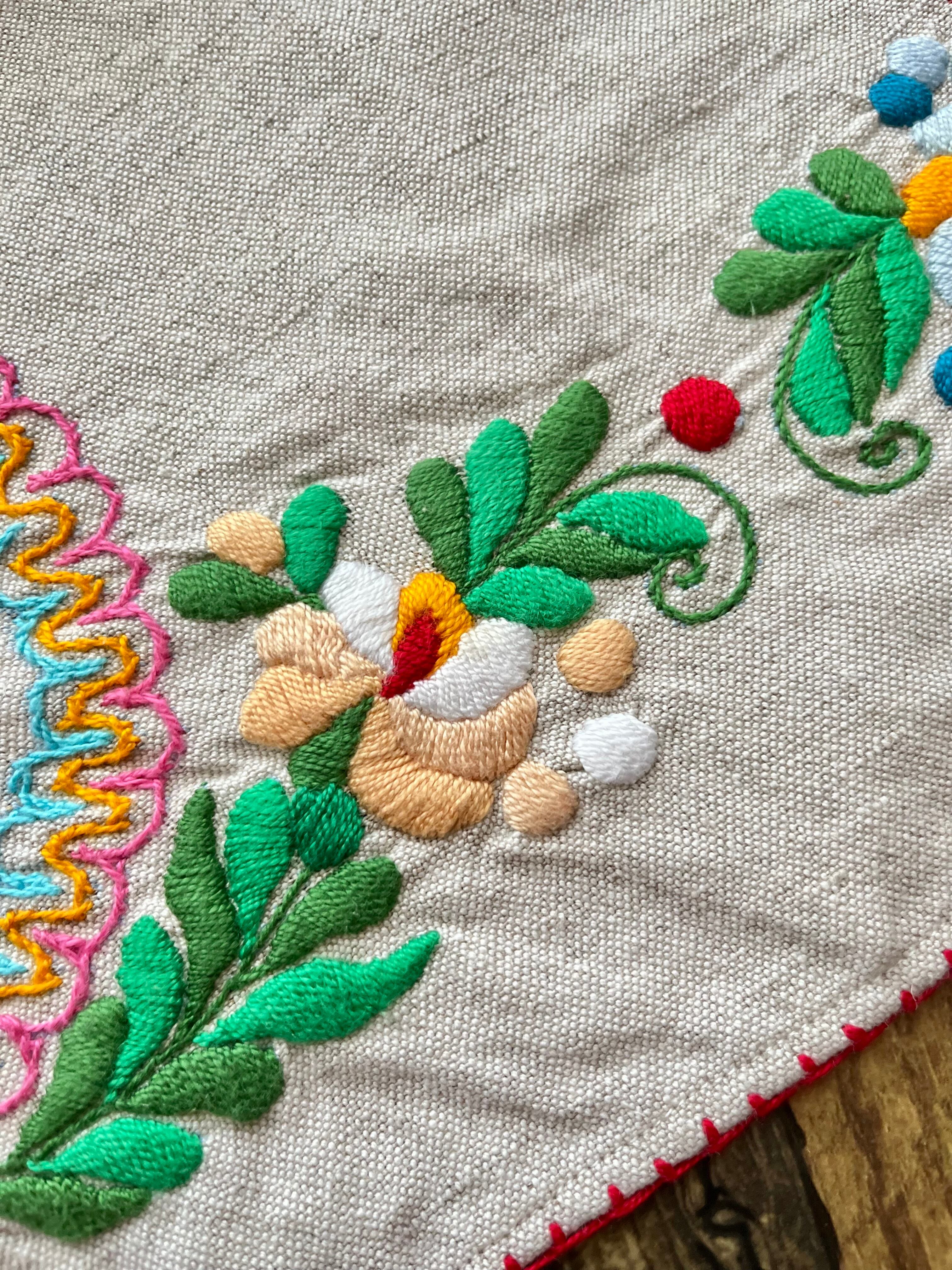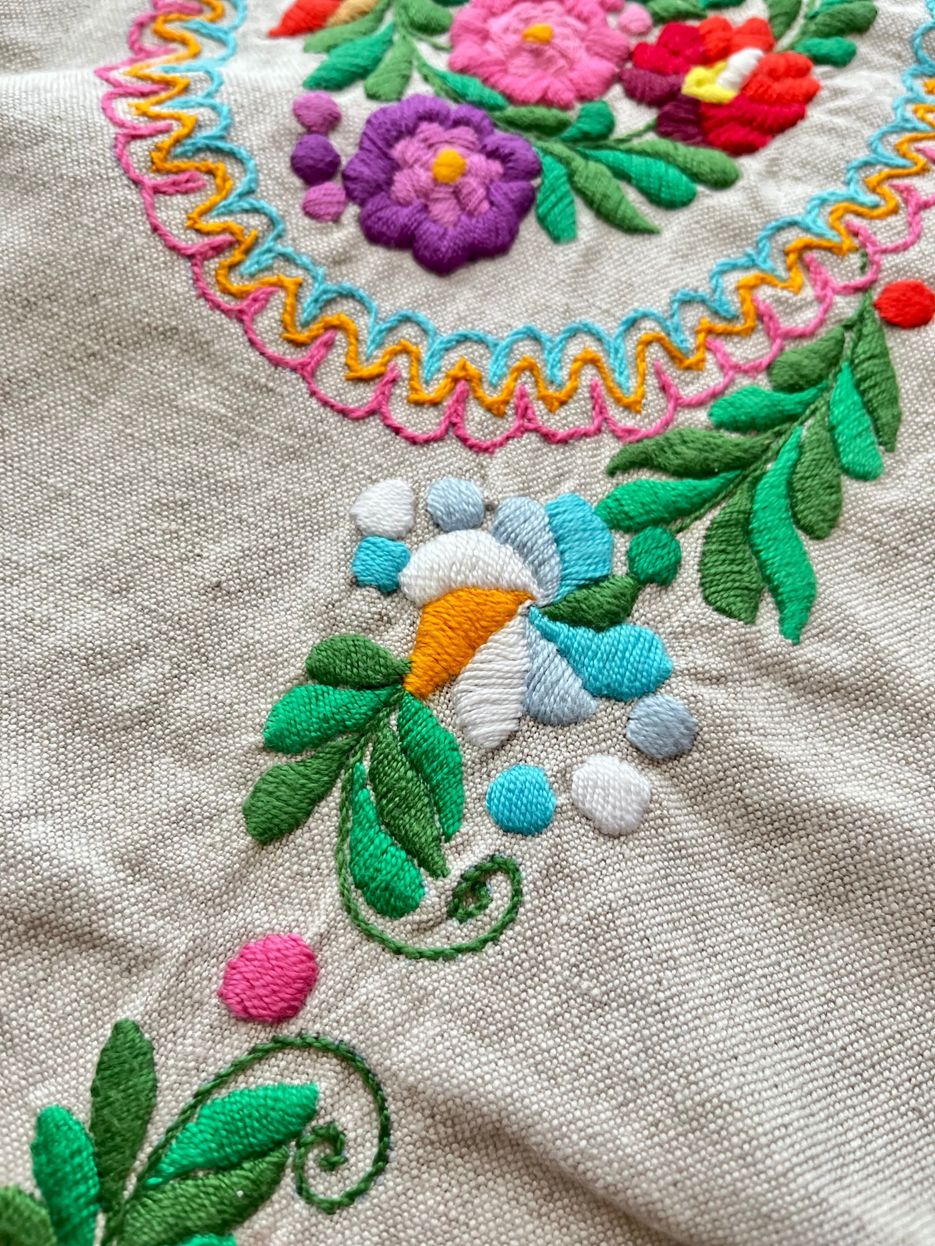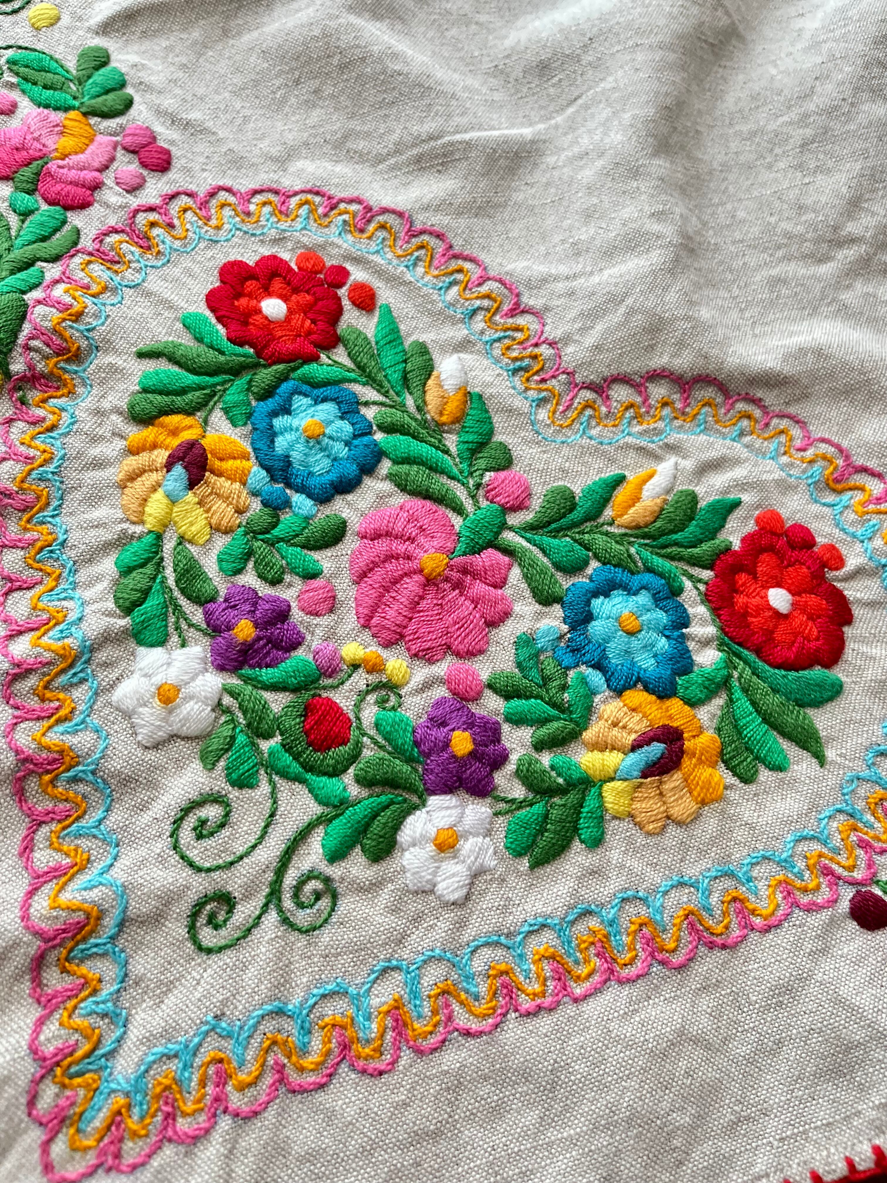 色鮮やかなマチョー刺繍のテーブルクロス ヴィンテージ マチョー刺繍 74×72cm