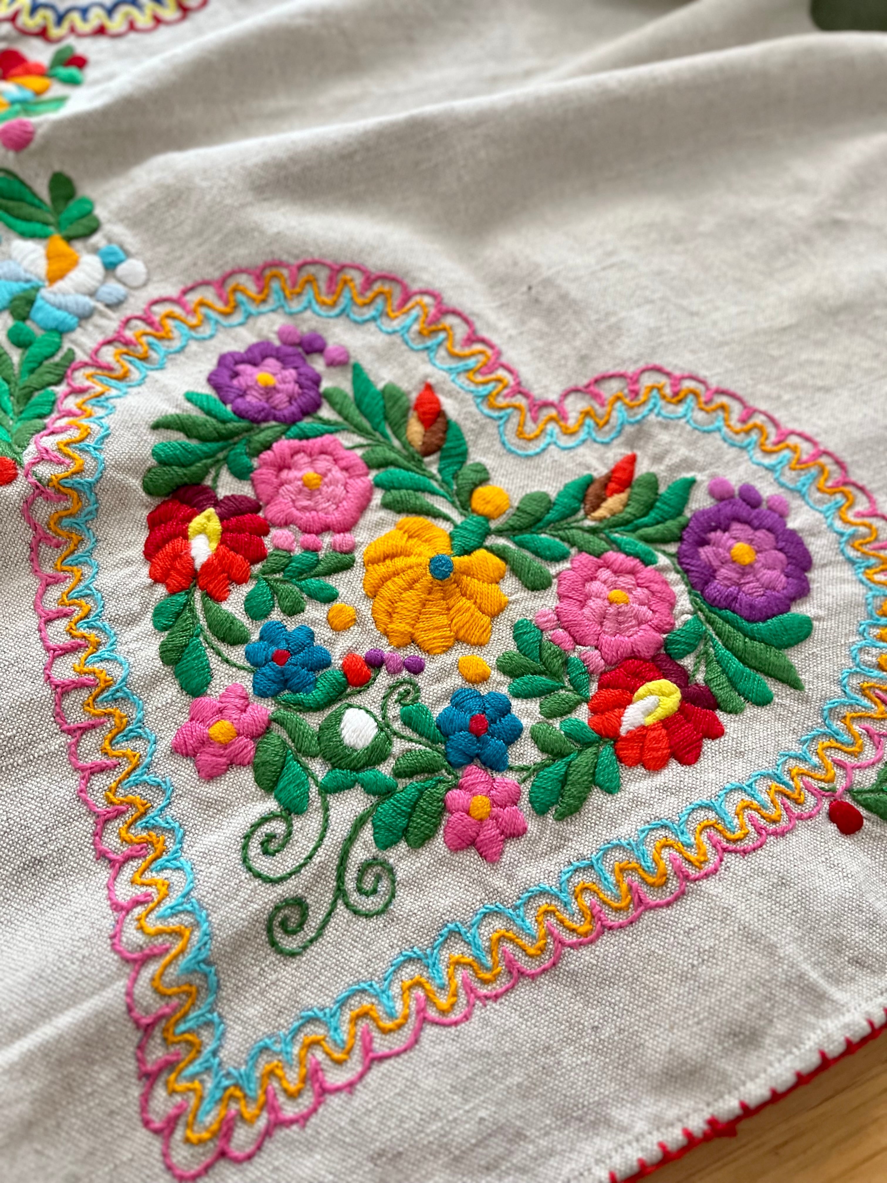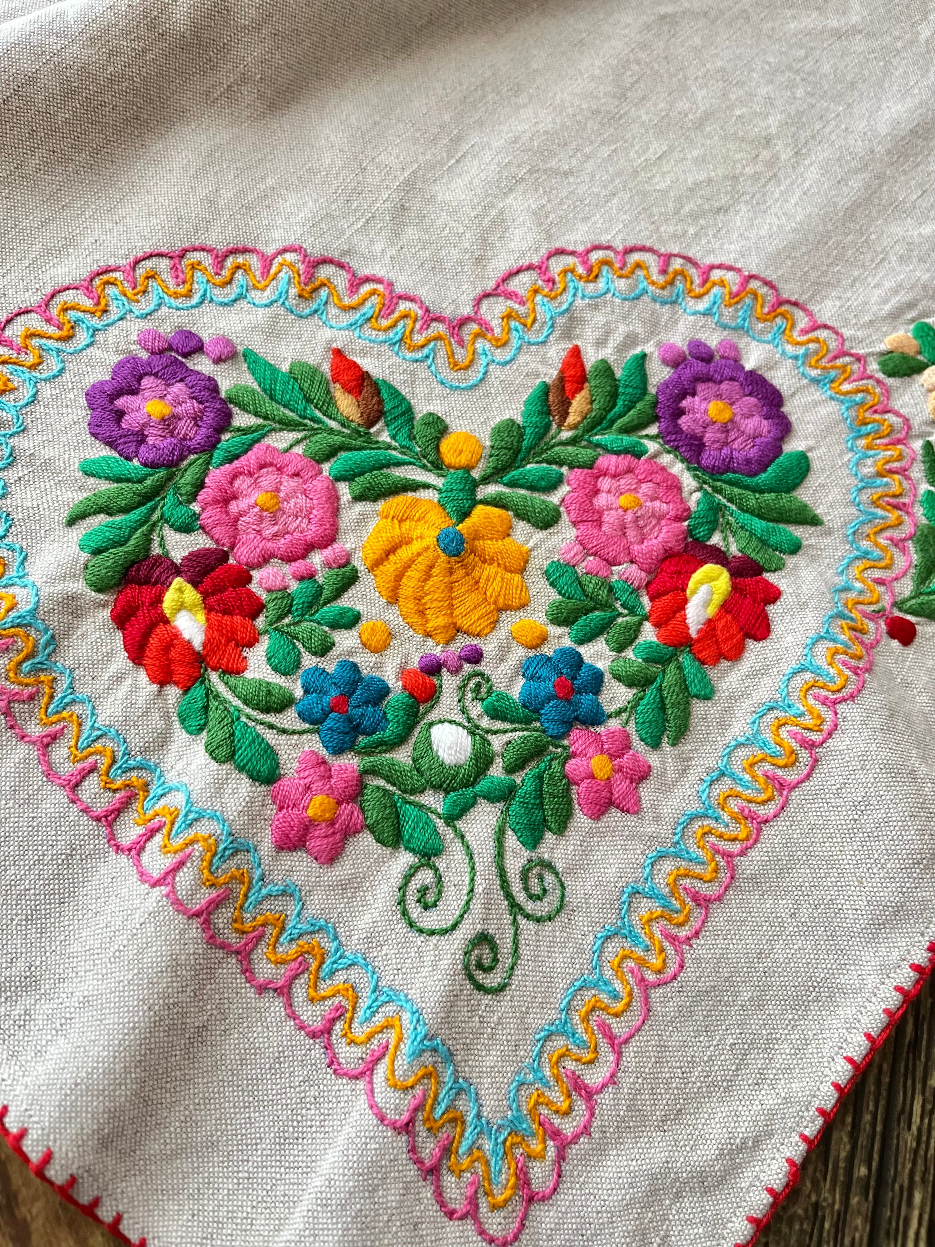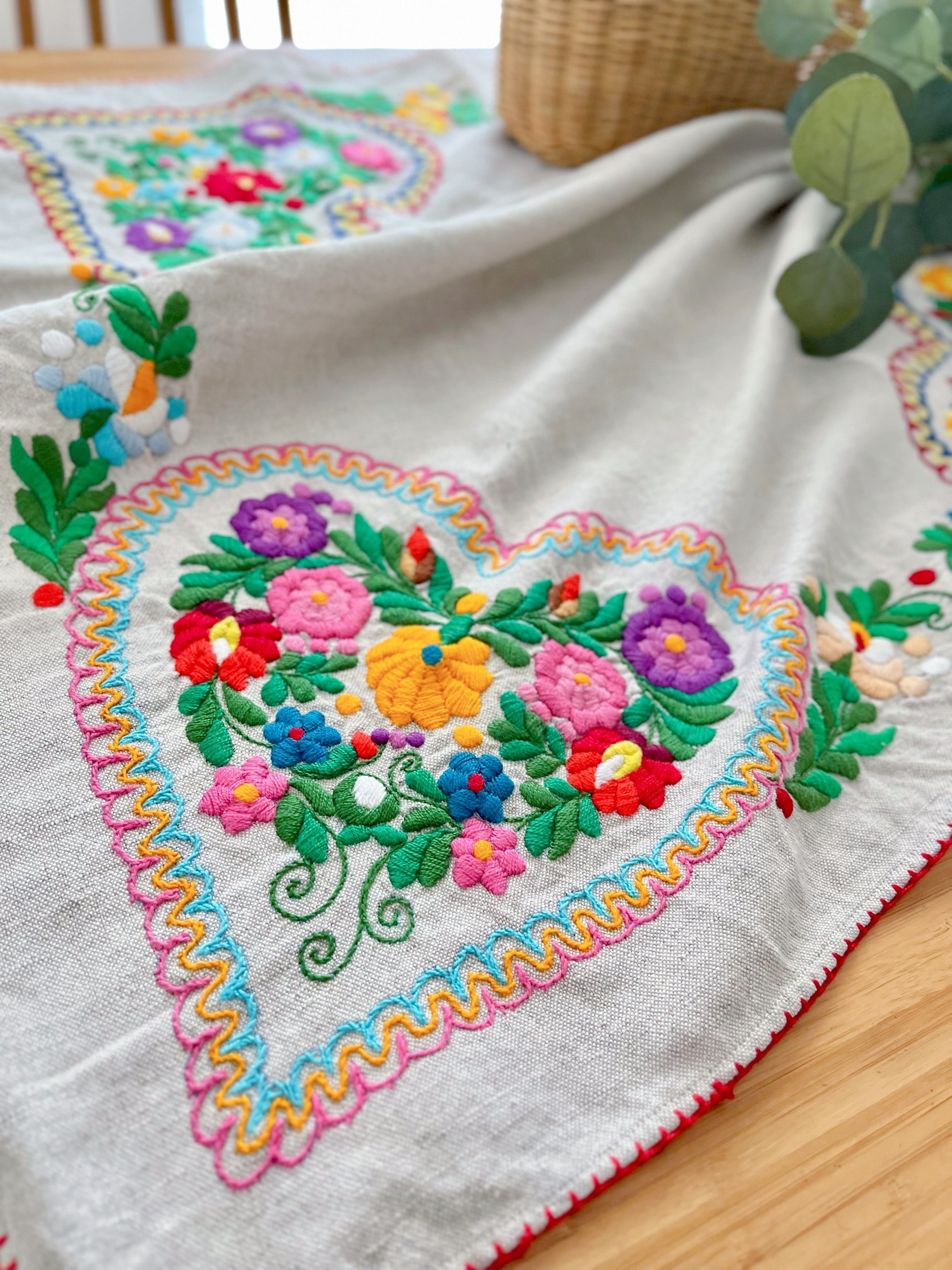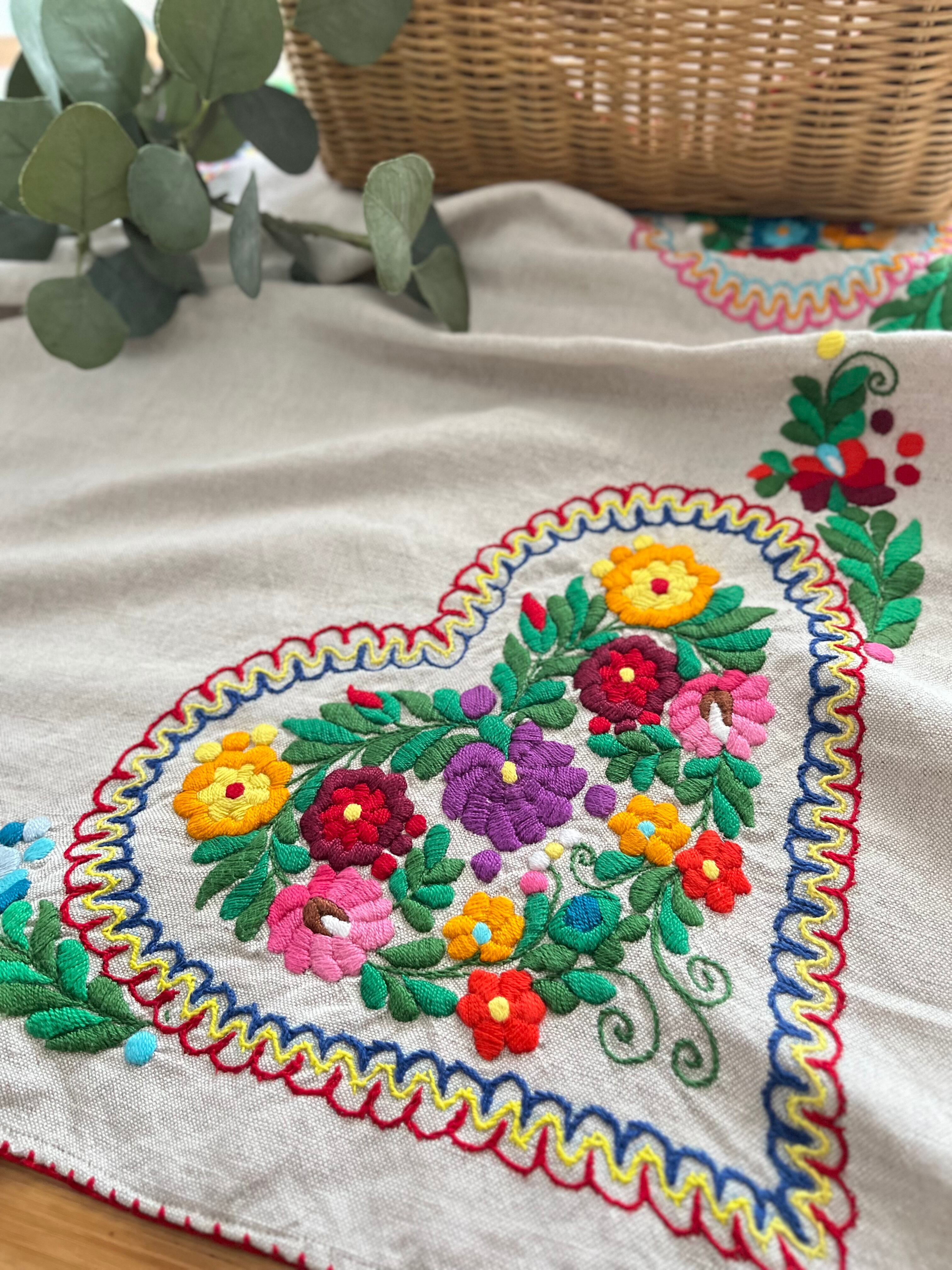 色鮮やかなマチョー刺繍のテーブルクロス ヴィンテージ マチョー刺繍 74×72cm
