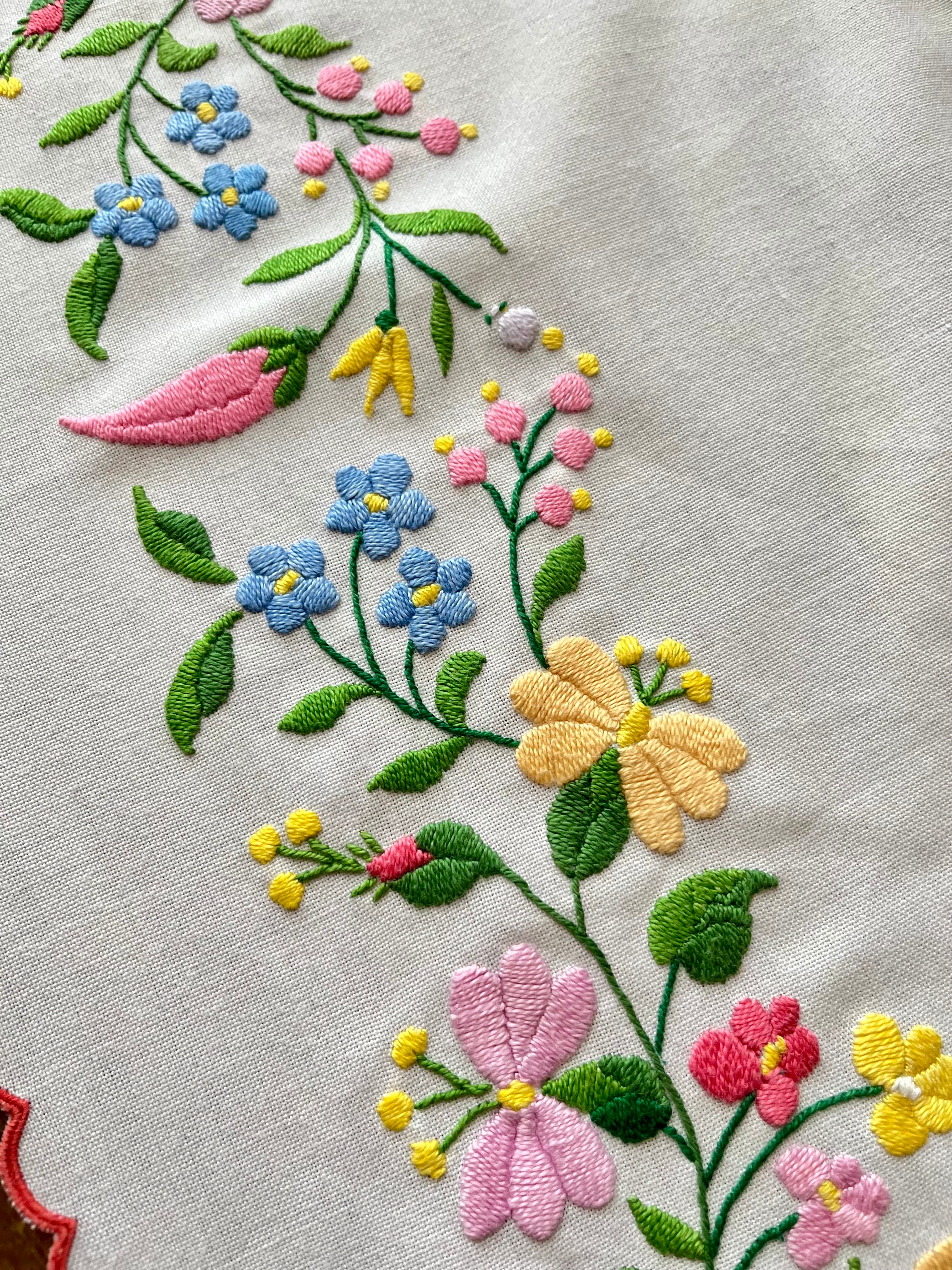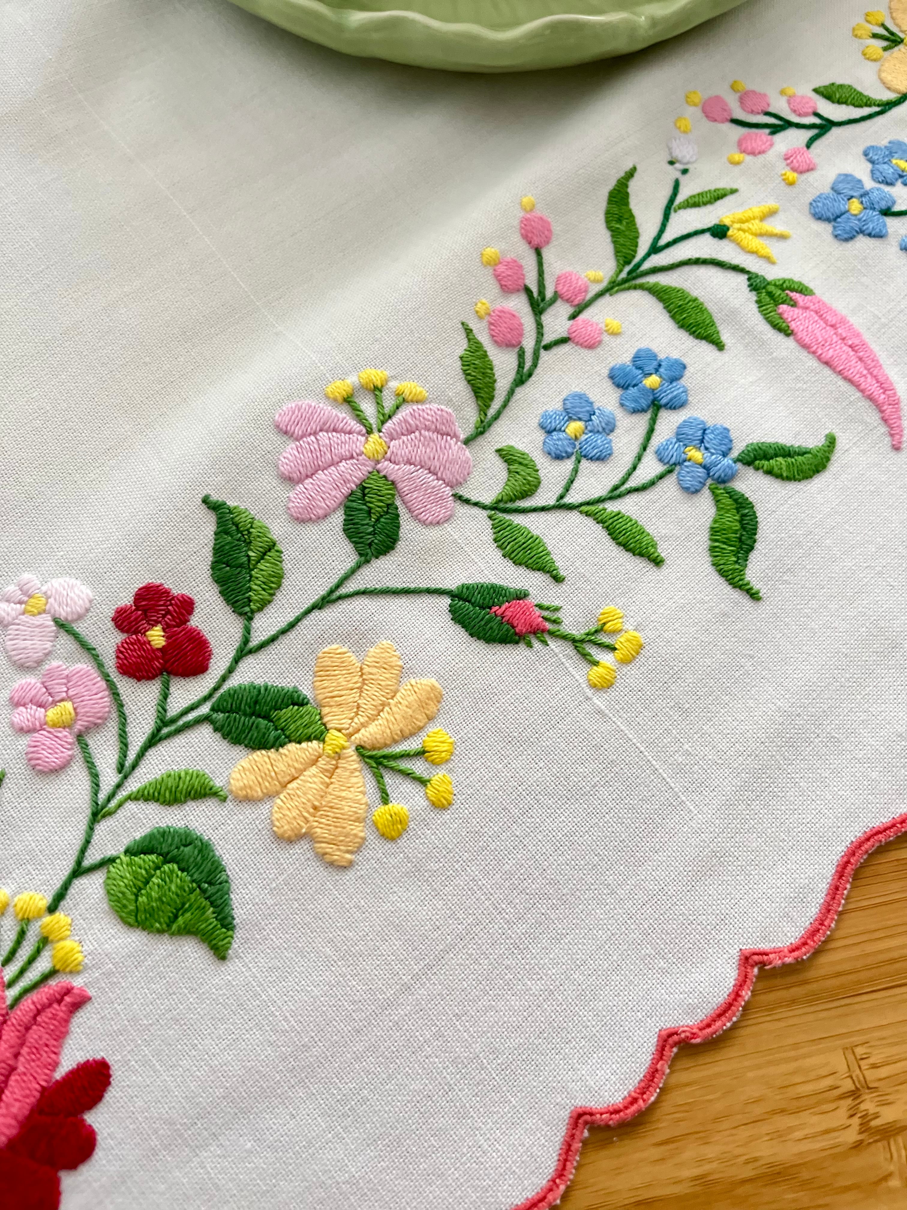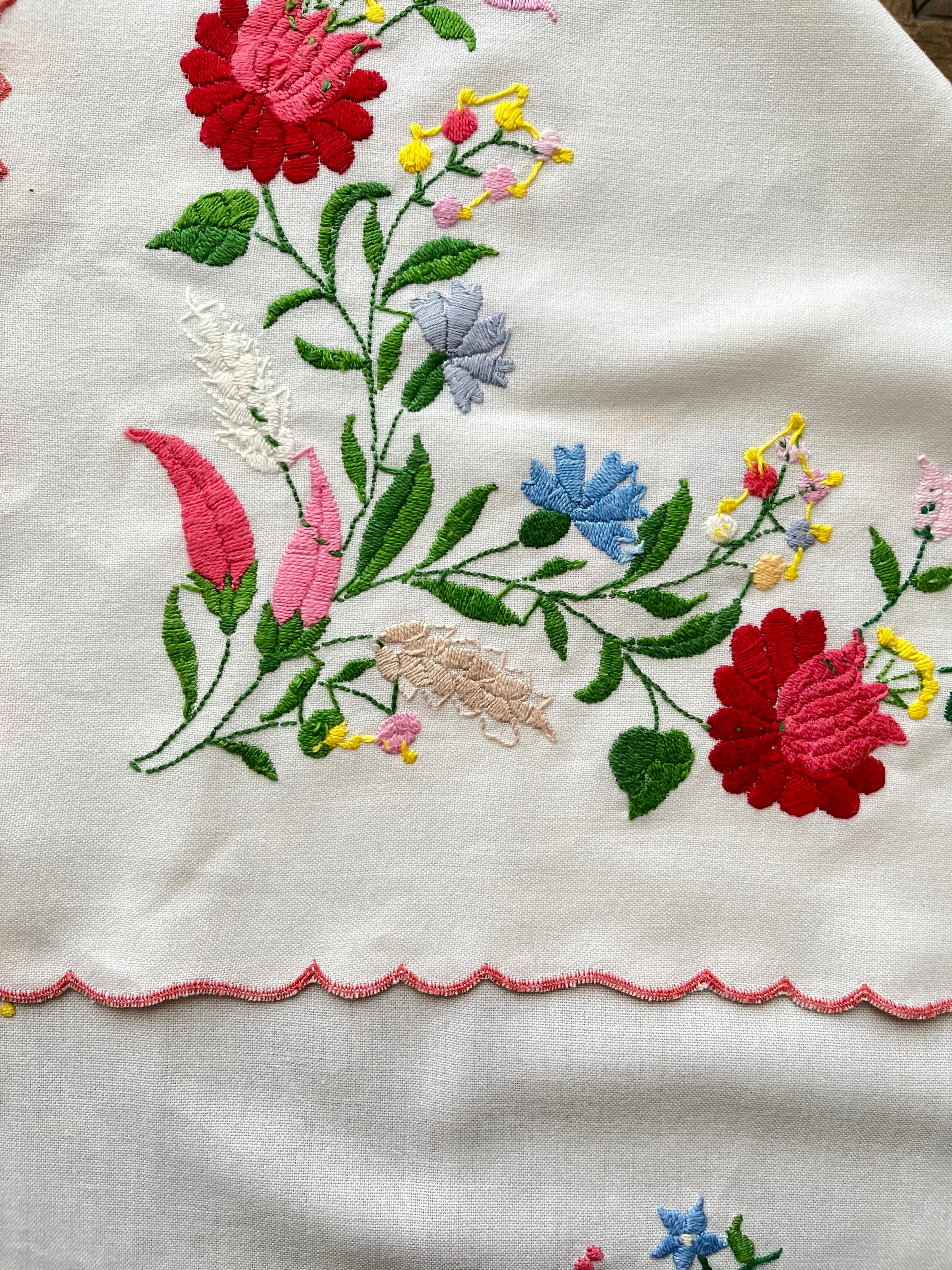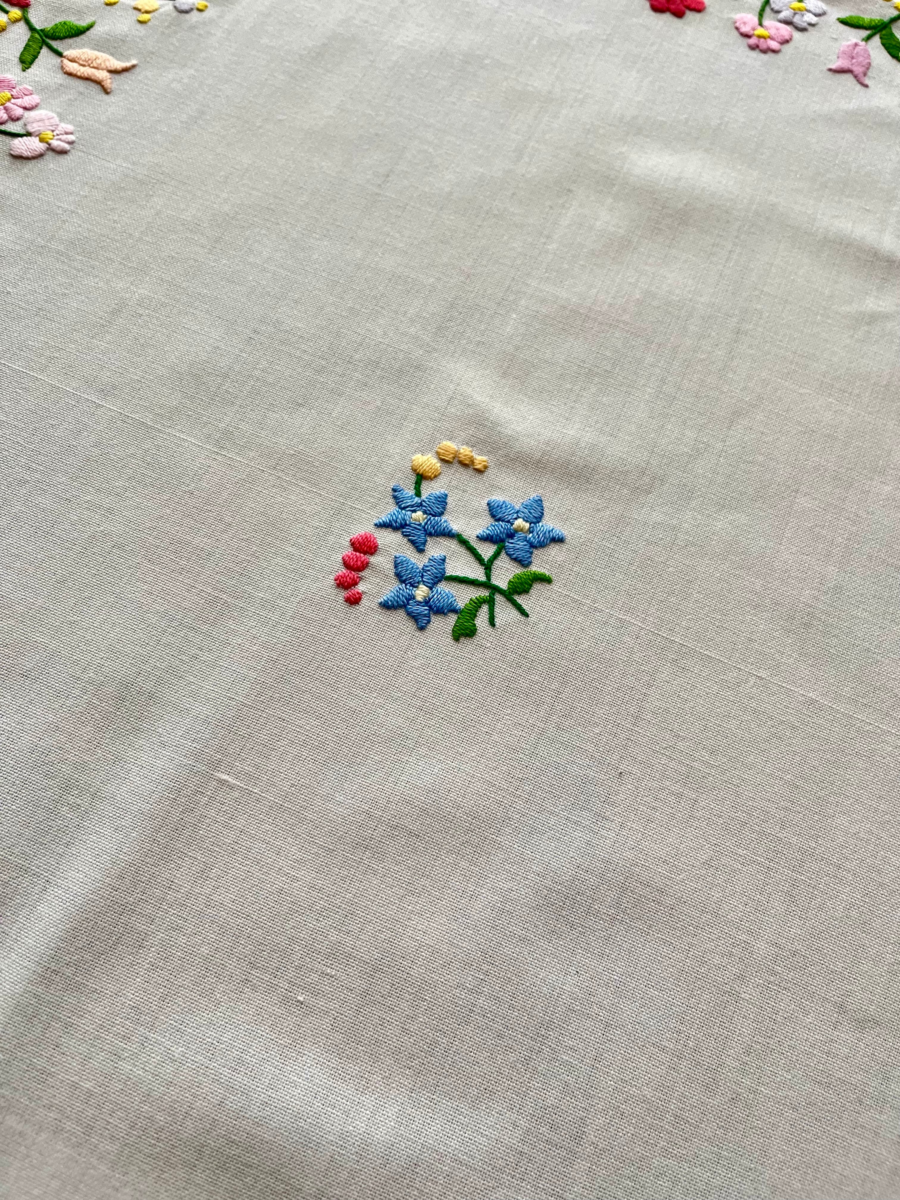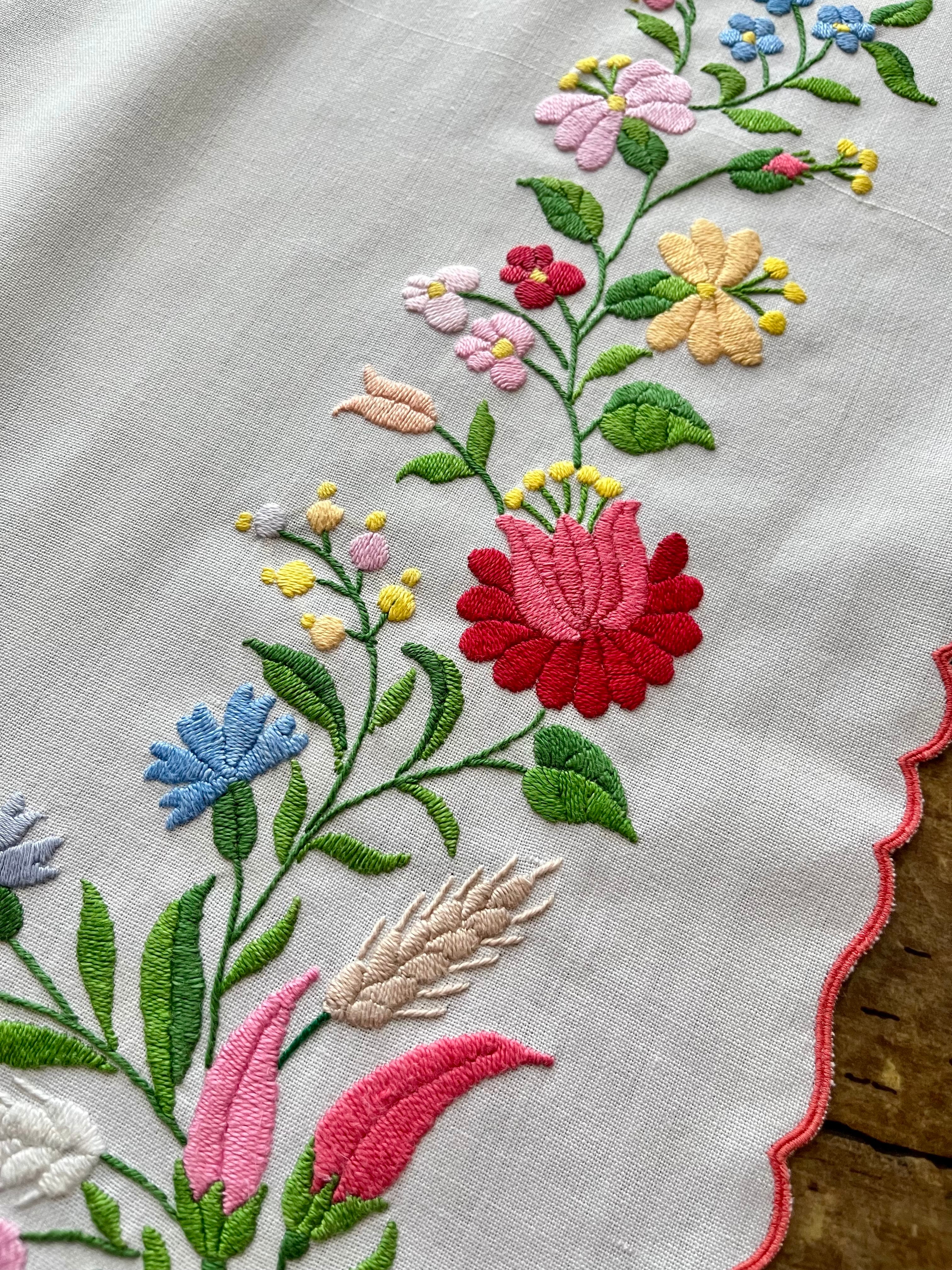 パステルカラーの横長テーブルクロス ヴィンテージ カロチャ刺繍 85×59cm