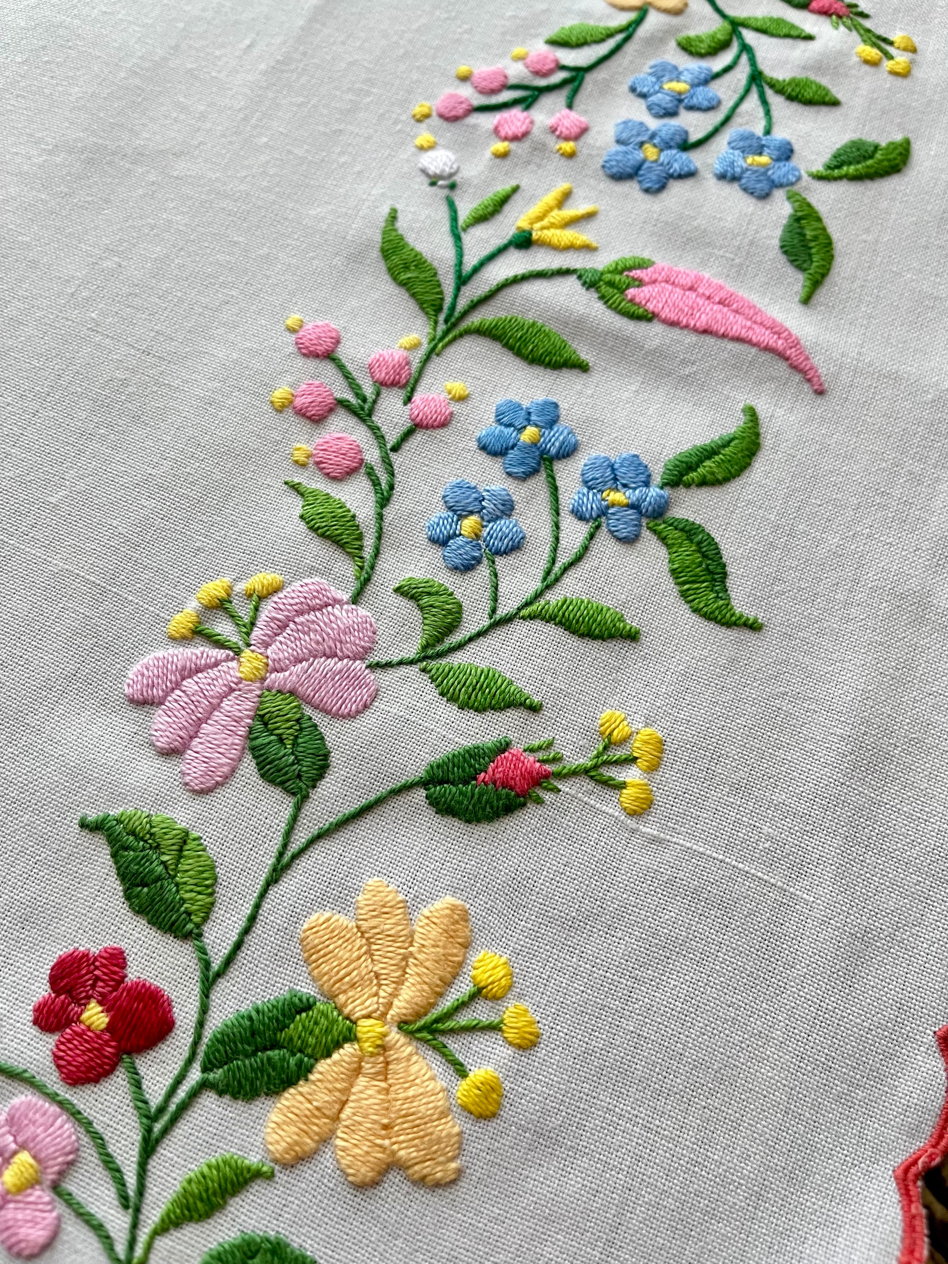 刺繍はとても丁寧で細やか。小さくてぷちぷちとした刺繍もあり胸がいっぱいになってしまう1枚!