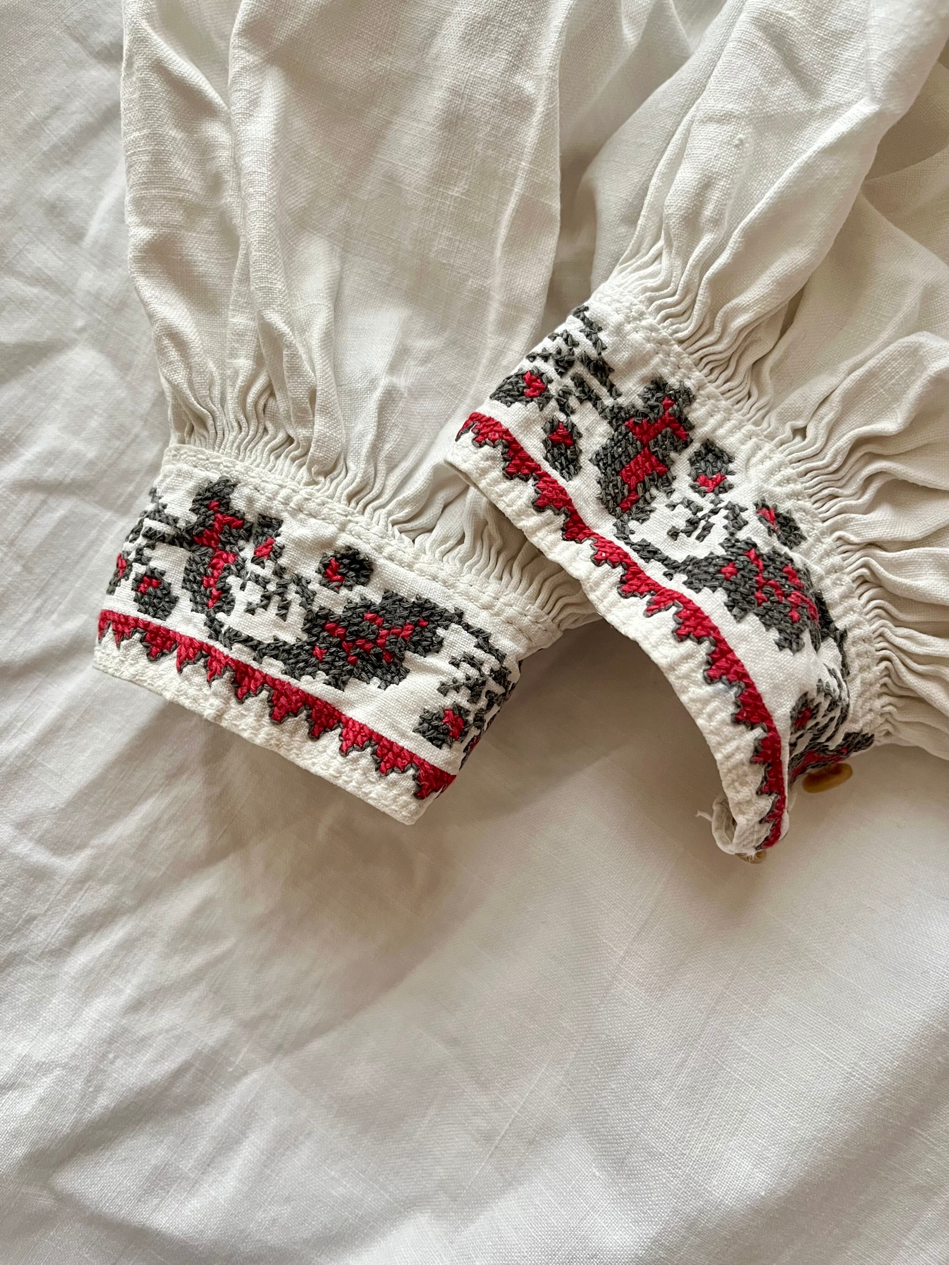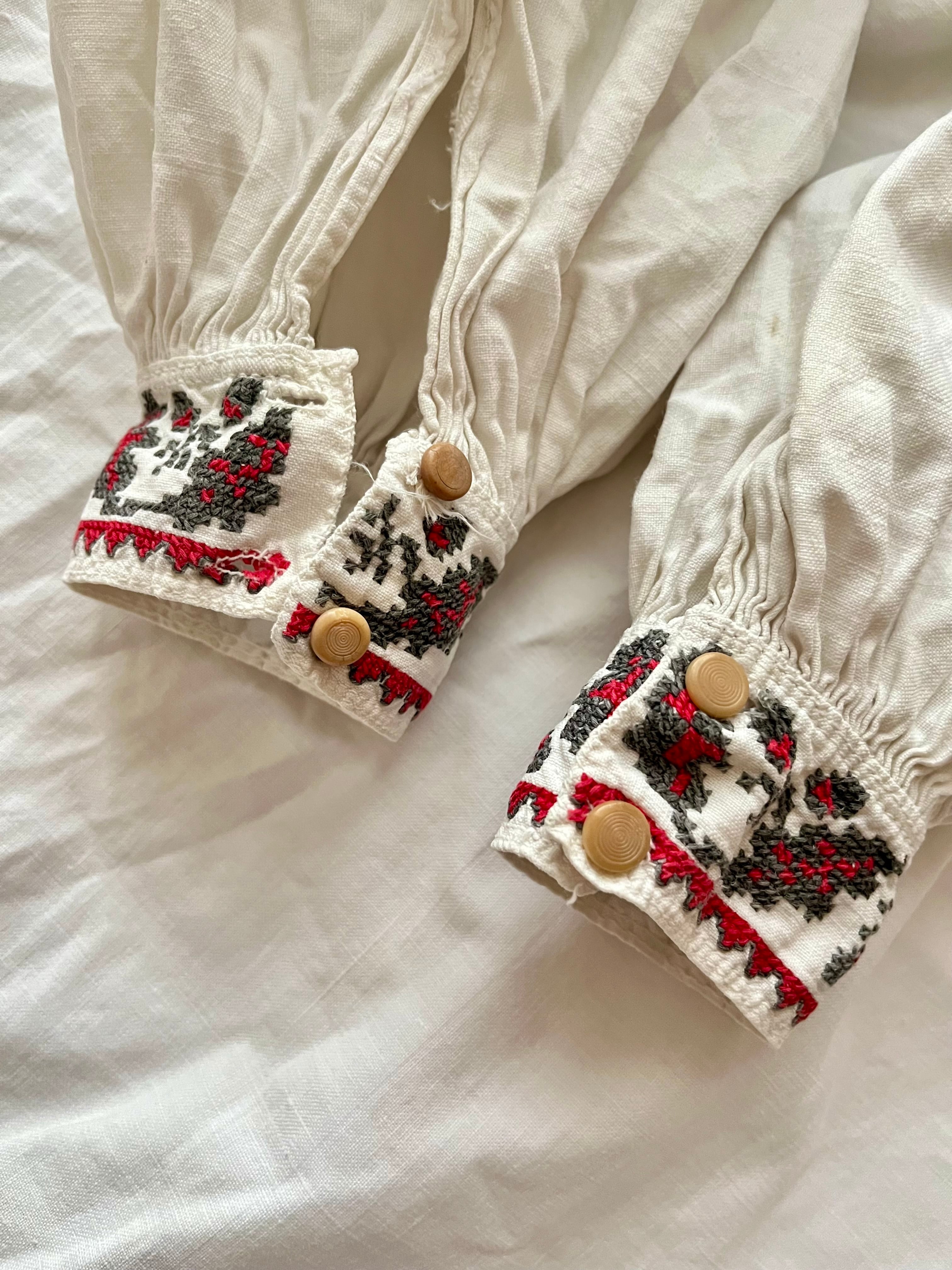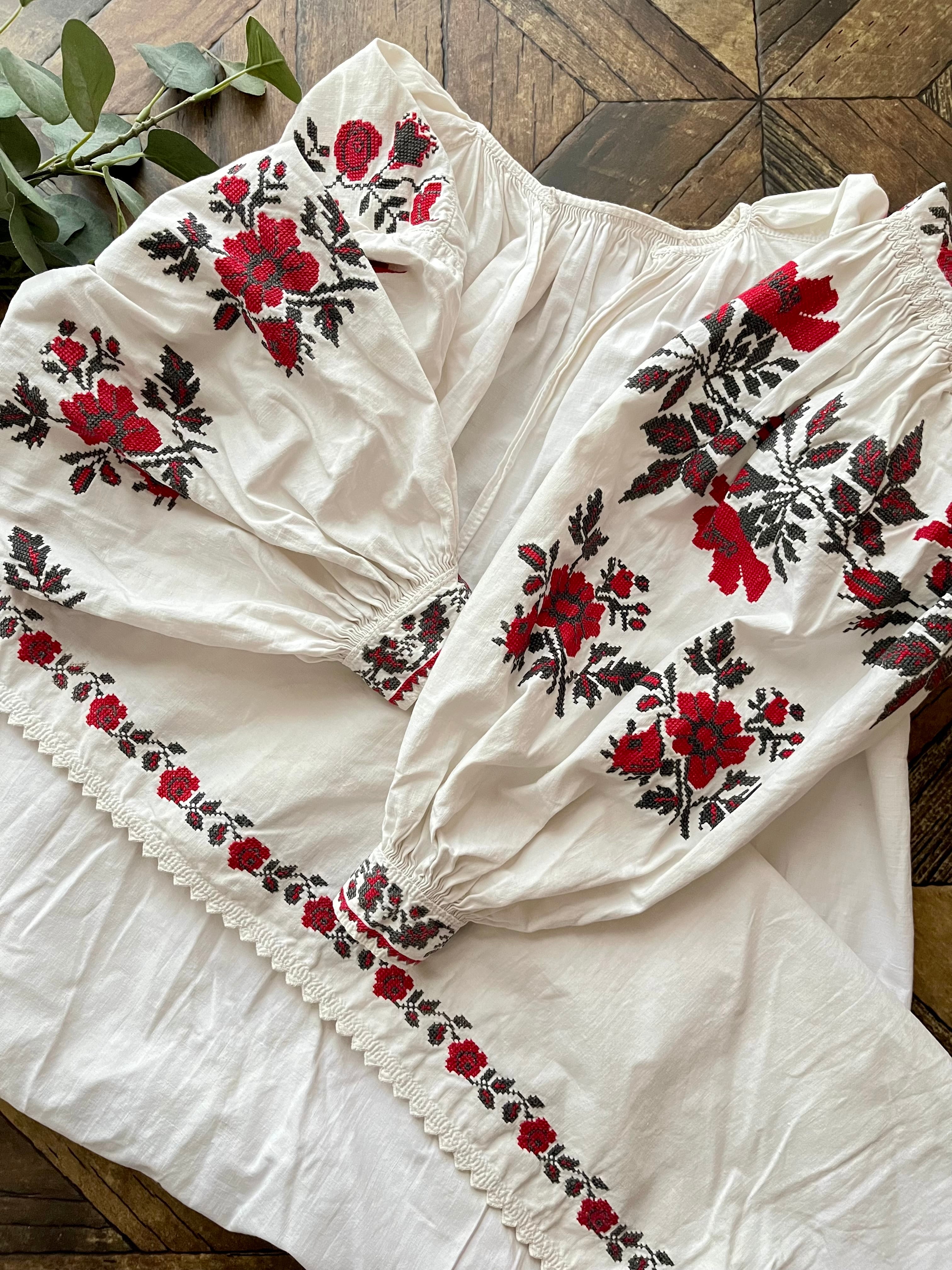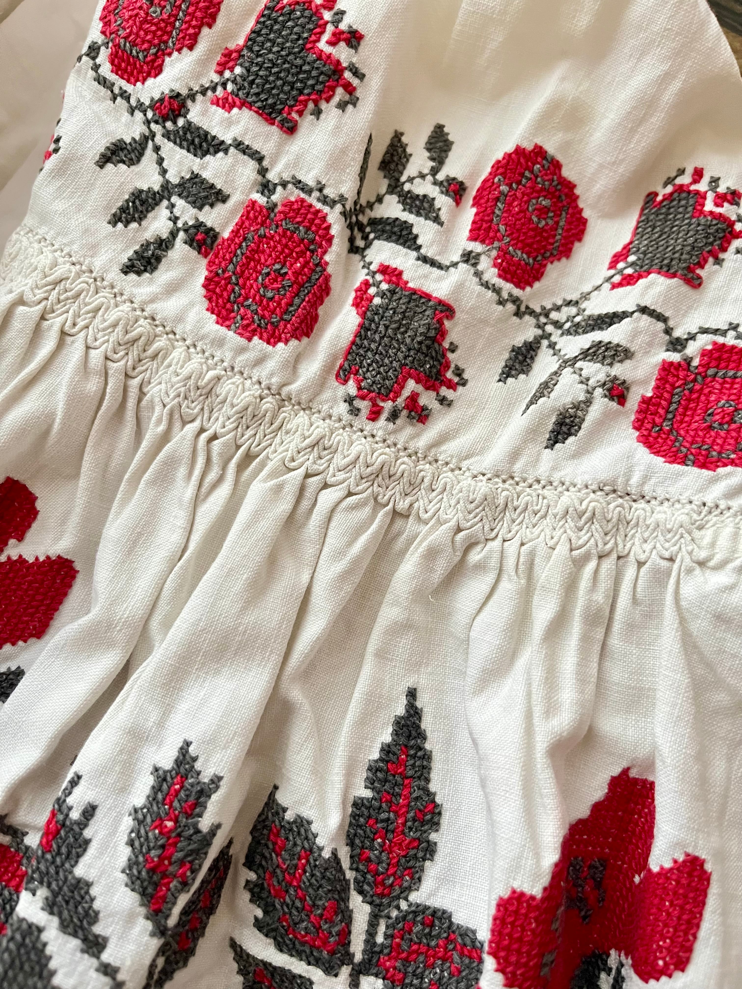 たっぷりボリューム袖の赤い花のウクライナ刺繍ワンピース ヴィシヴァンカ ソロチカ