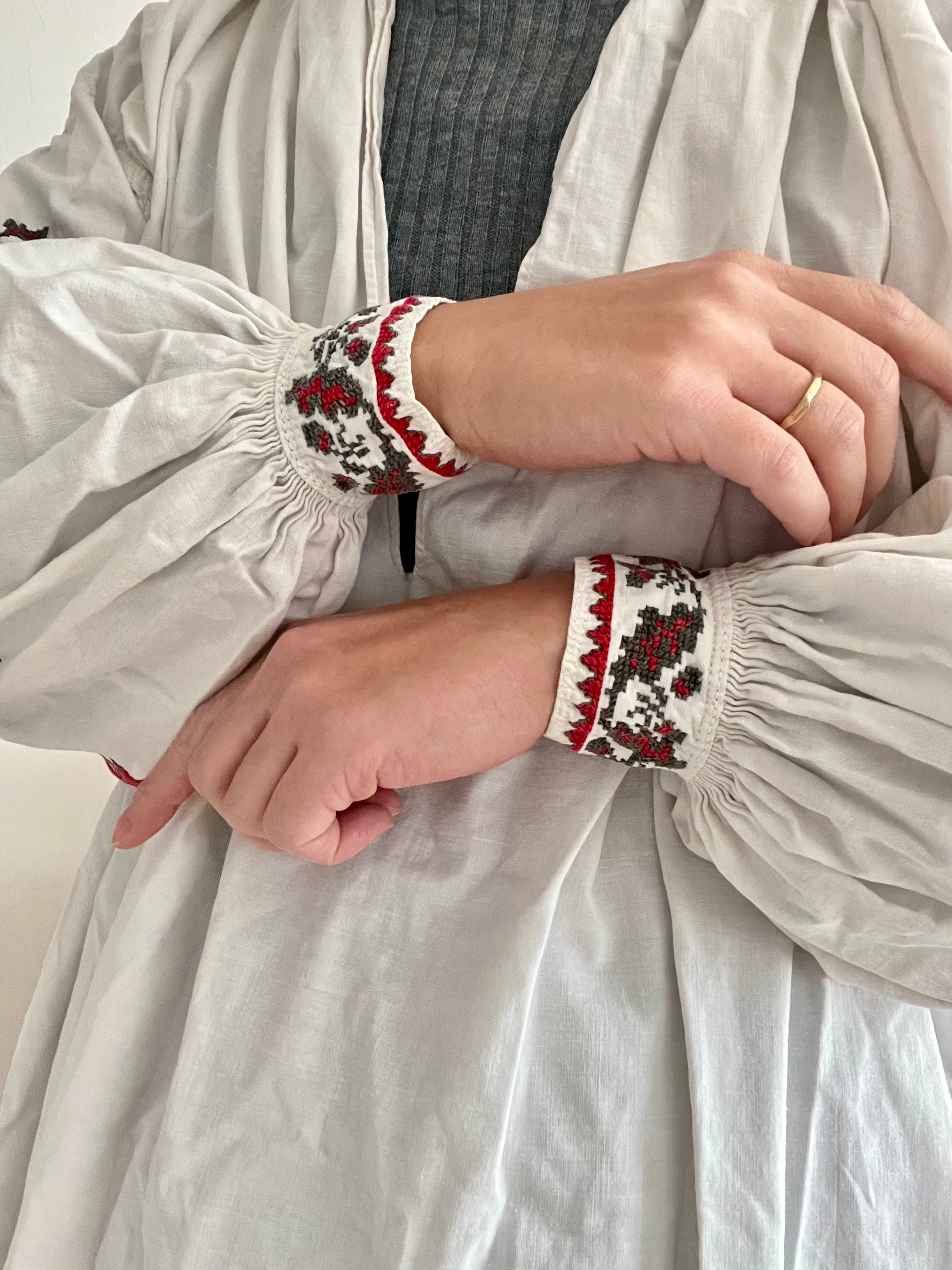 ソロチカの刺繍は、病気や悪霊などから身を護るための「魔除け」の意味があります。悪いものが入ってこないよう、袖や襟元、裾などの外界との境目には念入りに刺繍が施されているのです。