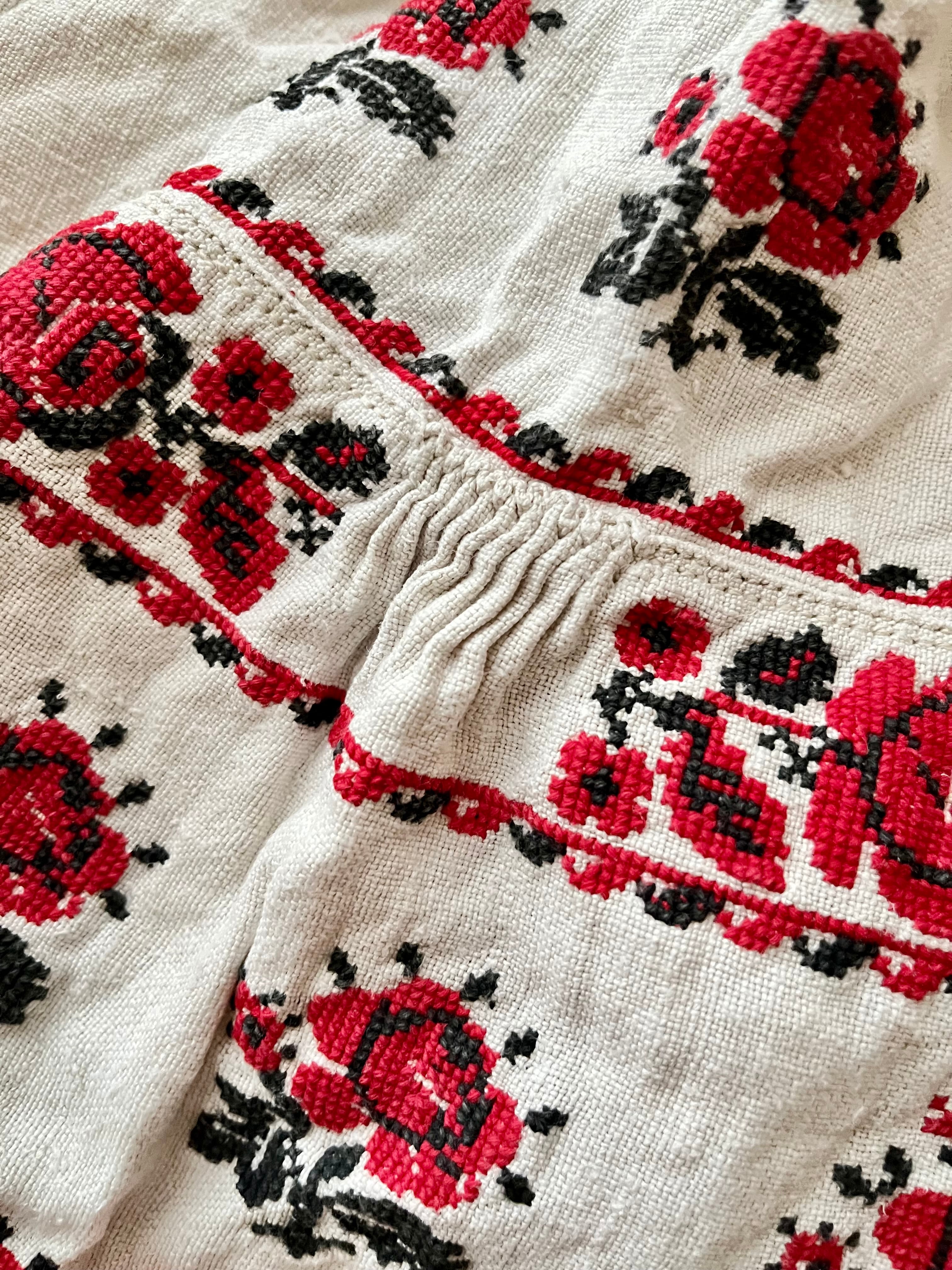 肉厚のリネン生地に発色がよく美しいバラの刺繍が施されたソロチカ。