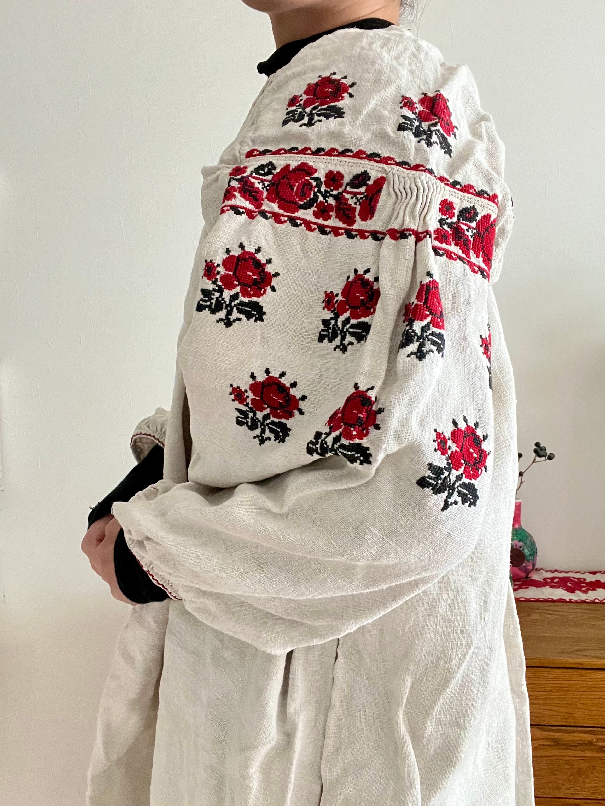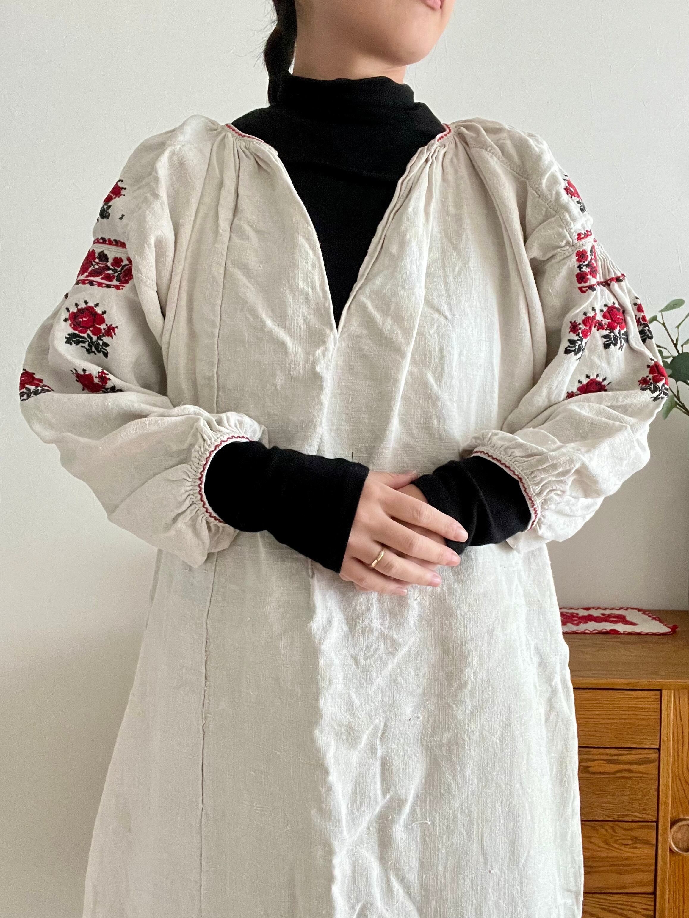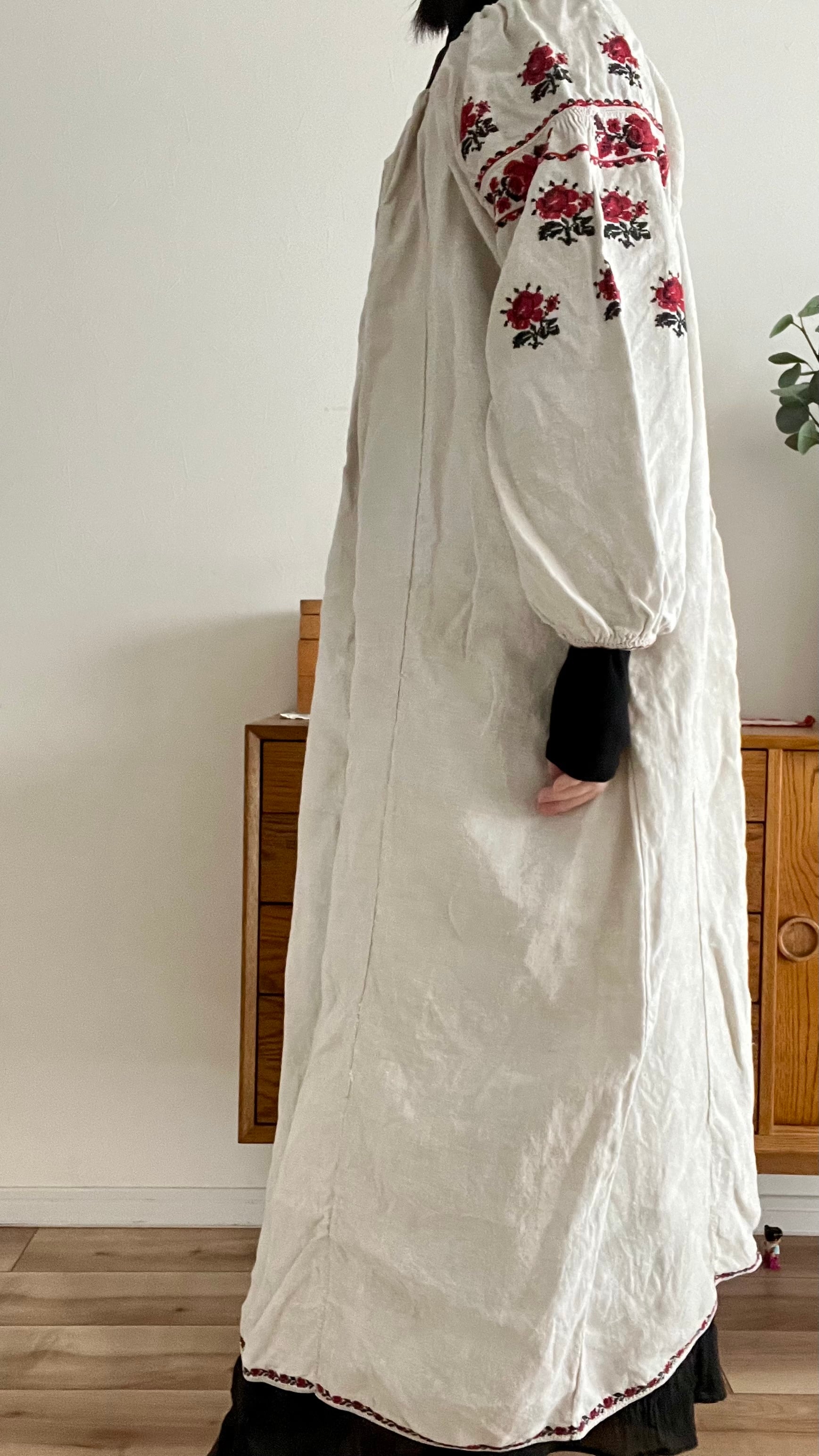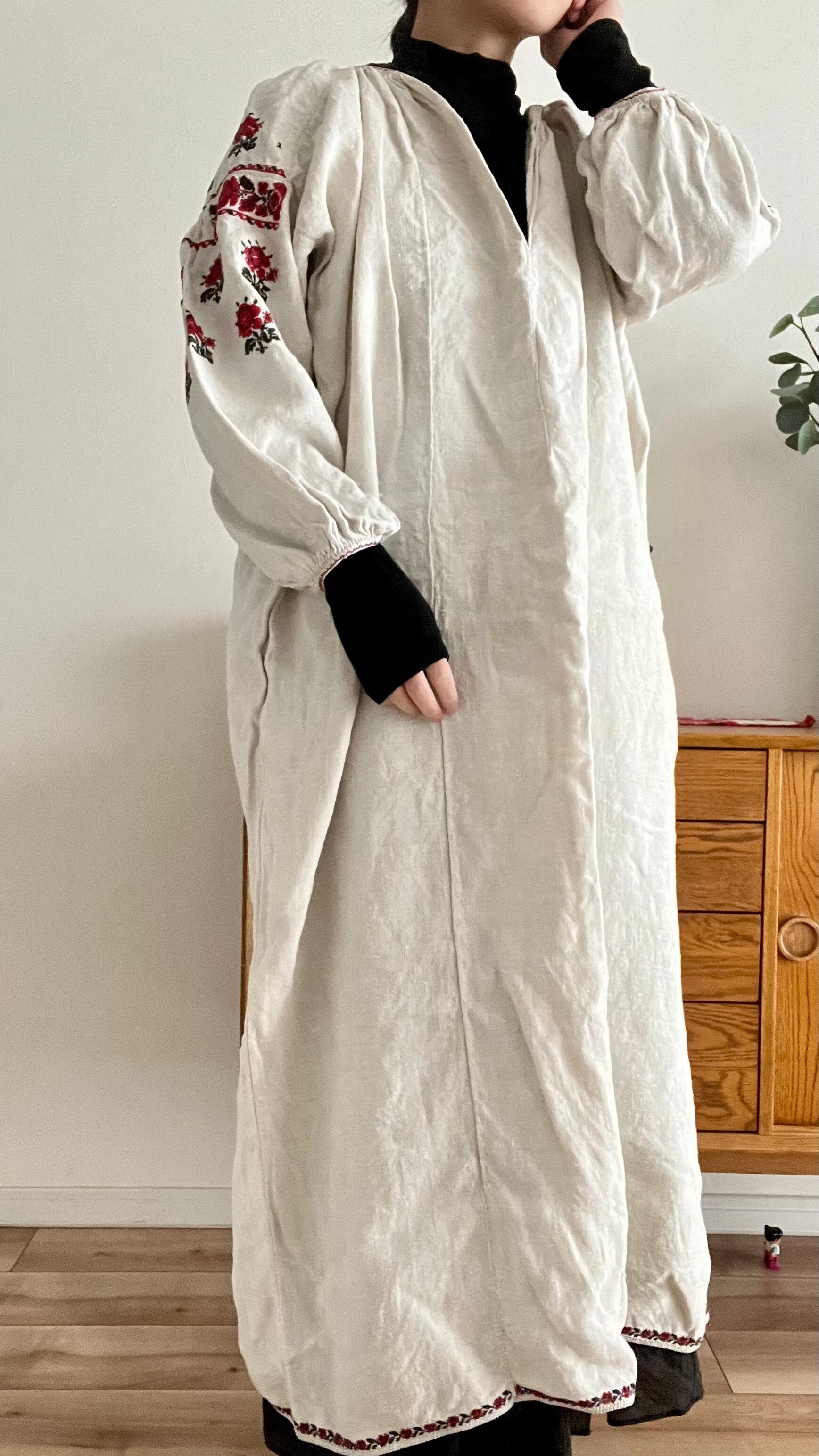 リネン×薔薇のウクライナ刺繍ワンピース ヴィシヴァンカ ソロチカ