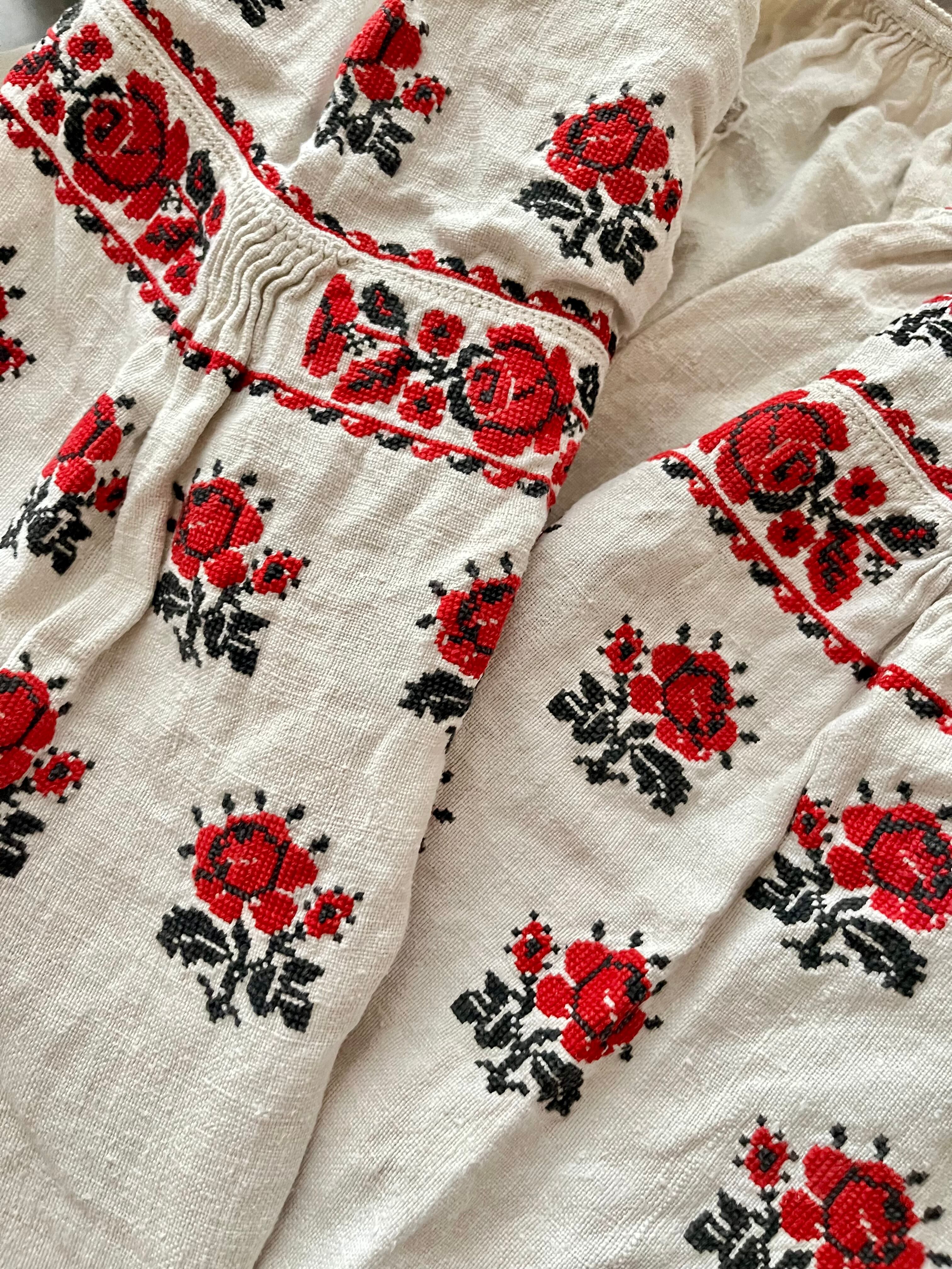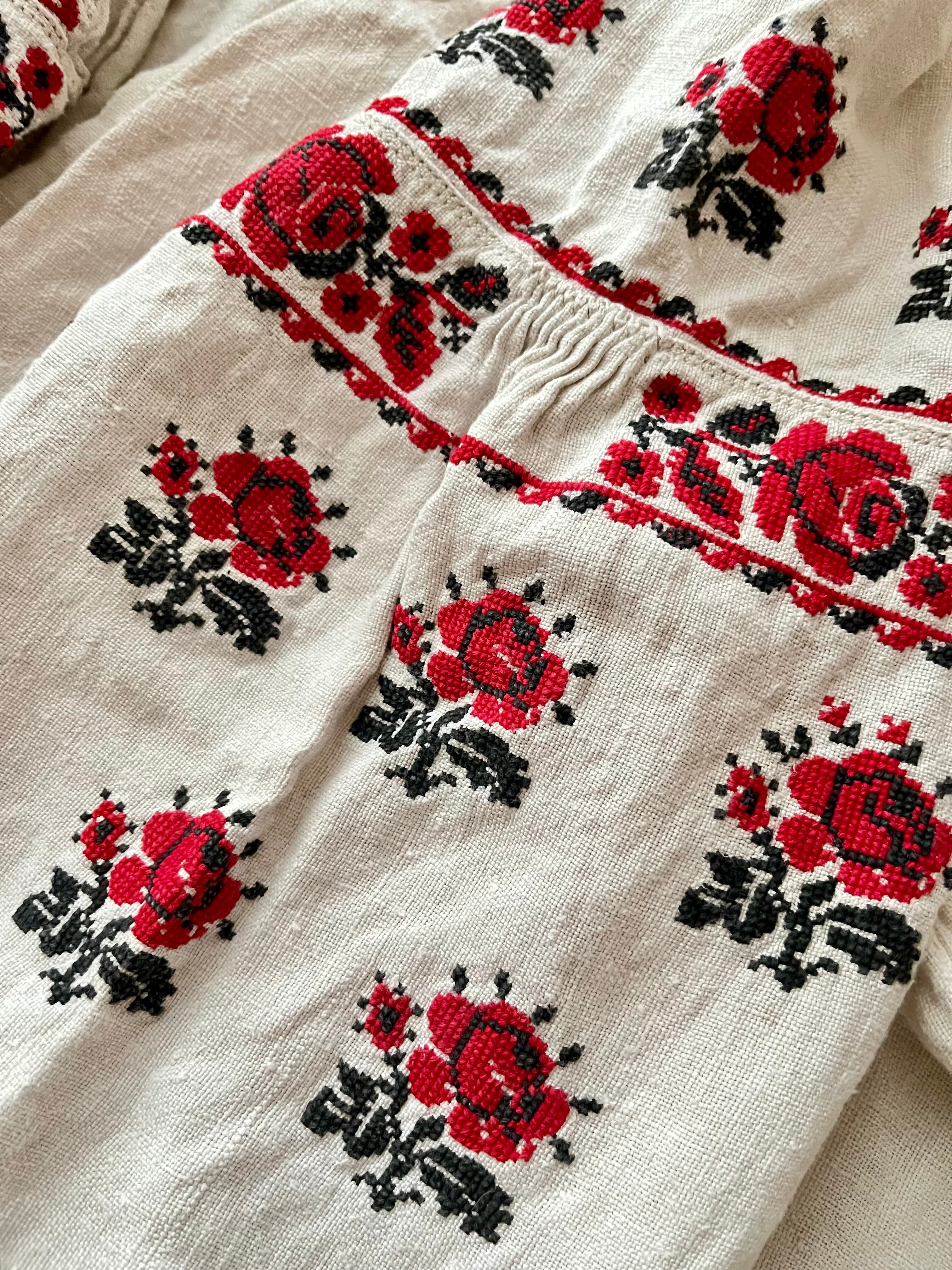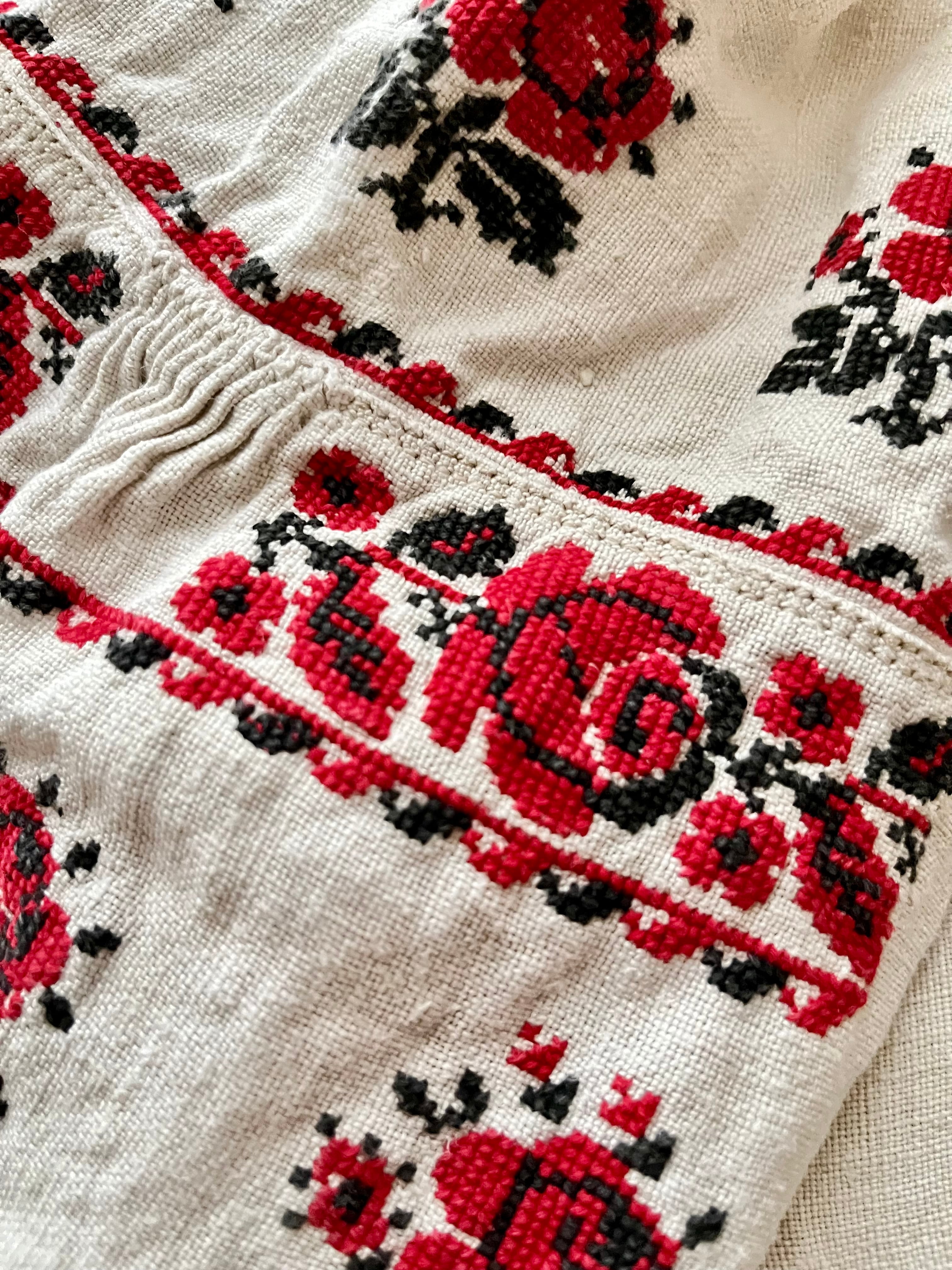 リネン×薔薇のウクライナ刺繍ワンピース ヴィシヴァンカ ソロチカ