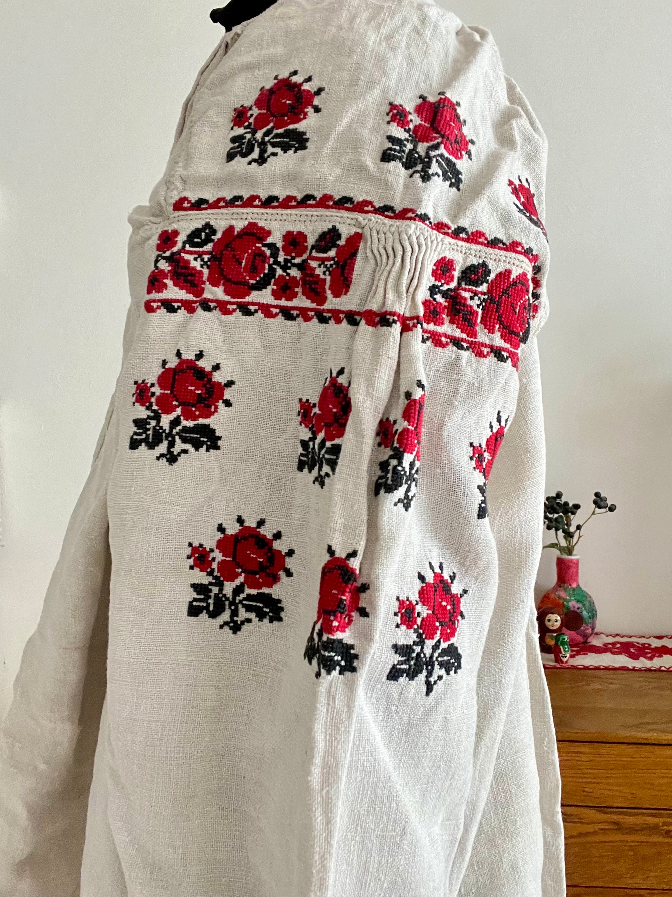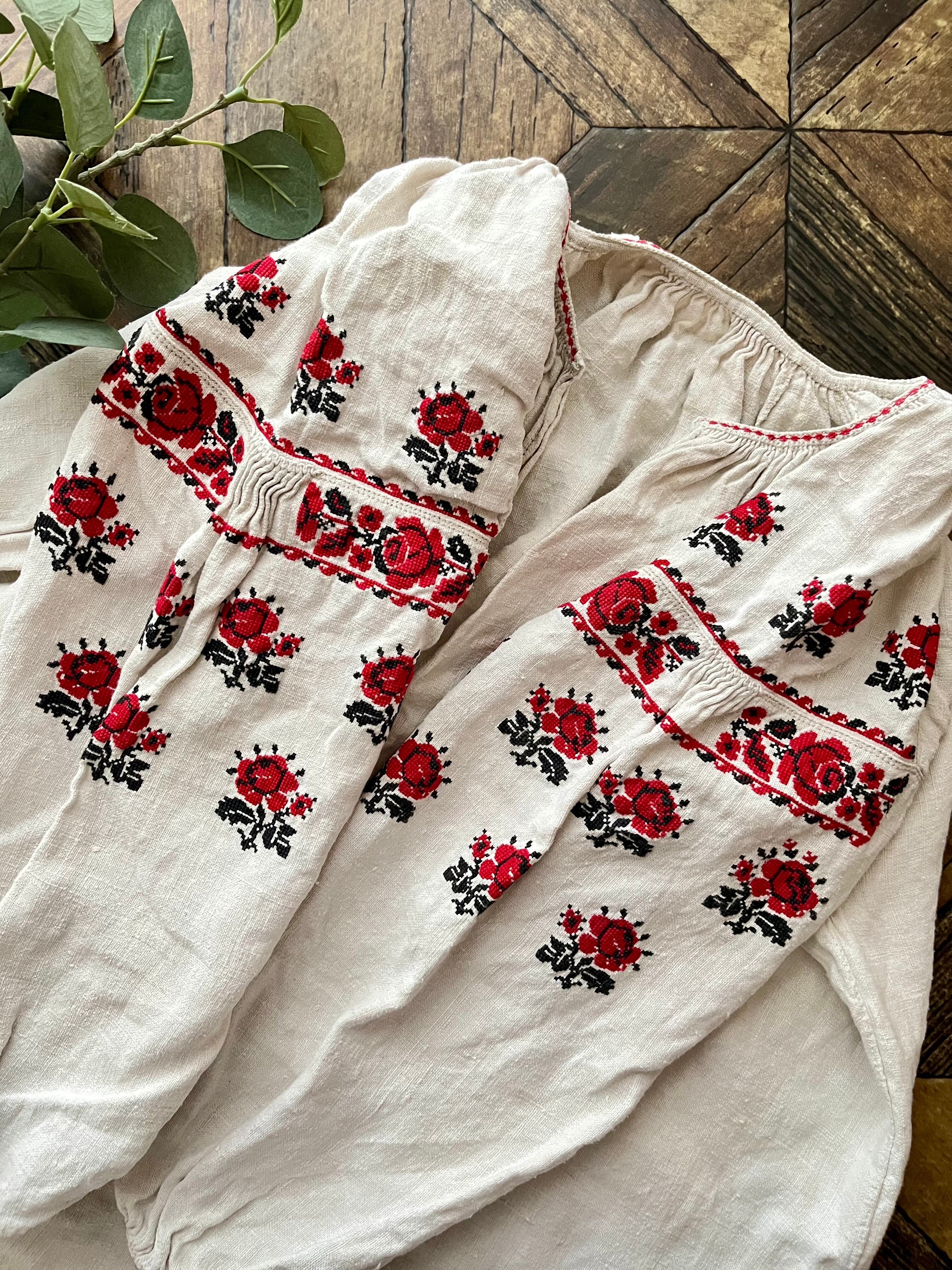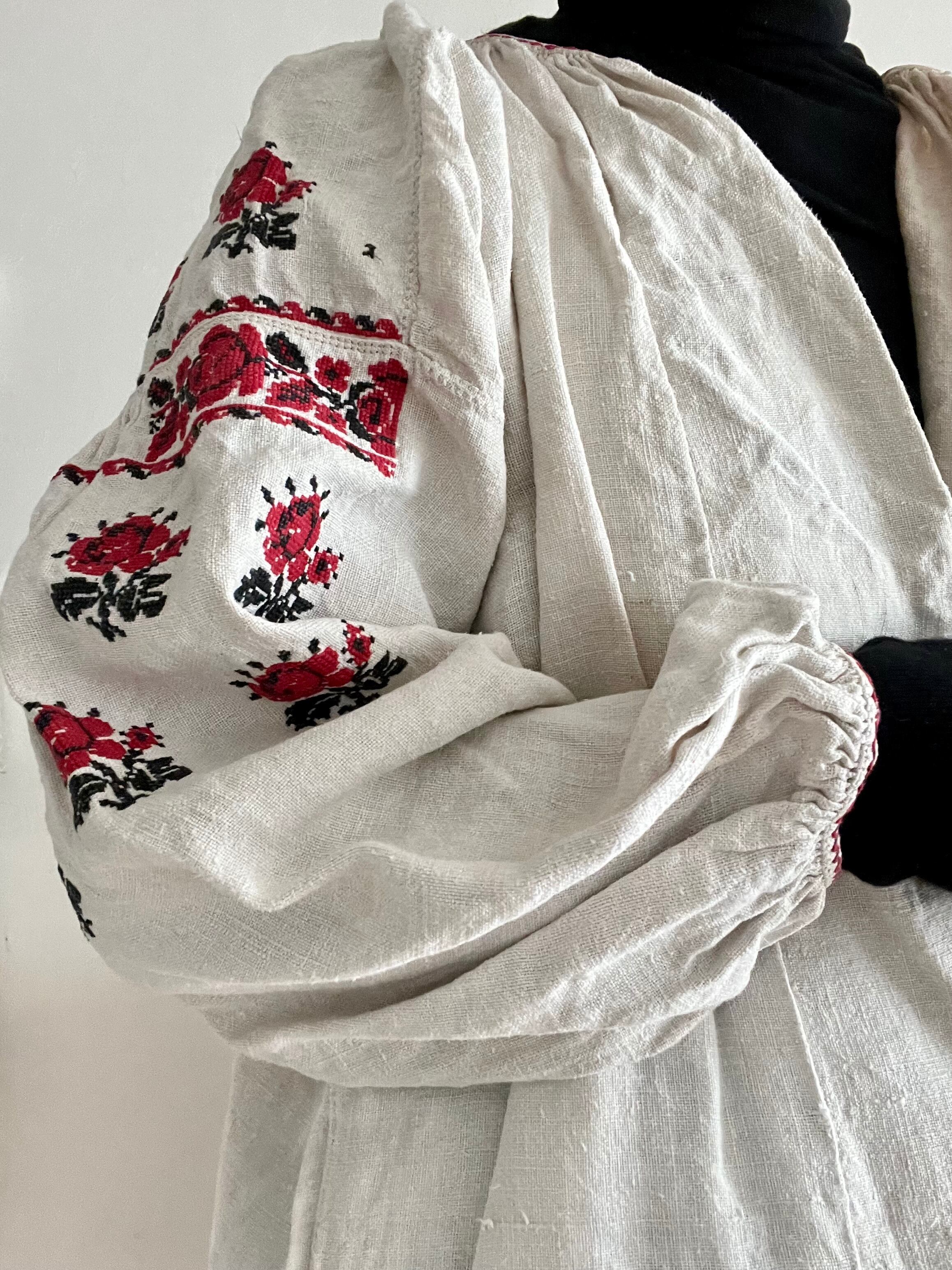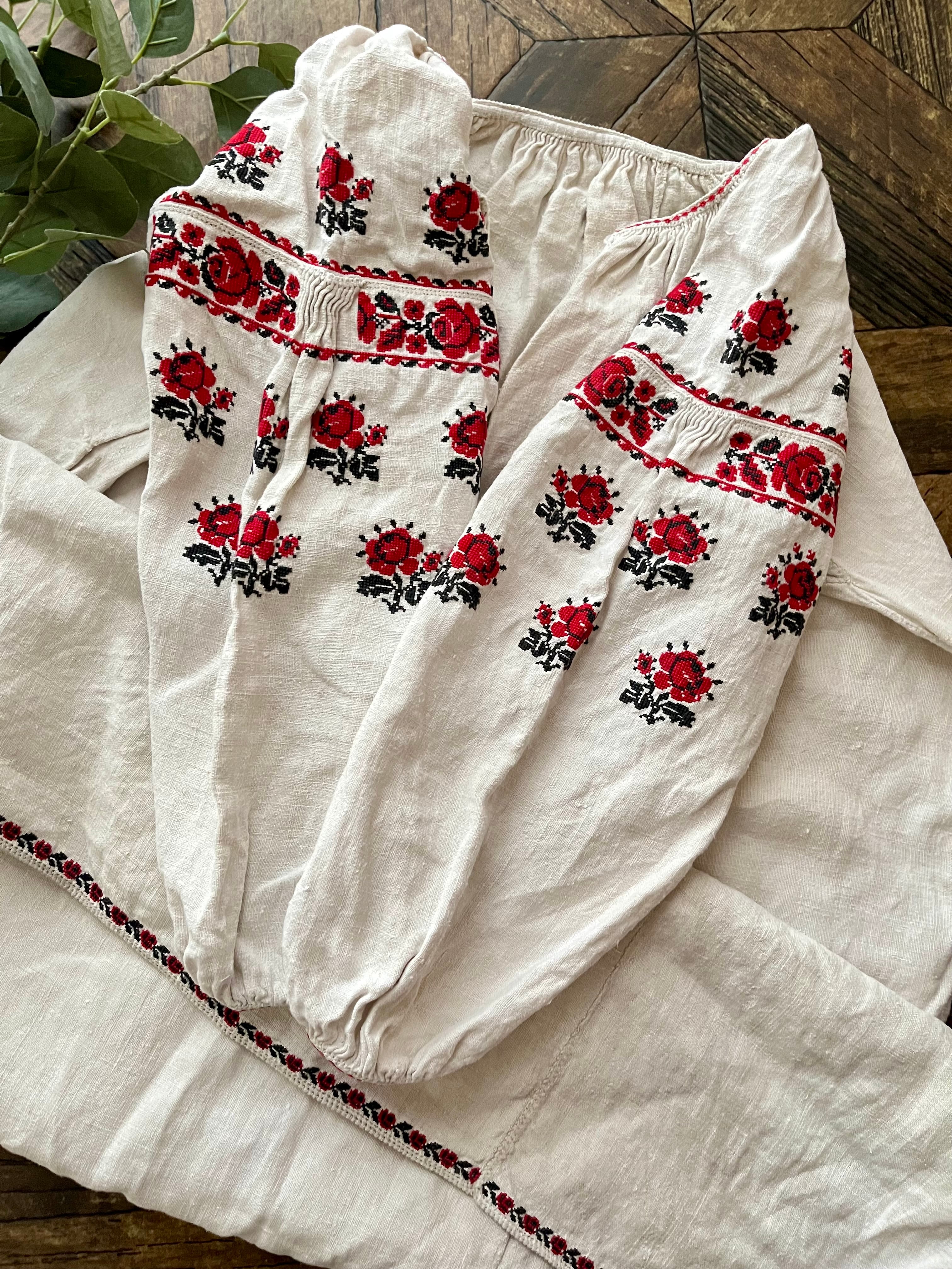 リネン×薔薇のウクライナ刺繍ワンピース ヴィシヴァンカ ソロチカ