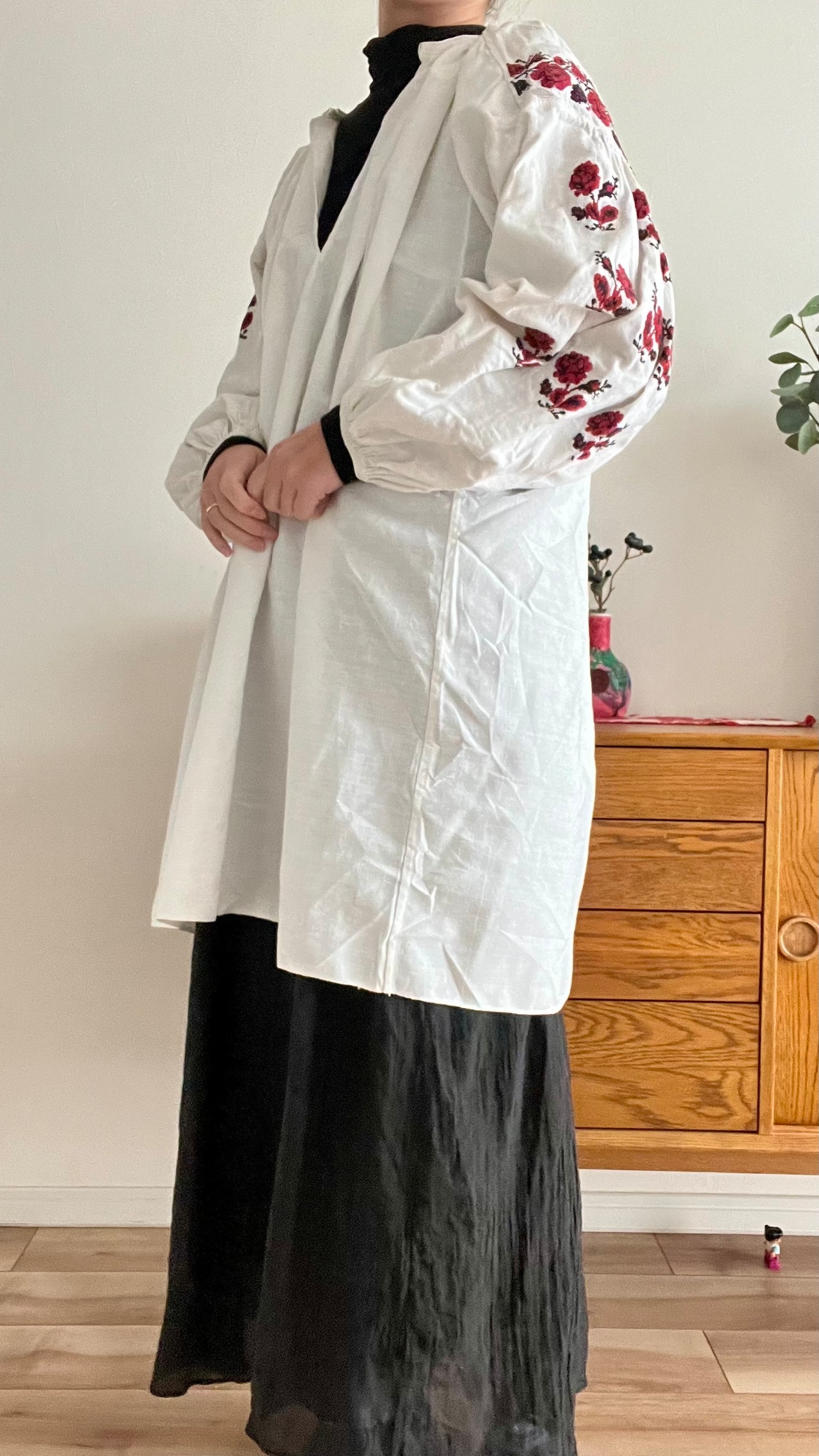 赤いバラのウクライナ刺繍チュニック ヴィシヴァンカ ソロチカ