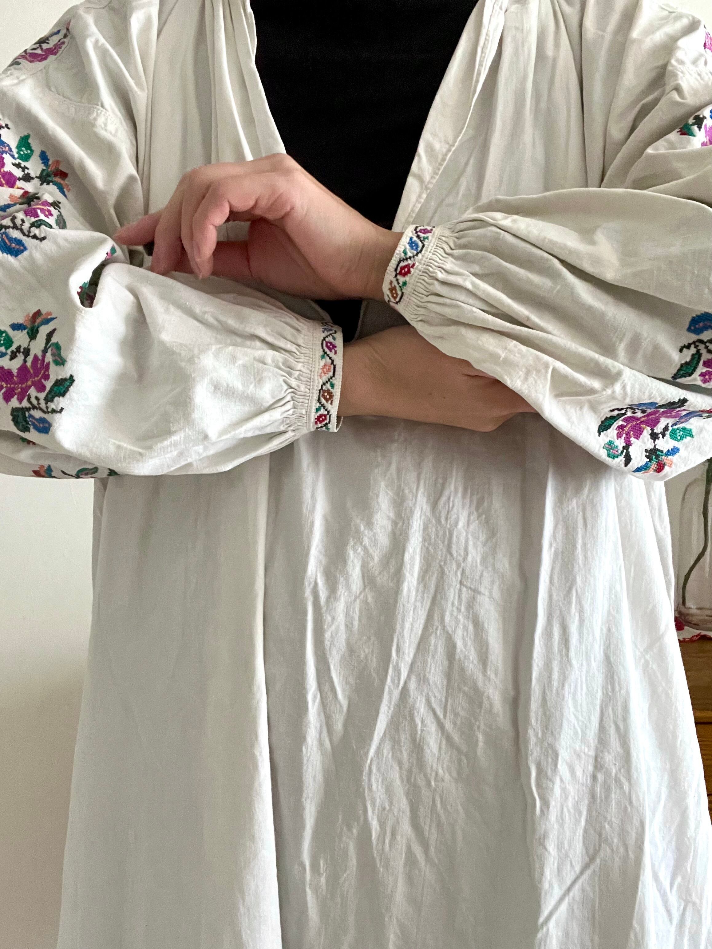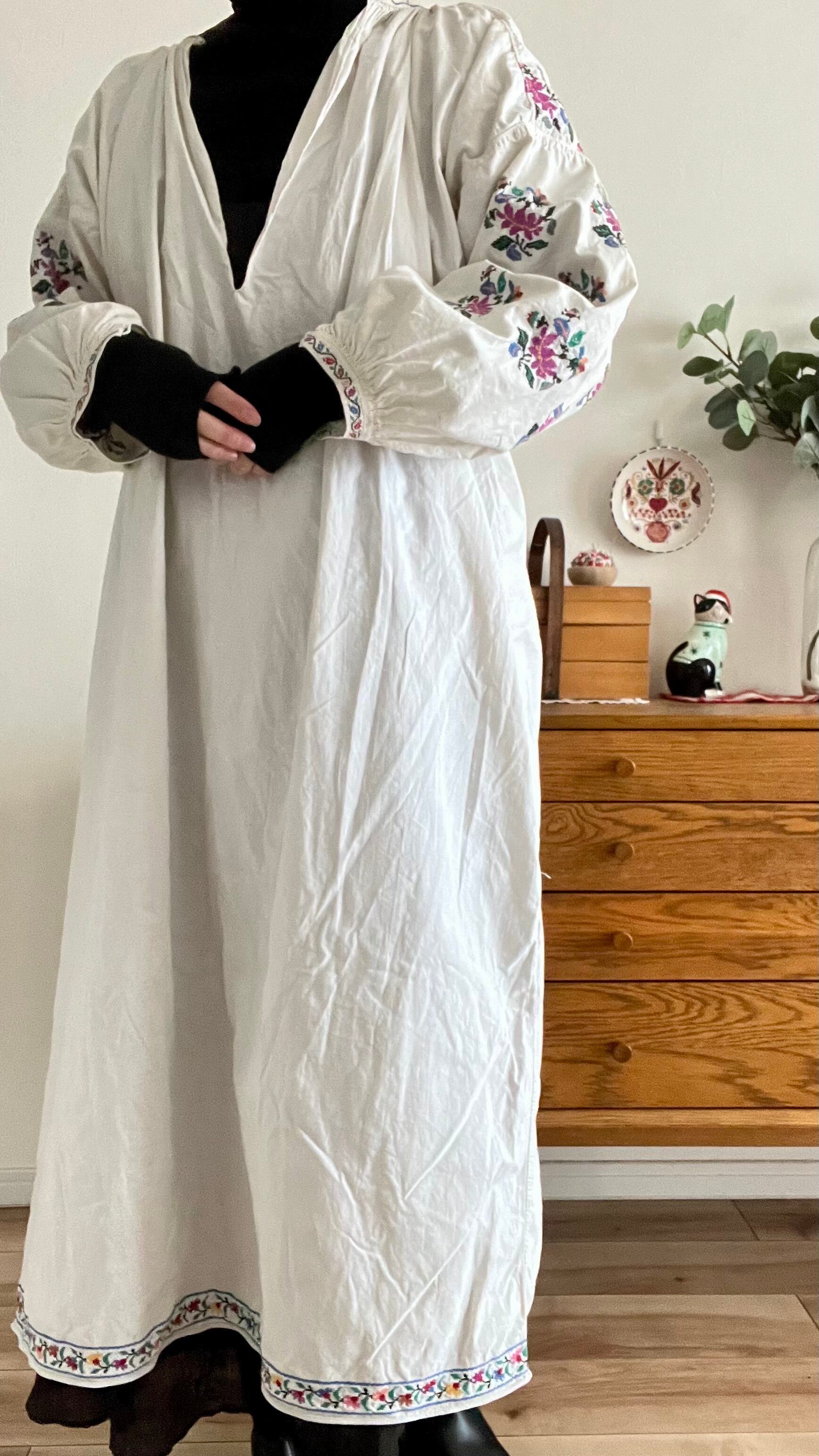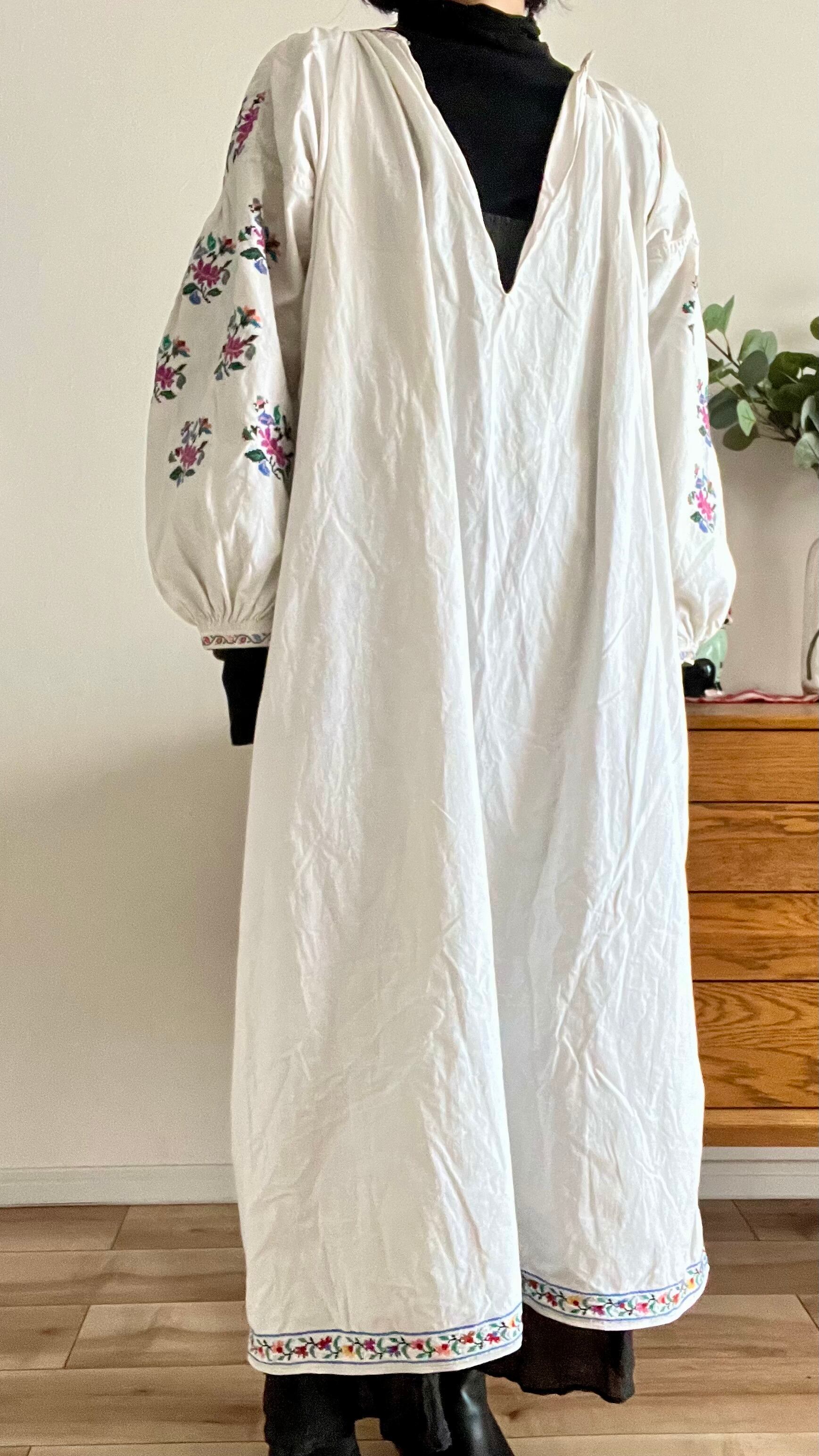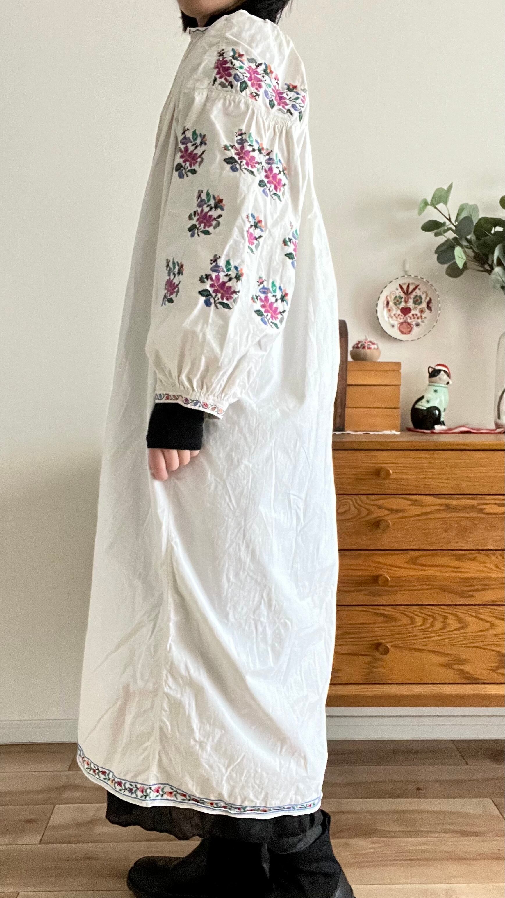 ※厚手のリネン素材のウクライナ刺繍ワンピースにいて
