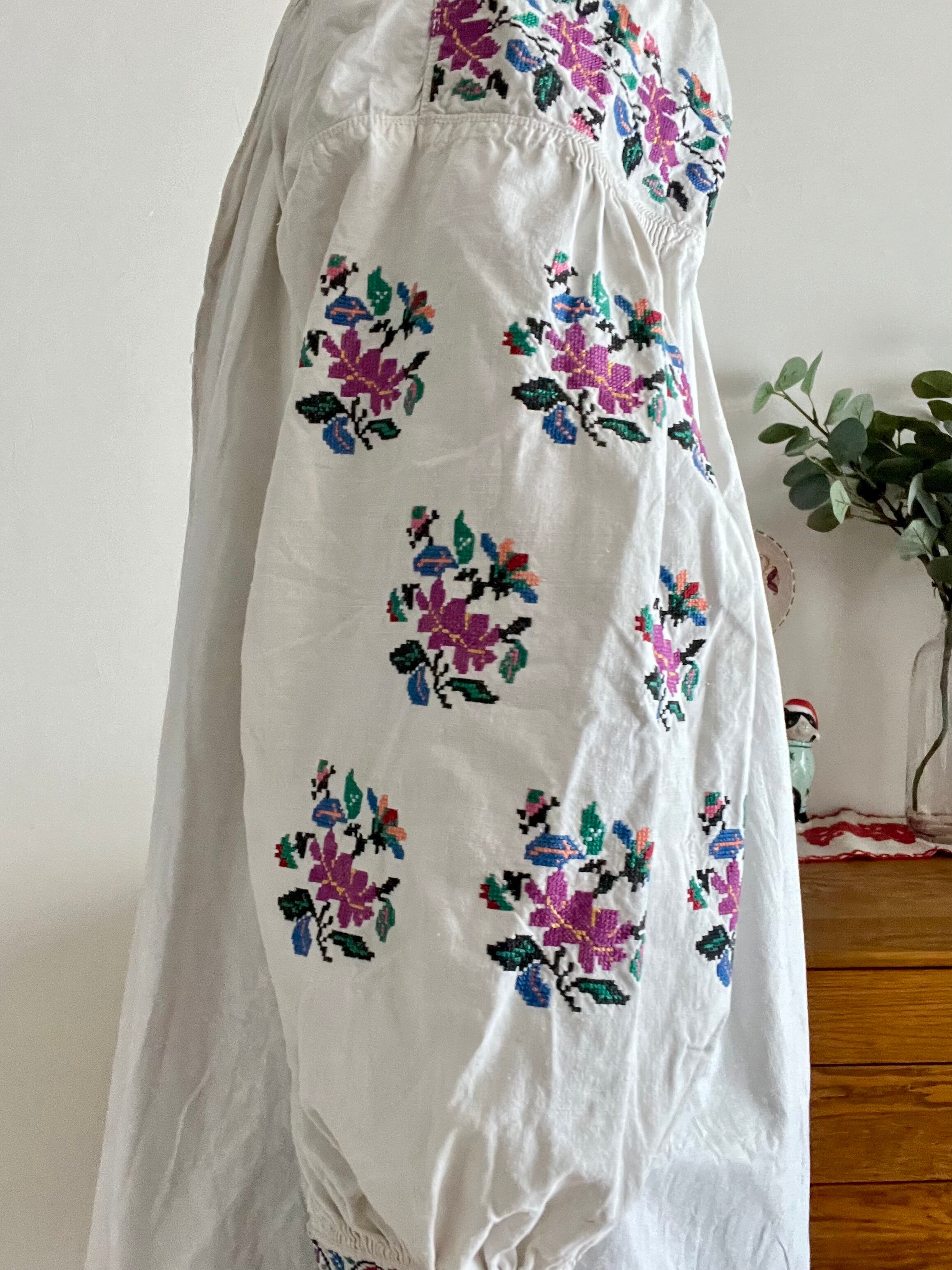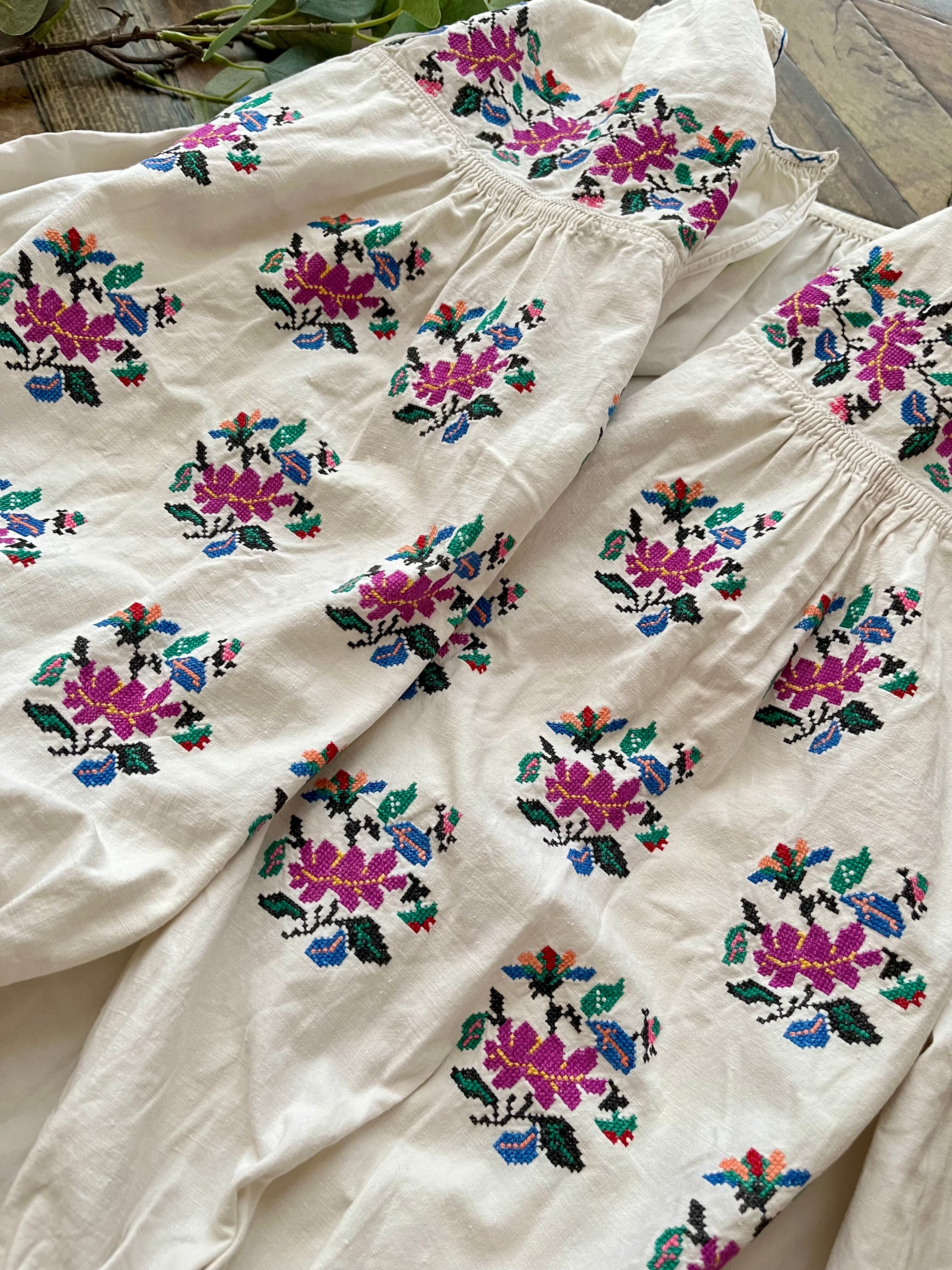 ピンクパープルのお花のウクライナ刺繍ワンピース ヴィシヴァンカ ソロチカ