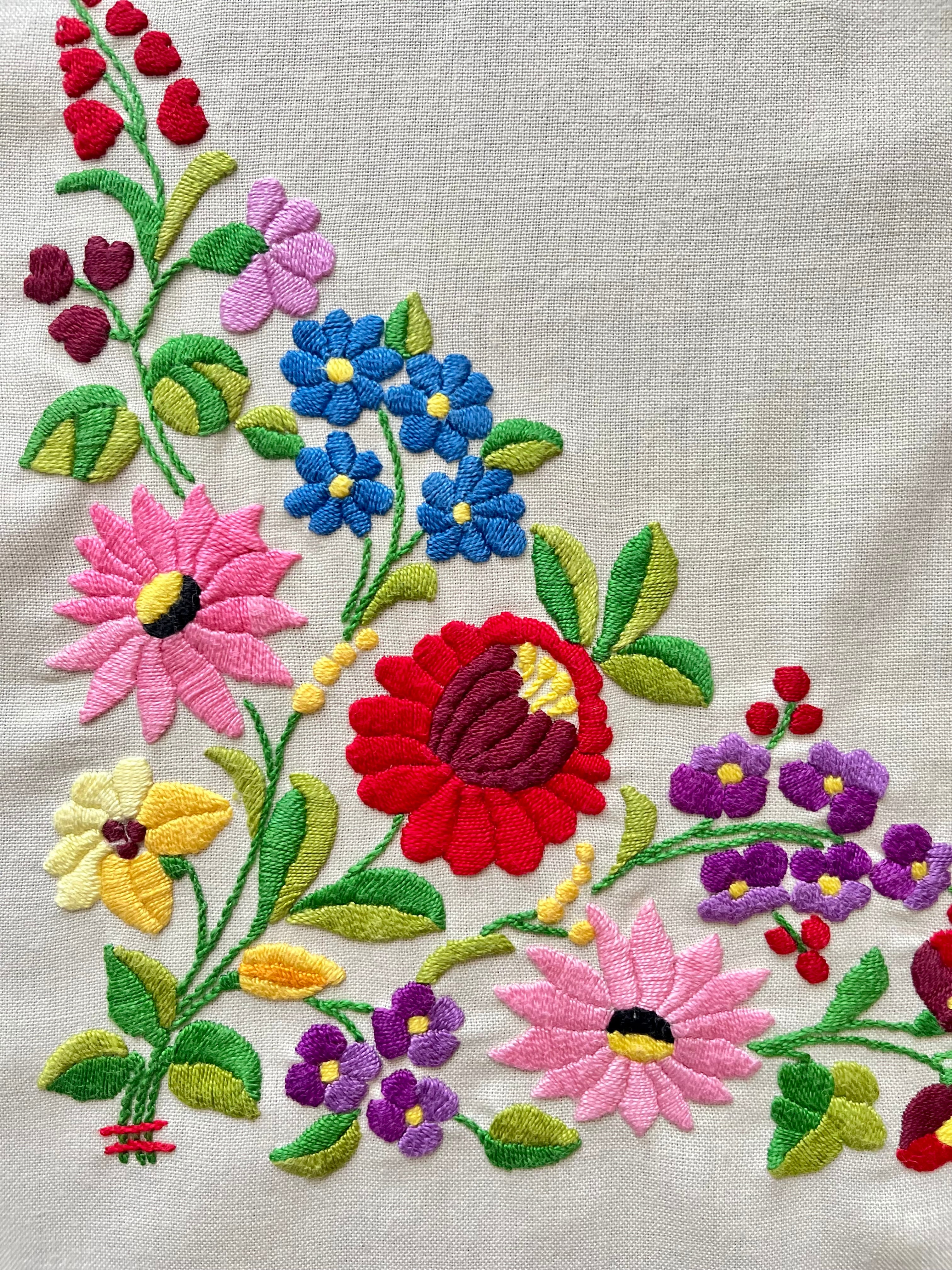 刺繍はとても丁寧で細やか。寒い冬にも元気をもらえそうなパワフルなクロスです!