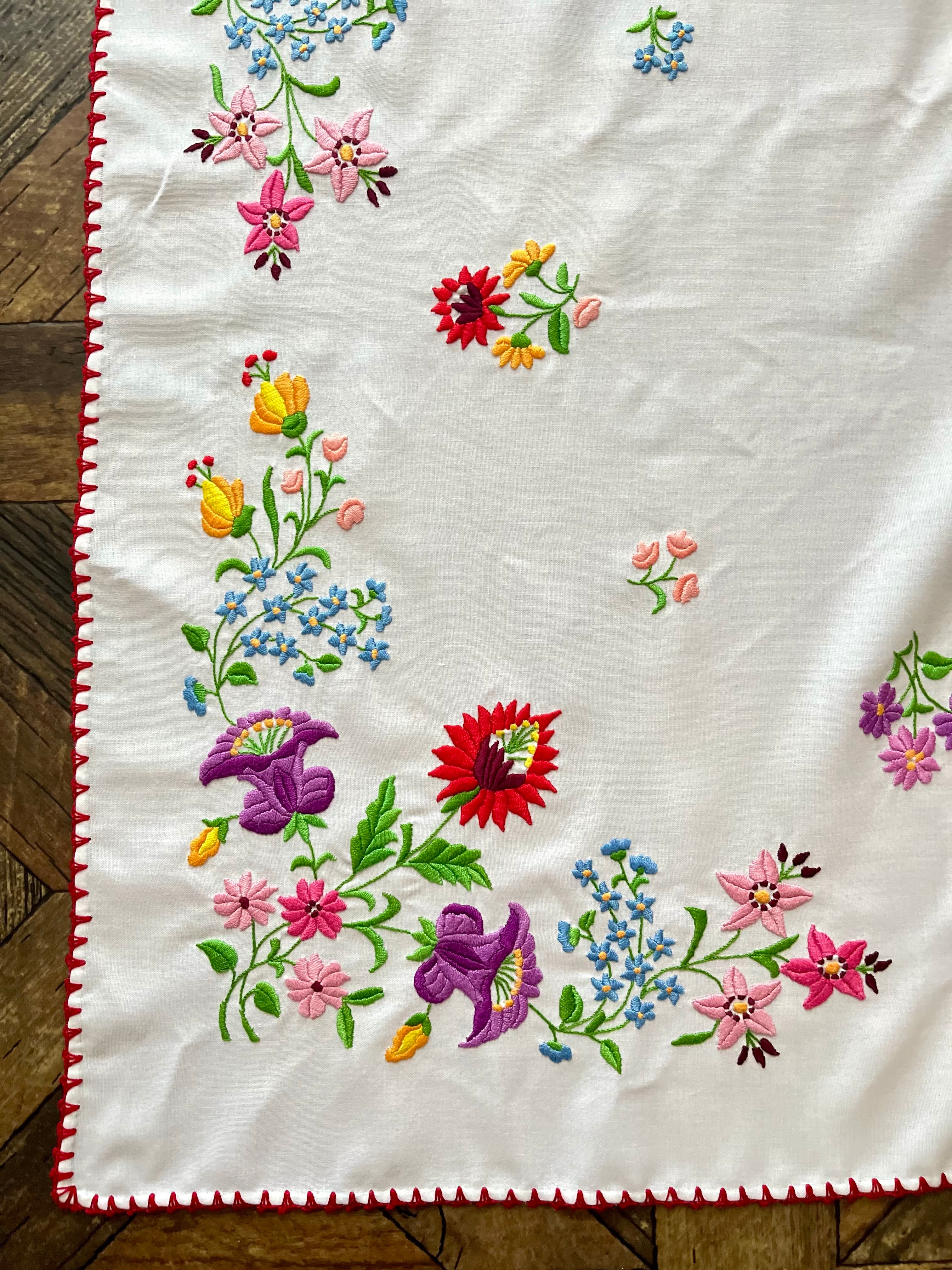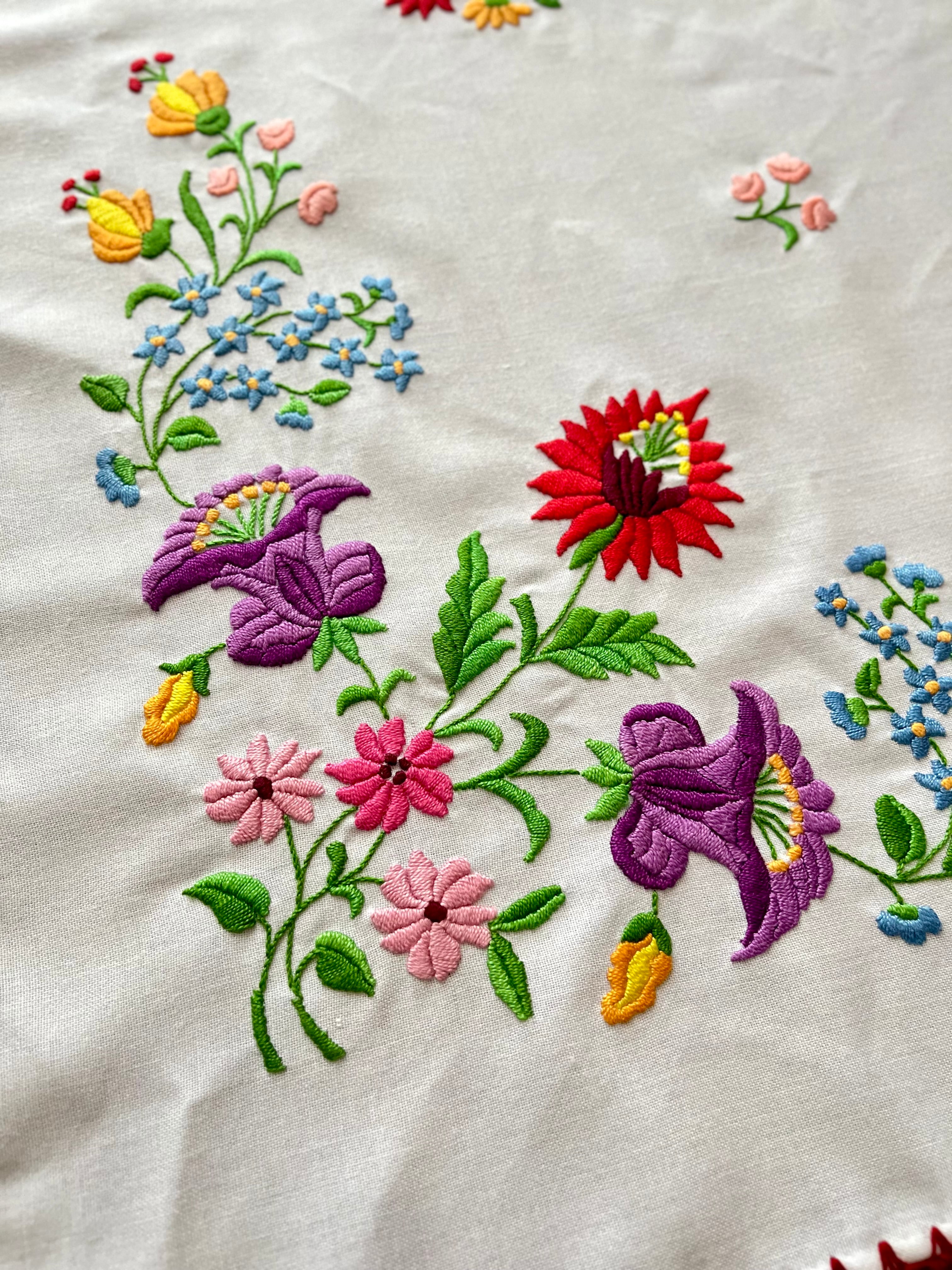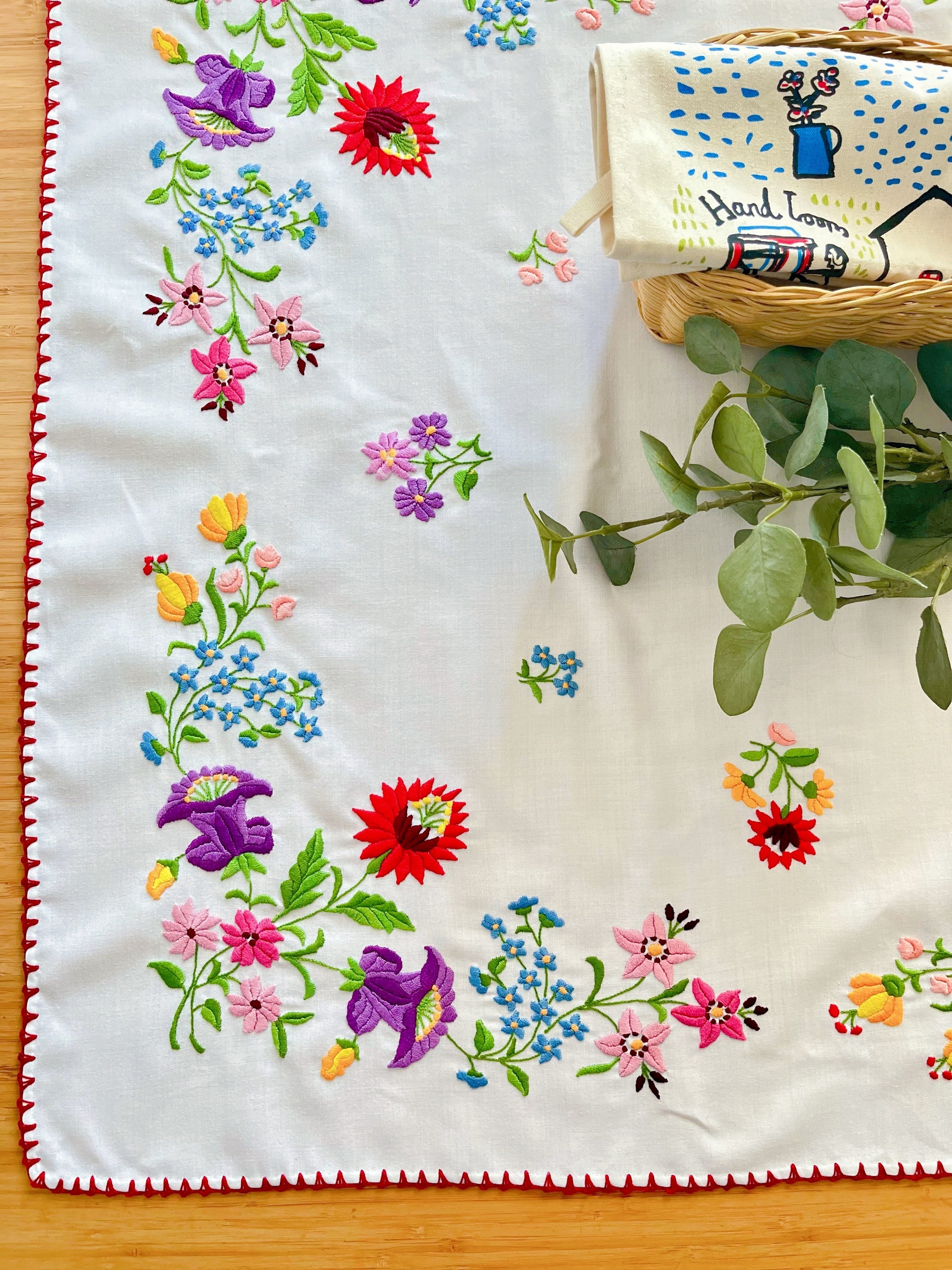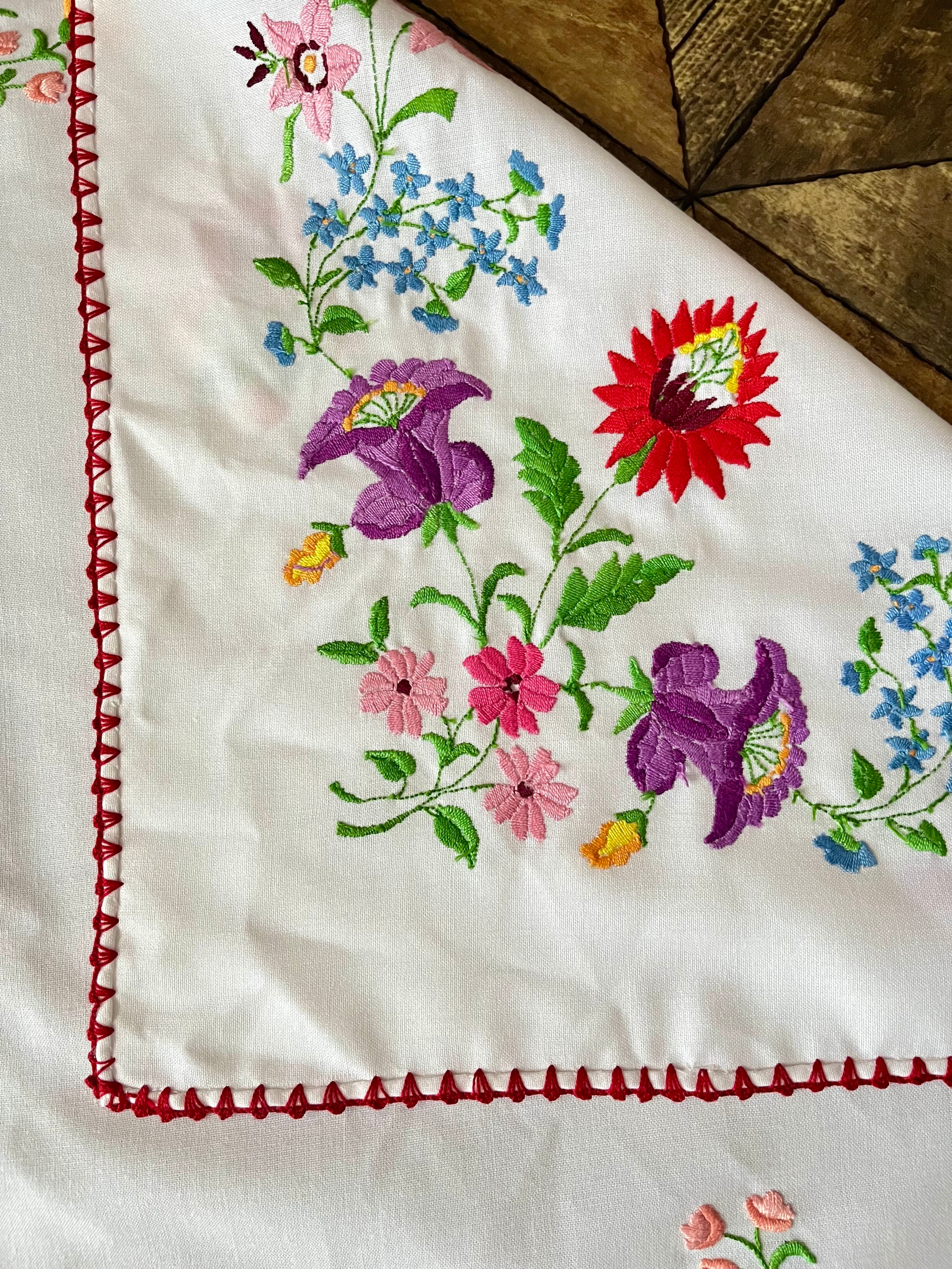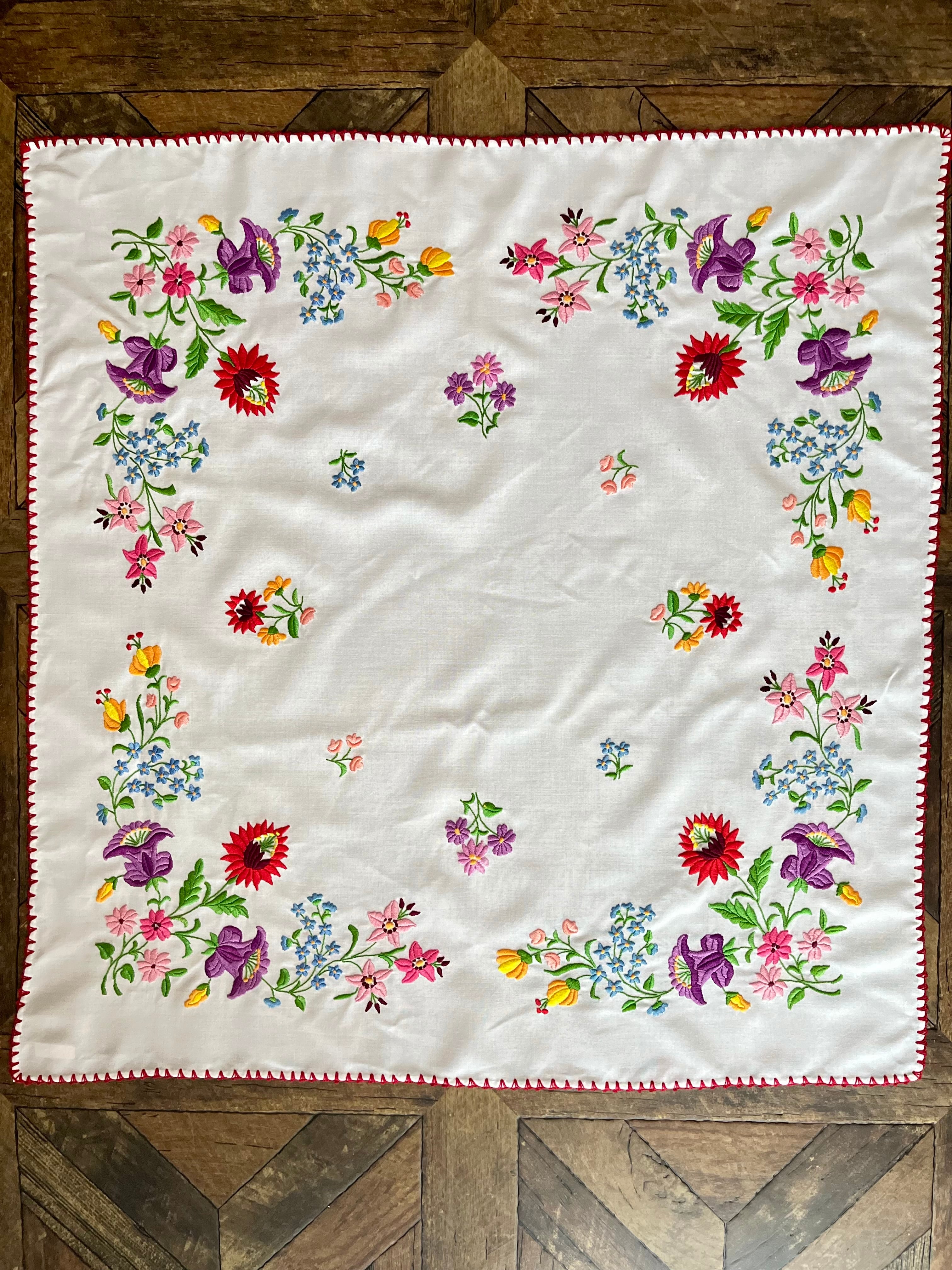 小花がかわいいテーブルクロス ヴィンテージ カロチャ刺繍 84×81.5 cm