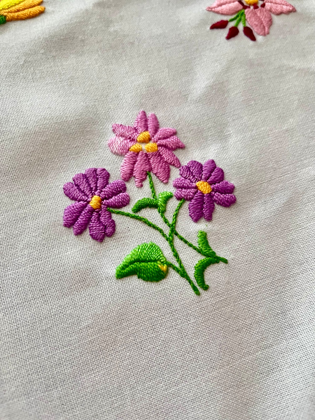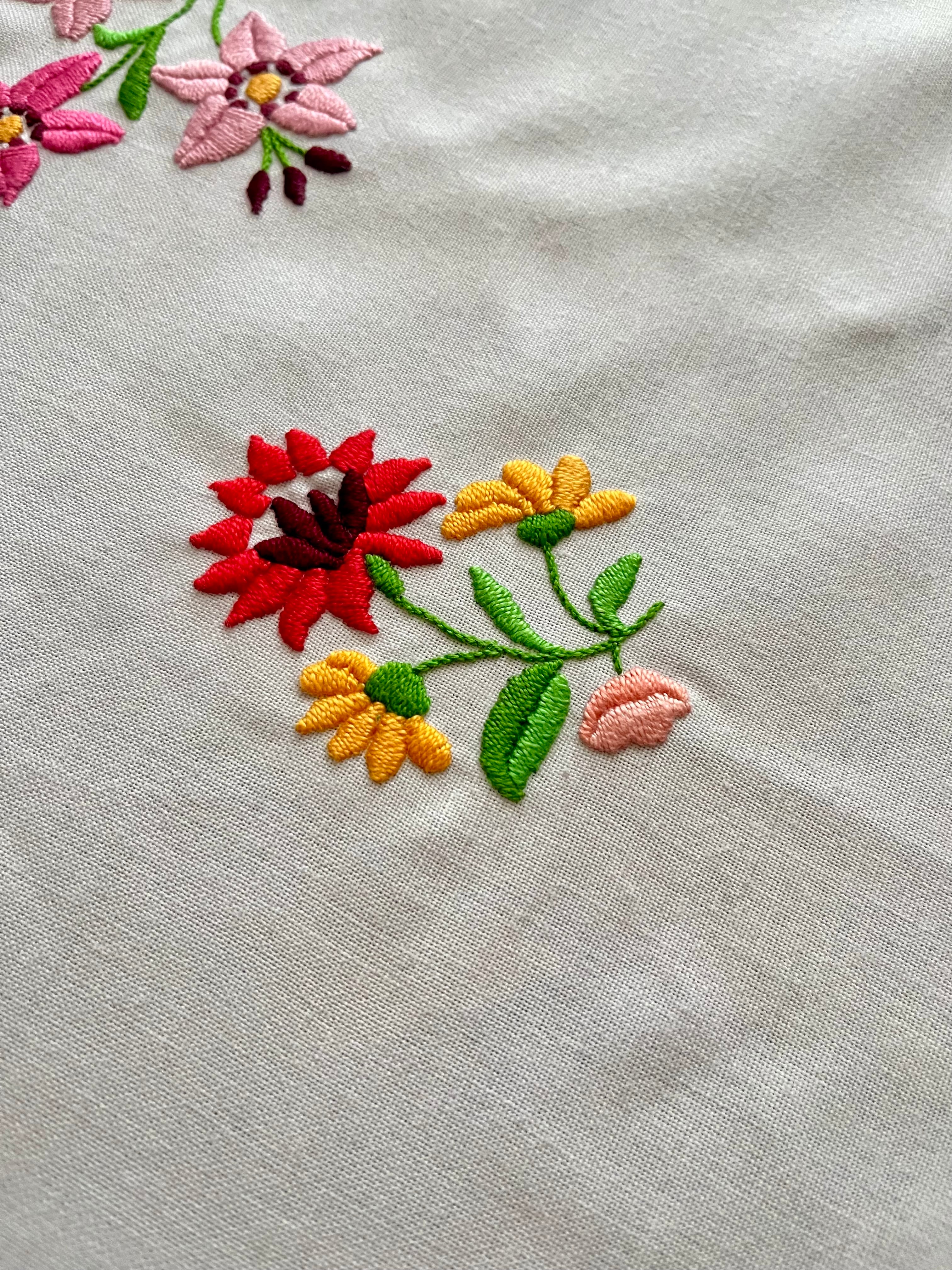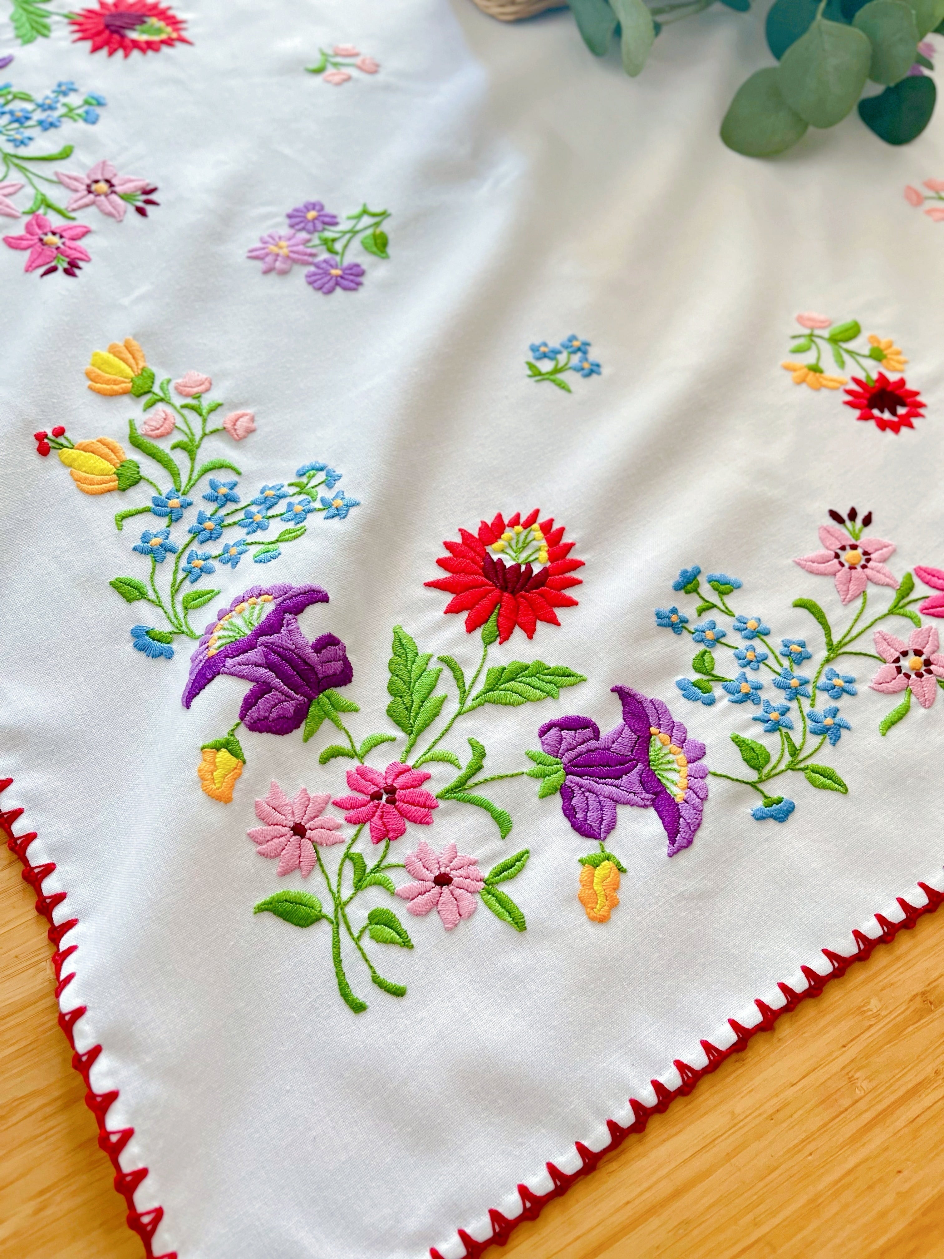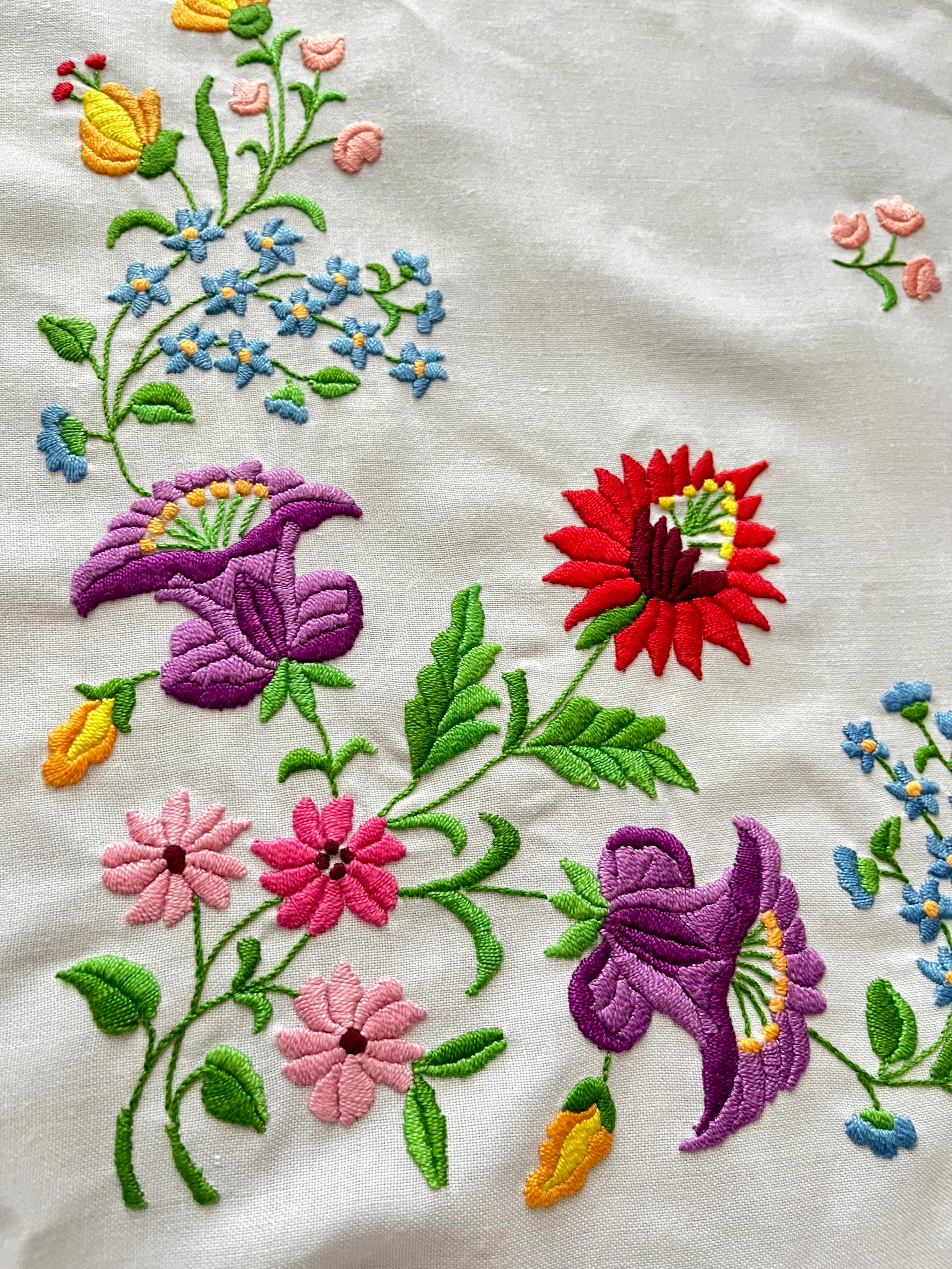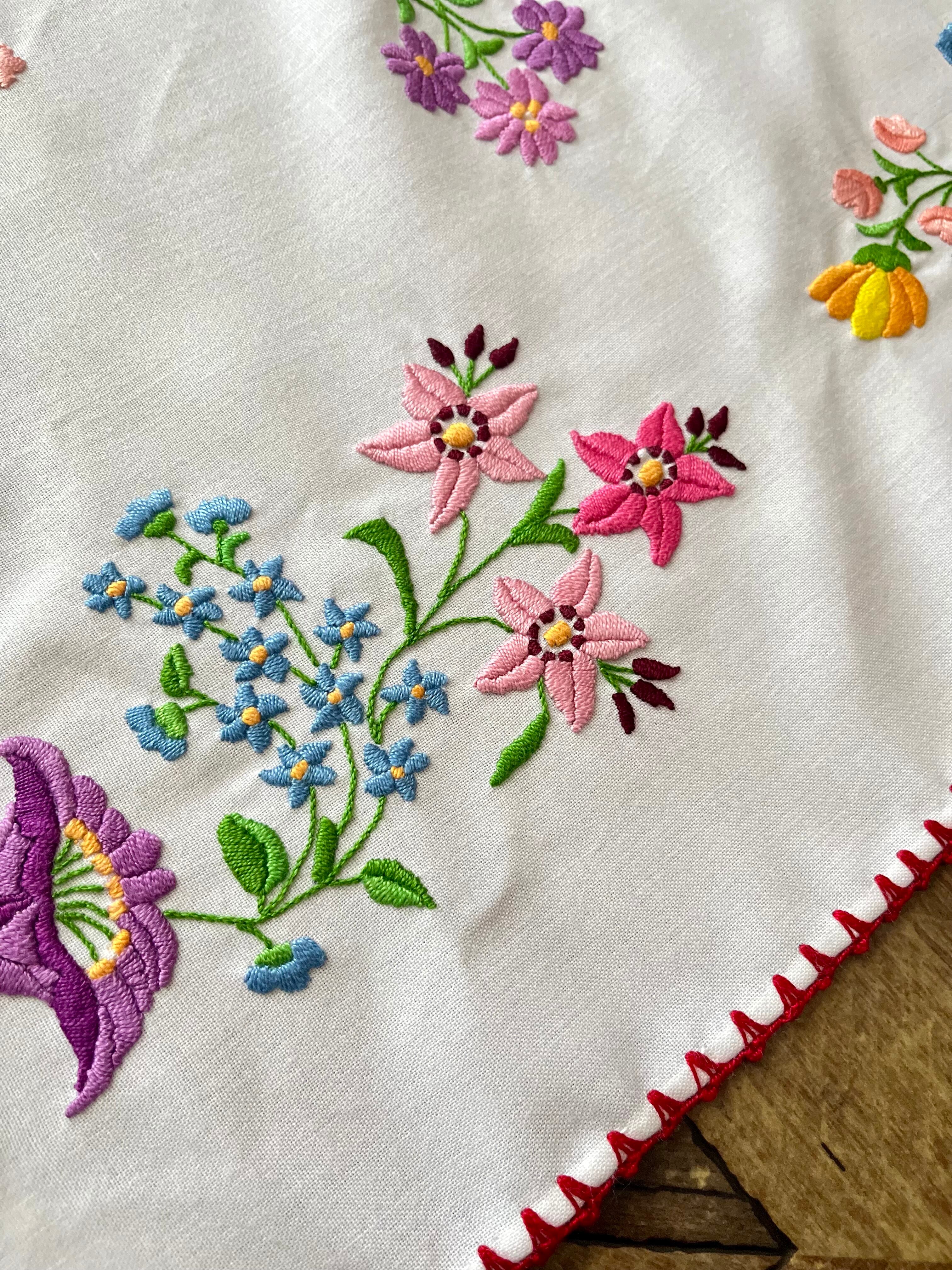 小花がかわいいテーブルクロス ヴィンテージ カロチャ刺繍 84×81.5 cm