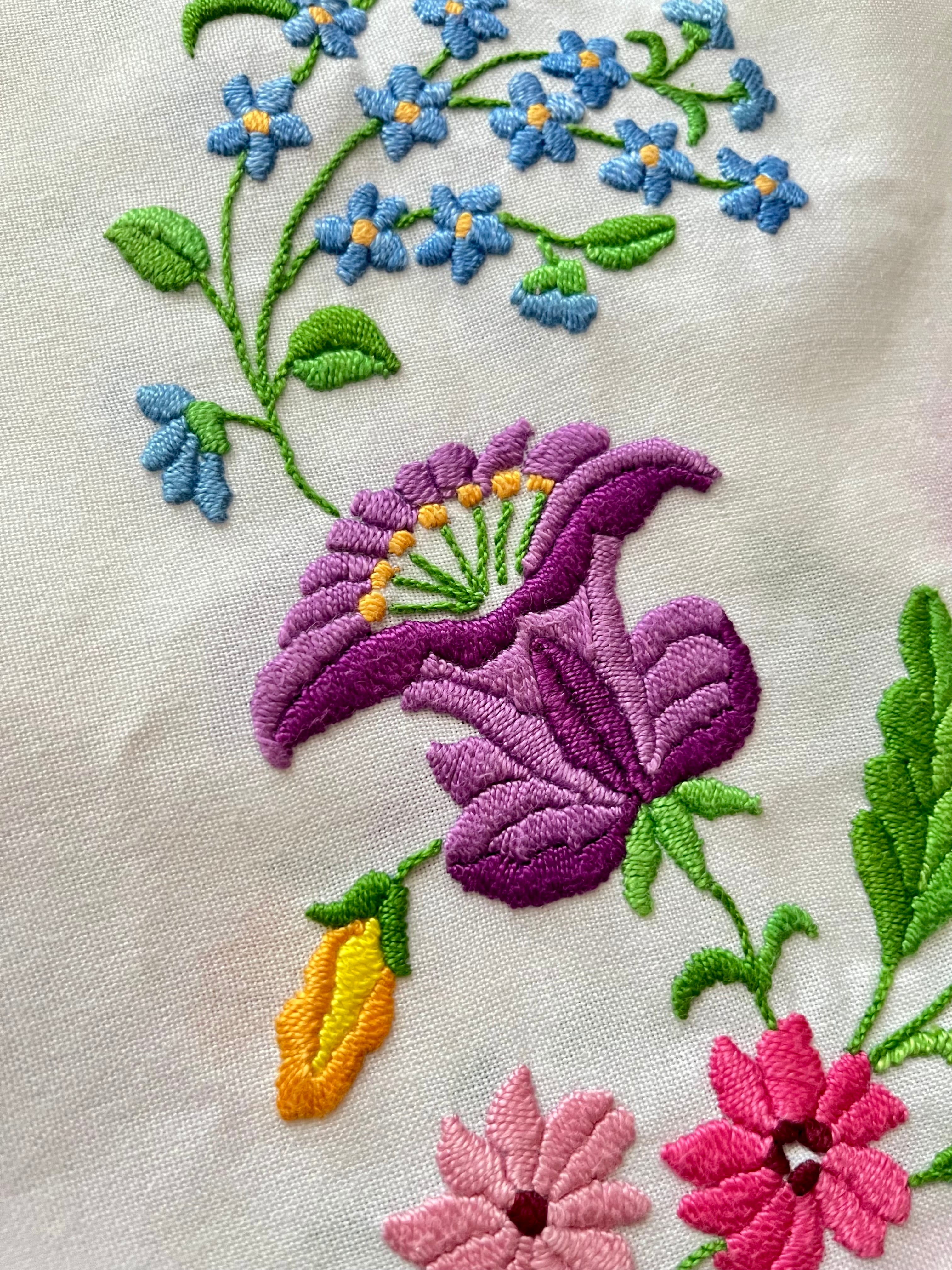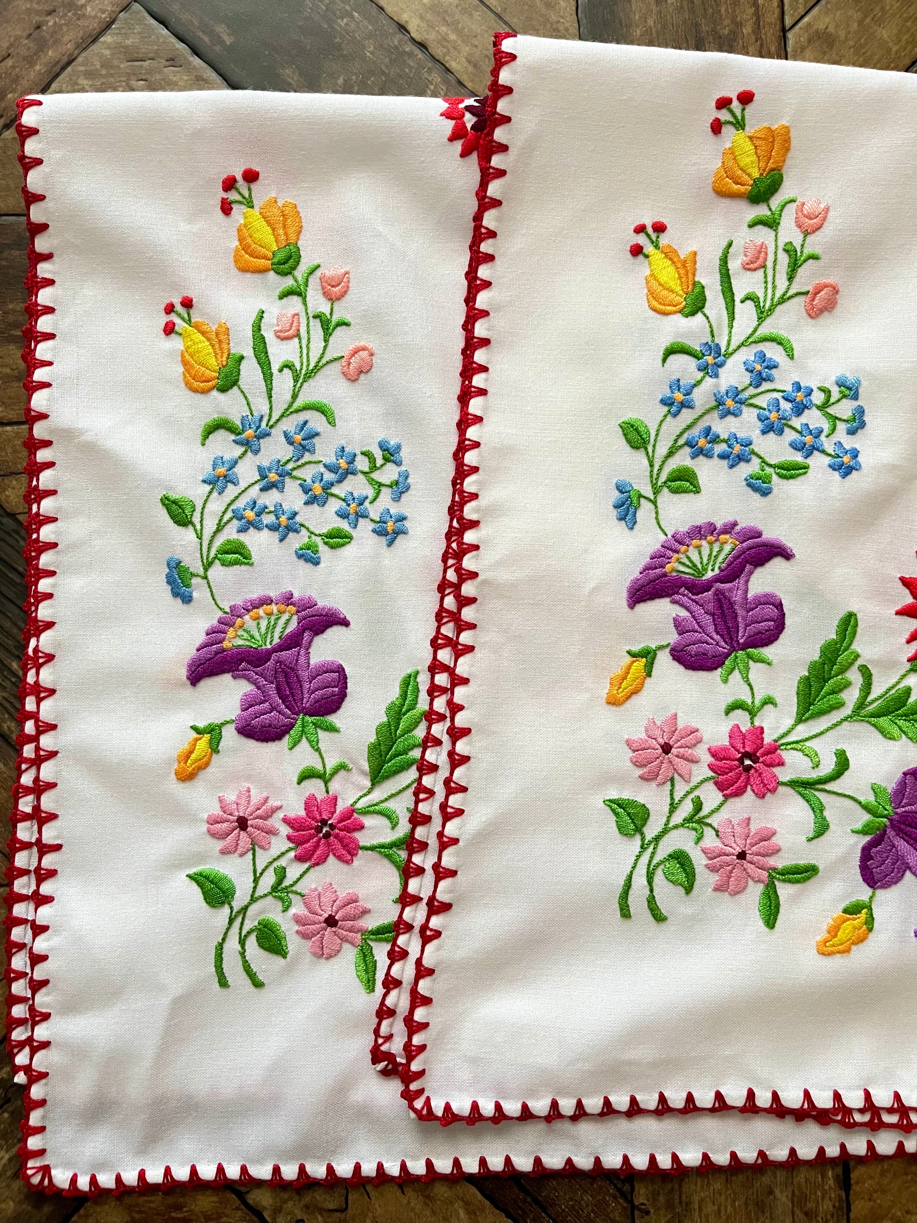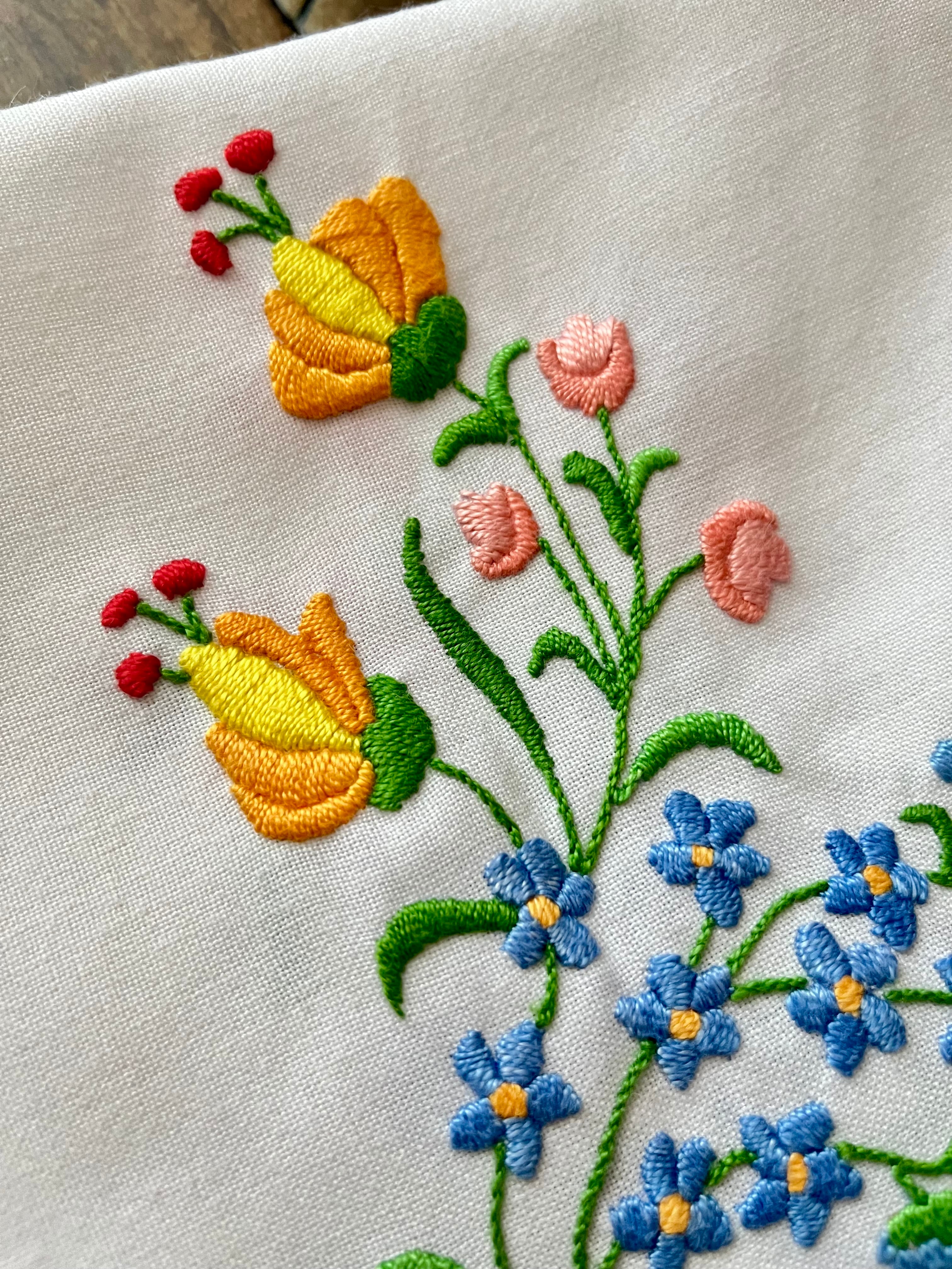 カロチャ刺繍には珍しく、縁はブランケットステッチが施され可愛さ倍増な1枚♡
