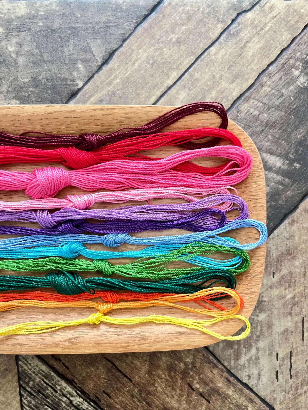 作成例は5枚目の画像ですが、お好みで色の組み合わせを愉しみながらお作りいただけますよ♩ハンドメイドや刺繍がお好きな方、カロチャ刺繍をされる方にぜひお試しいただきたいキットです。