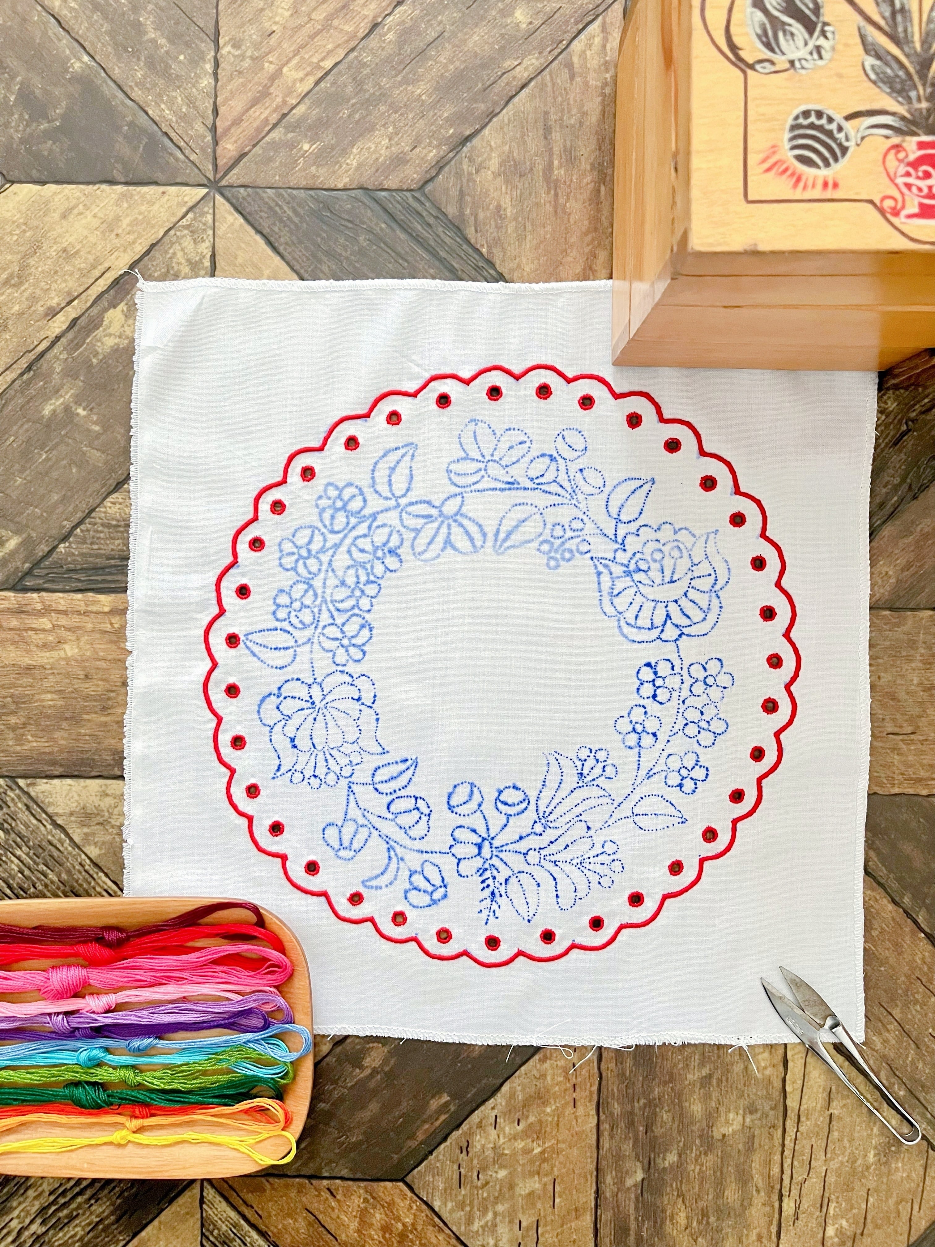ハンガリーの図案集を用い、国内では当店だけのカロチャ刺繍キットです✨