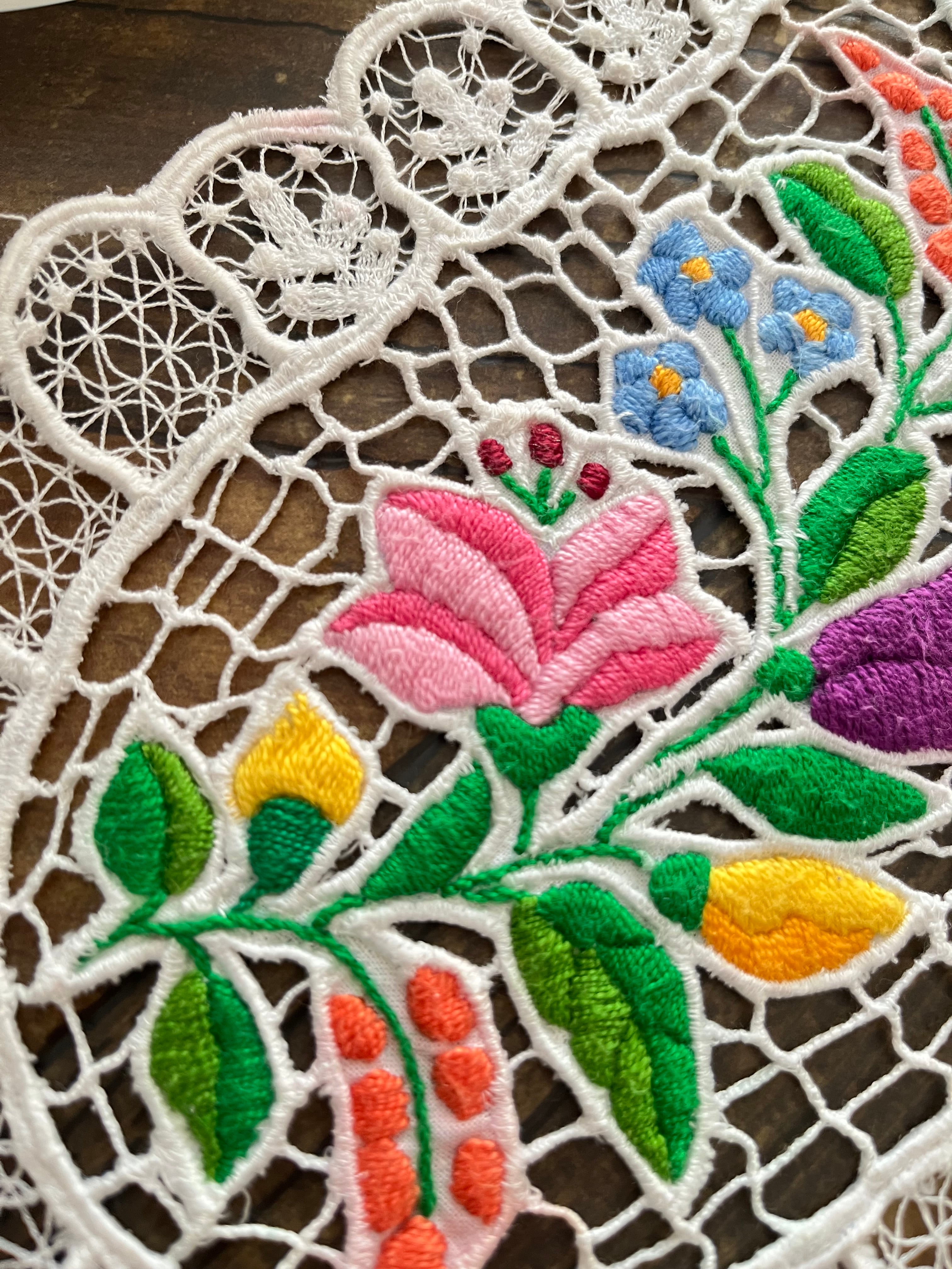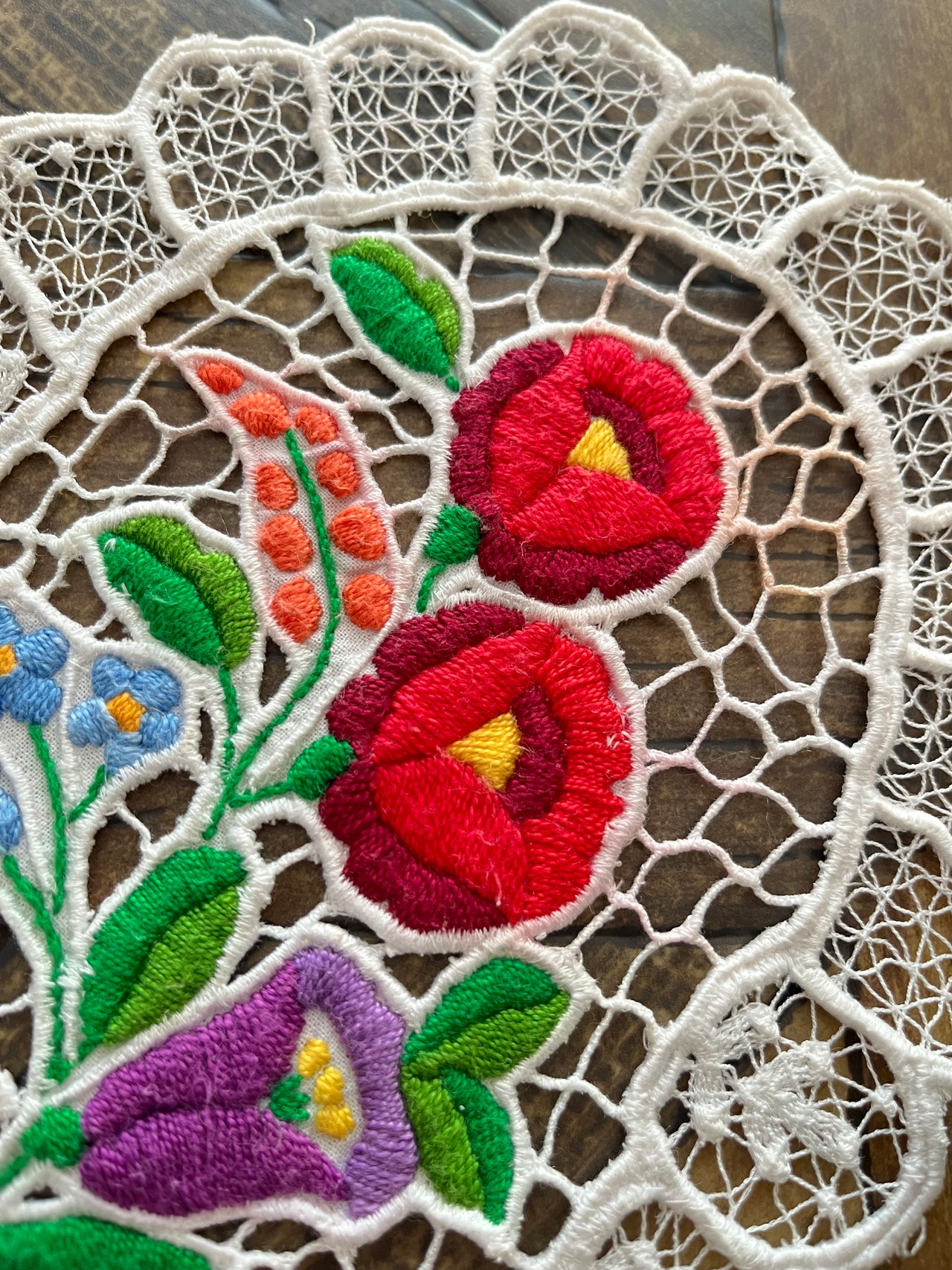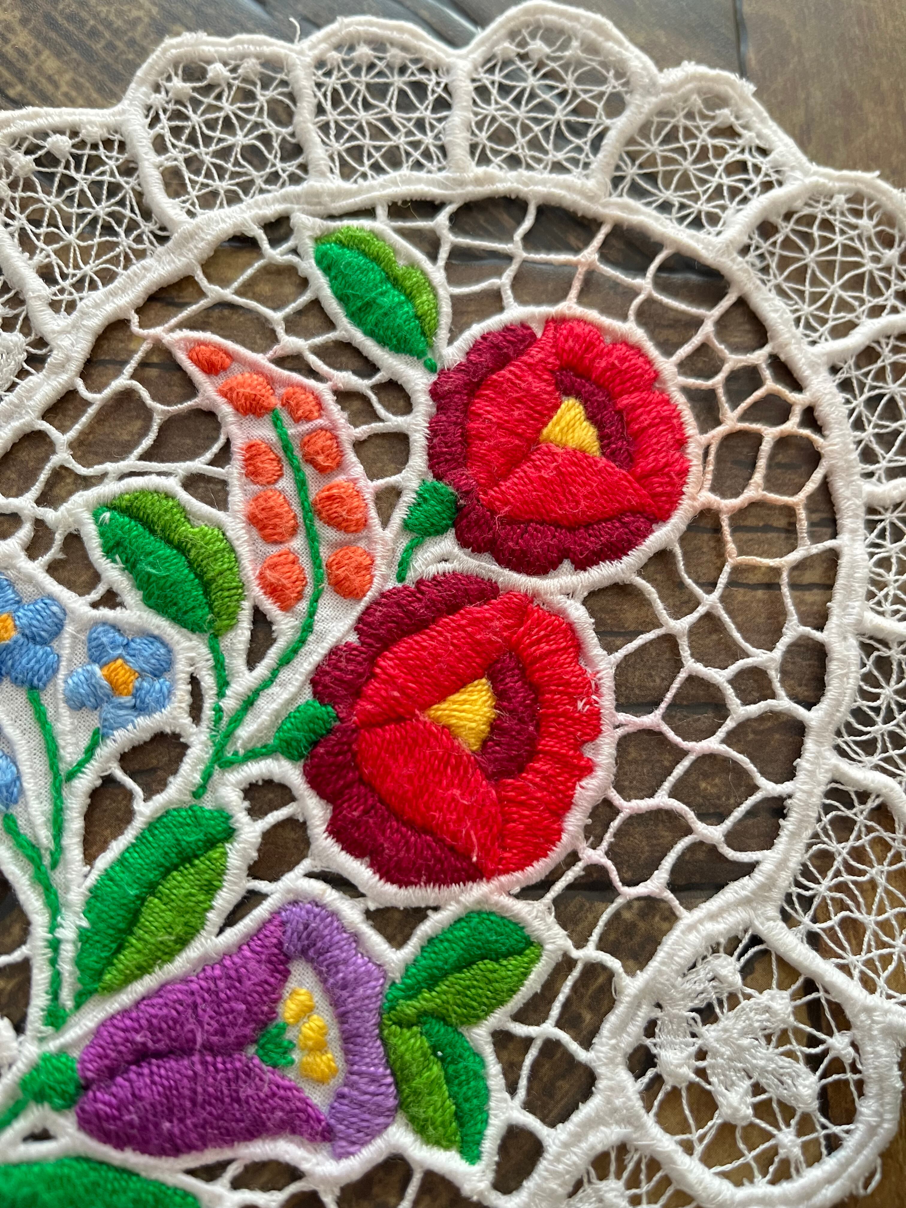 希少なレース調のカロチャ、カロチャリシェリューの小さなドイリー。