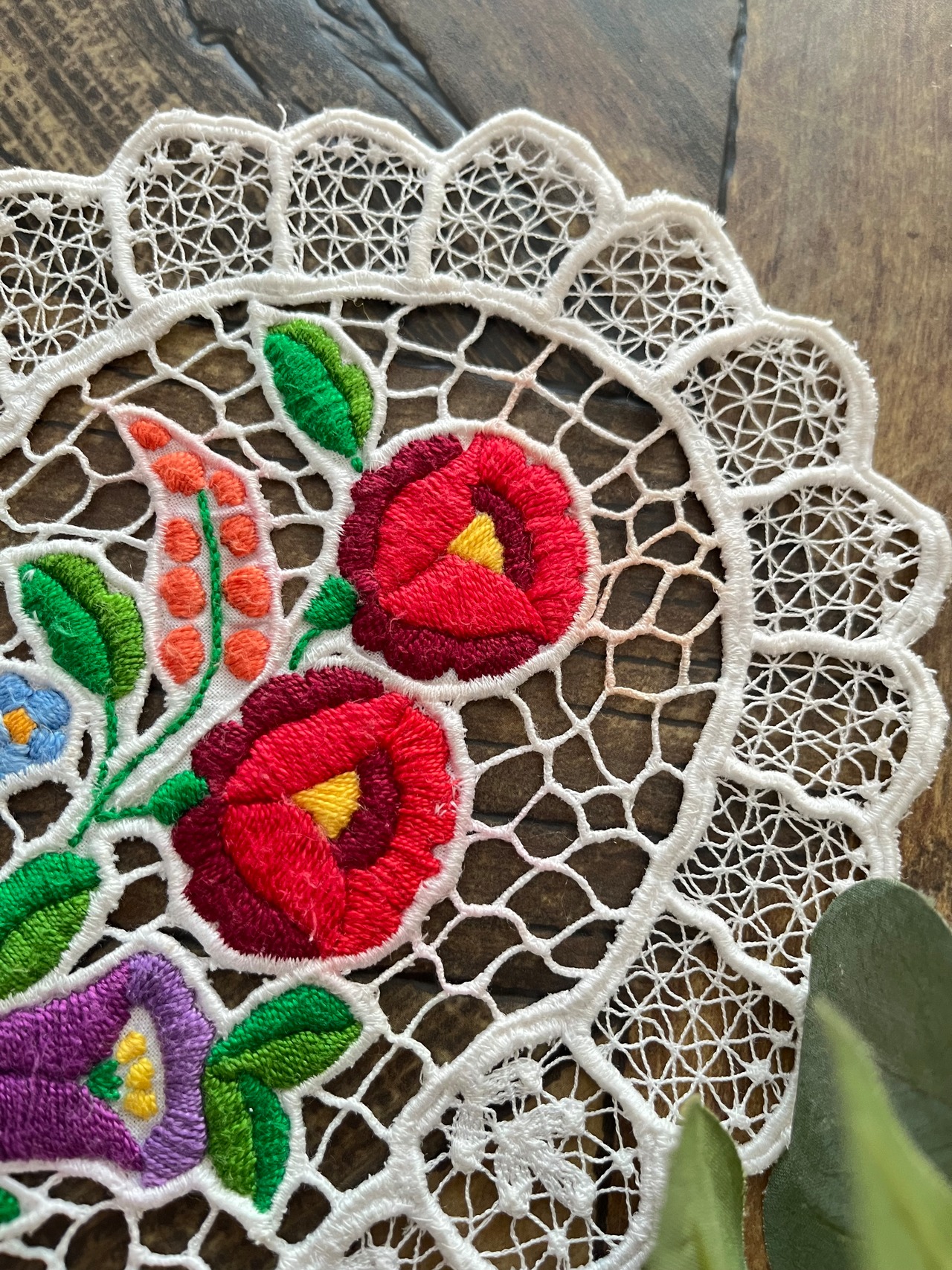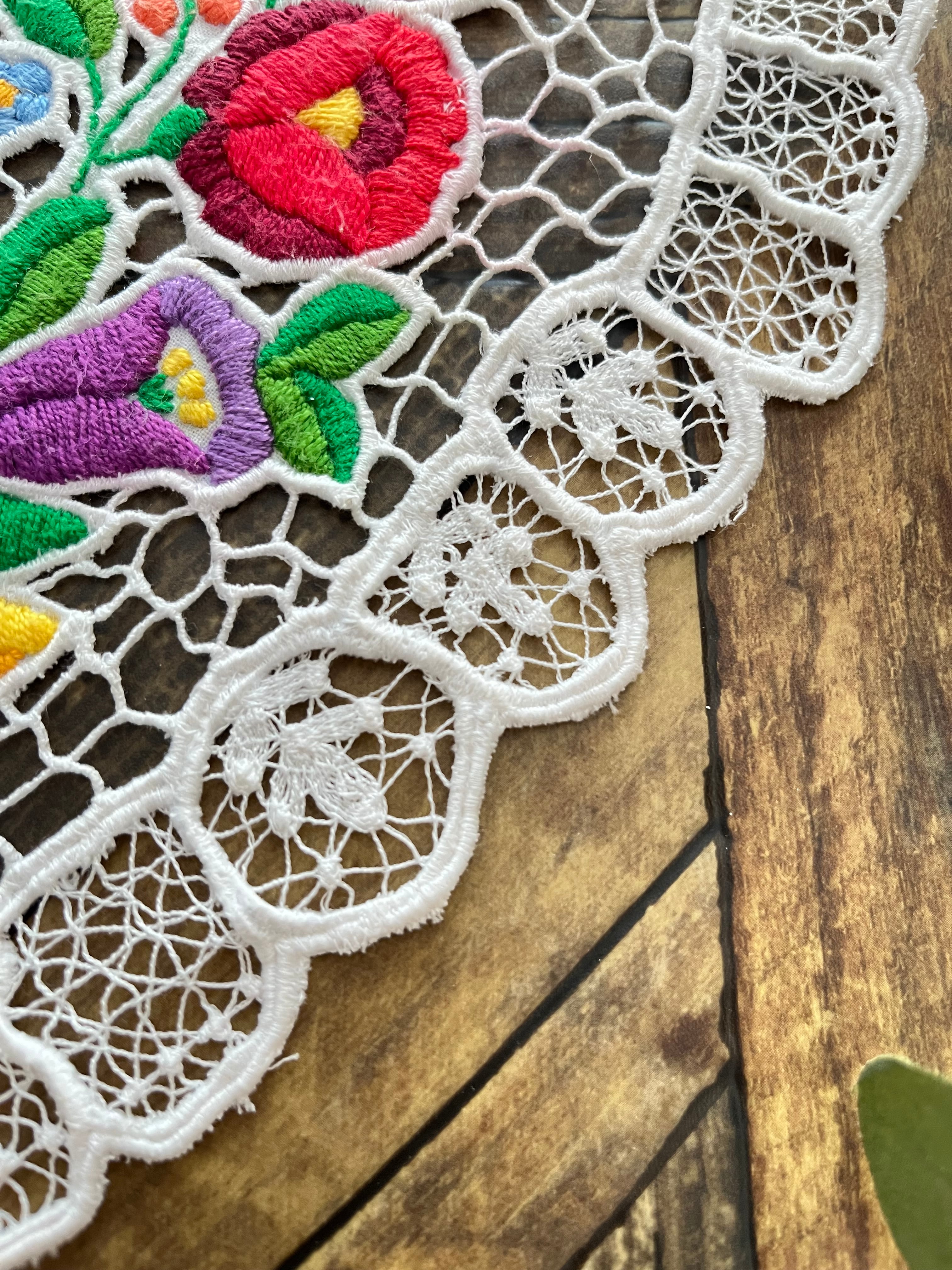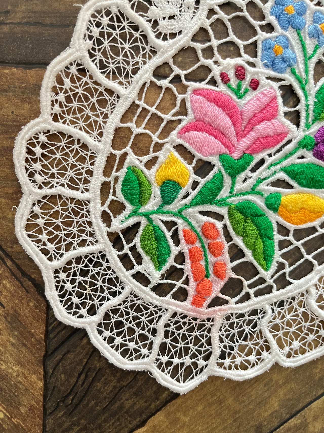 希少なレース調のカロチャ、カロチャリシェリューの小さなドイリー。