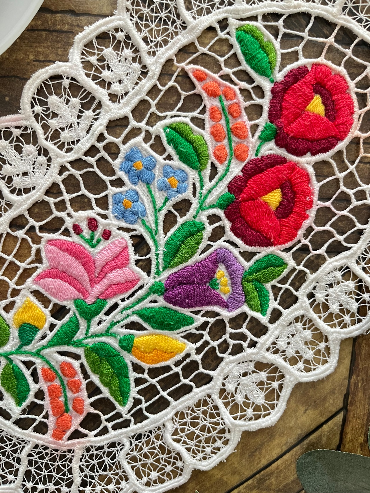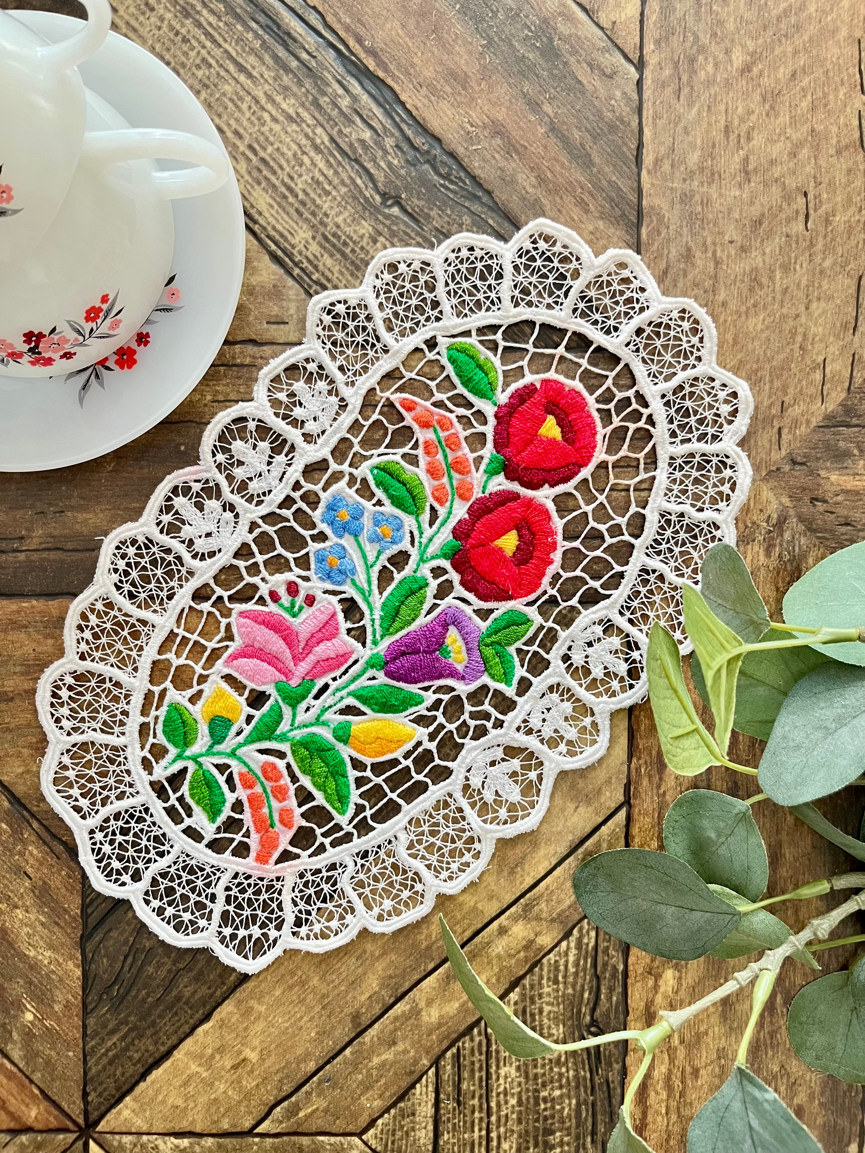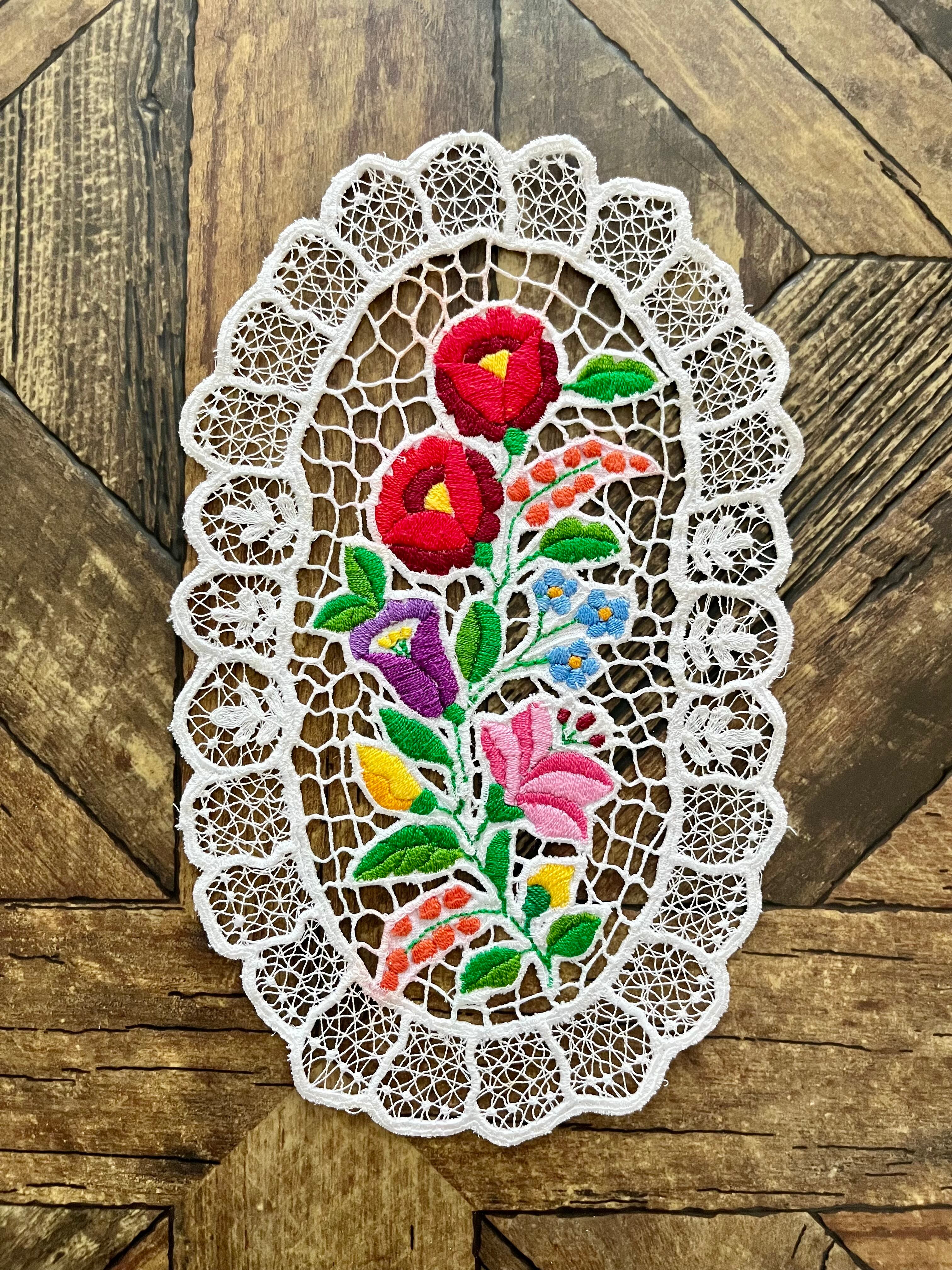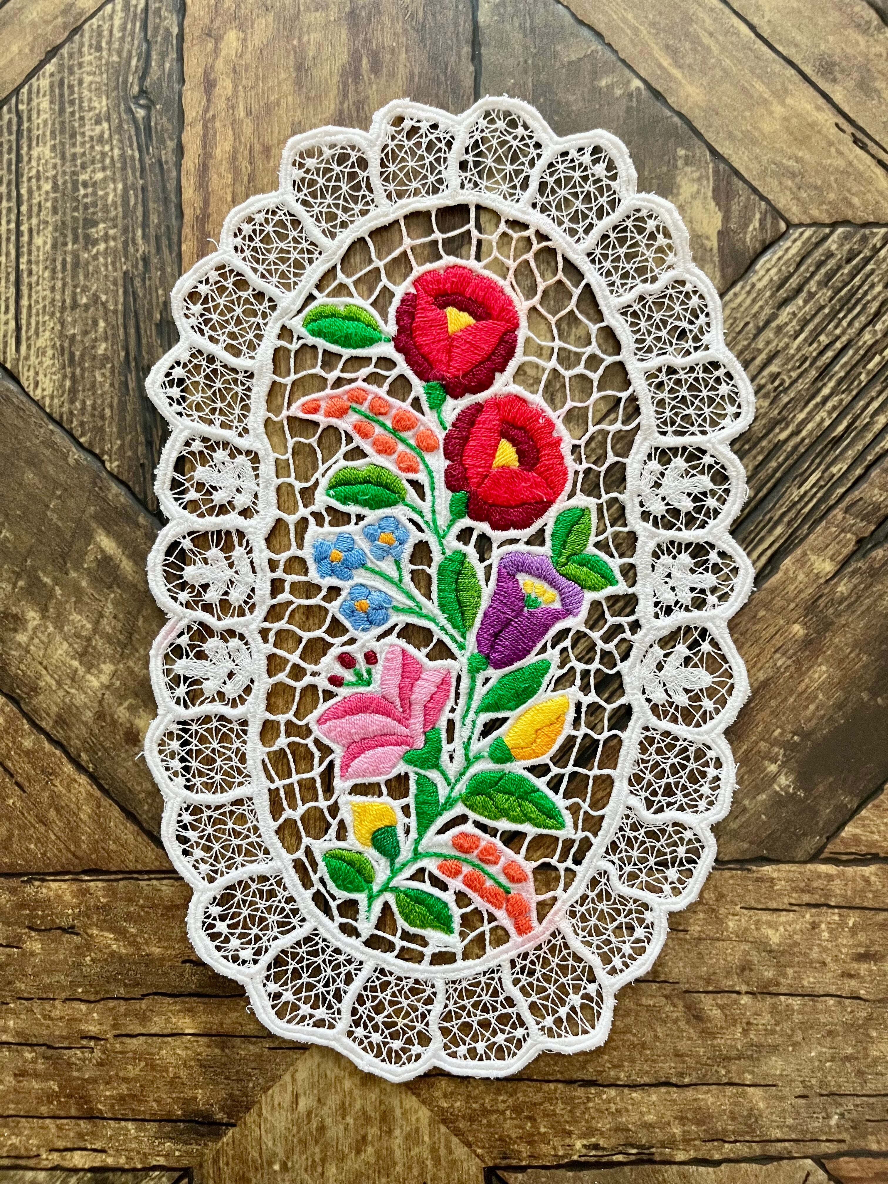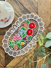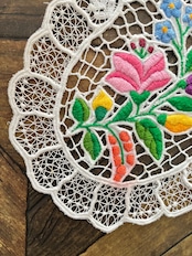 【Sサイズ】カロチャリシェリューの楕円形ドイリー ヴィンテージ カロチャ刺繍 約28×17.5cm