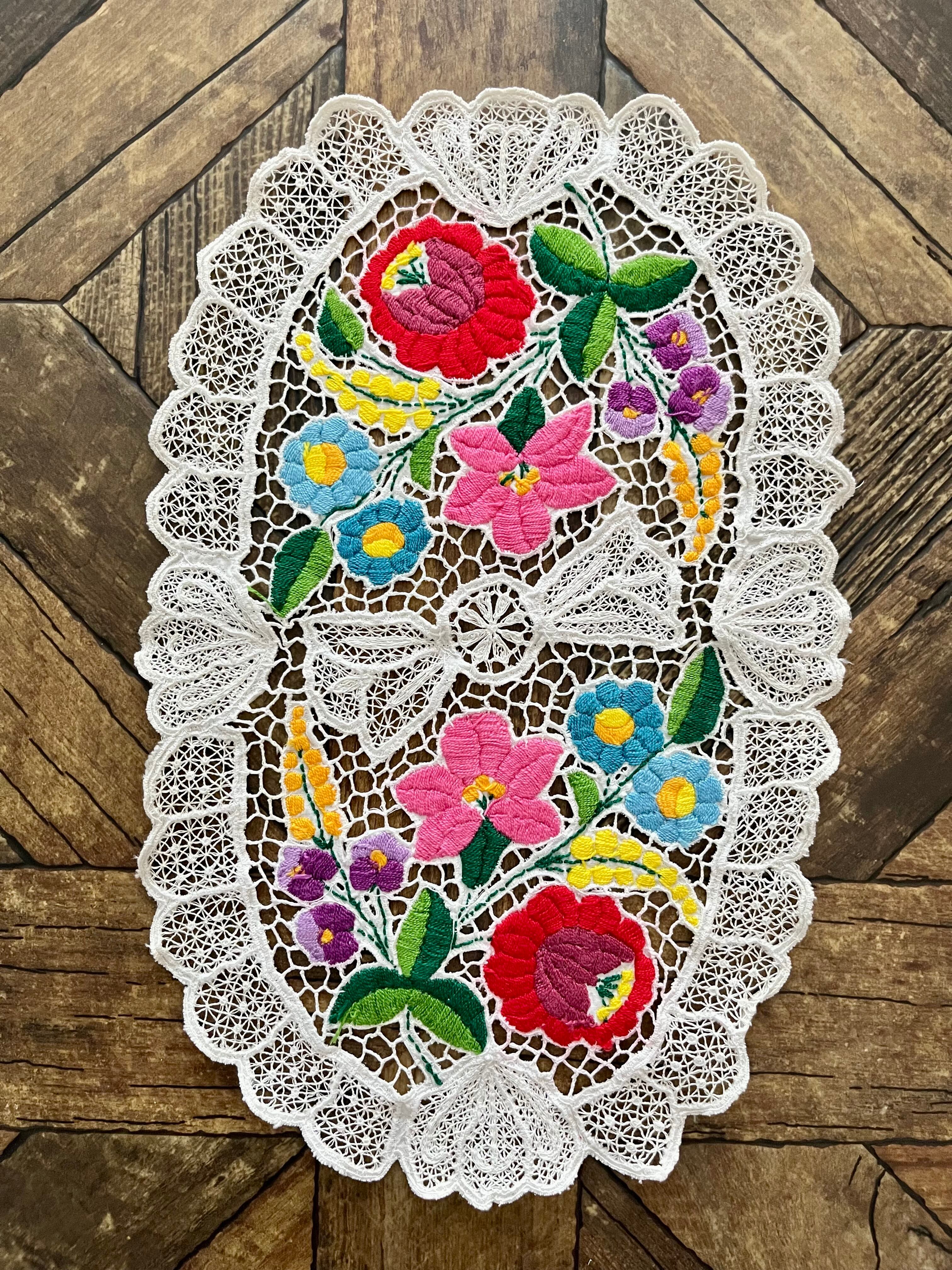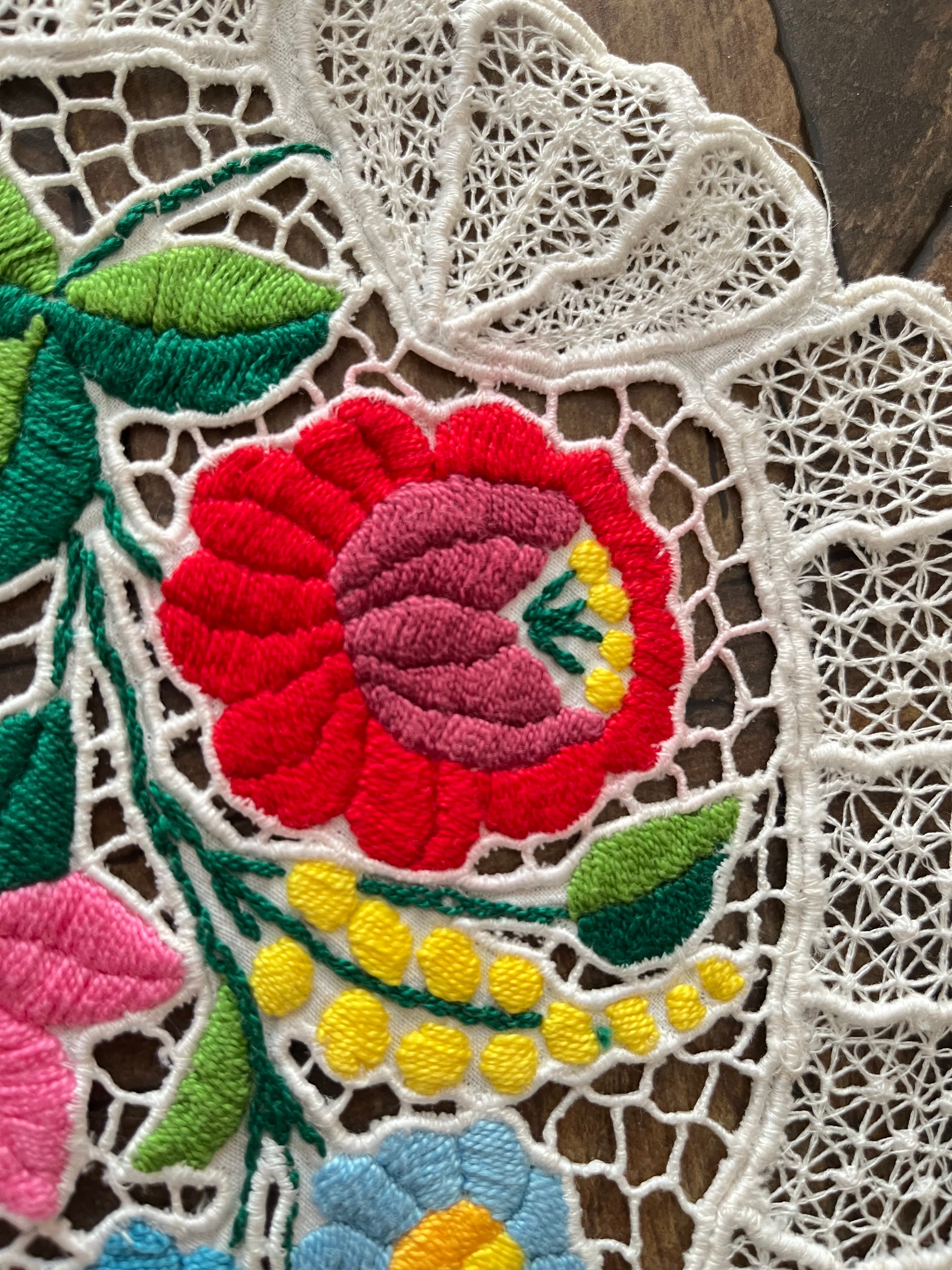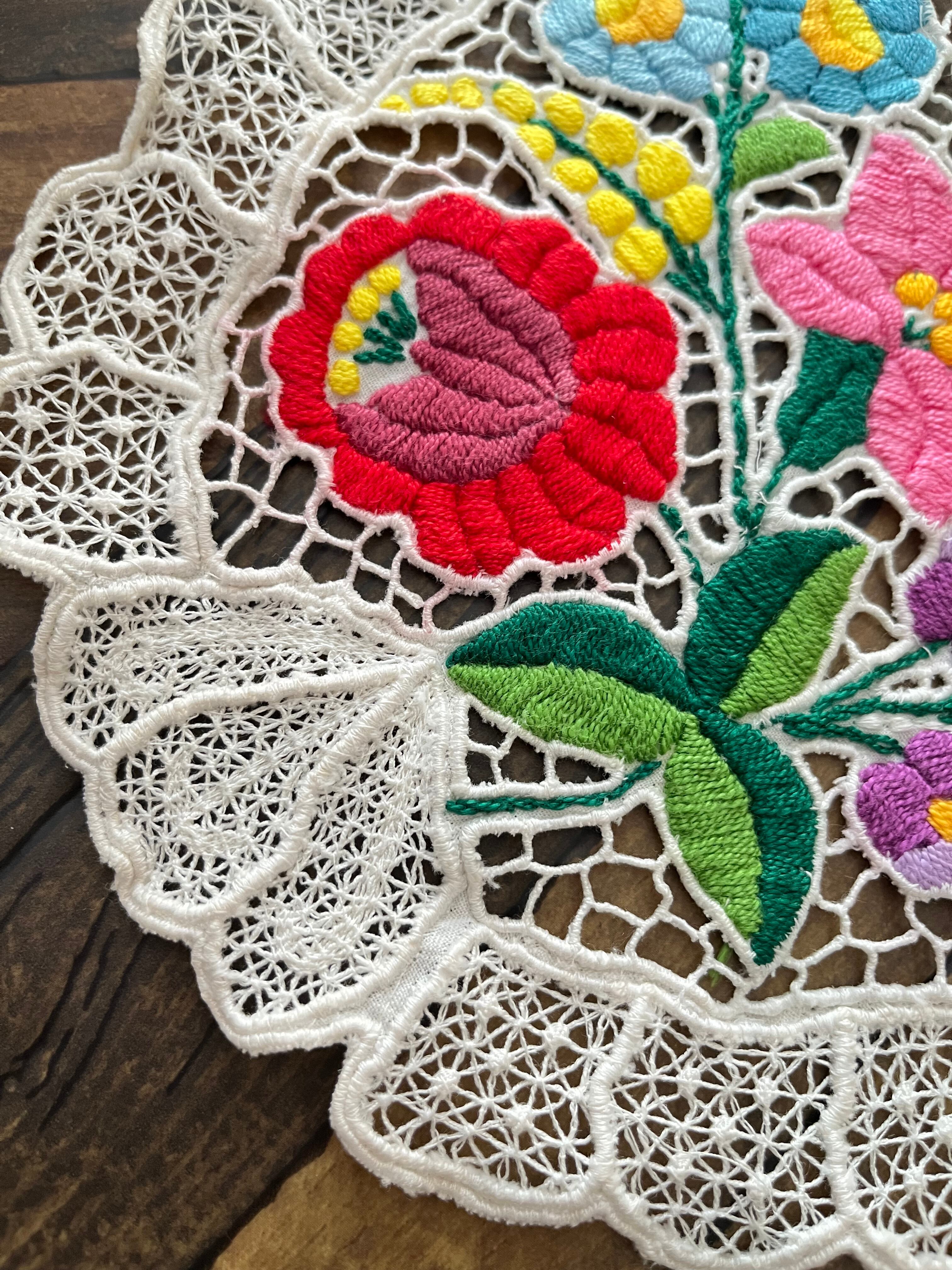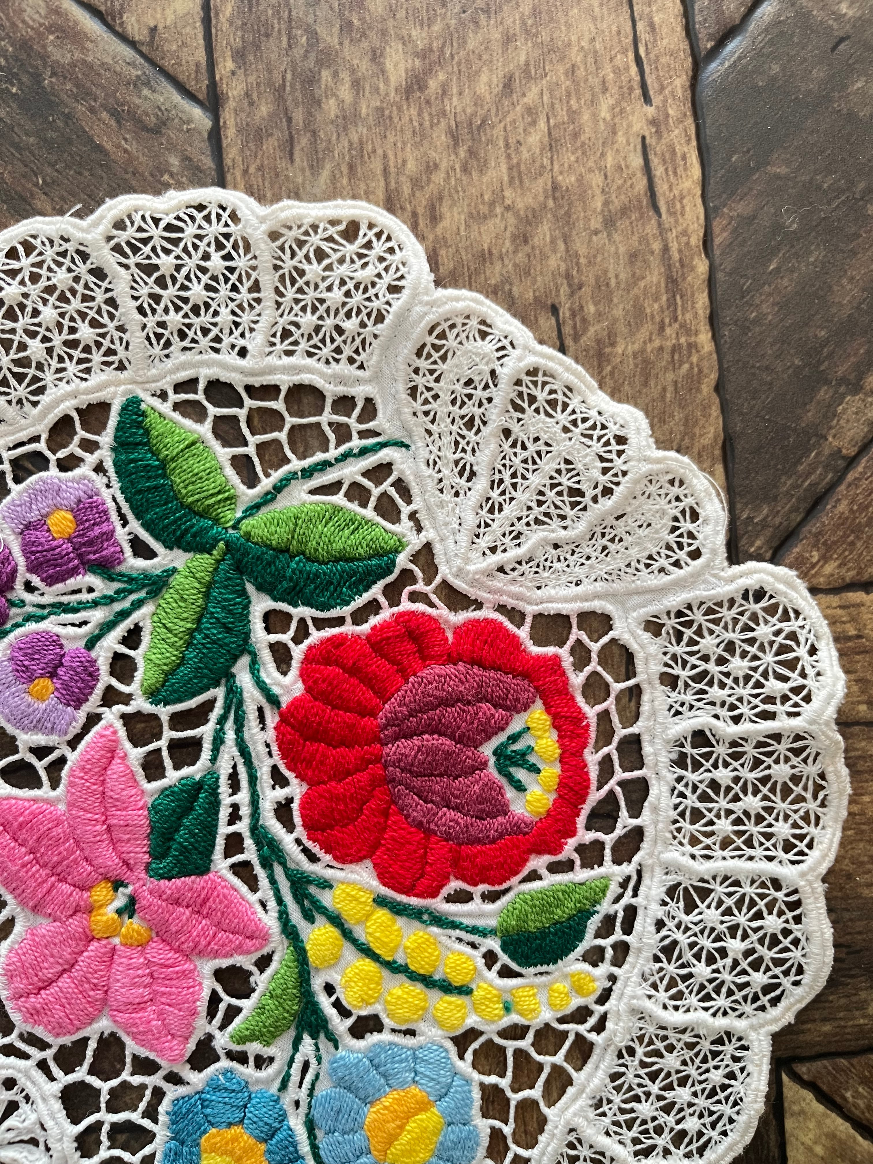 希少なレース調のカロチャ、カロチャリシェリューの小さなドイリー。