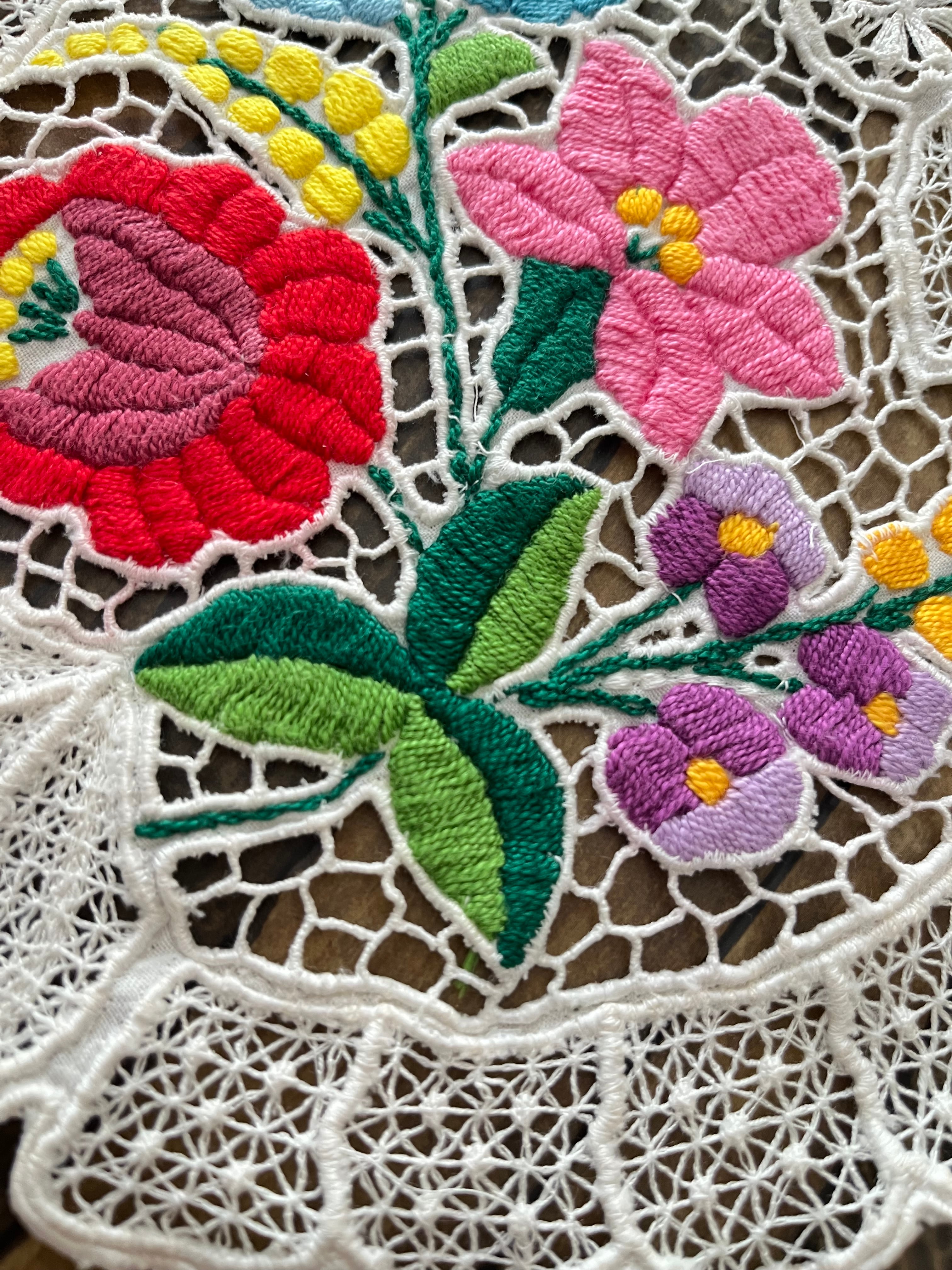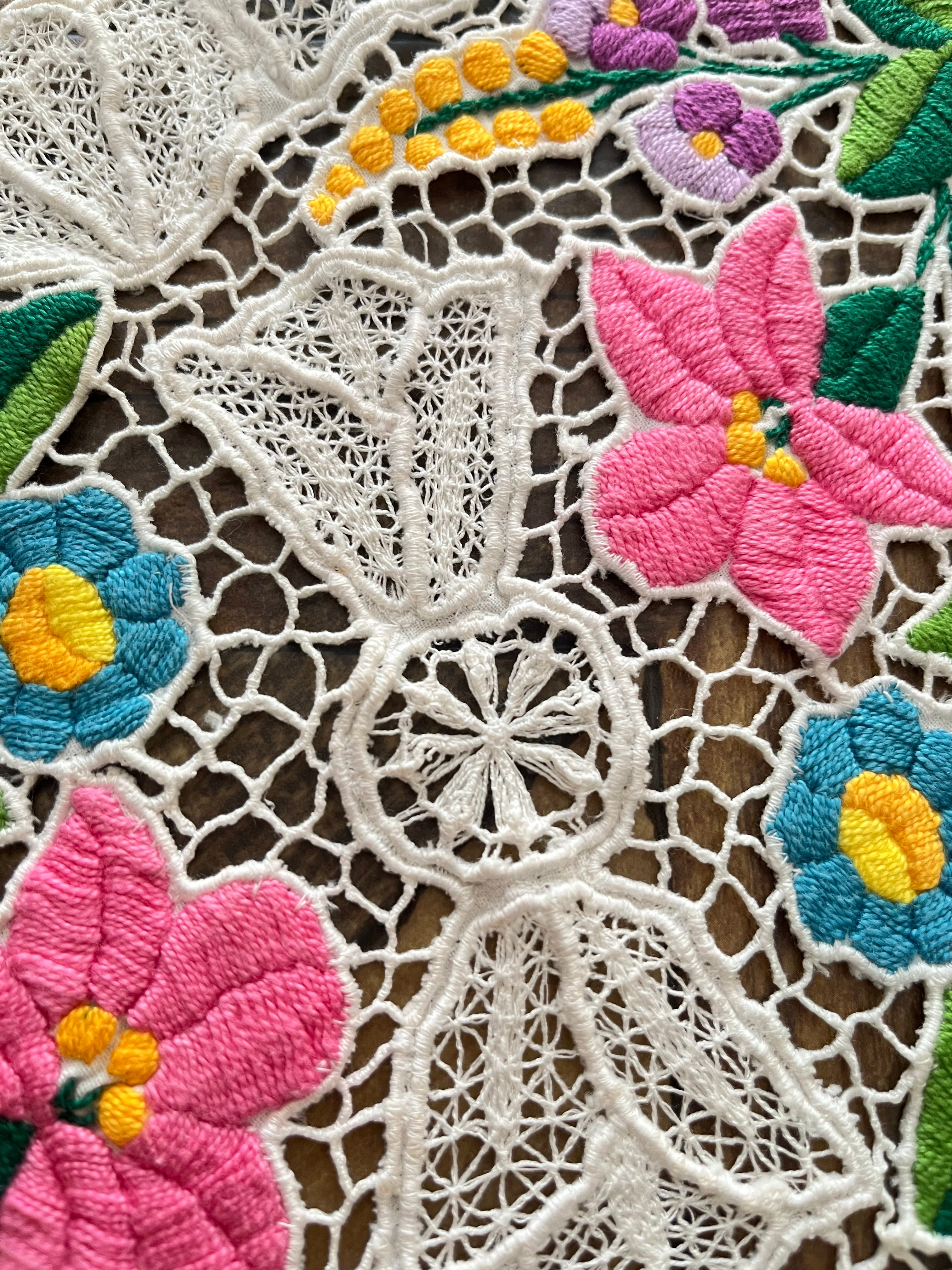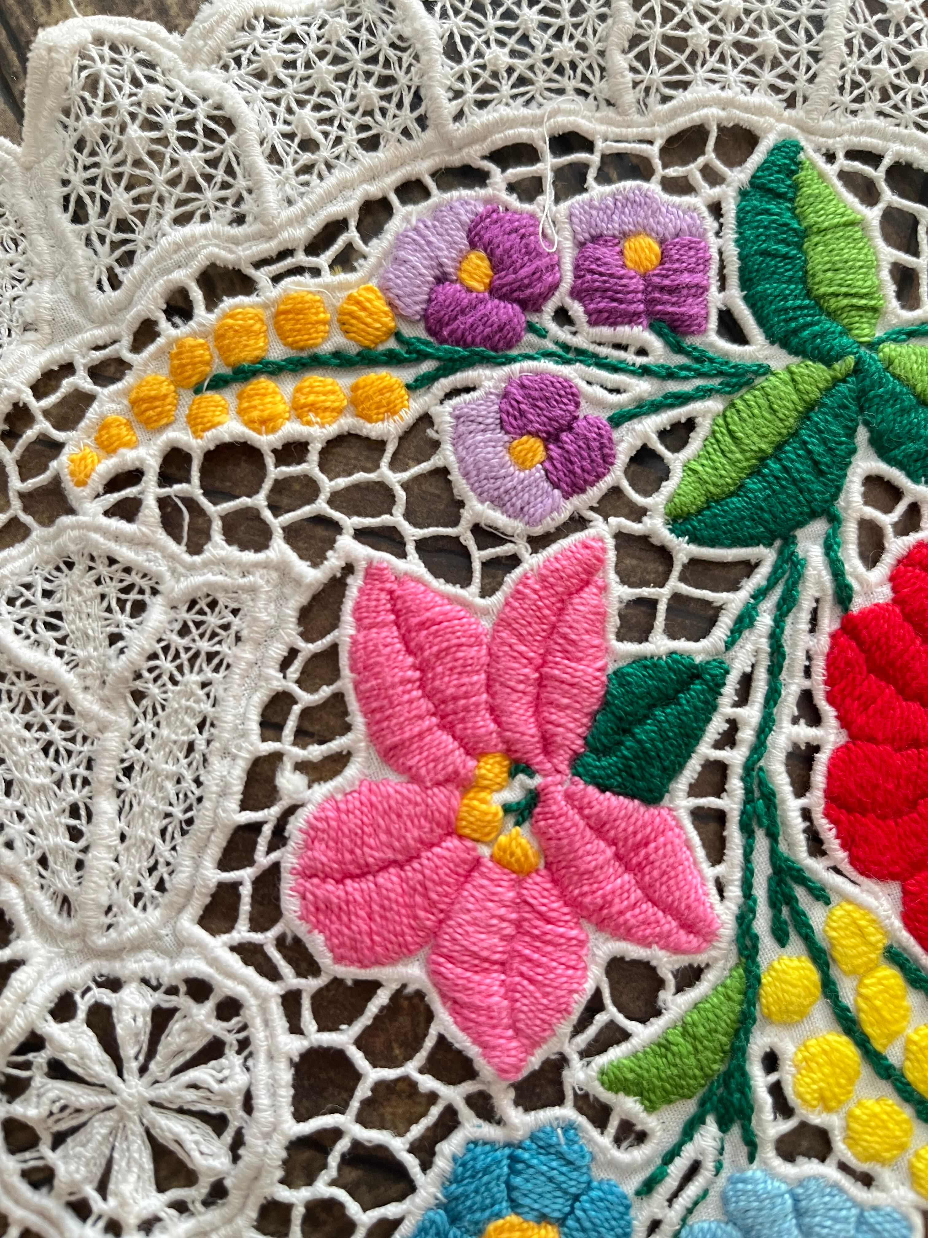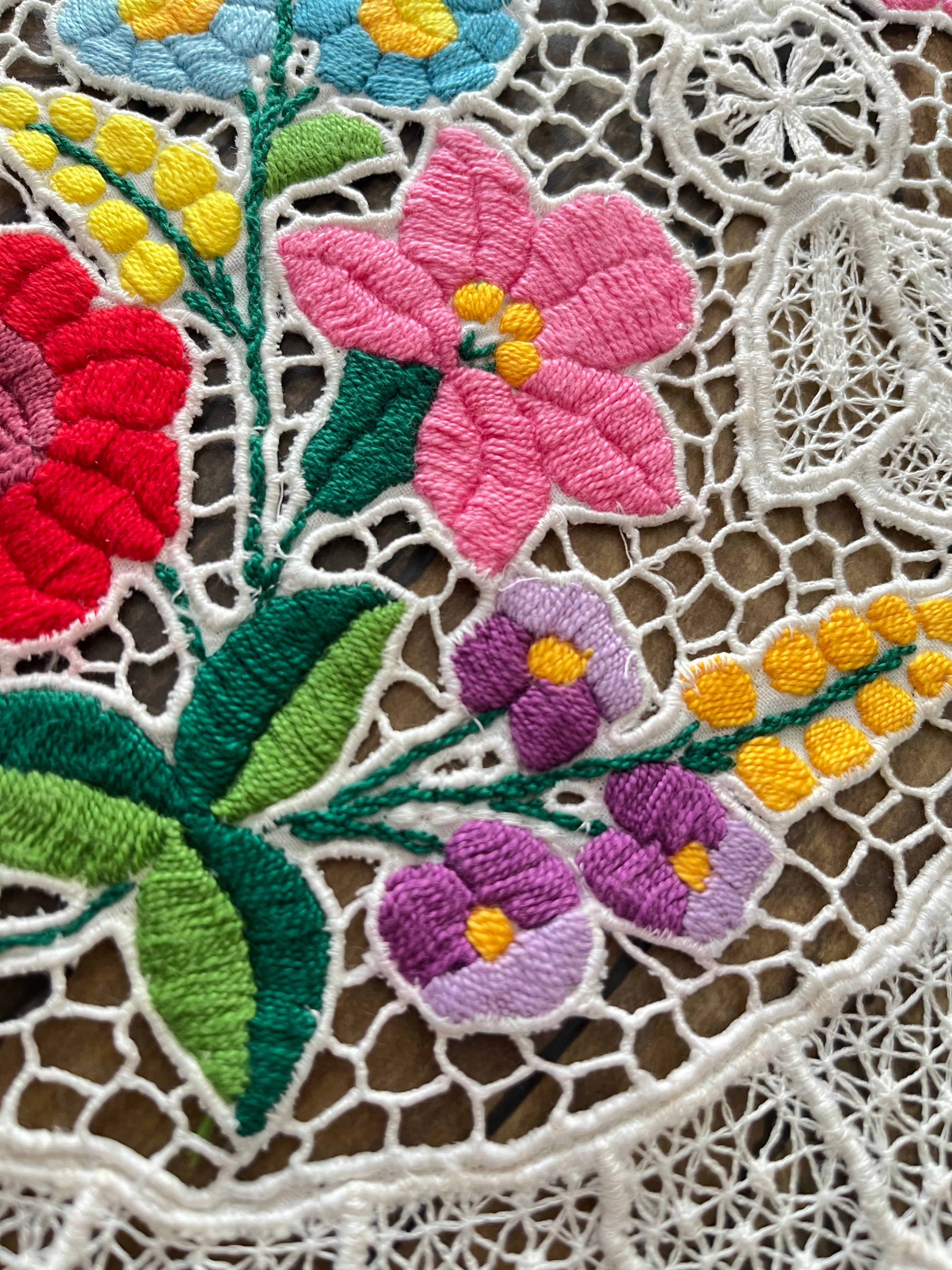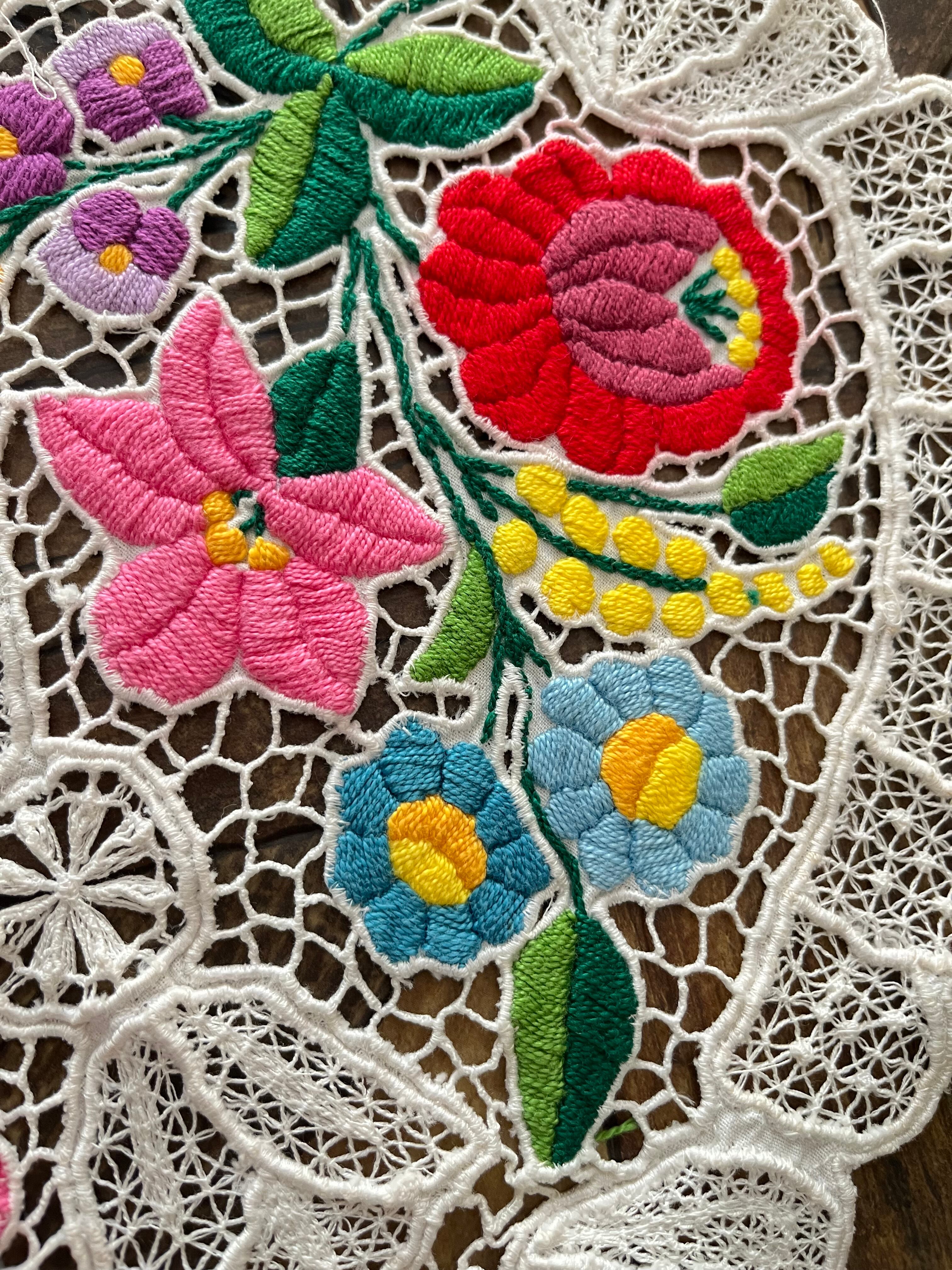 希少なレース調のカロチャ、カロチャリシェリューの小さなドイリー。