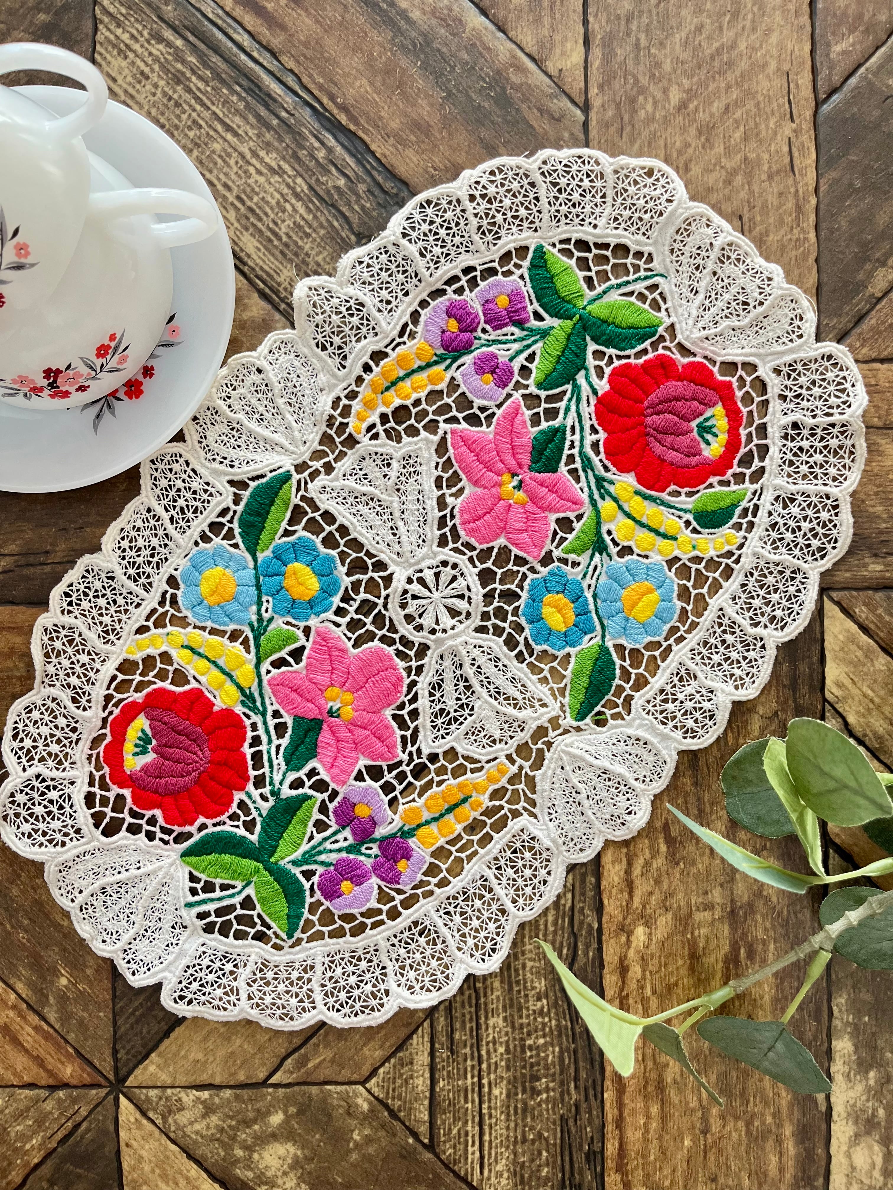 ドイリーとしてはもちろん、キャビネットの上に敷いたり、壁飾りとしてお使いいただいても素敵です。是非さまざまな使い方をお楽しみください。