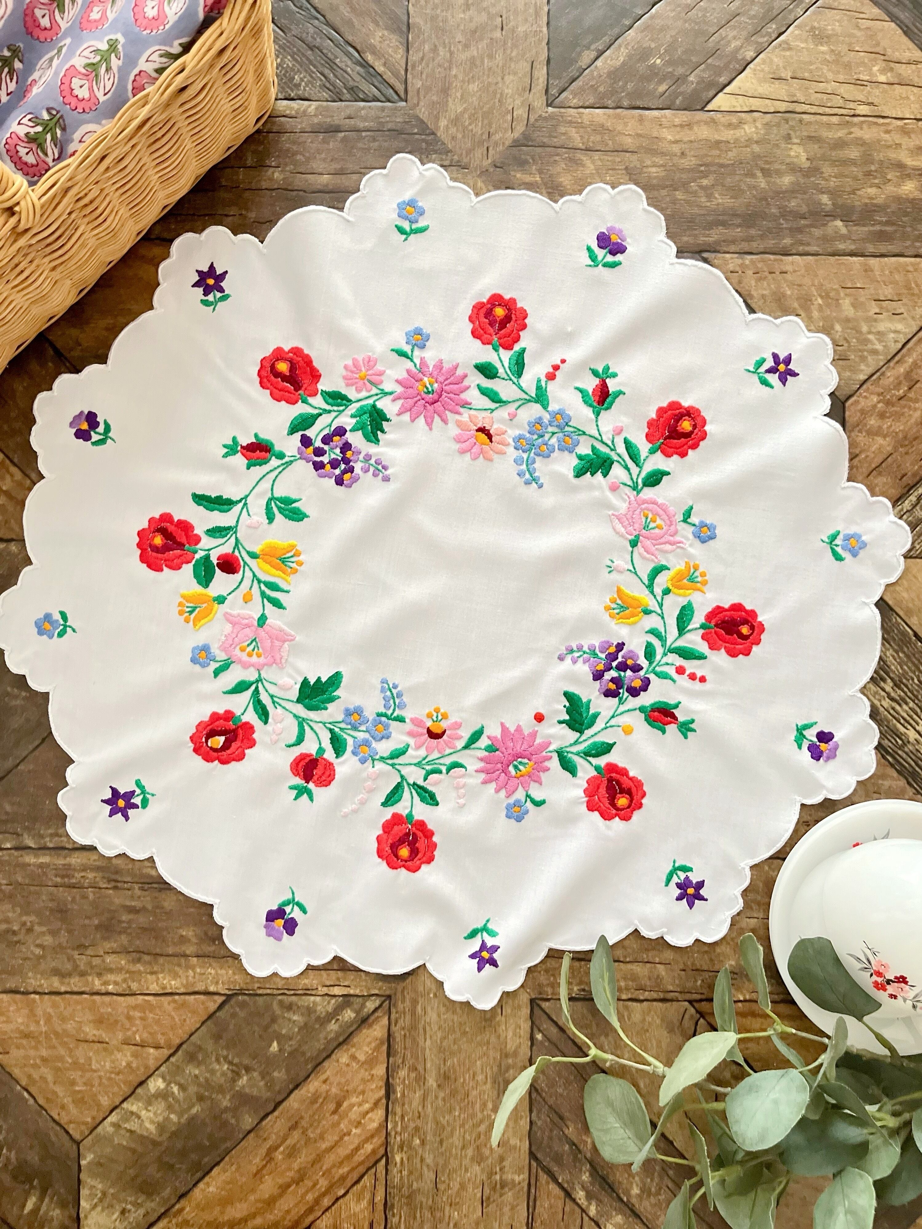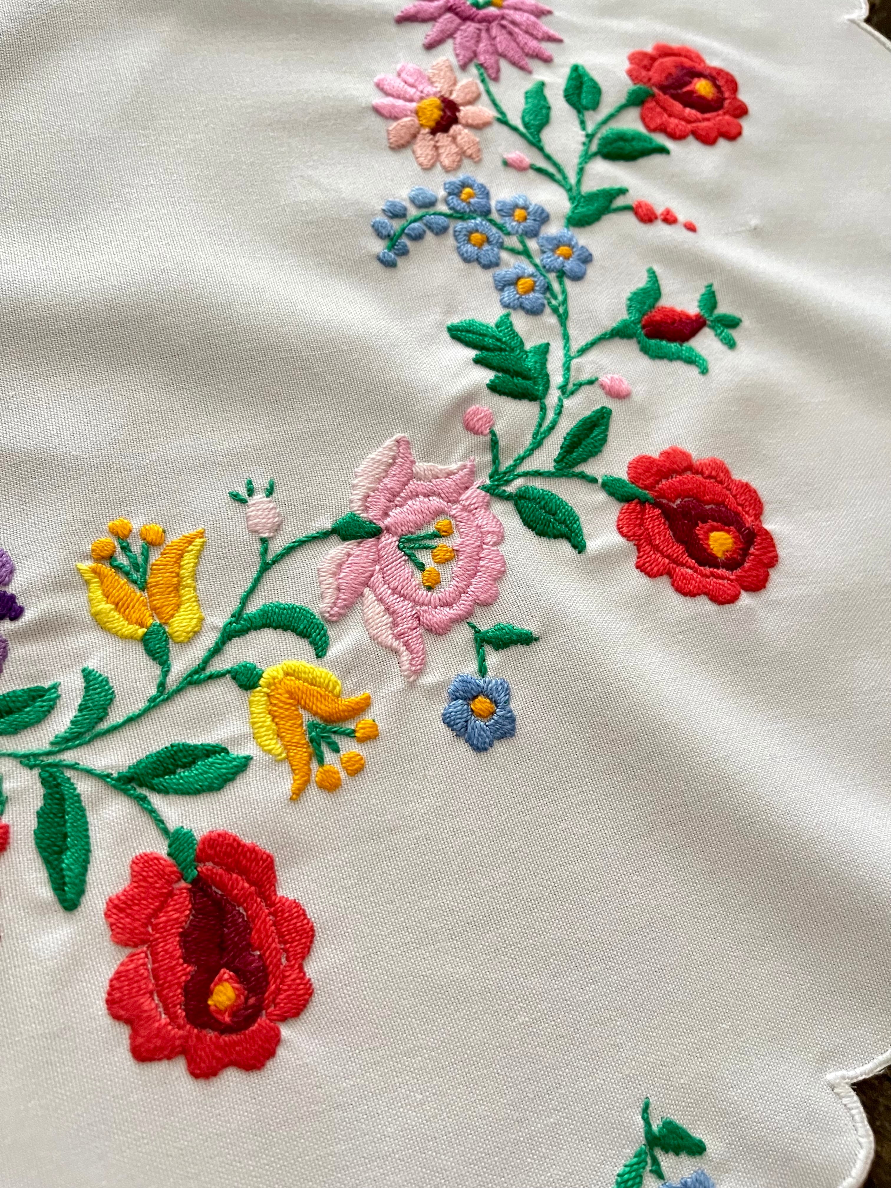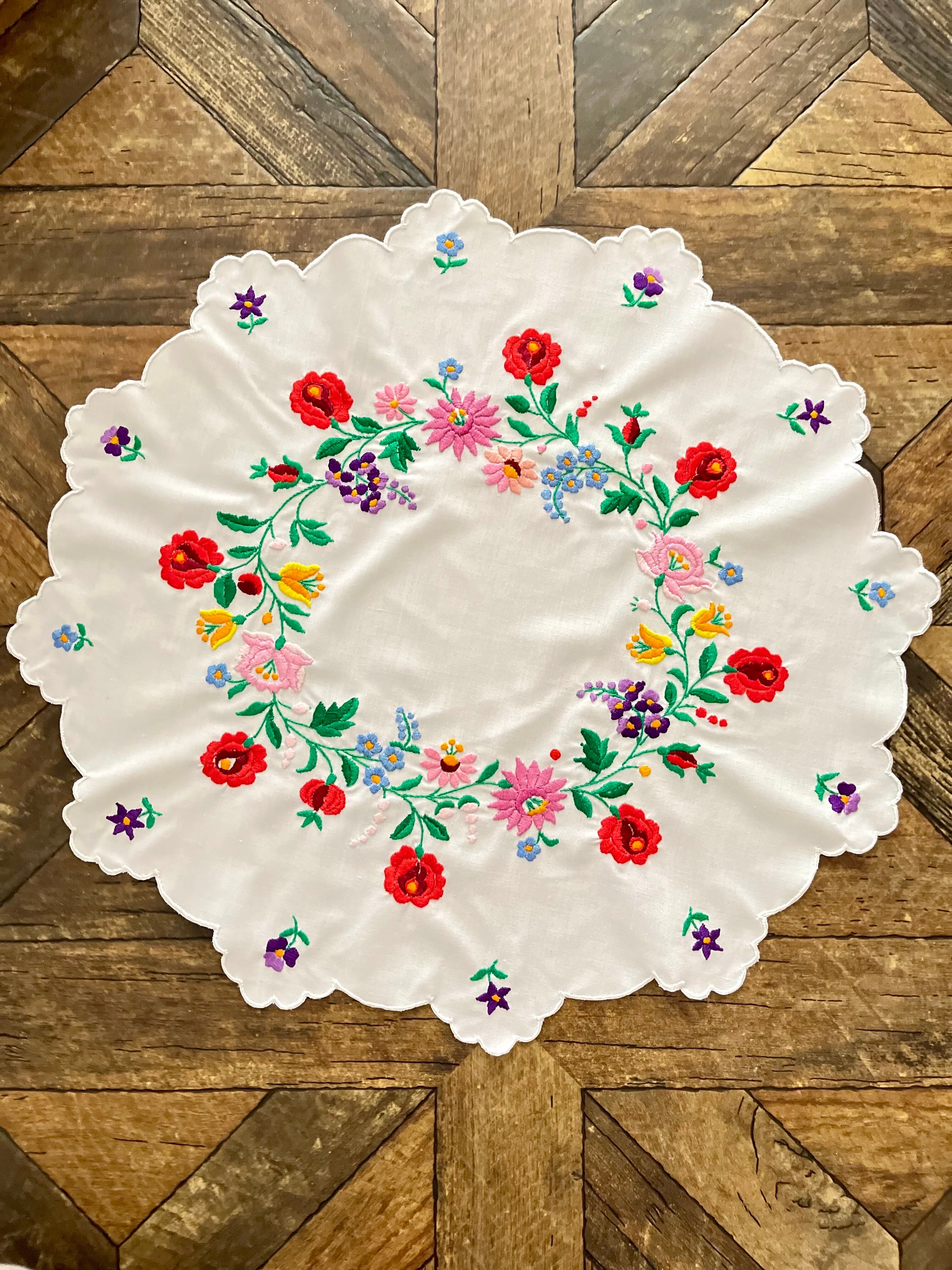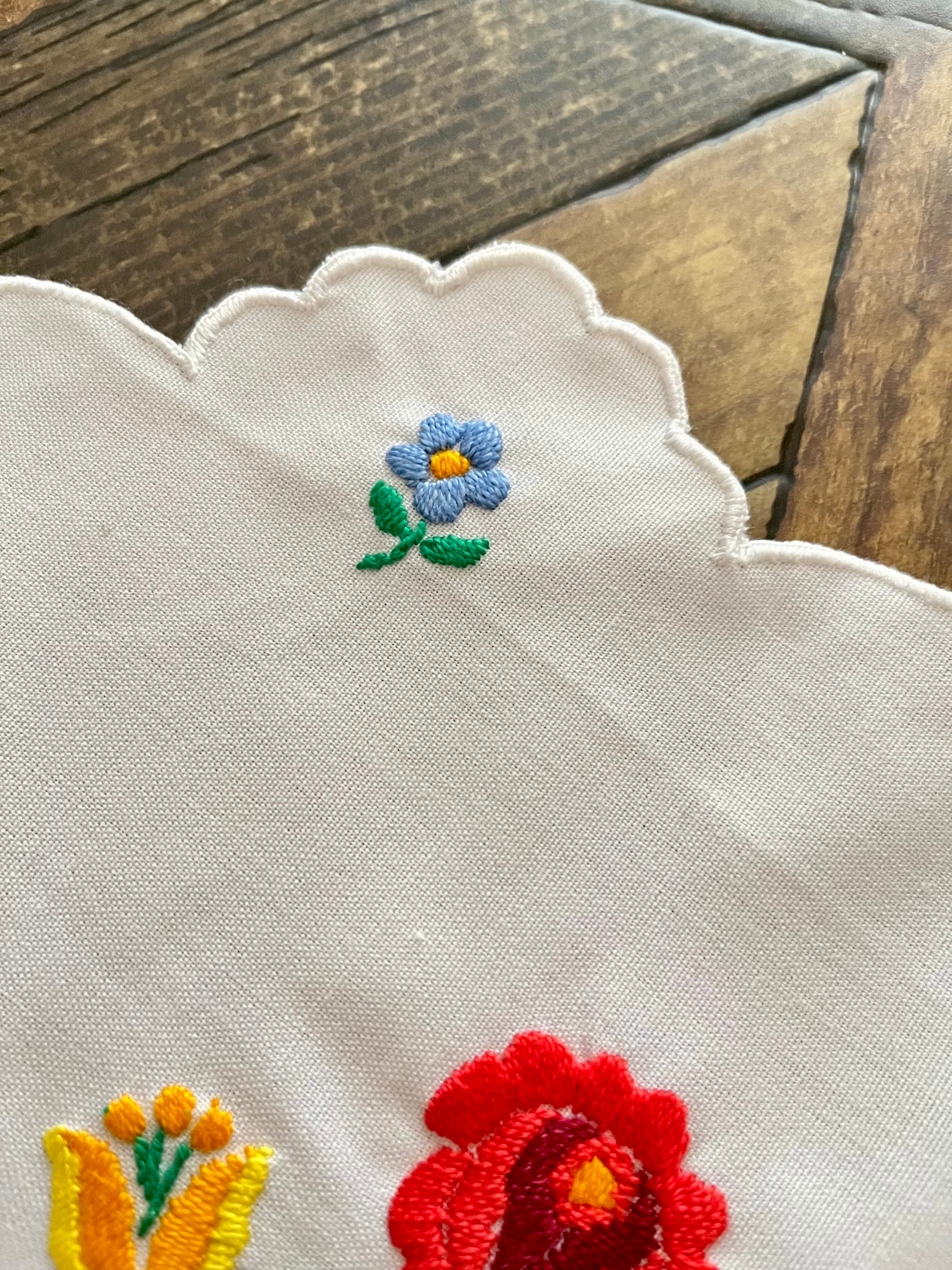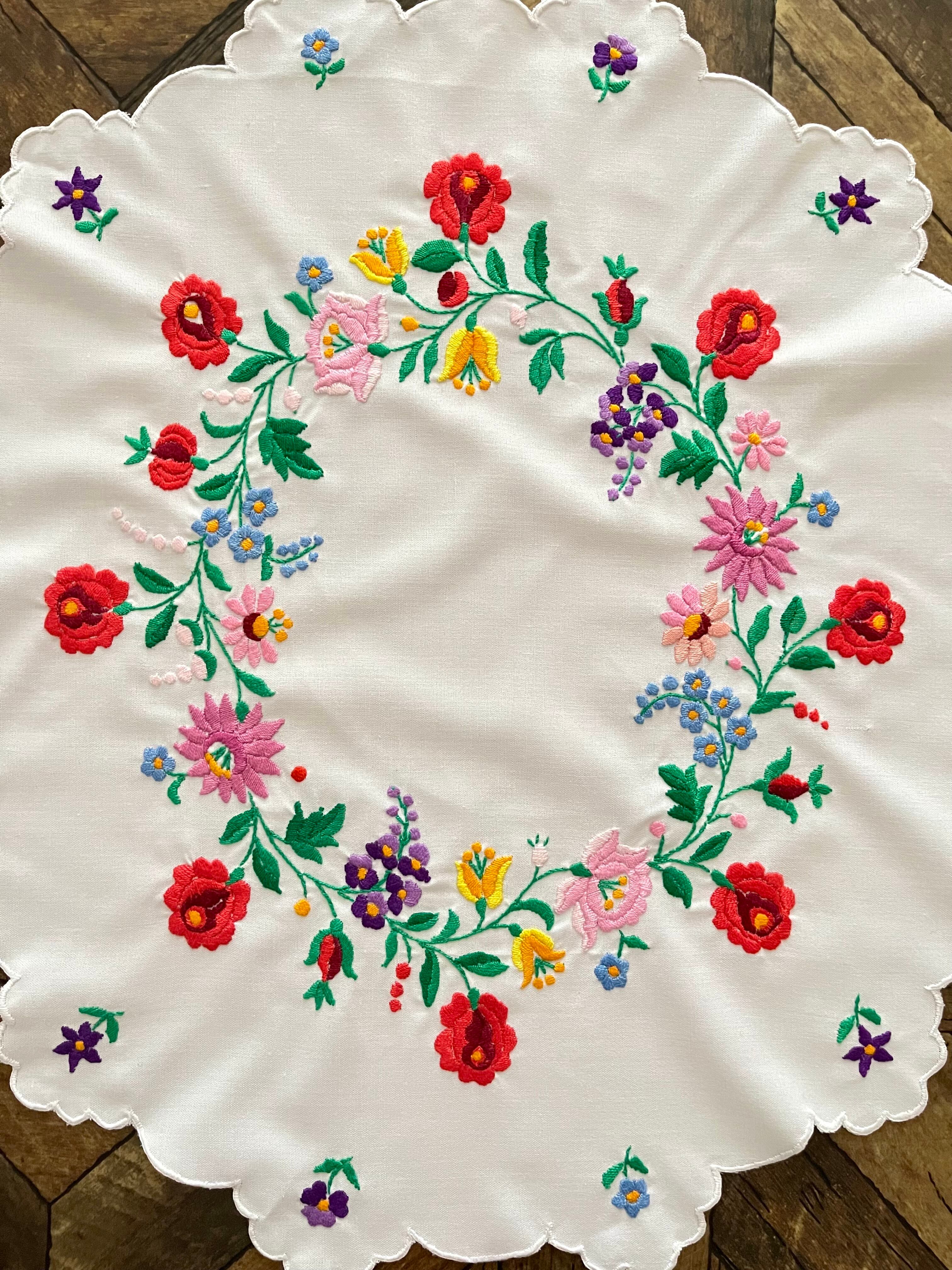 花の形の大きめドイリー ヴィンテージカロチャ刺繍 55.5×51 cm