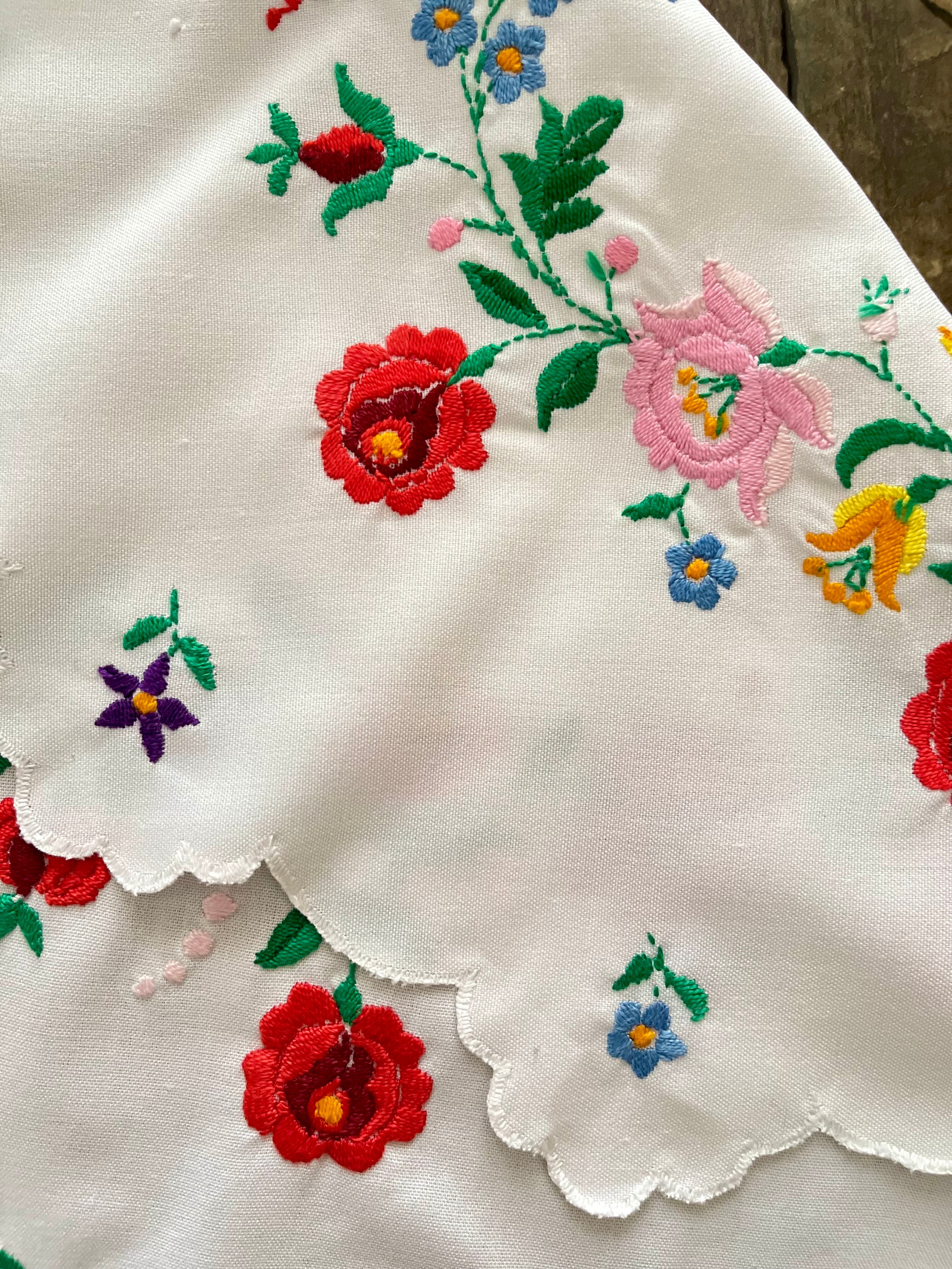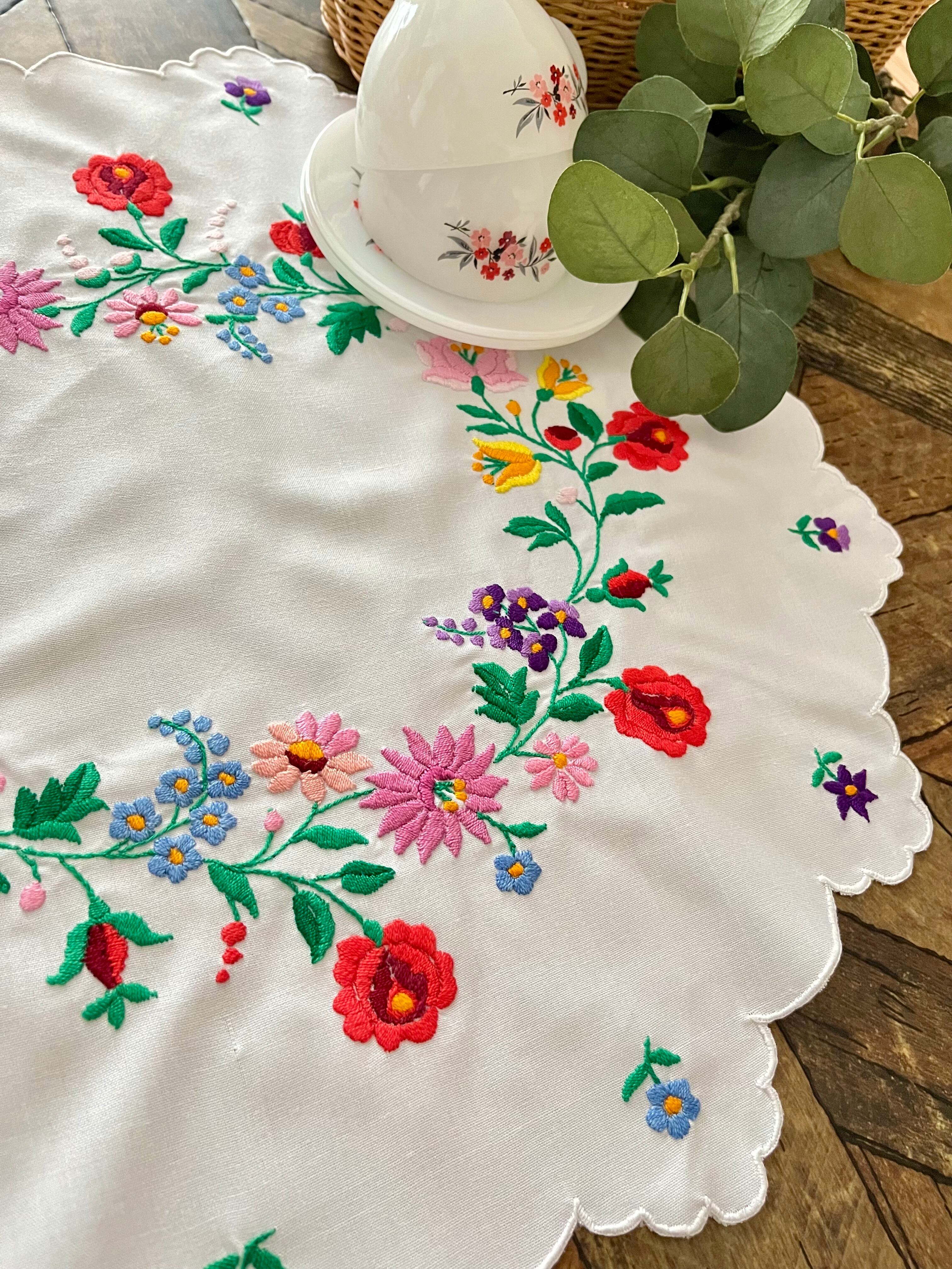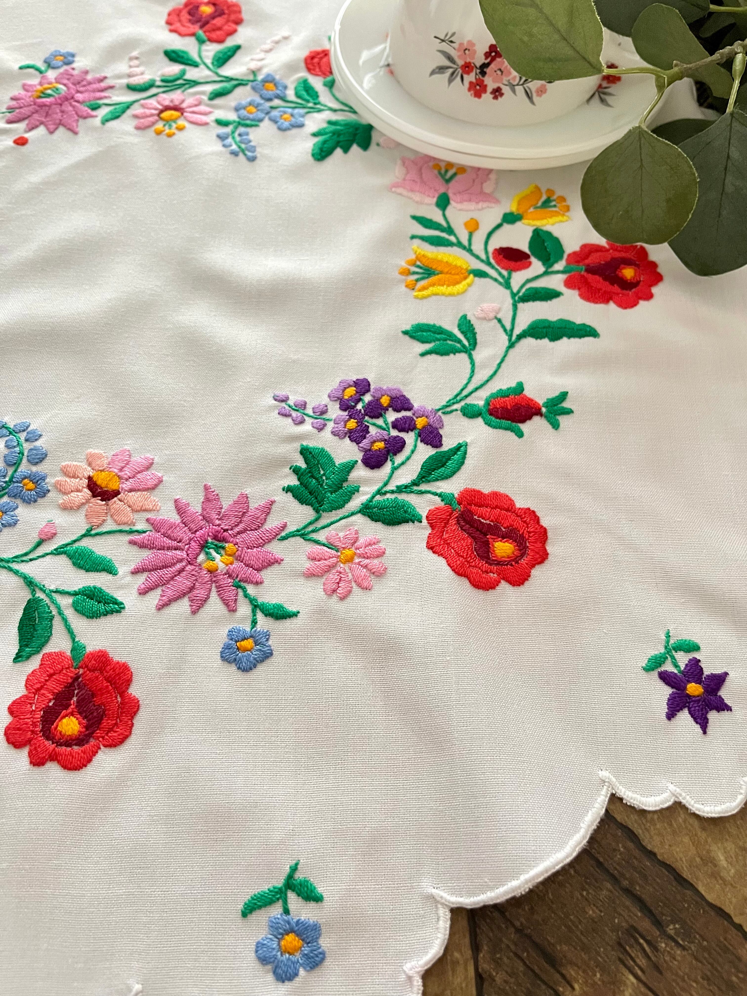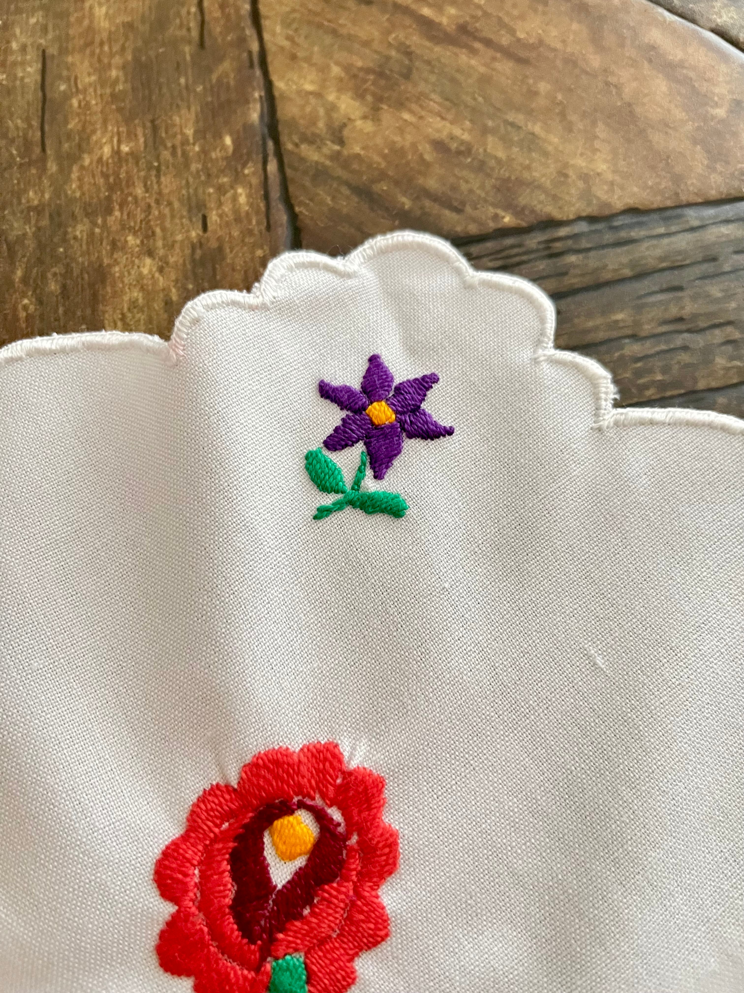 花の形の大きめドイリー ヴィンテージカロチャ刺繍 55.5×51 cm