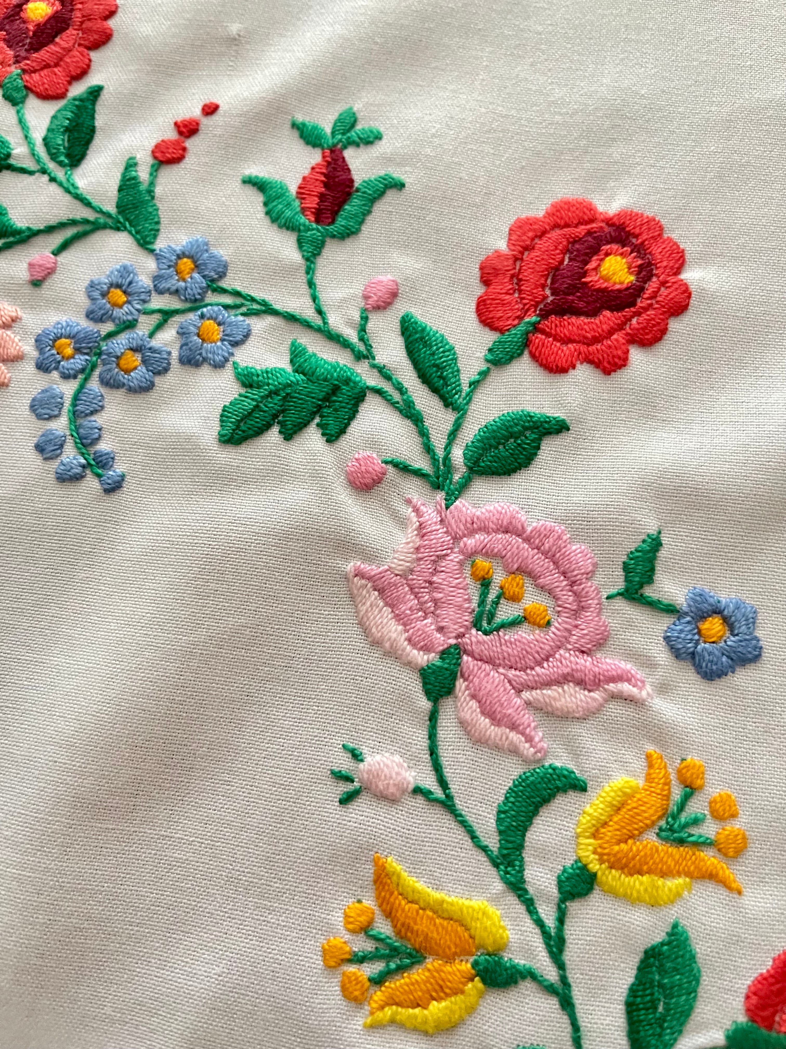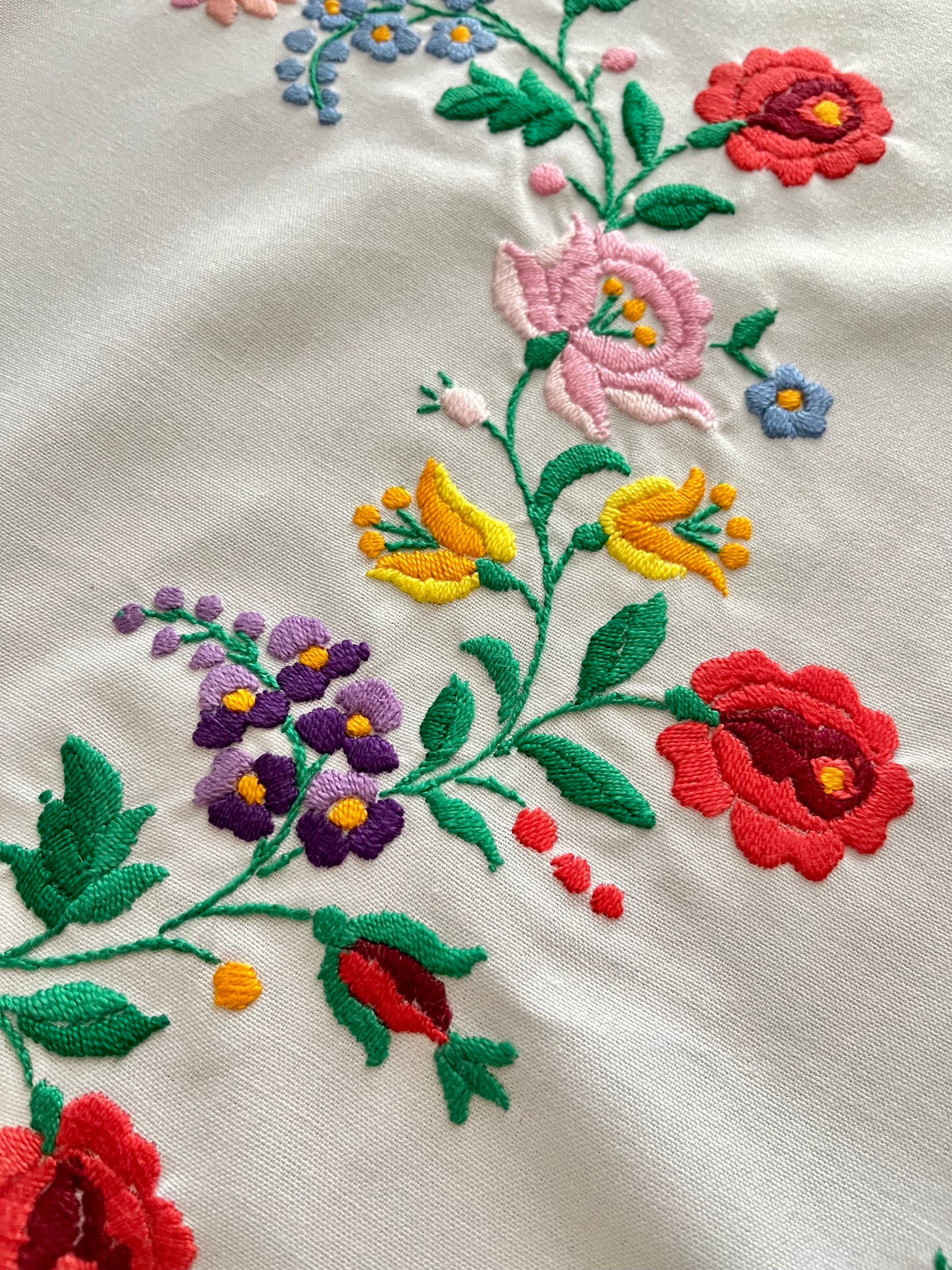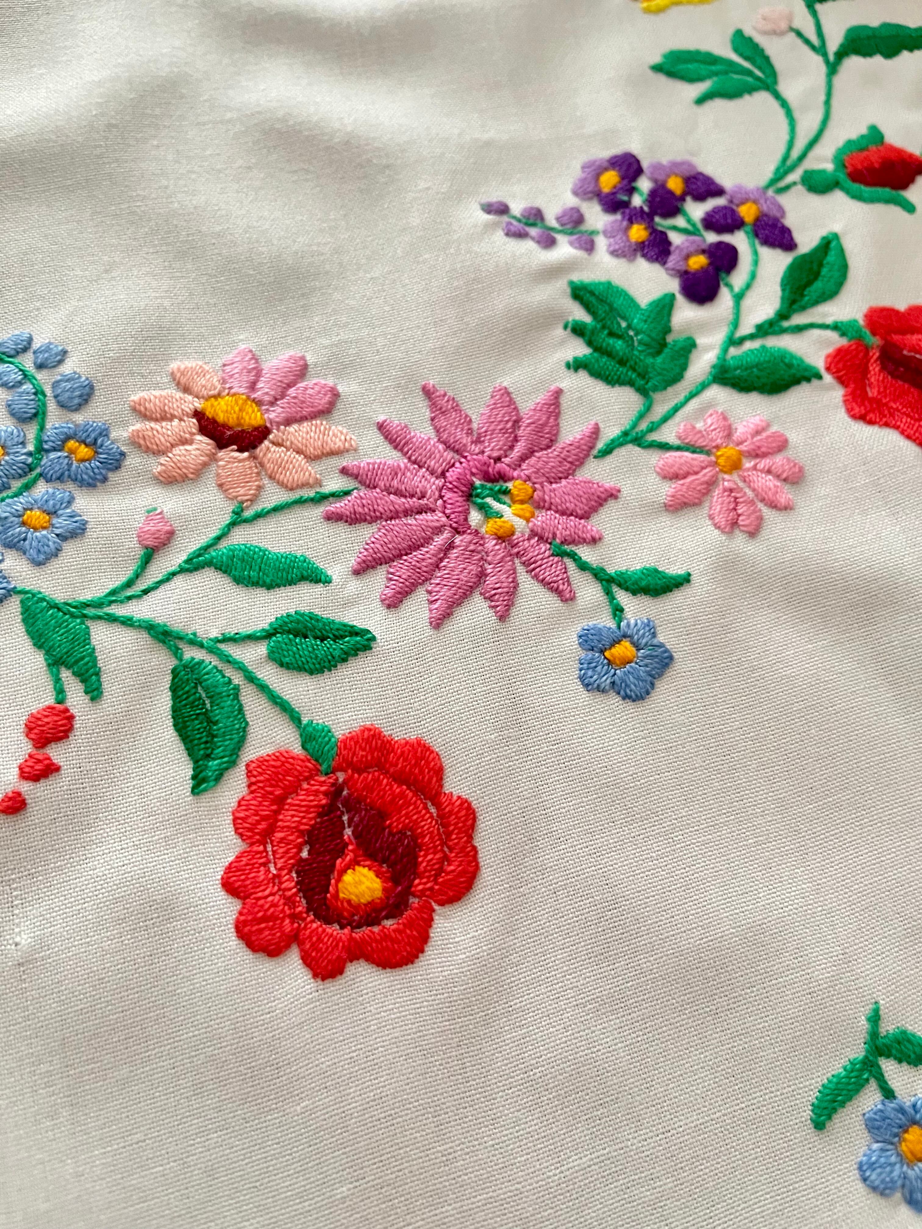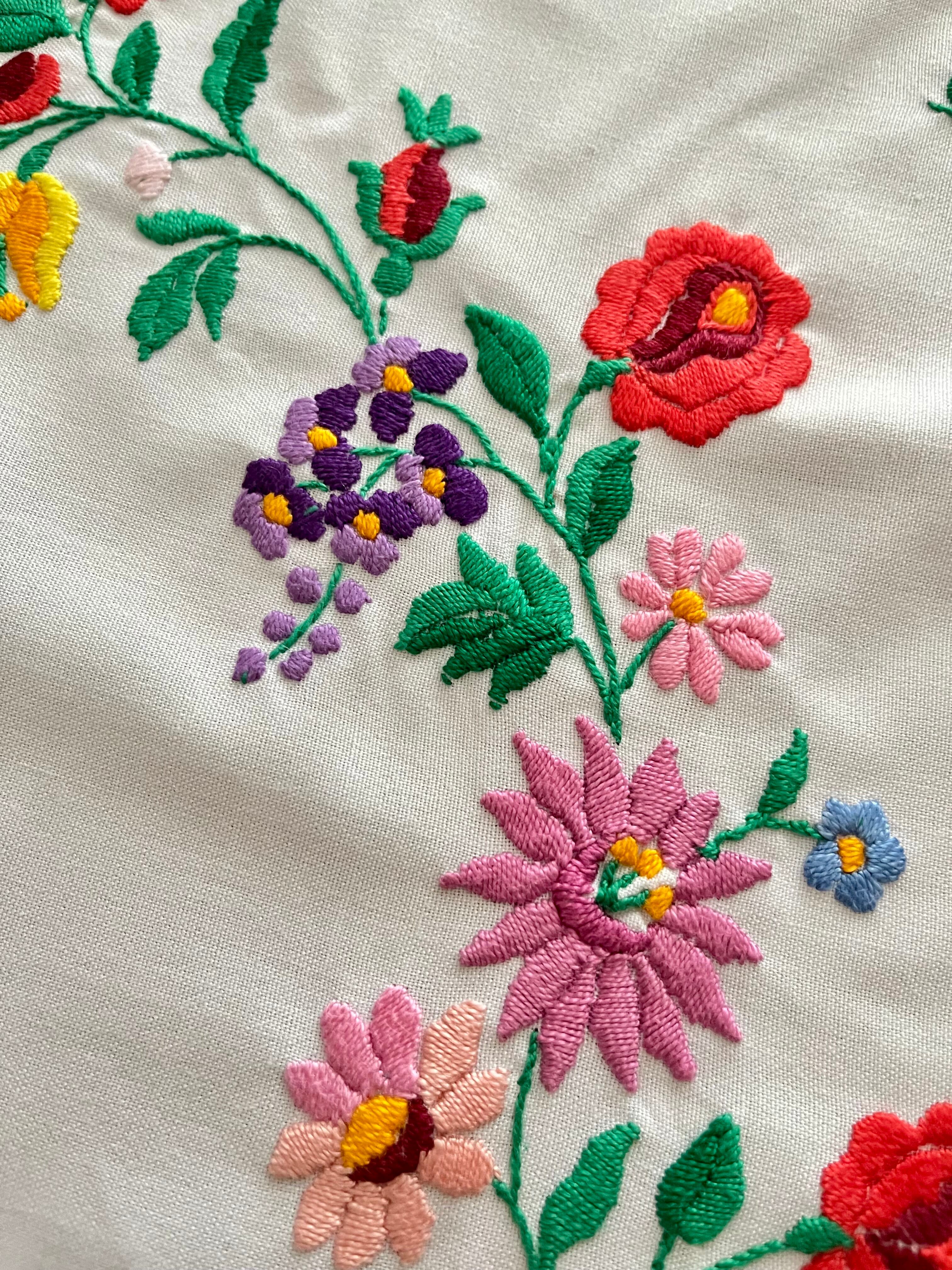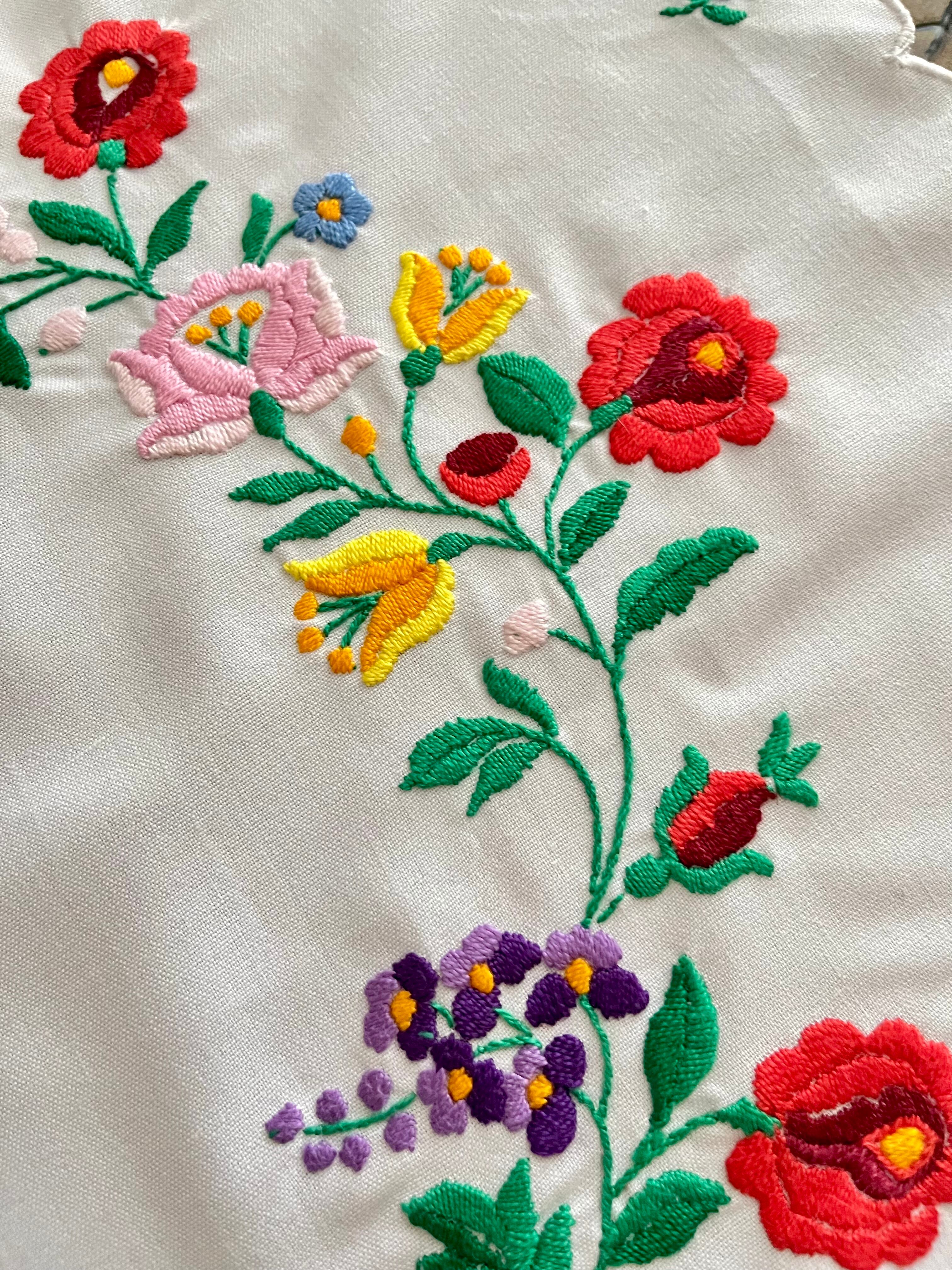 花の形の大きめドイリー ヴィンテージカロチャ刺繍 55.5×51 cm